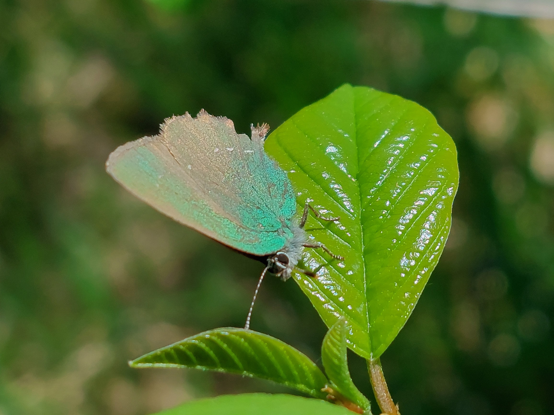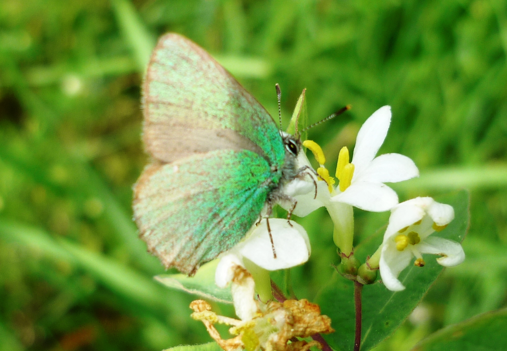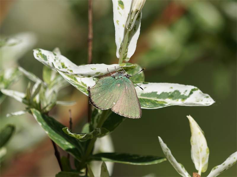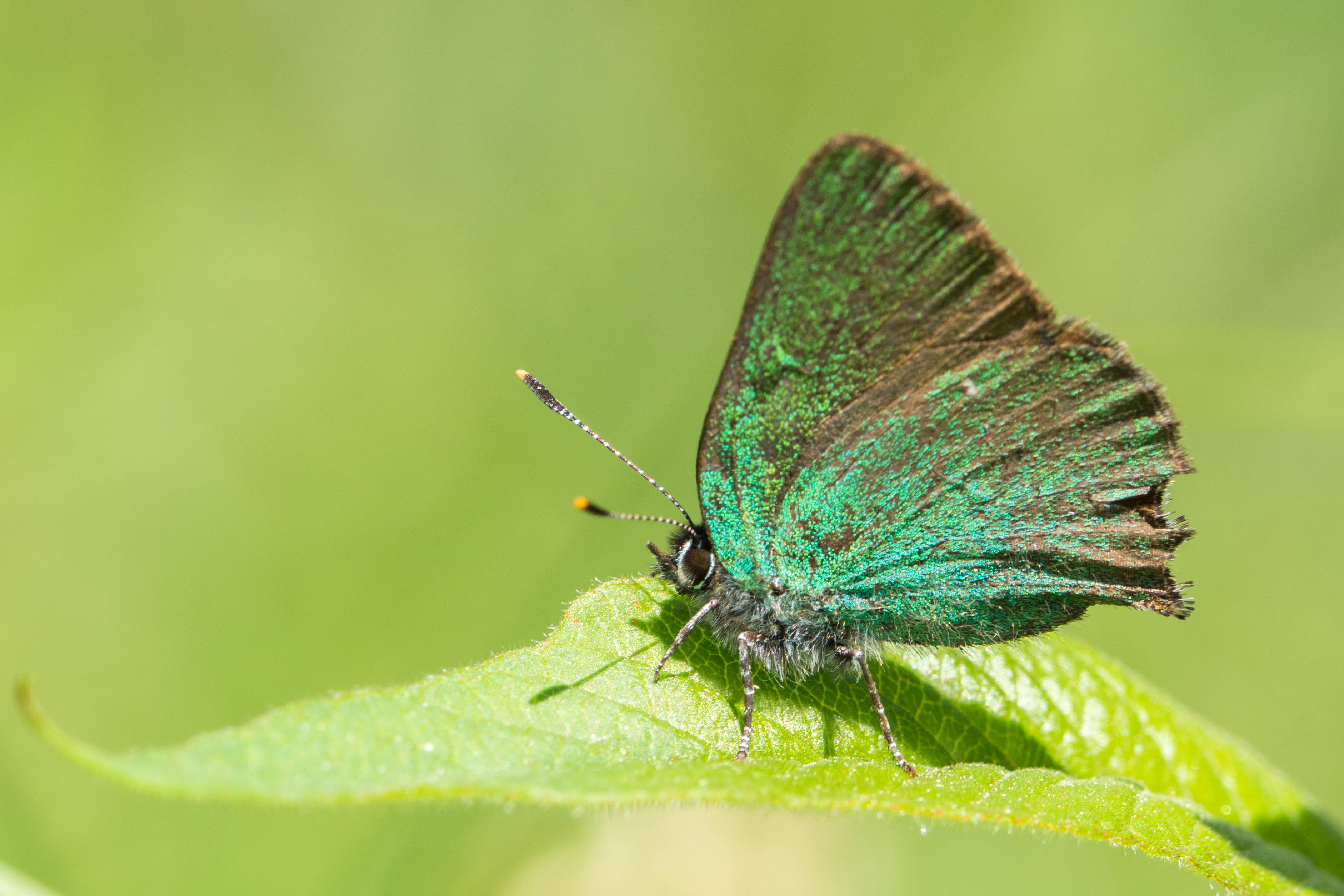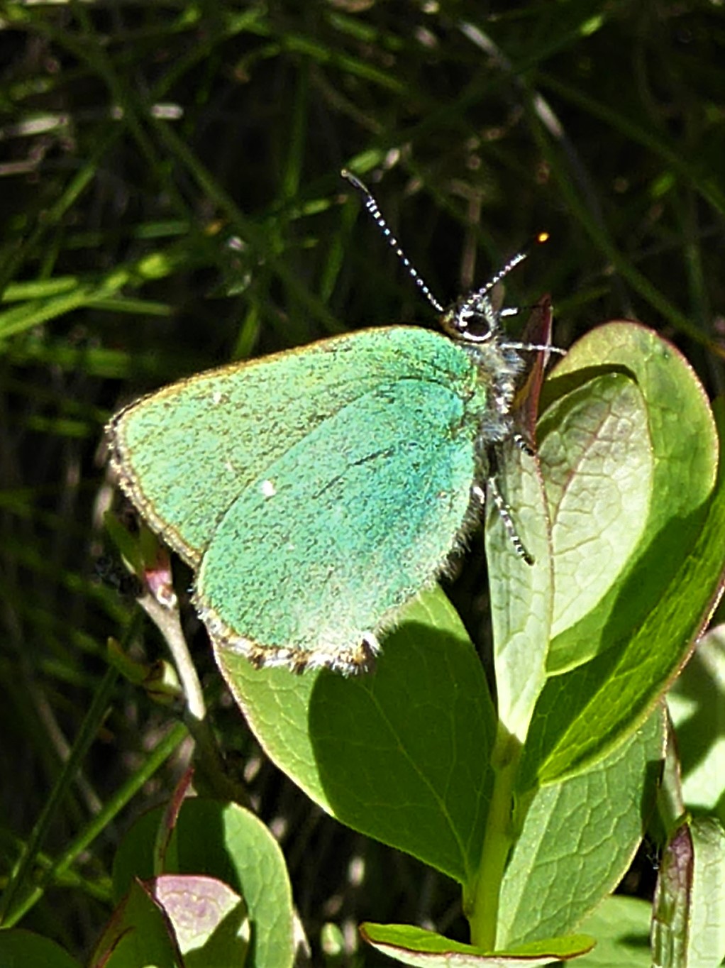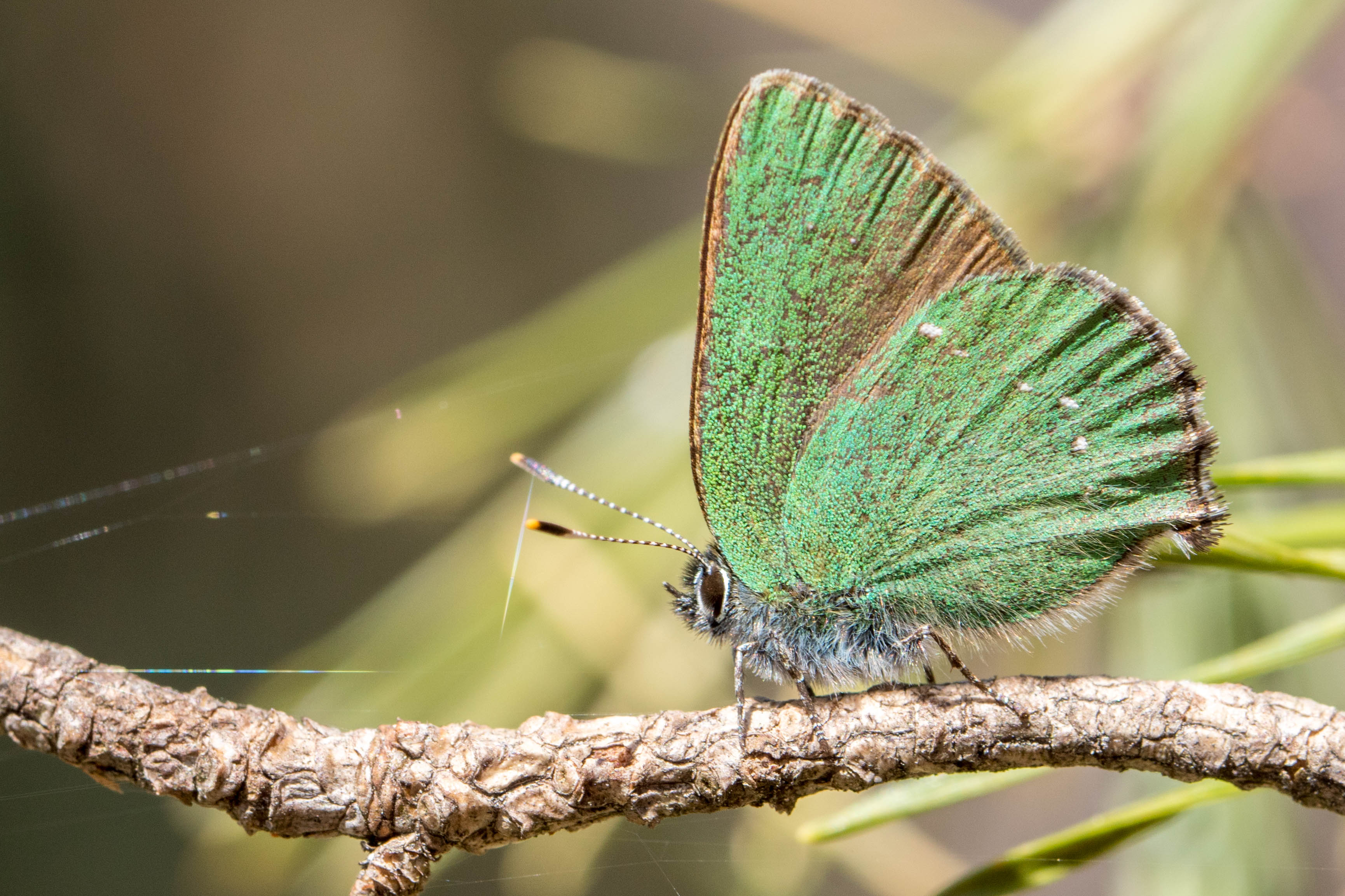 Grüner Zipfelfalter, im NSG Presseler Heide,- Wald,- und Moorgebiet, ca. 3 km nördl. von Wöllnau, am 17.05.2020