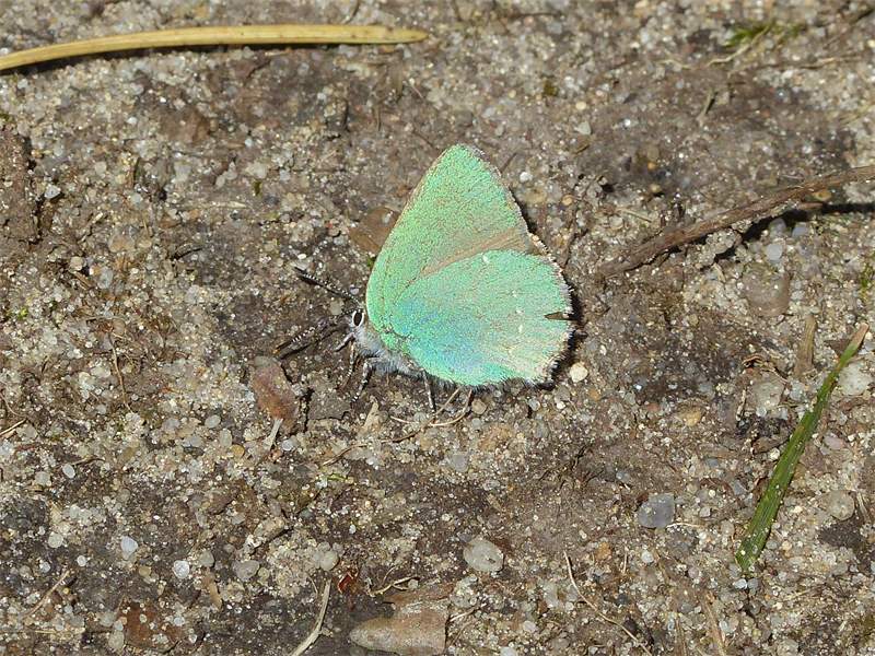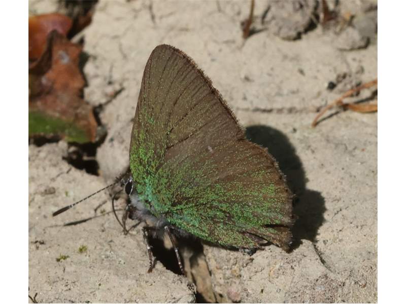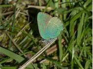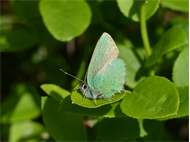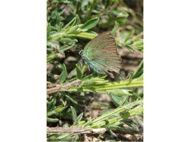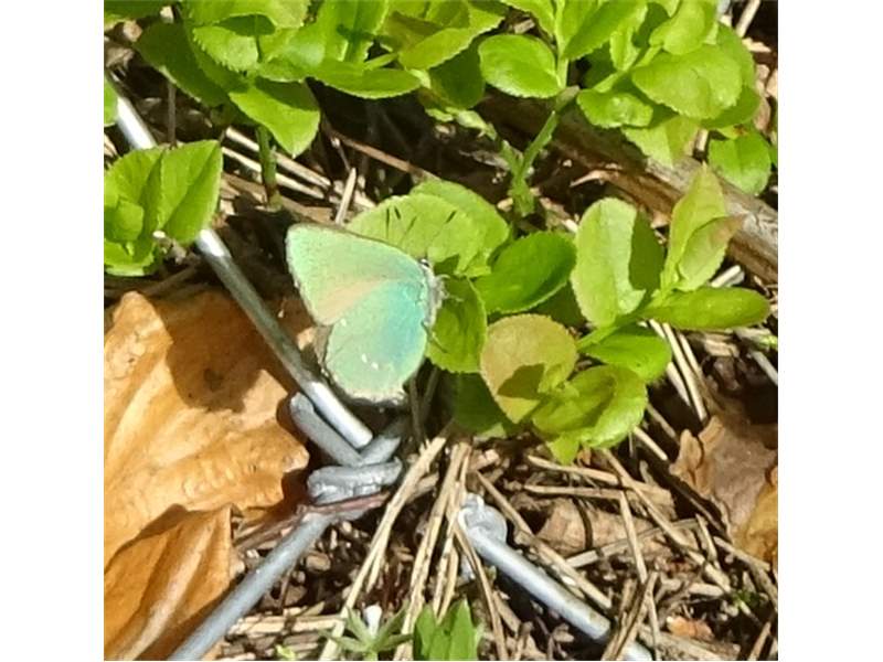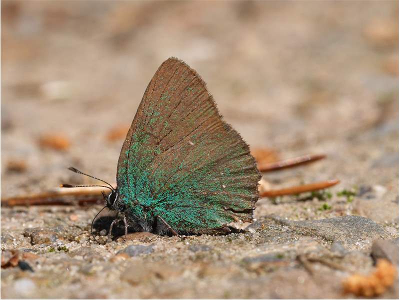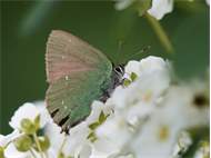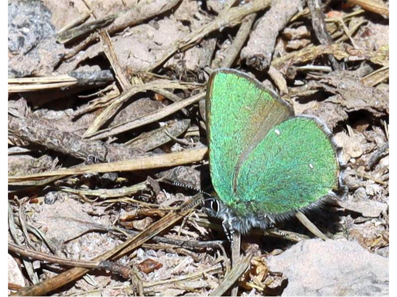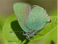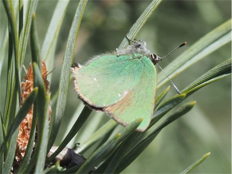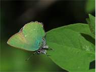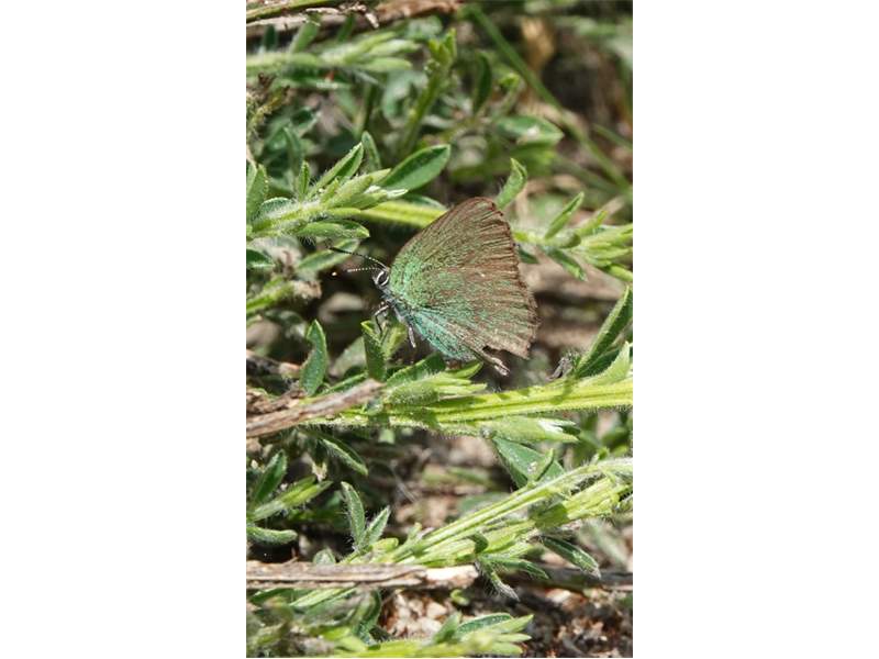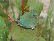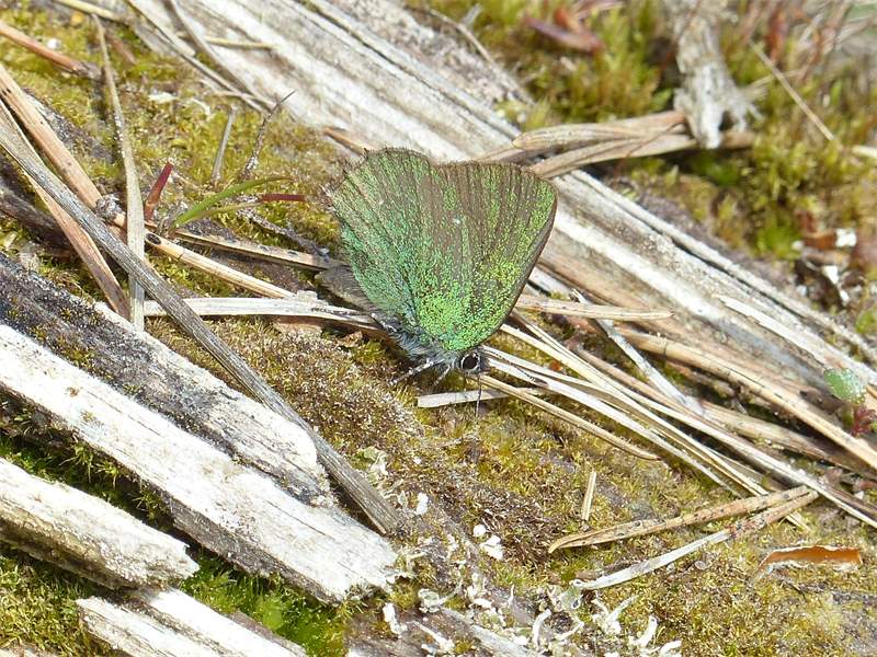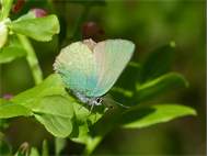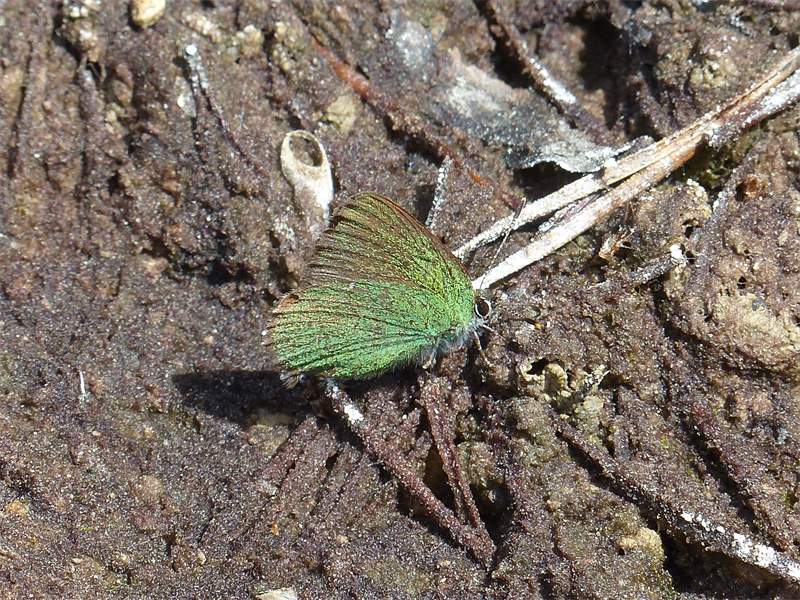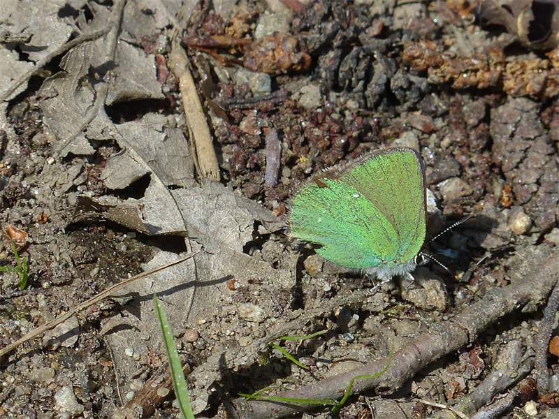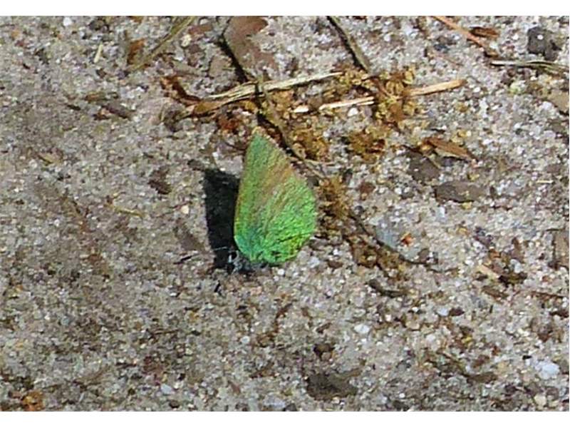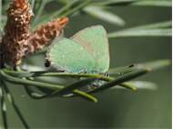 Grüner Zipfelfalter, im NSG Presseler Heide,- Wald,- und Moorgebiet, ca. 3 km nördl. von Wöllnau, am 17.05.2020 (© R. Papenfuß)( Bild vergrößern)