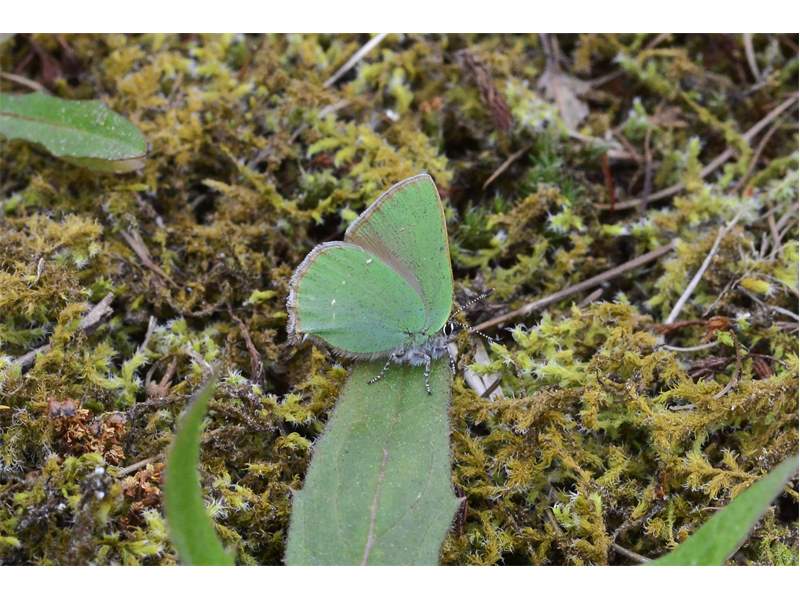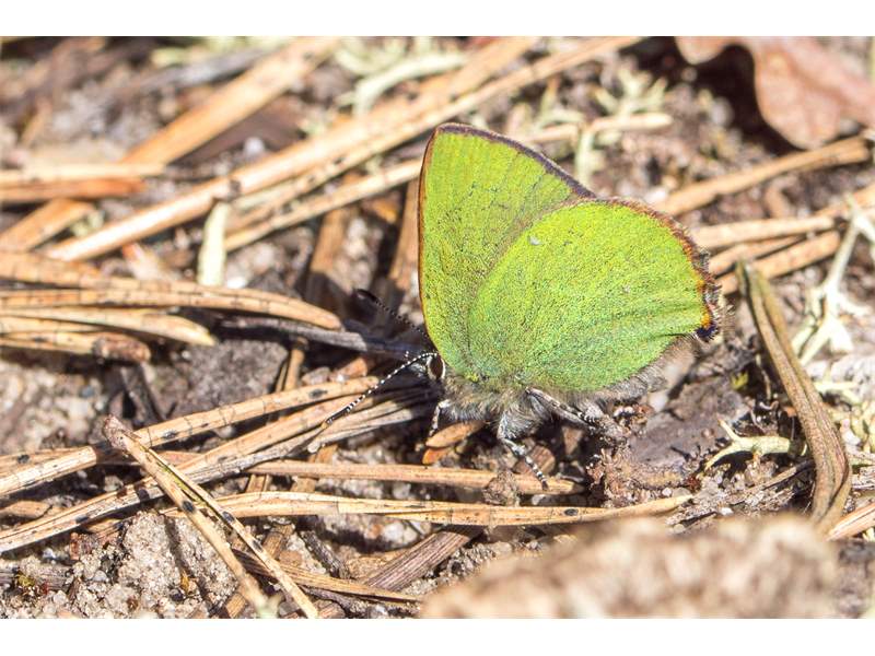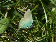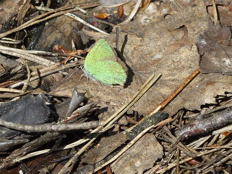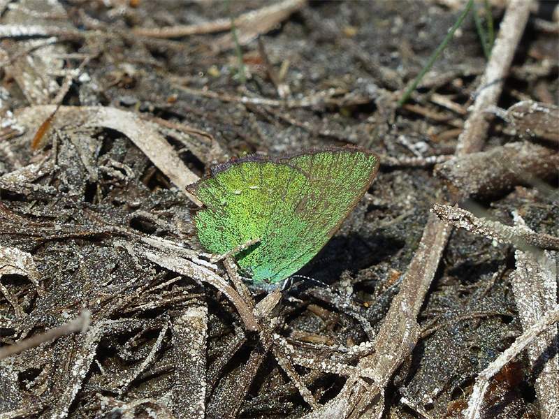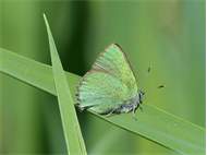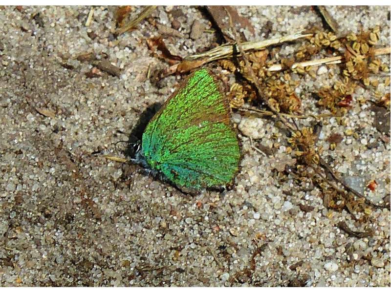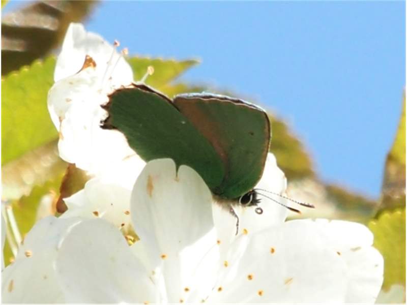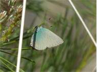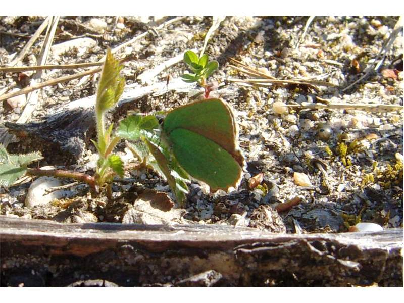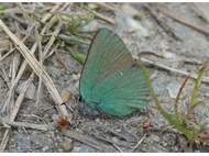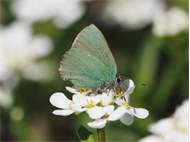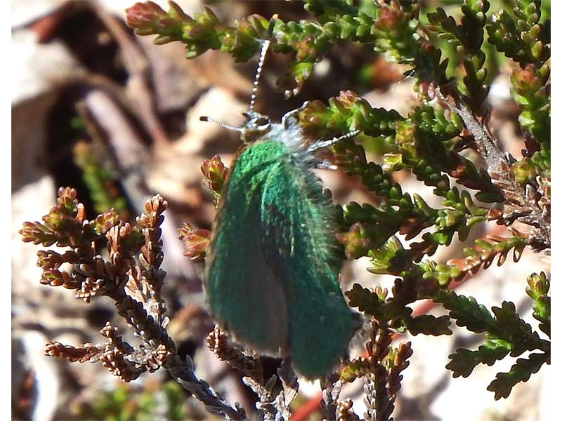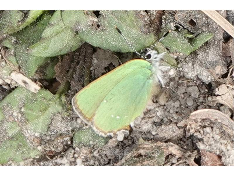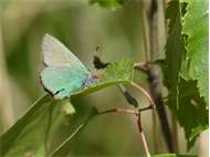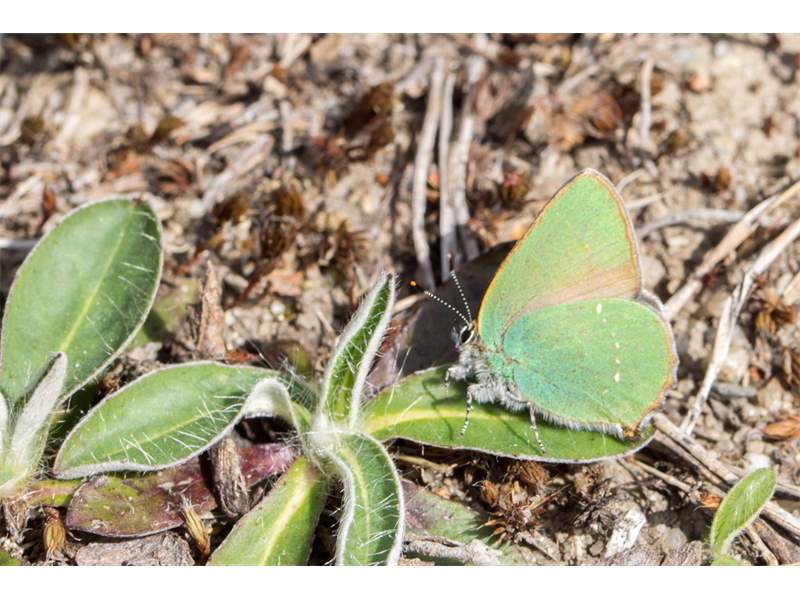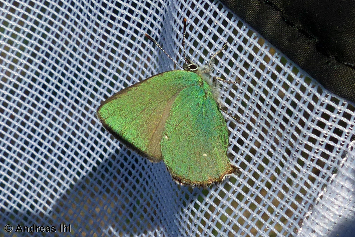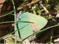 Grüner Zipfelfalter, im NSG Presseler Heide,- Wald,- und Moorgebiet, ca. 3 km nördl. von Wöllnau, am 17.05.2020 (© R. Papenfuß)( Bild vergrößern)