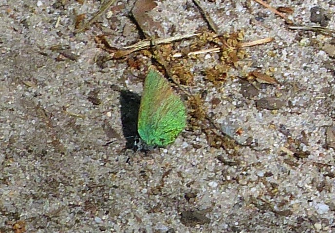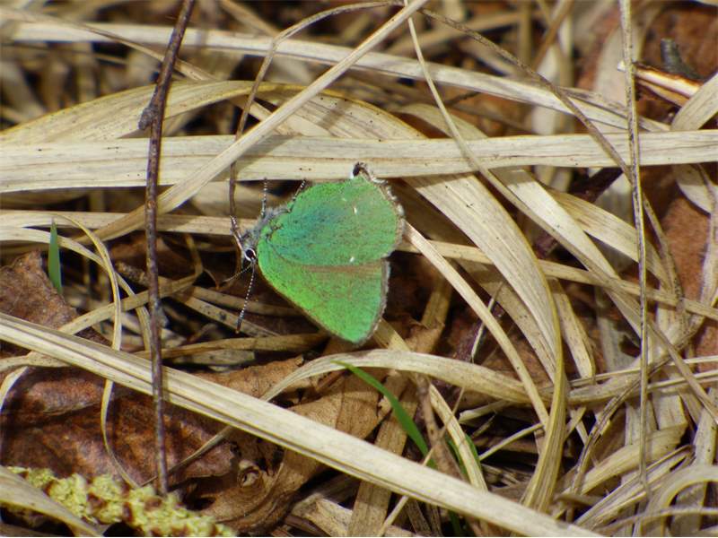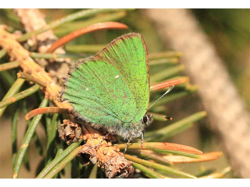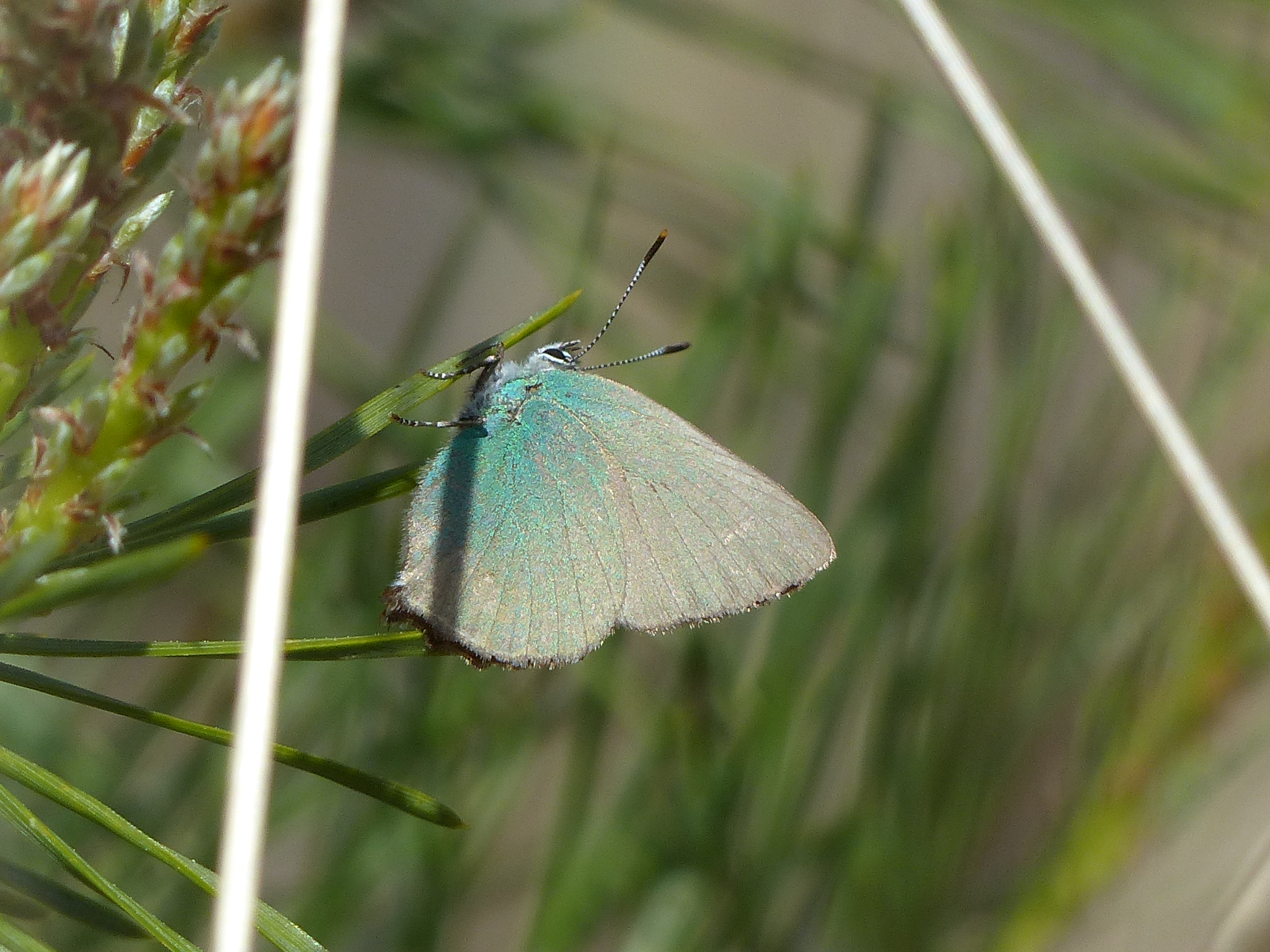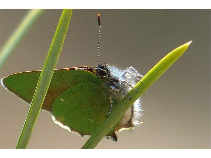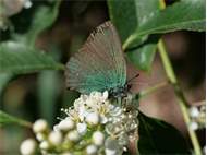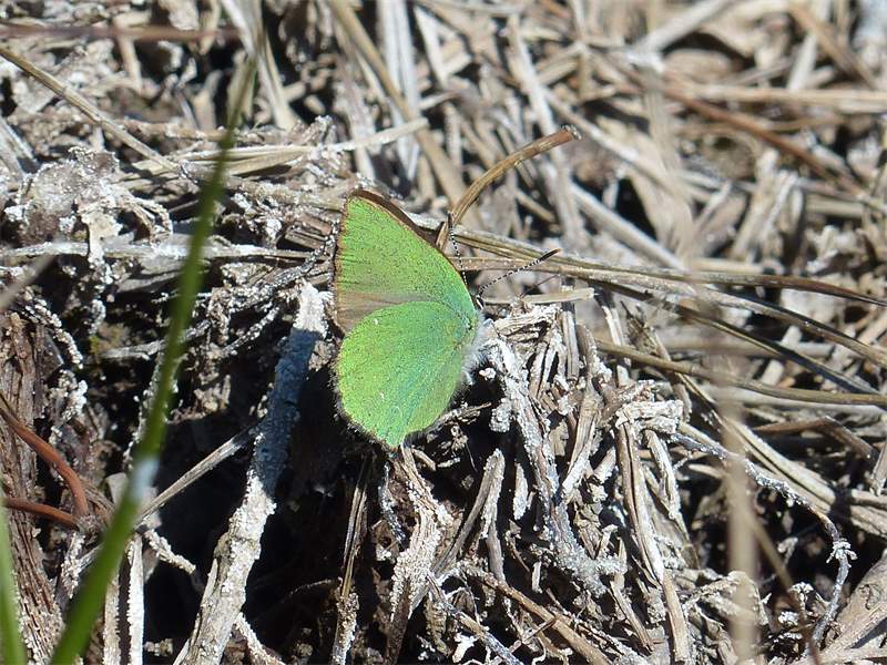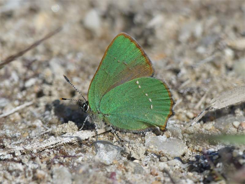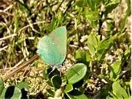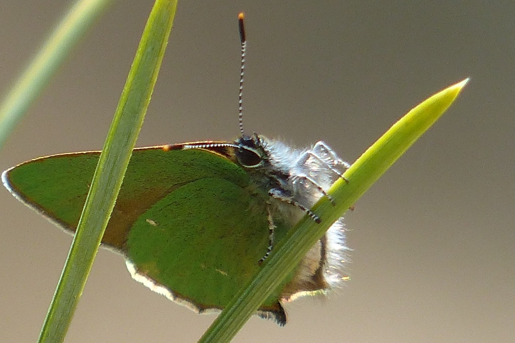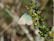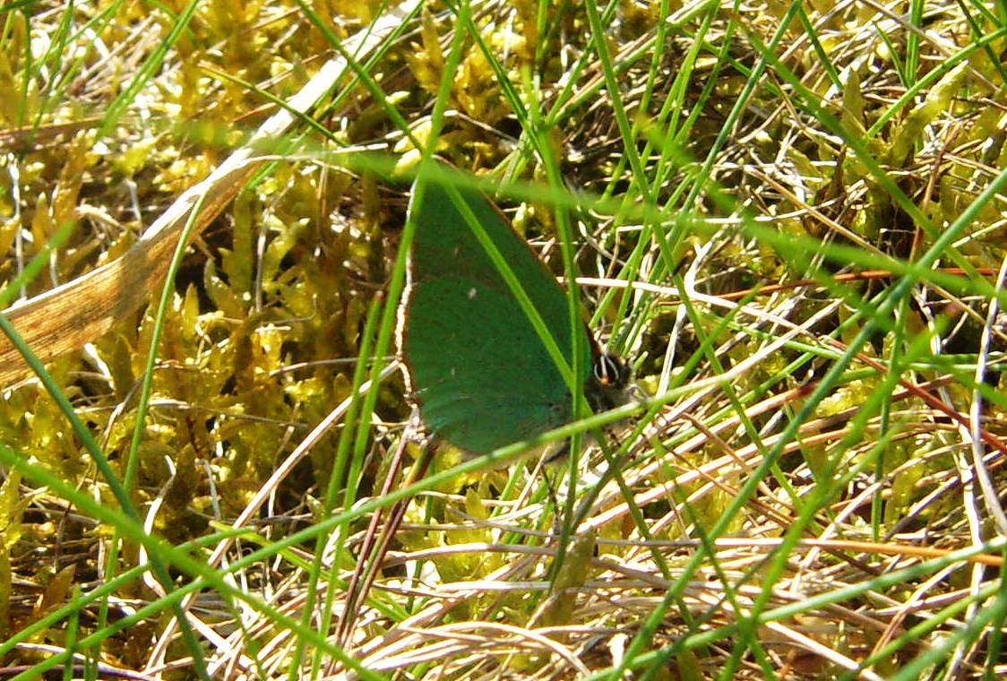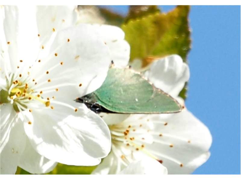 Grüner Zipfelfalter, im NSG Presseler Heide,- Wald,- und Moorgebiet, ca. 3 km nördl. von Wöllnau, am 17.05.2020 (© R. Papenfuß)( Bild vergrößern)