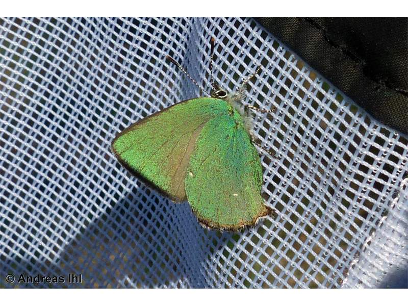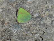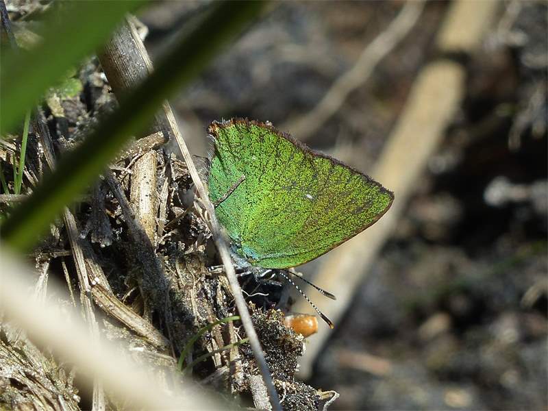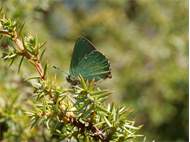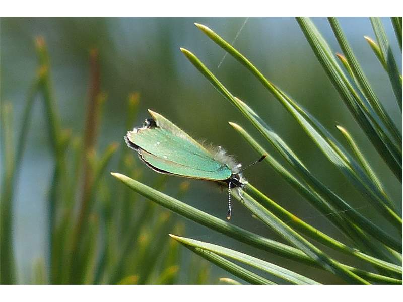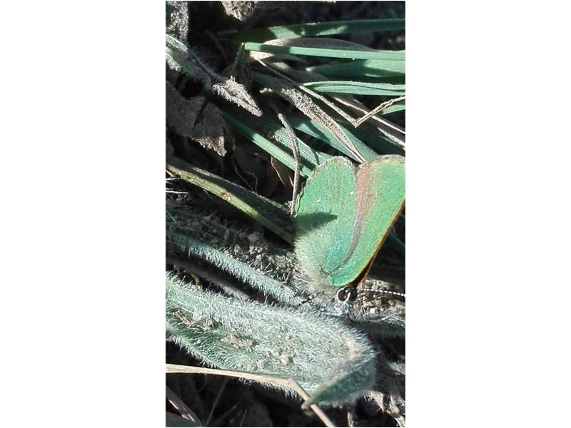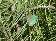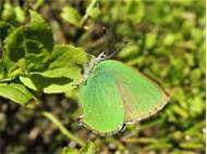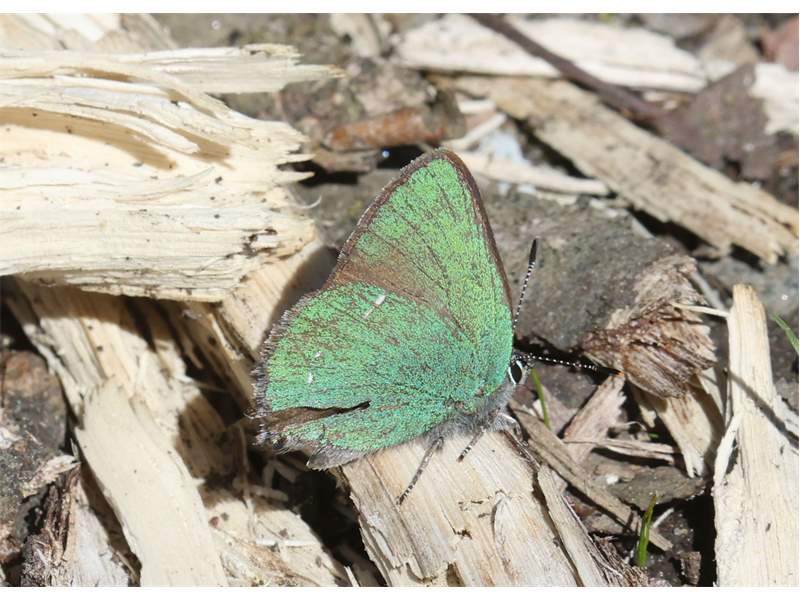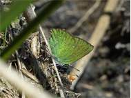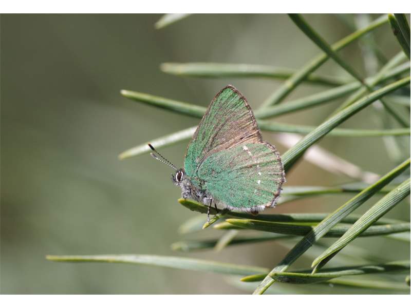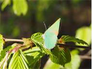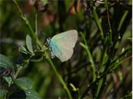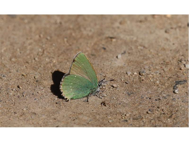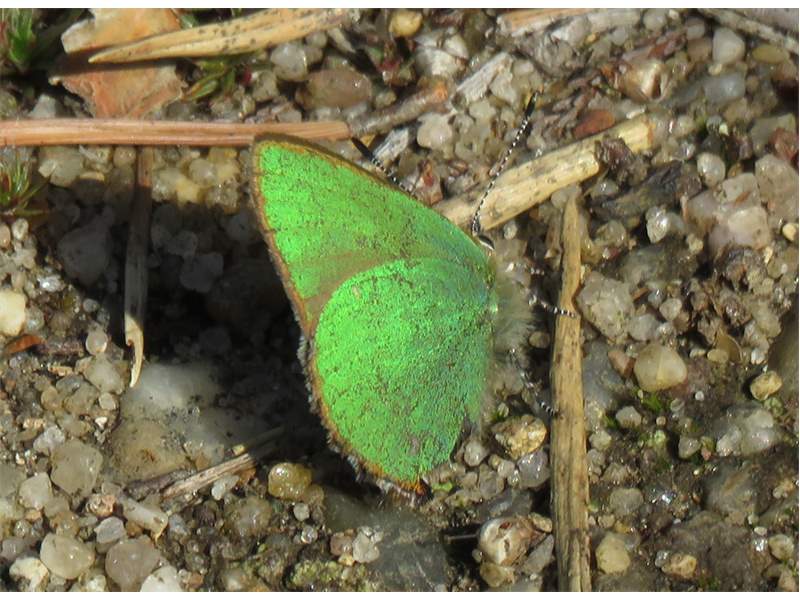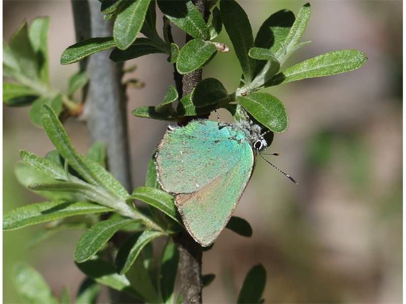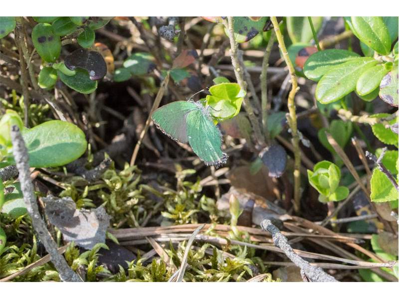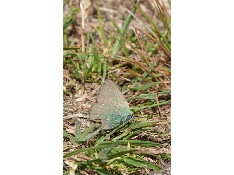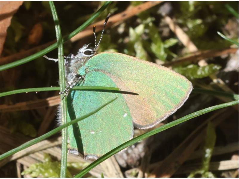 Grüner Zipfelfalter, im NSG Presseler Heide,- Wald,- und Moorgebiet, ca. 3 km nördl. von Wöllnau, am 17.05.2020 (© R. Papenfuß)( Bild vergrößern)