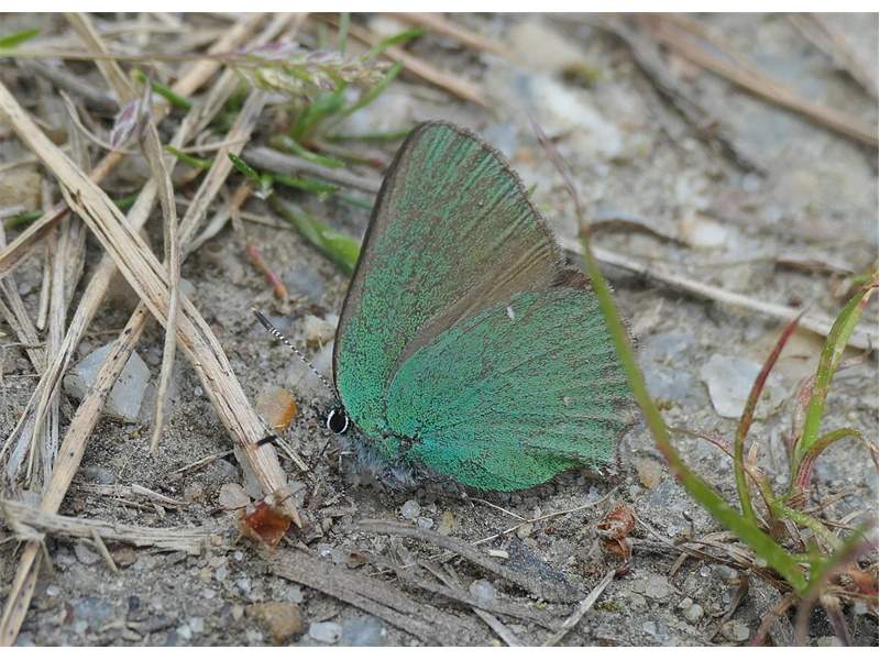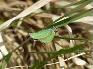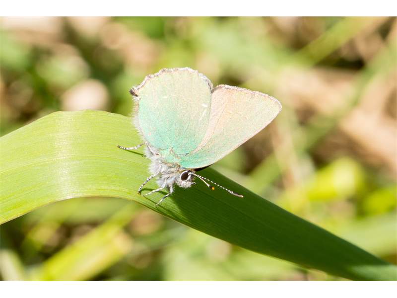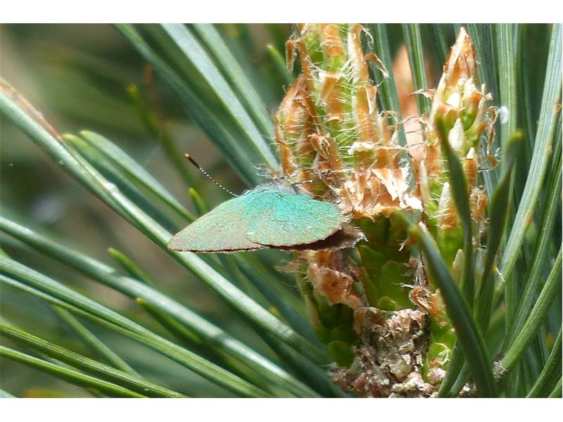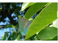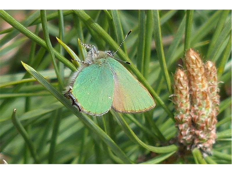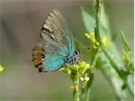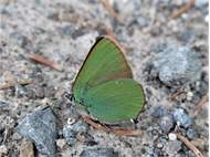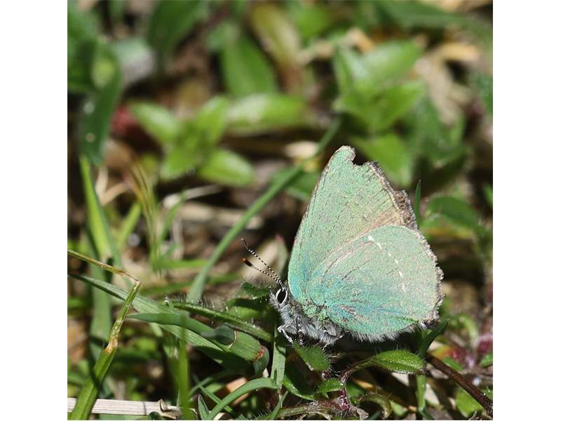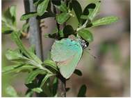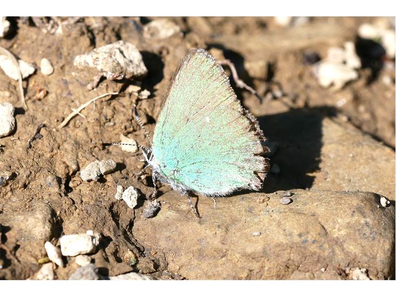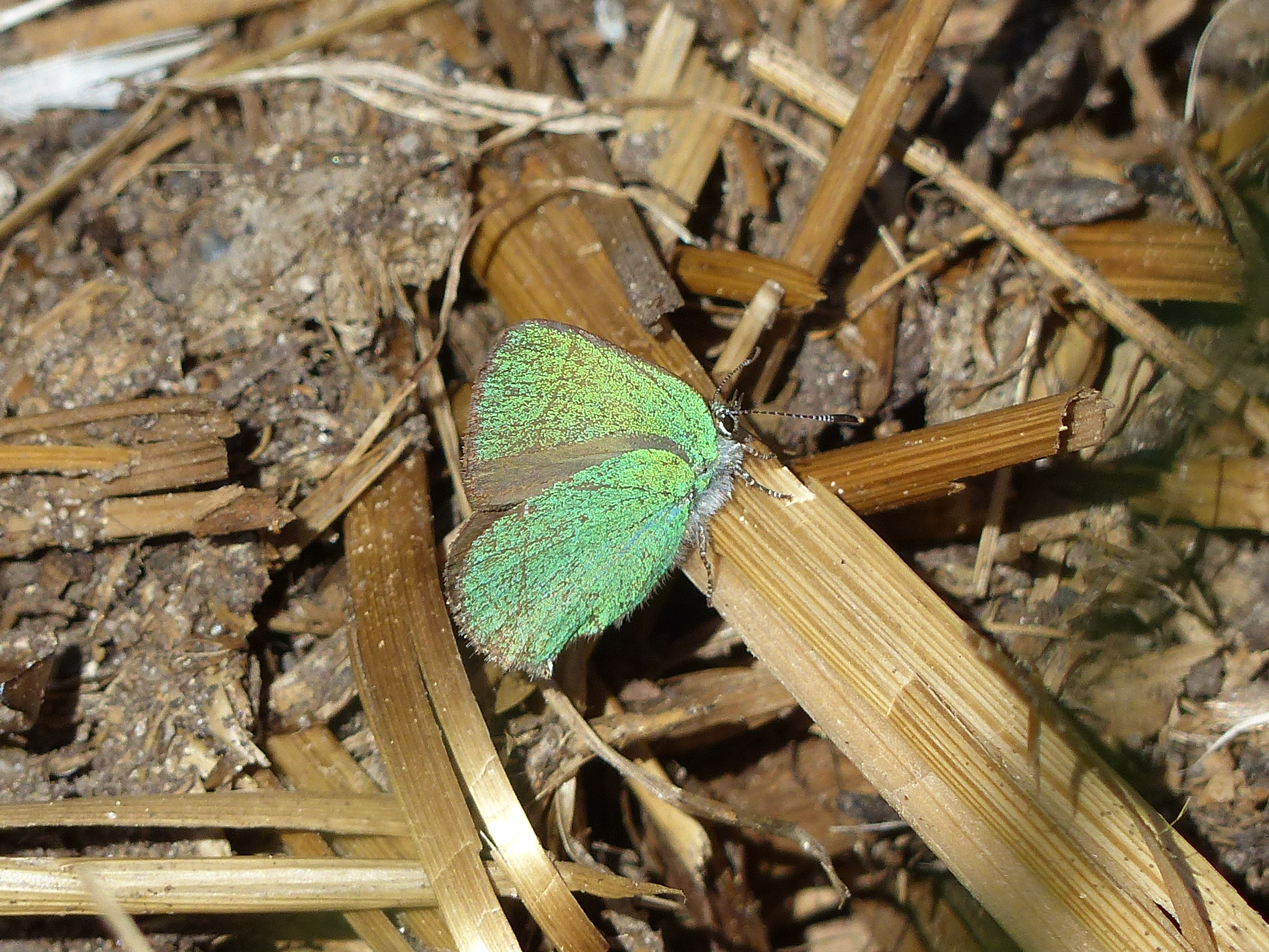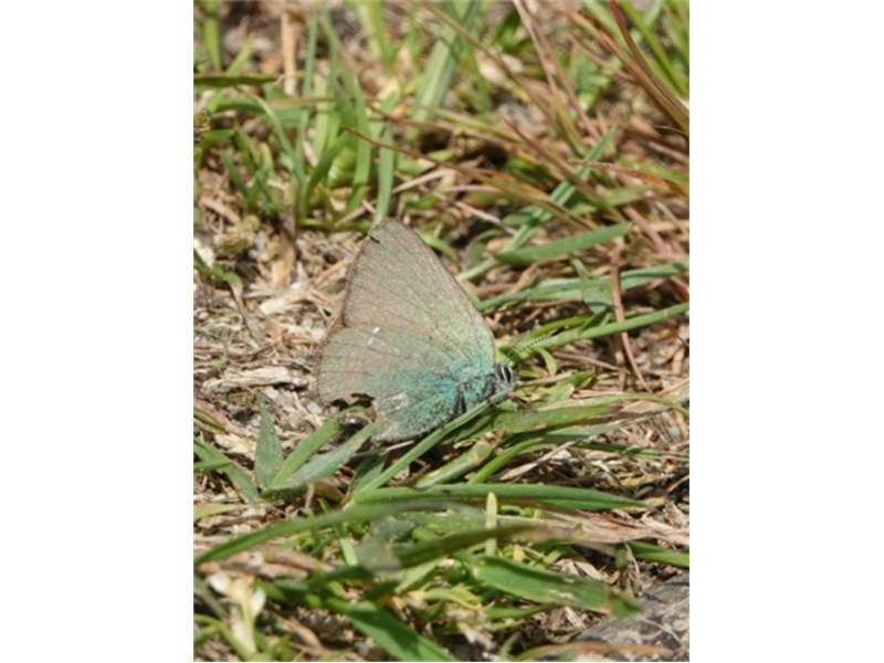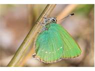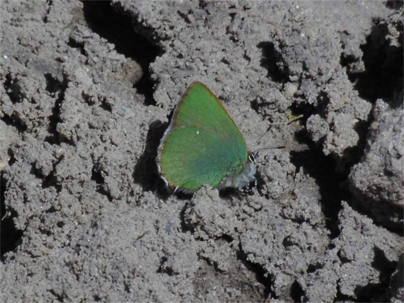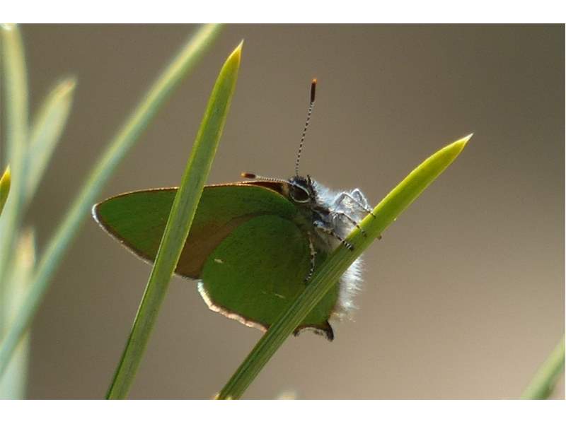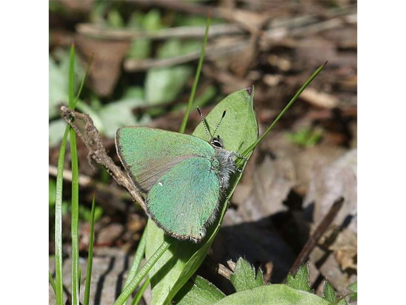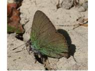 Grüner Zipfelfalter, im NSG Presseler Heide,- Wald,- und Moorgebiet, ca. 3 km nördl. von Wöllnau, am 17.05.2020 (© R. Papenfuß)( Bild vergrößern)