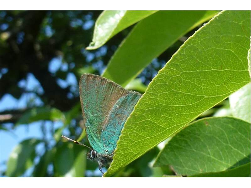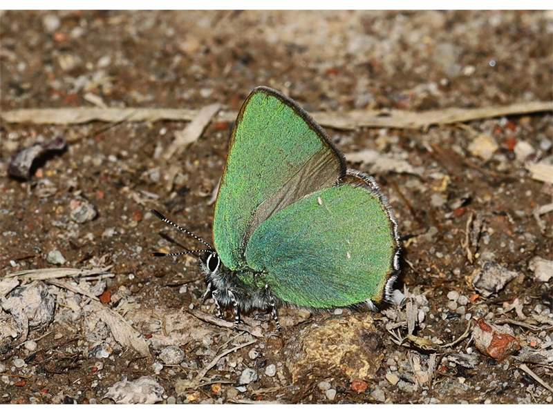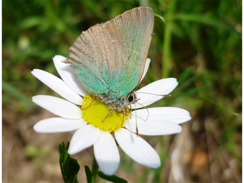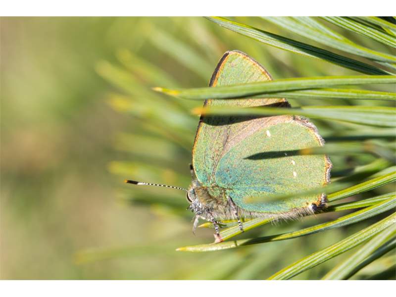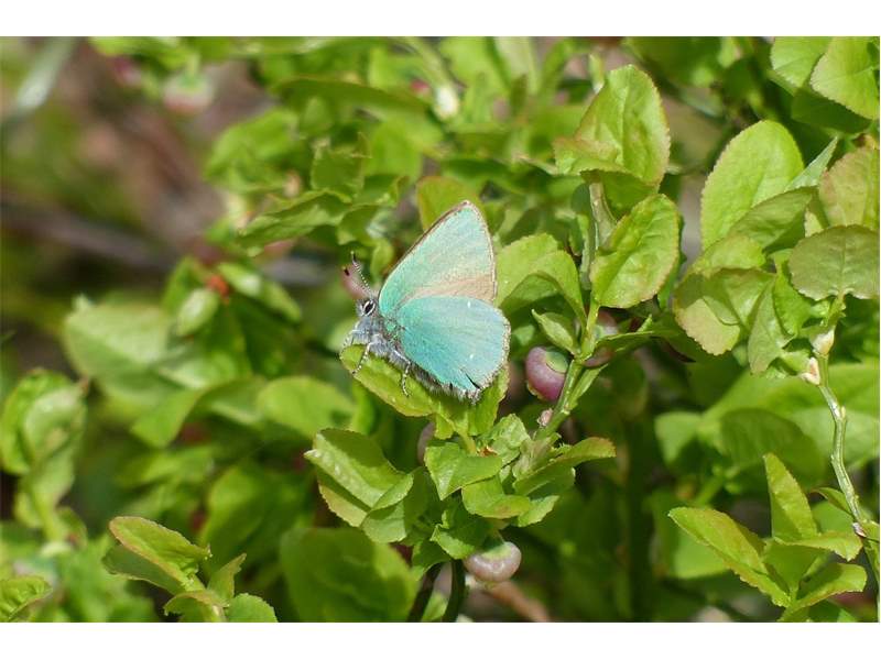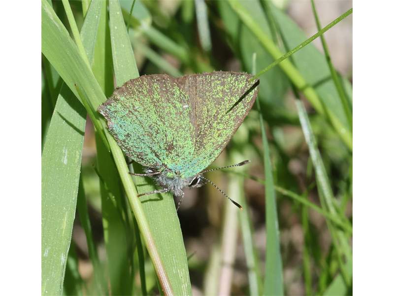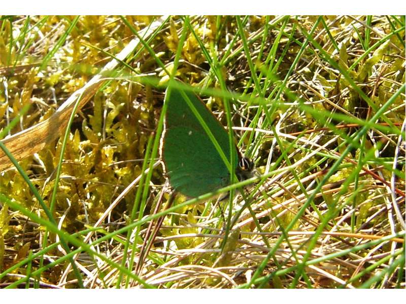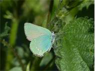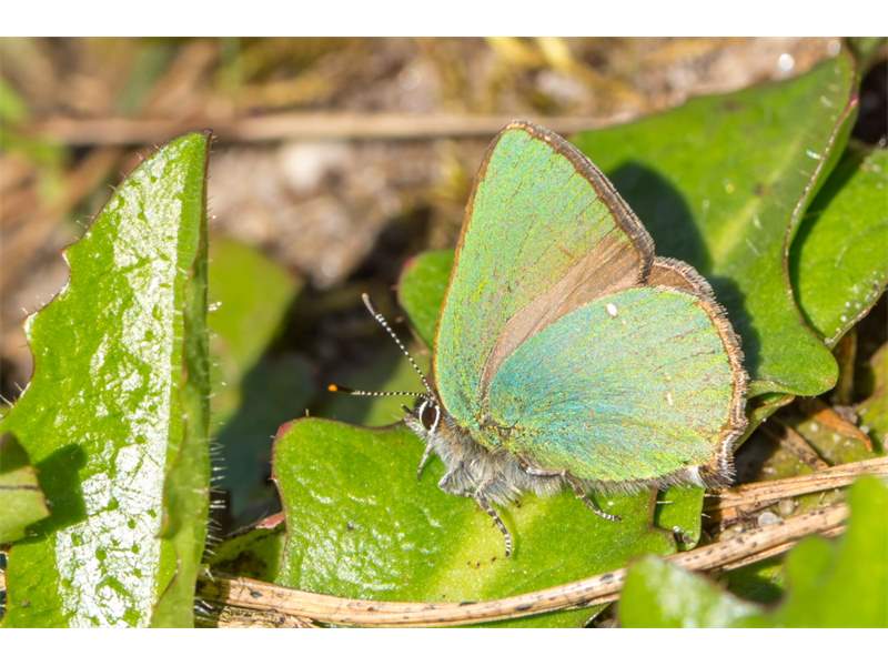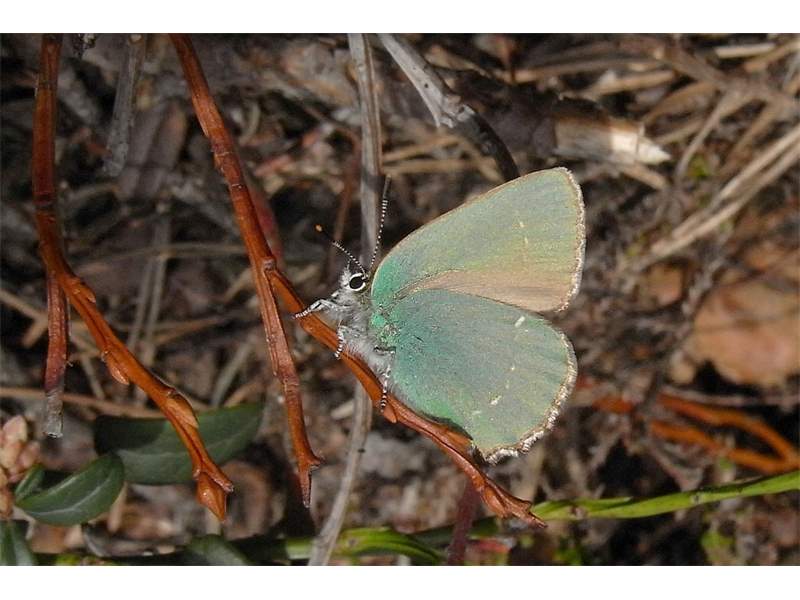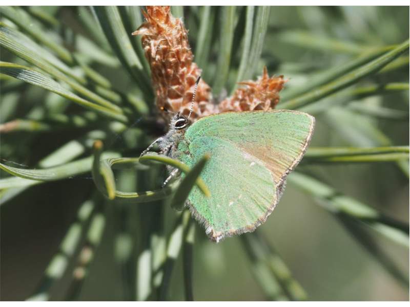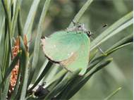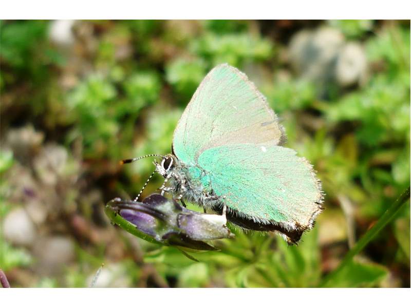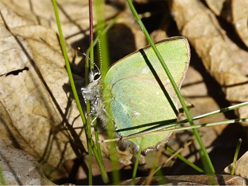 Grüner Zipfelfalter, im NSG Presseler Heide,- Wald,- und Moorgebiet, ca. 3 km nördl. von Wöllnau, am 17.05.2020 (© R. Papenfuß)( Bild vergrößern)