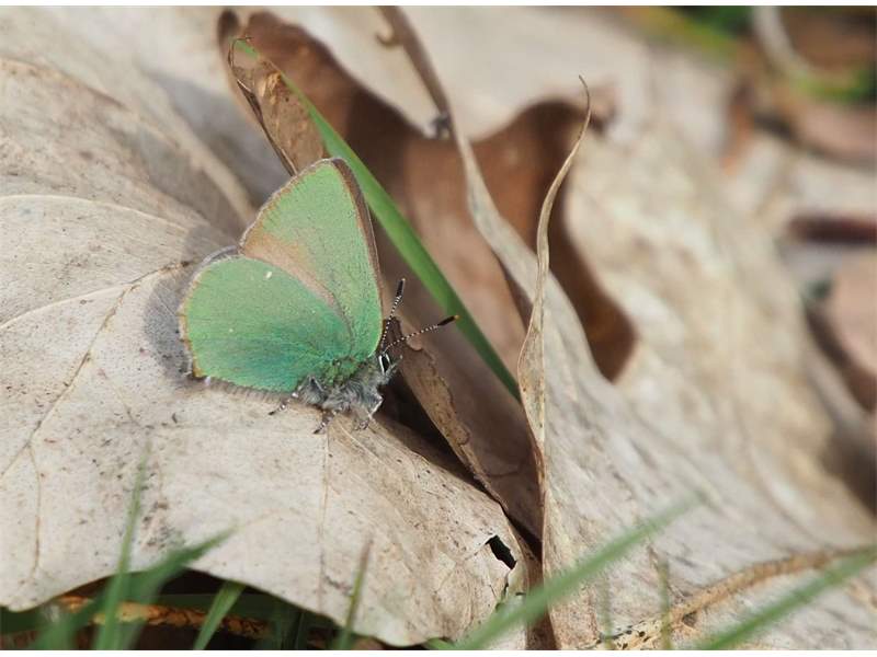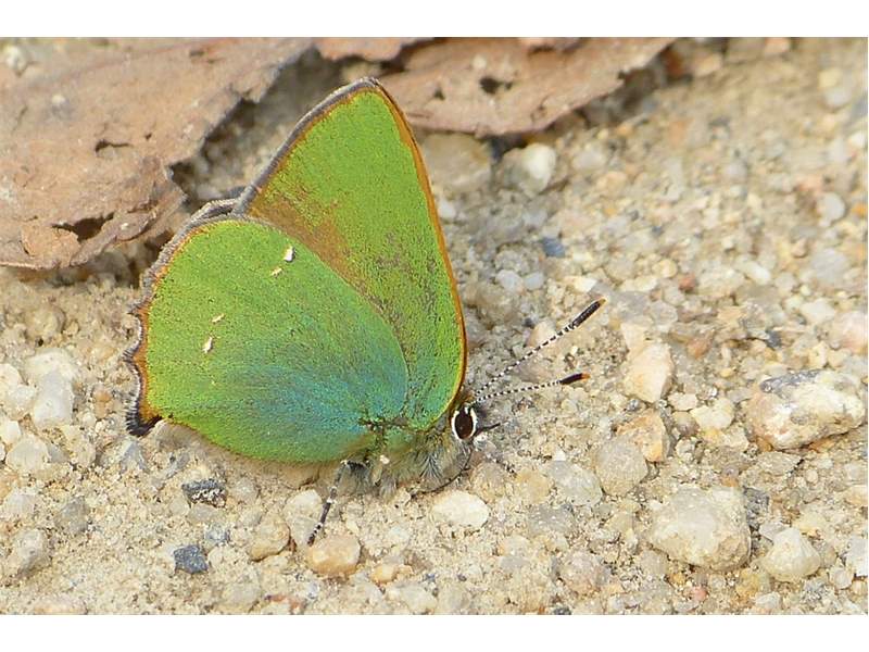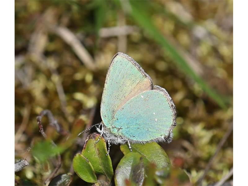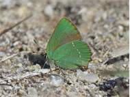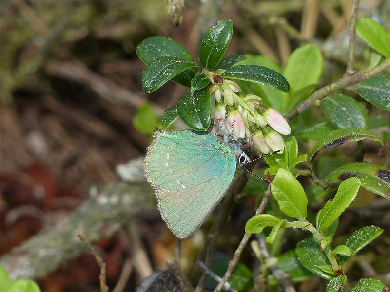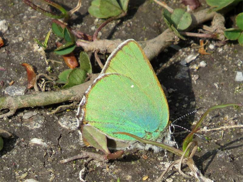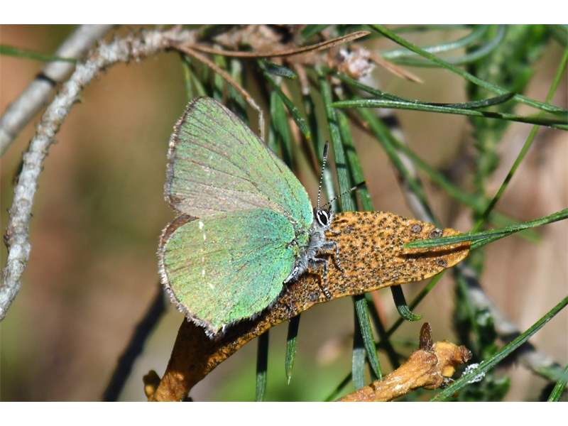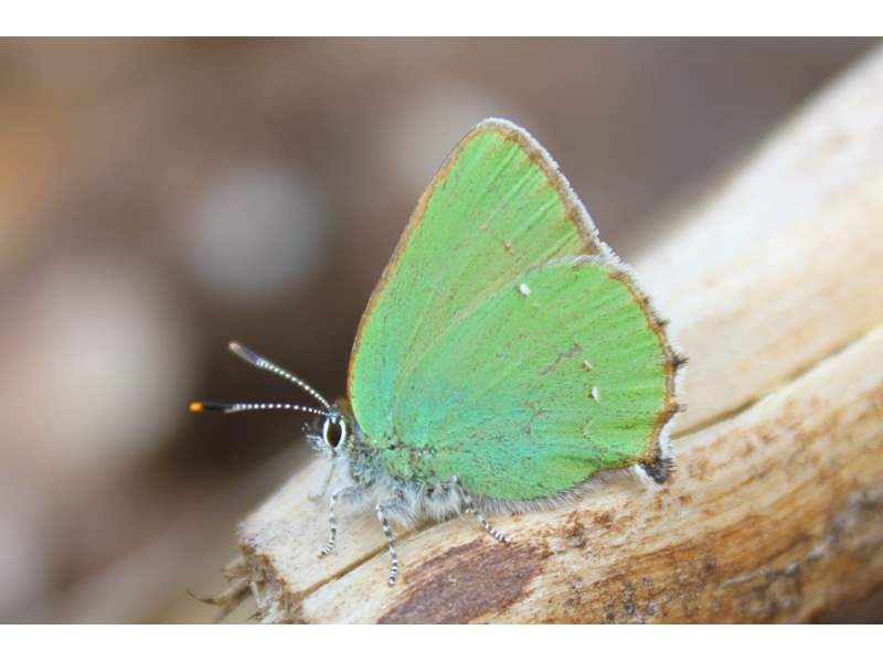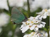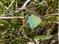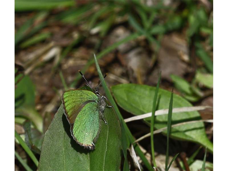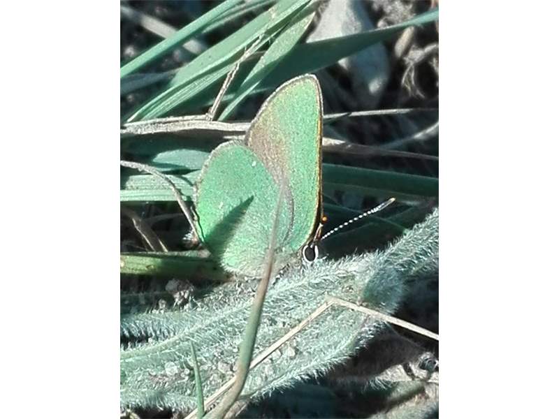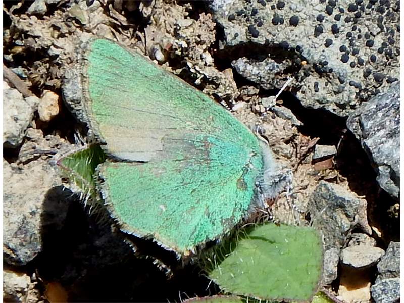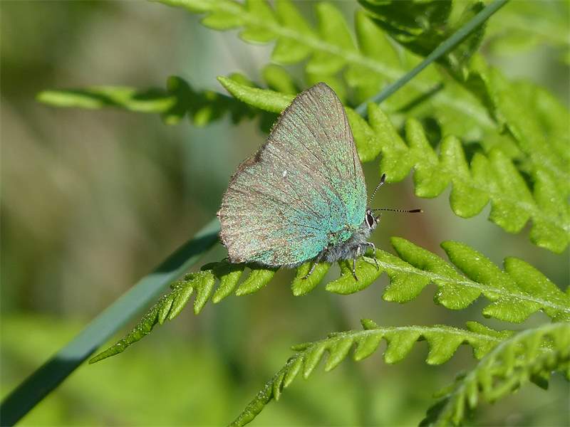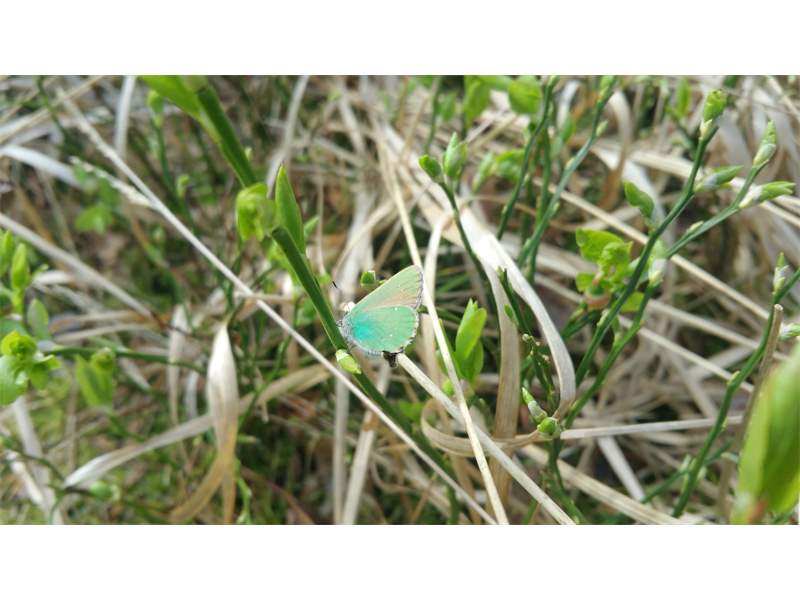 Grüner Zipfelfalter, im NSG Presseler Heide,- Wald,- und Moorgebiet, ca. 3 km nördl. von Wöllnau, am 17.05.2020 (© R. Papenfuß)( Bild vergrößern)