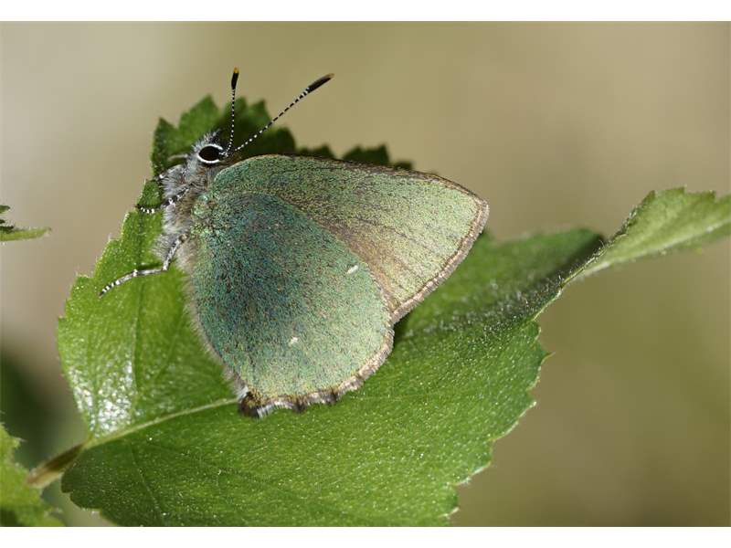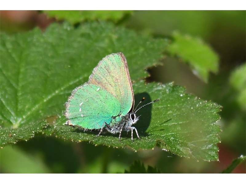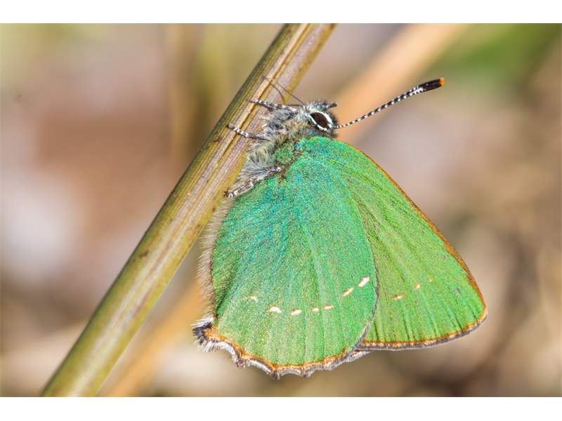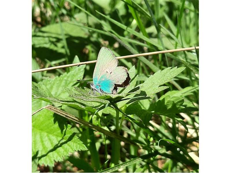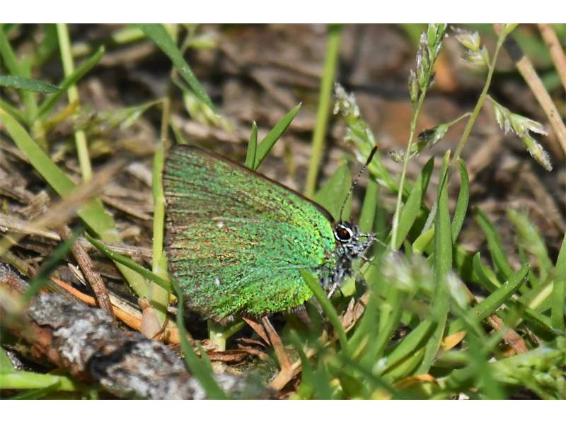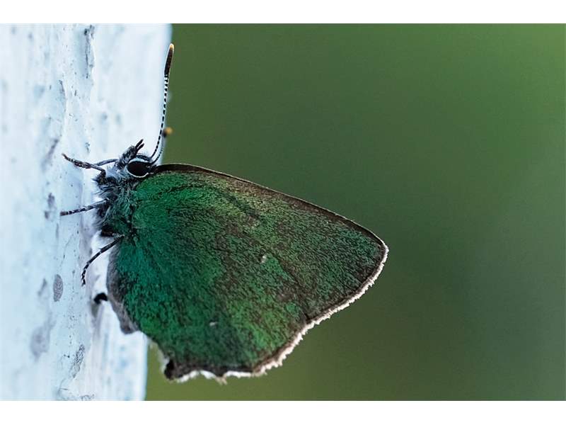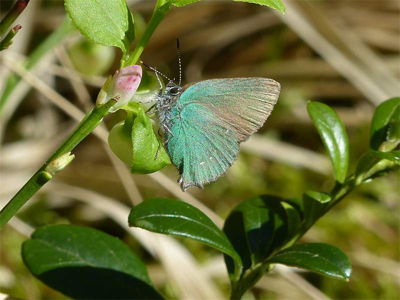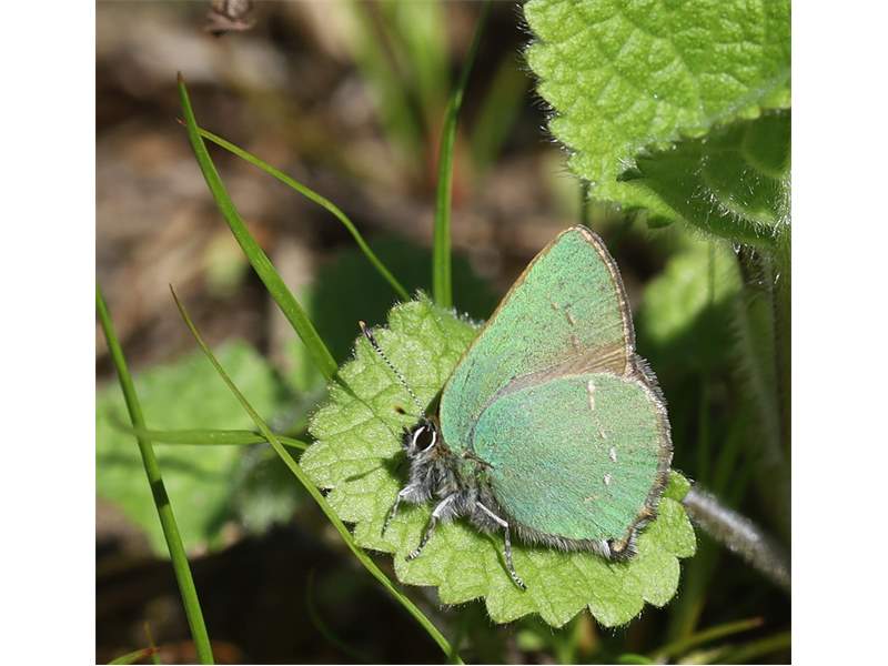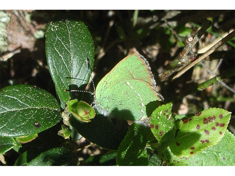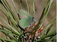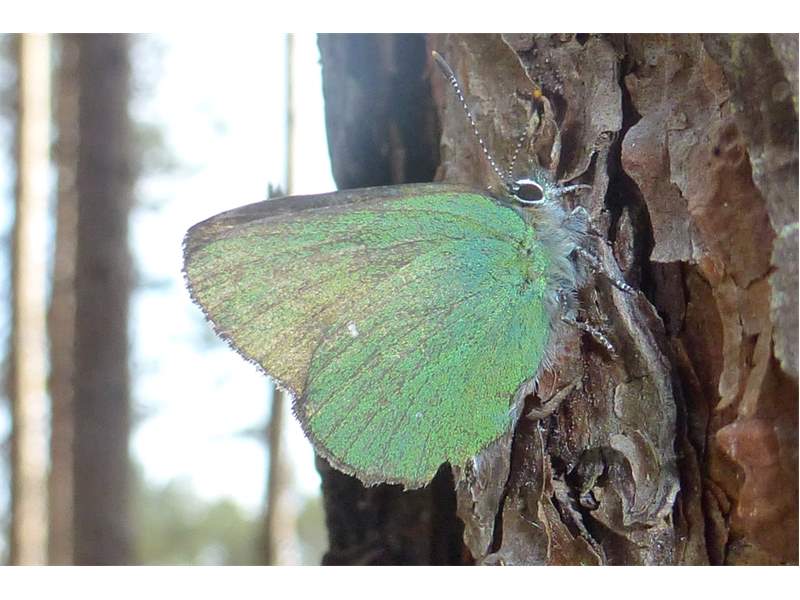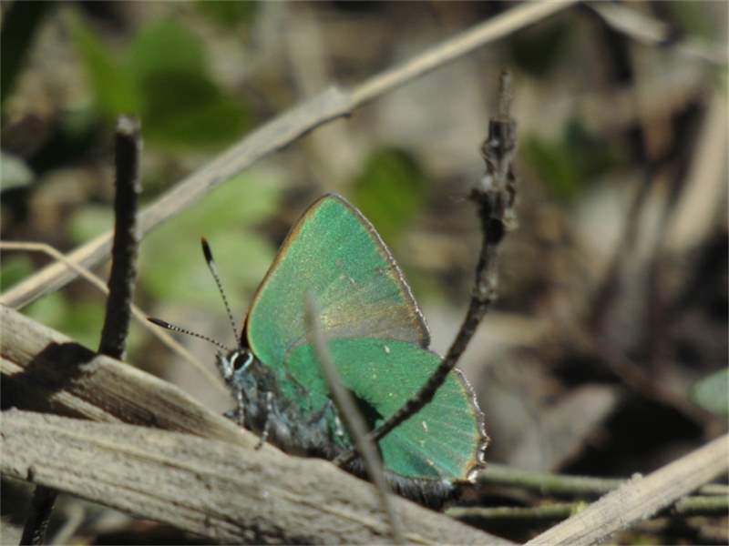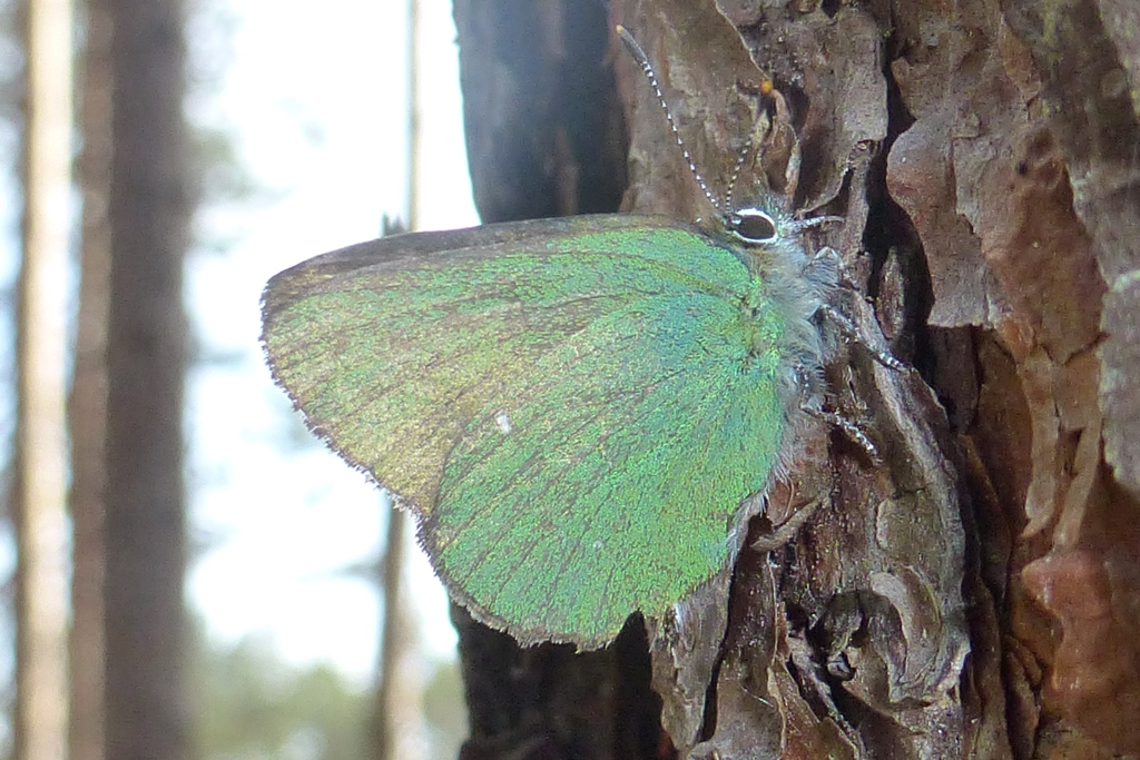 Grüner Zipfelfalter, im NSG Presseler Heide,- Wald,- und Moorgebiet, ca. 3 km nördl. von Wöllnau, am 17.05.2020 (© R. Papenfuß)( Bild vergrößern)