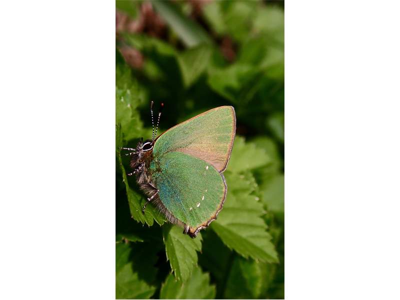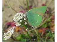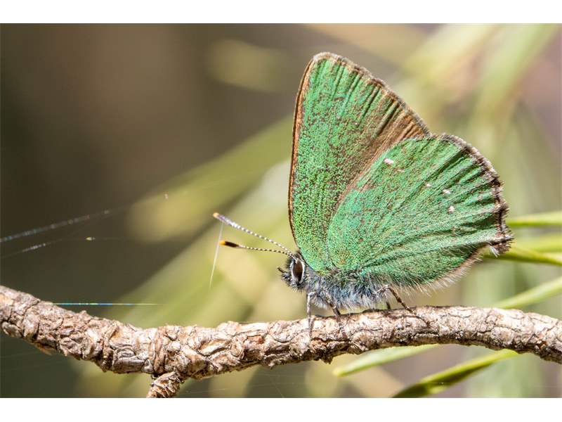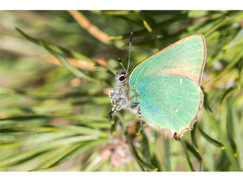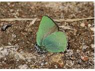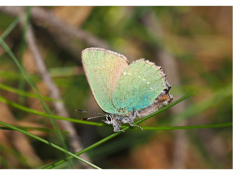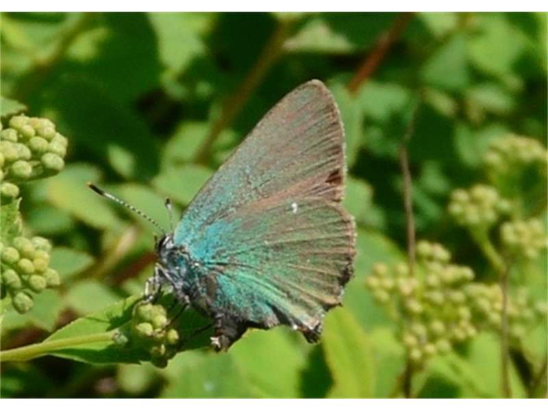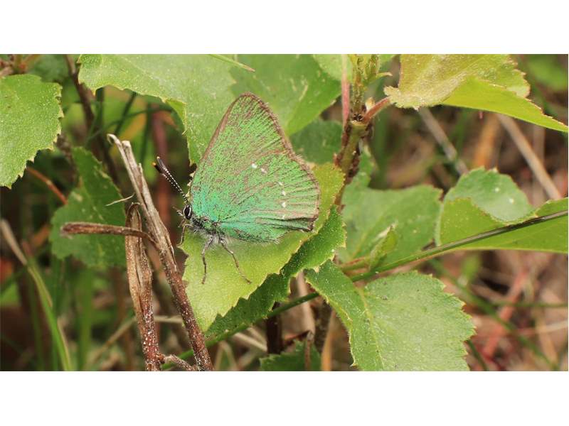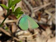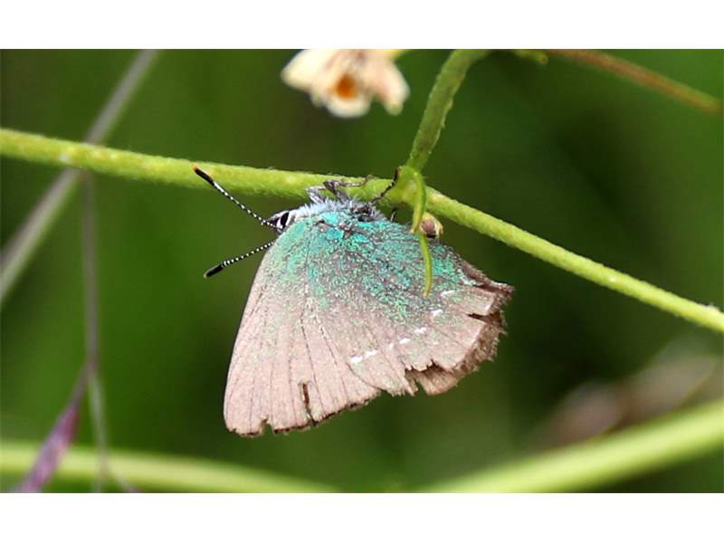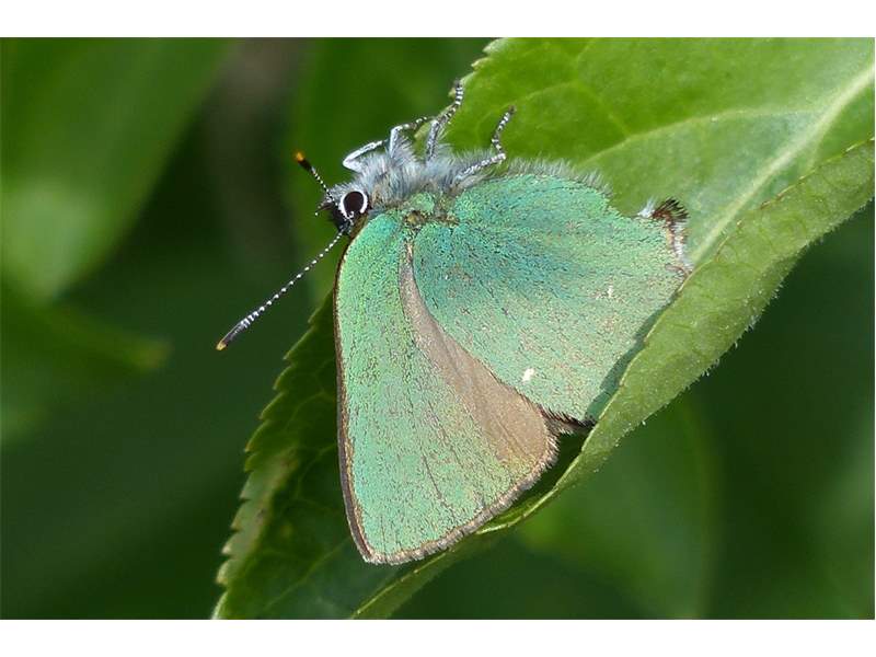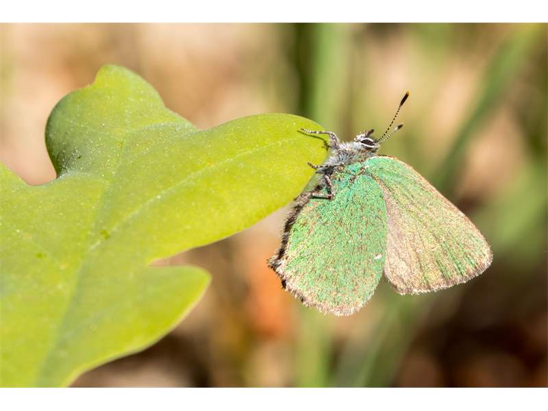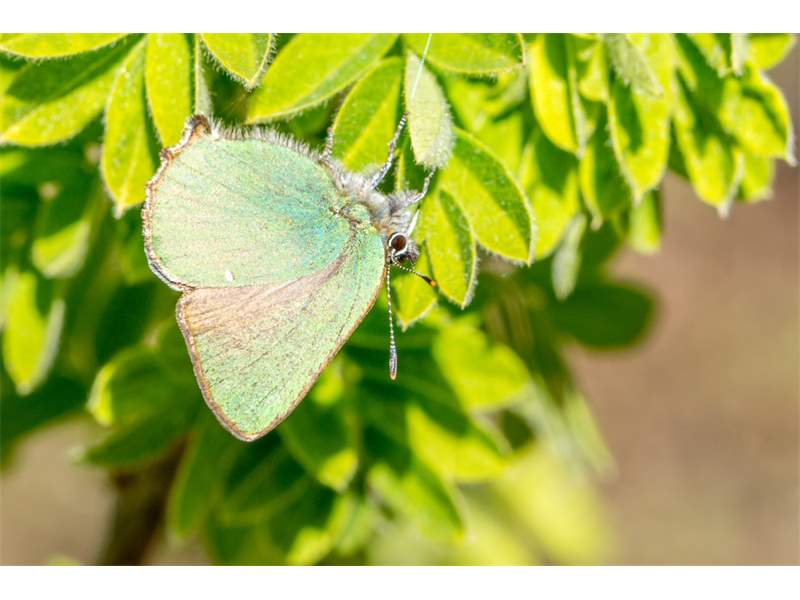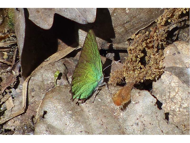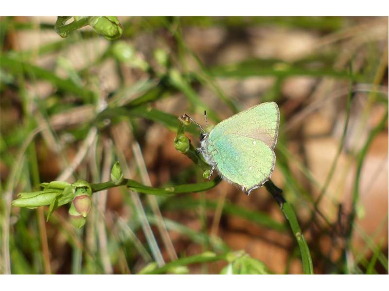 Grüner Zipfelfalter, im NSG Presseler Heide,- Wald,- und Moorgebiet, ca. 3 km nördl. von Wöllnau, am 17.05.2020 (© R. Papenfuß)( Bild vergrößern)