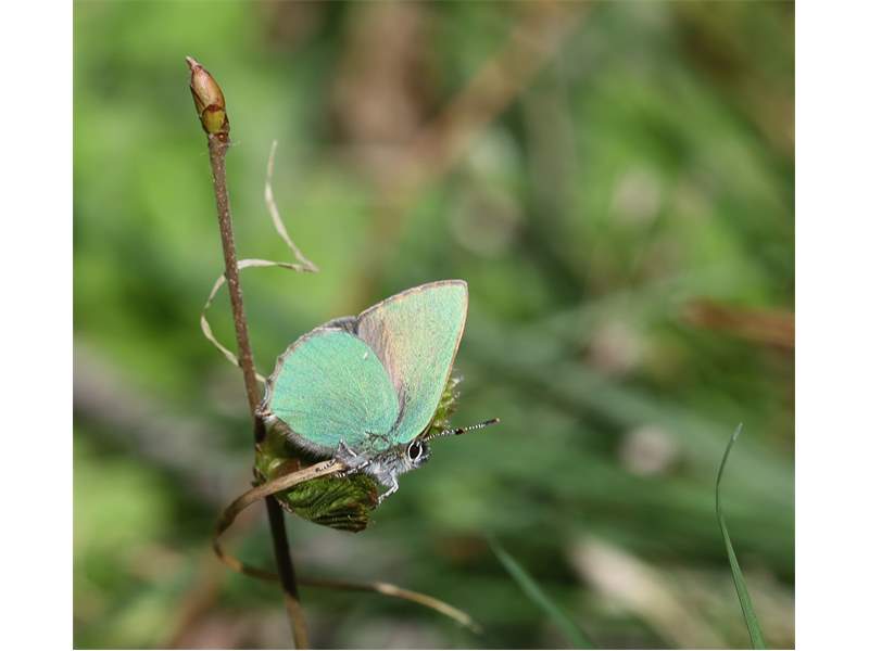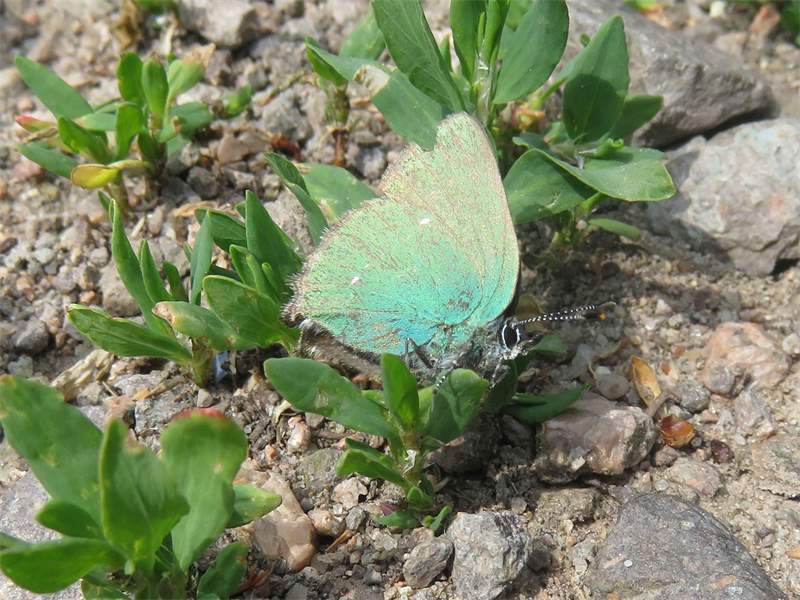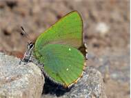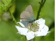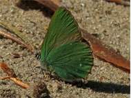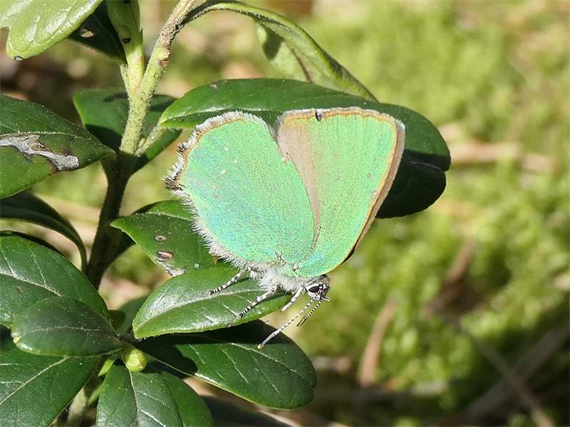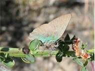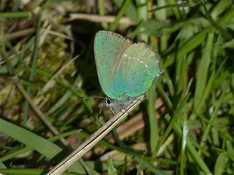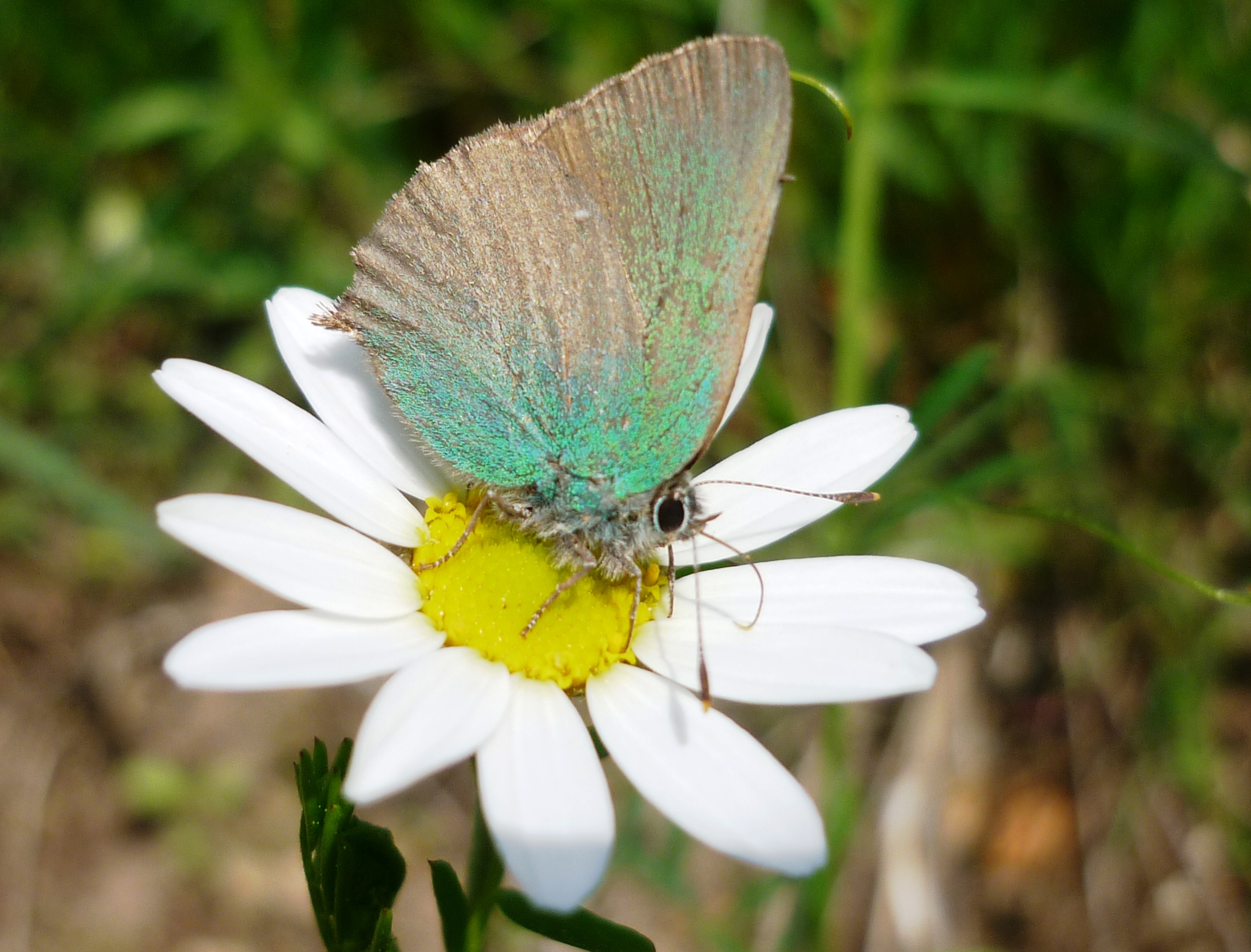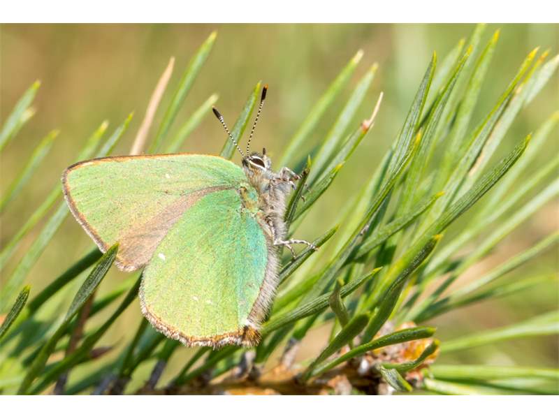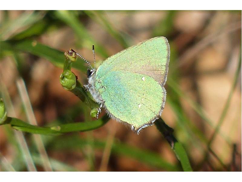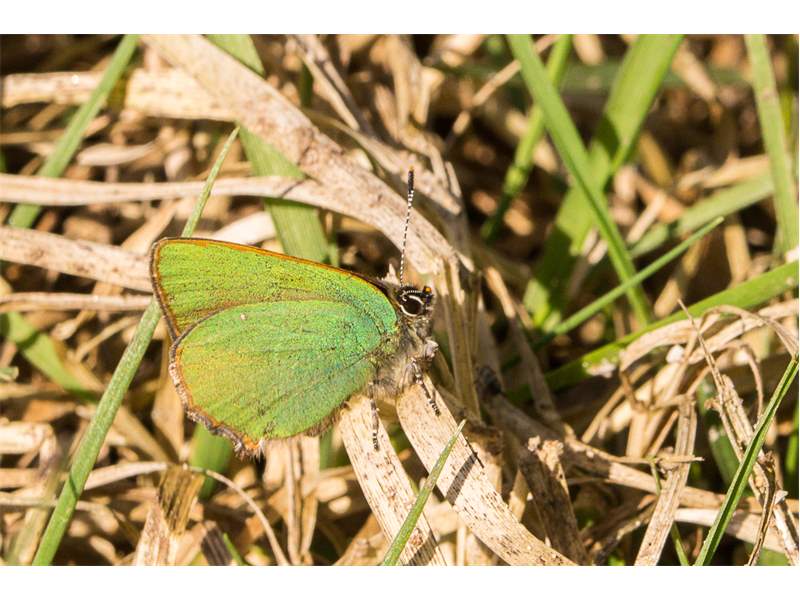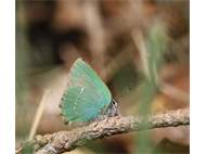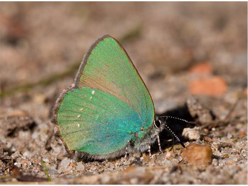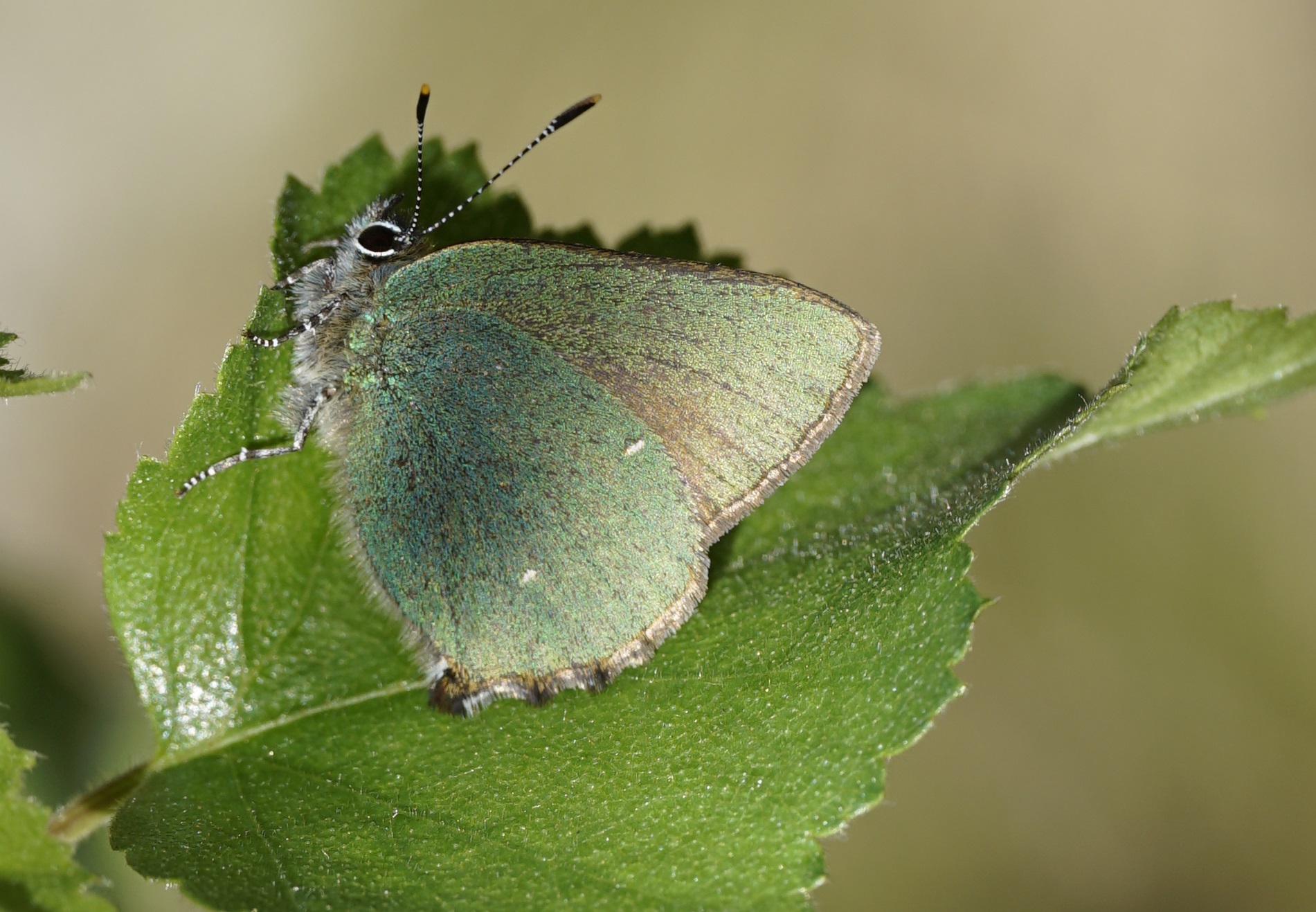 Grüner Zipfelfalter, im NSG Presseler Heide,- Wald,- und Moorgebiet, ca. 3 km nördl. von Wöllnau, am 17.05.2020 (© R. Papenfuß)( Bild vergrößern)