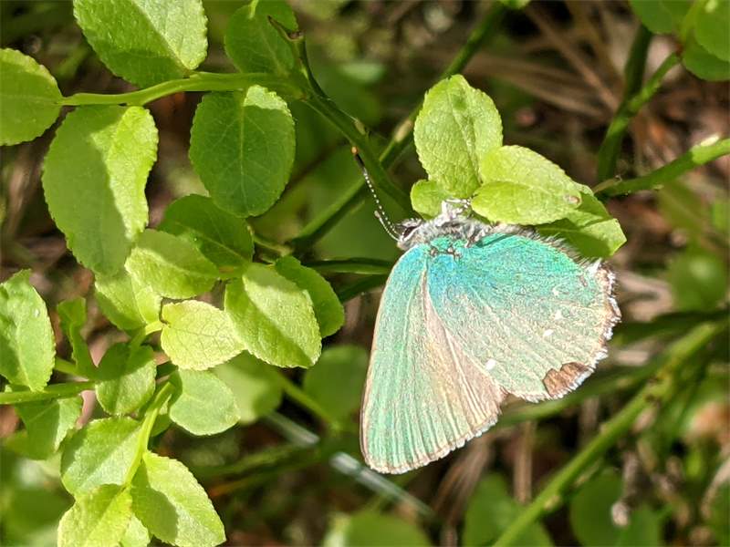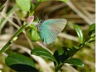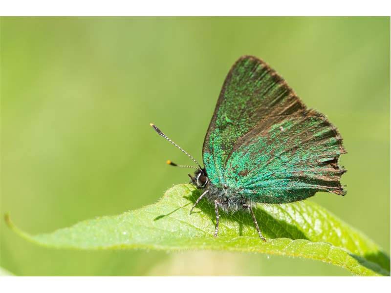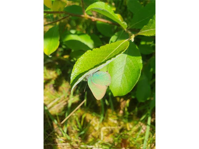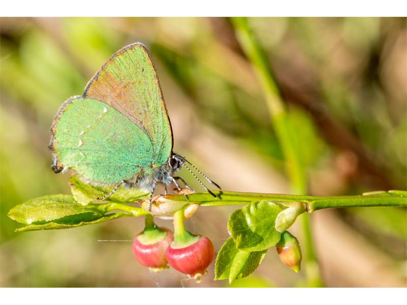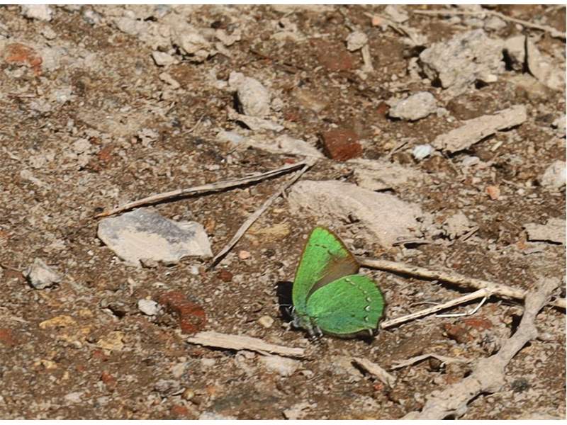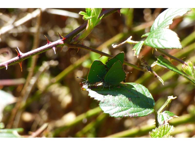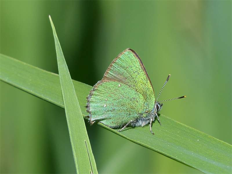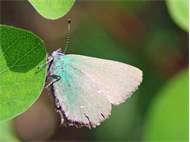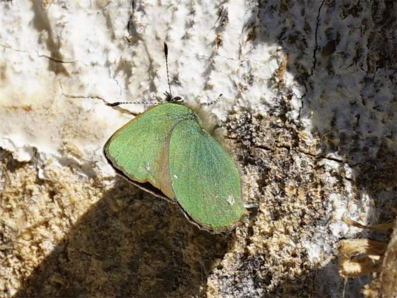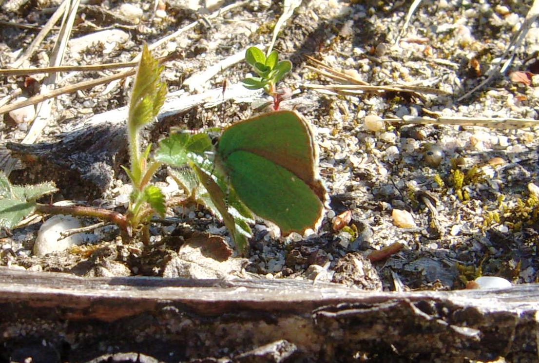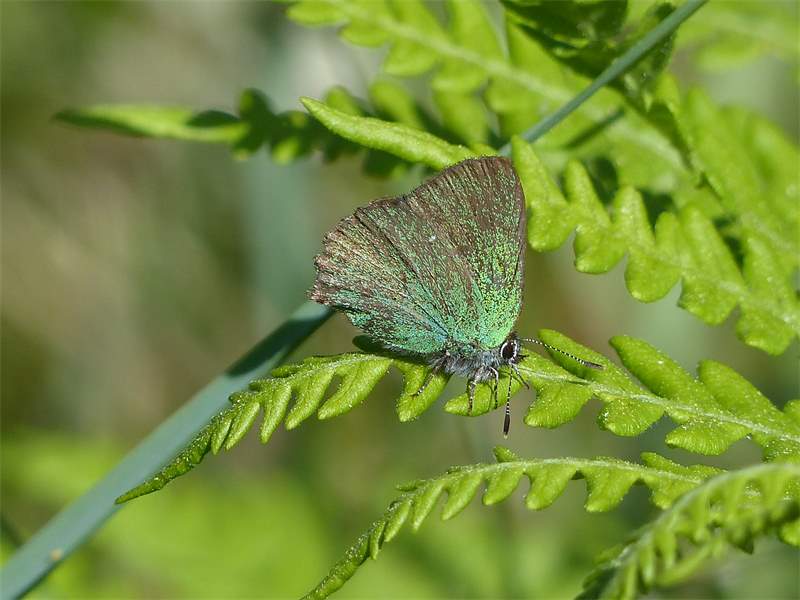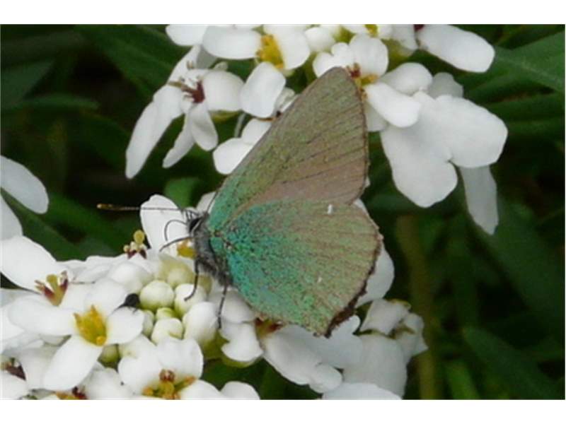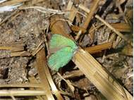 Grüner Zipfelfalter, im NSG Presseler Heide,- Wald,- und Moorgebiet, ca. 3 km nördl. von Wöllnau, am 17.05.2020 (© R. Papenfuß)( Bild vergrößern)