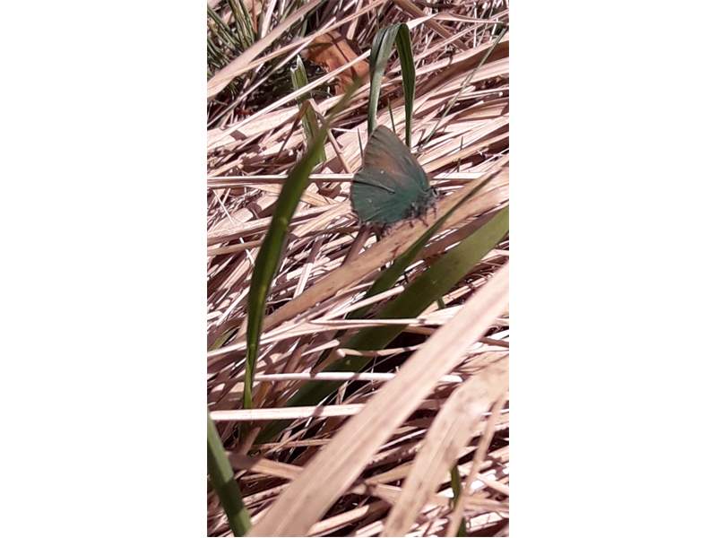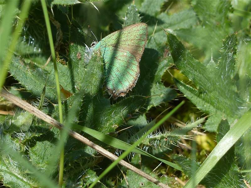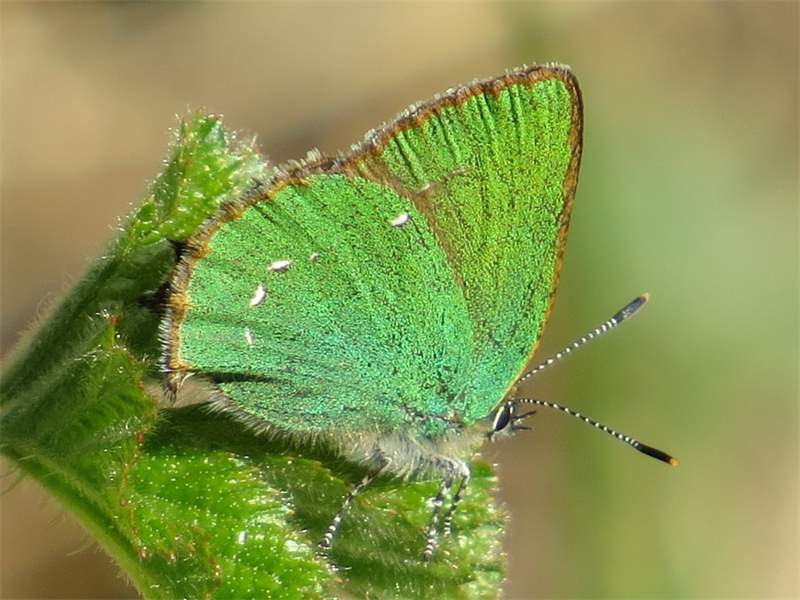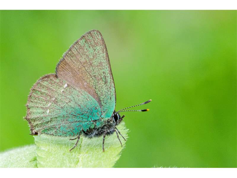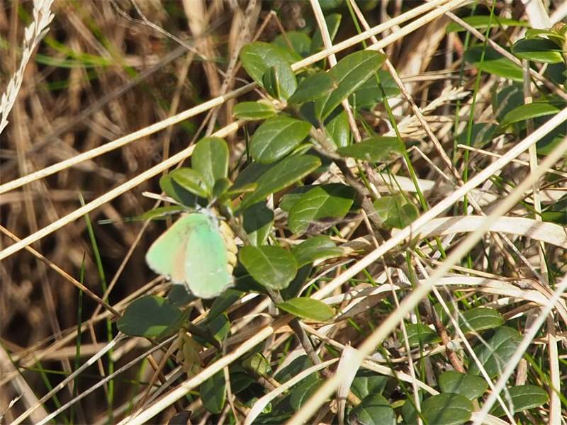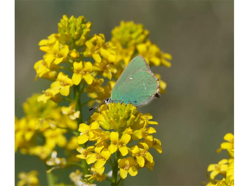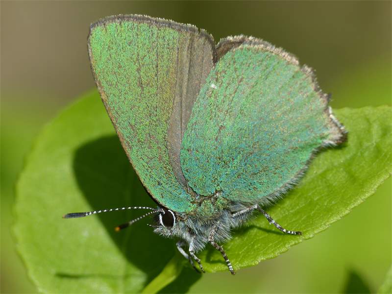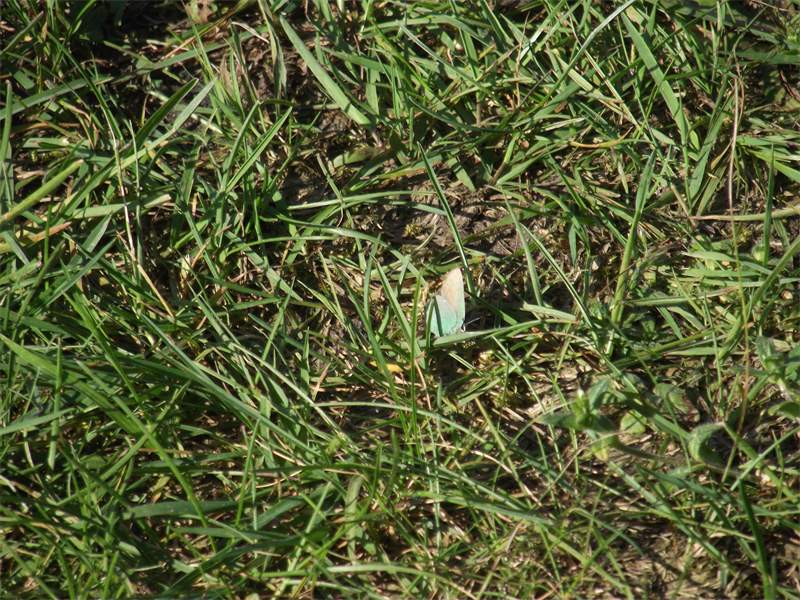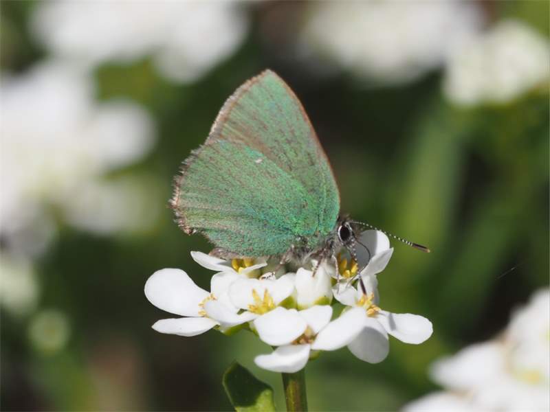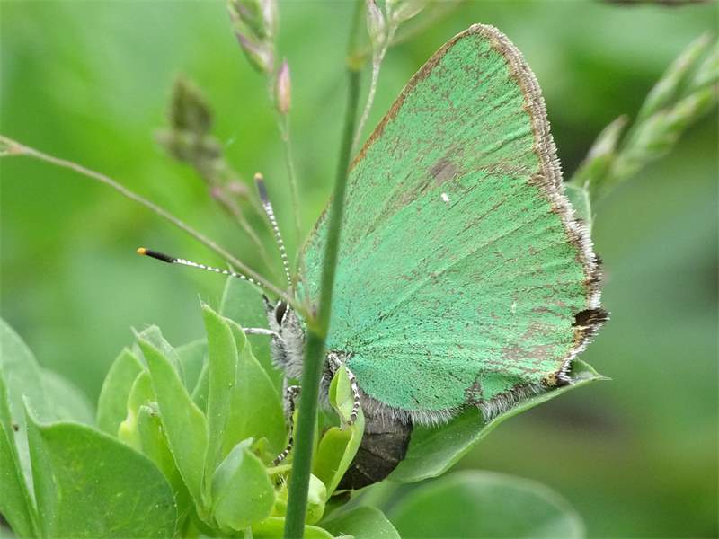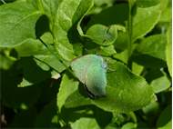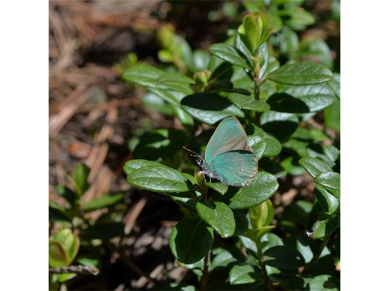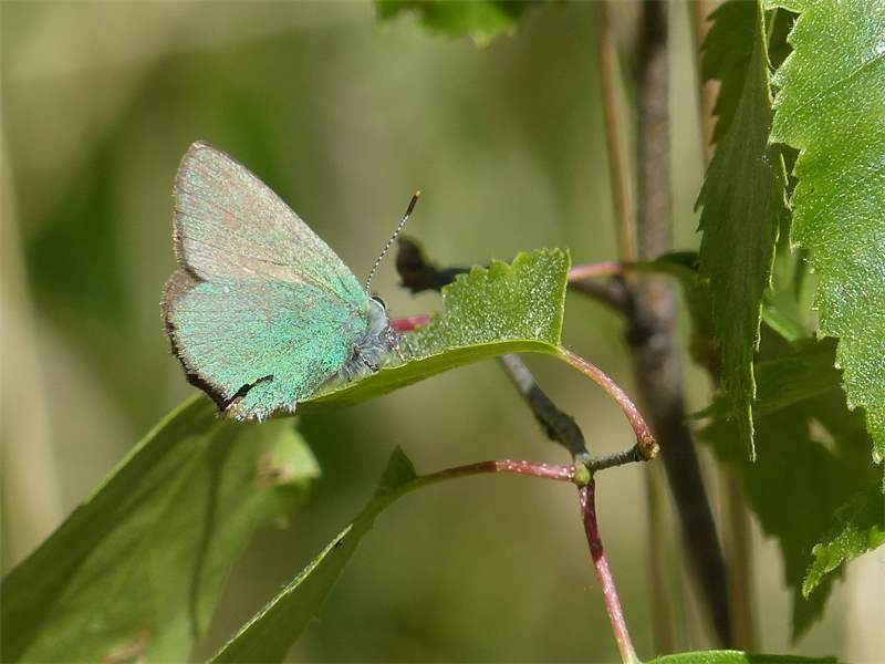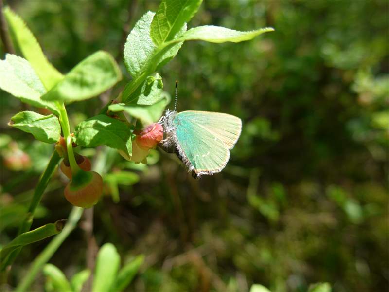 Grüner Zipfelfalter, im NSG Presseler Heide,- Wald,- und Moorgebiet, ca. 3 km nördl. von Wöllnau, am 17.05.2020 (© R. Papenfuß)( Bild vergrößern)