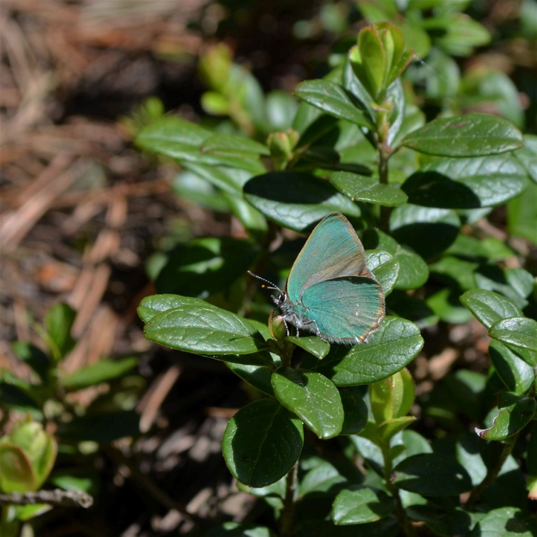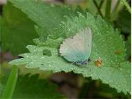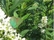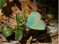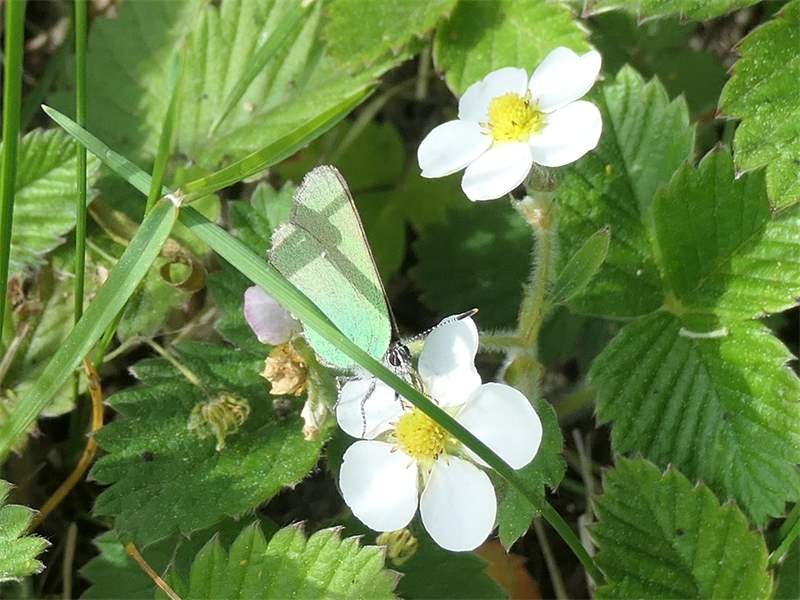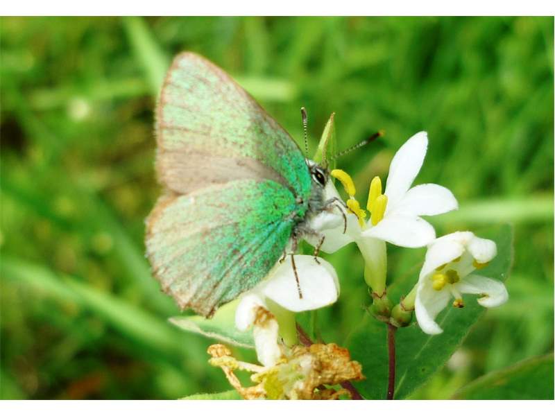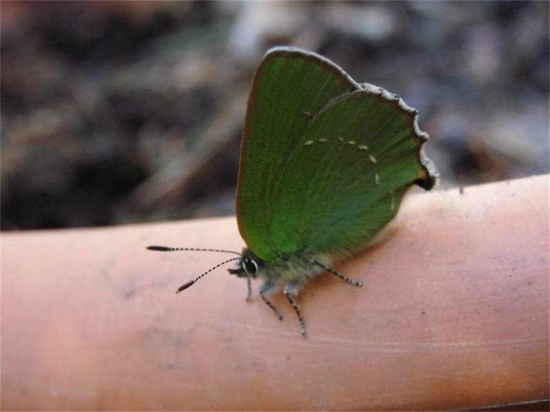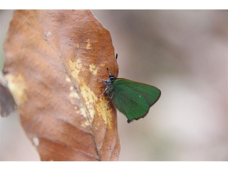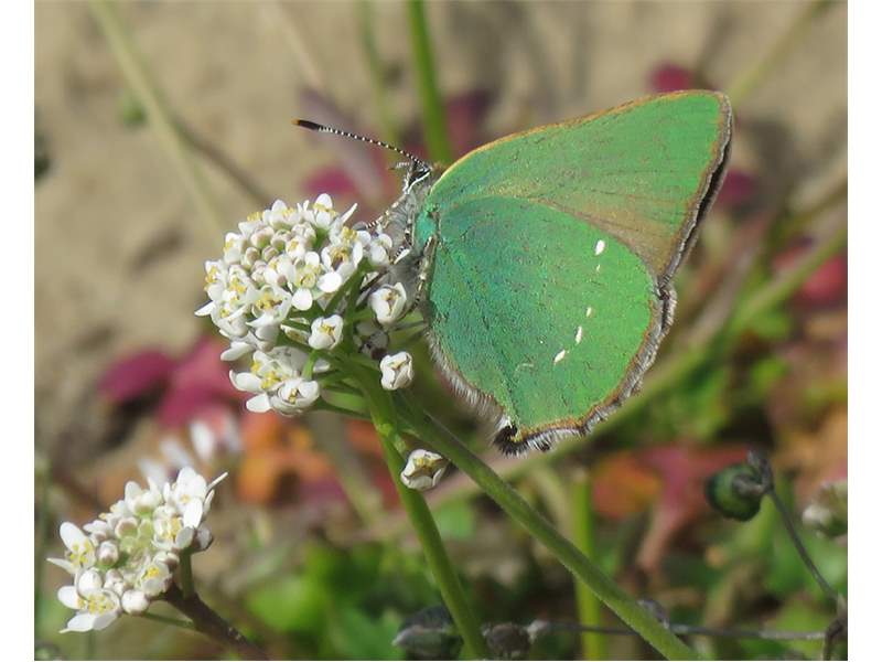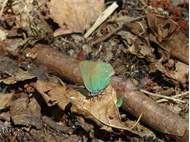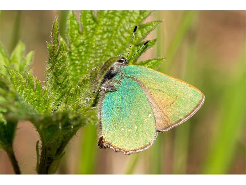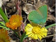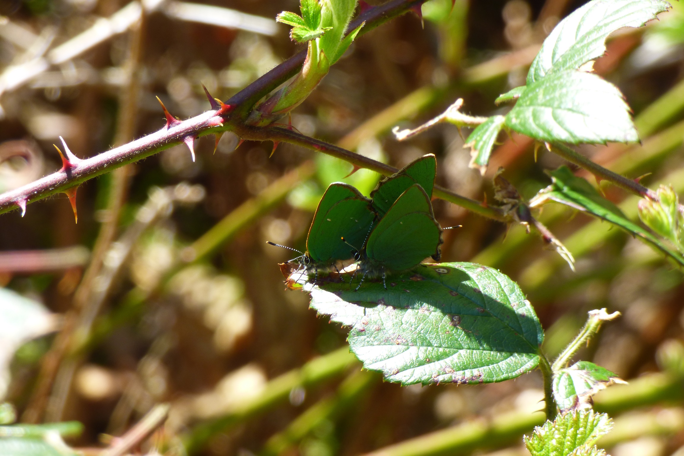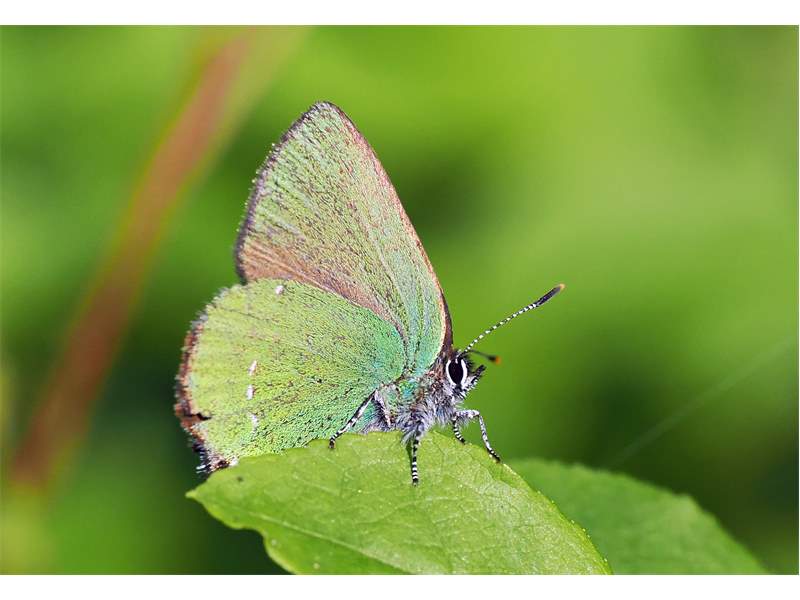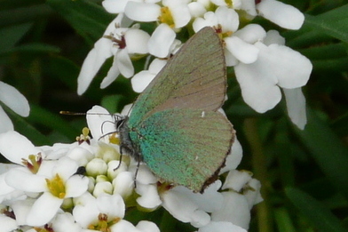 Grüner Zipfelfalter, im NSG Presseler Heide,- Wald,- und Moorgebiet, ca. 3 km nördl. von Wöllnau, am 17.05.2020 (© R. Papenfuß)( Bild vergrößern)