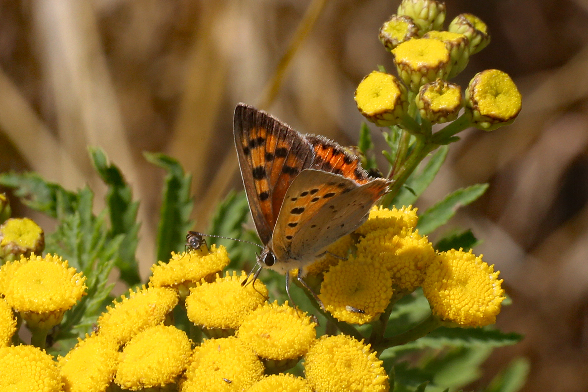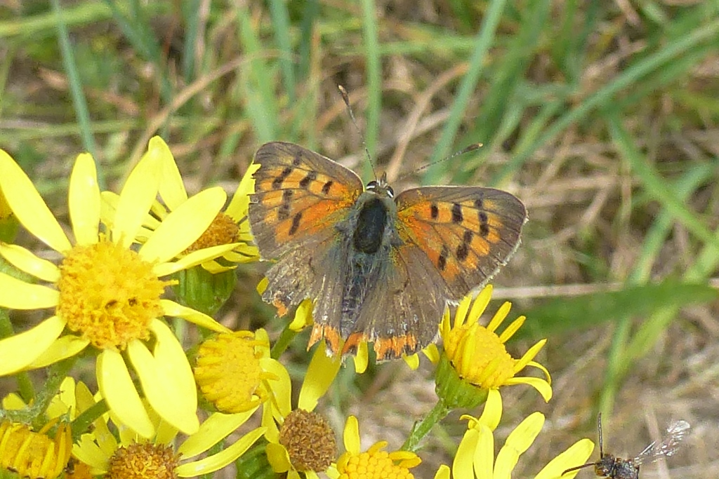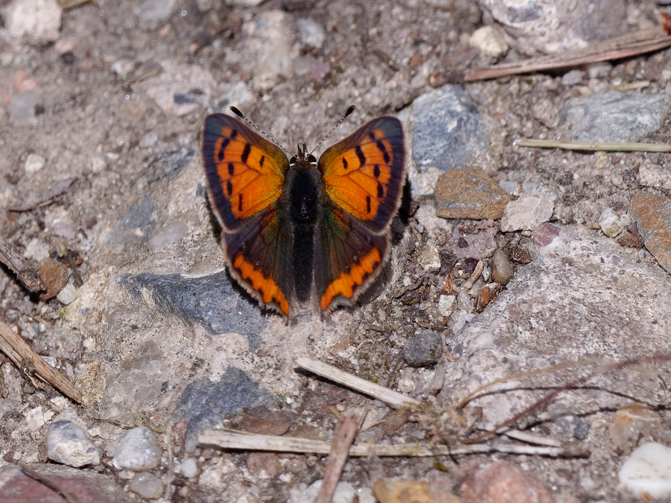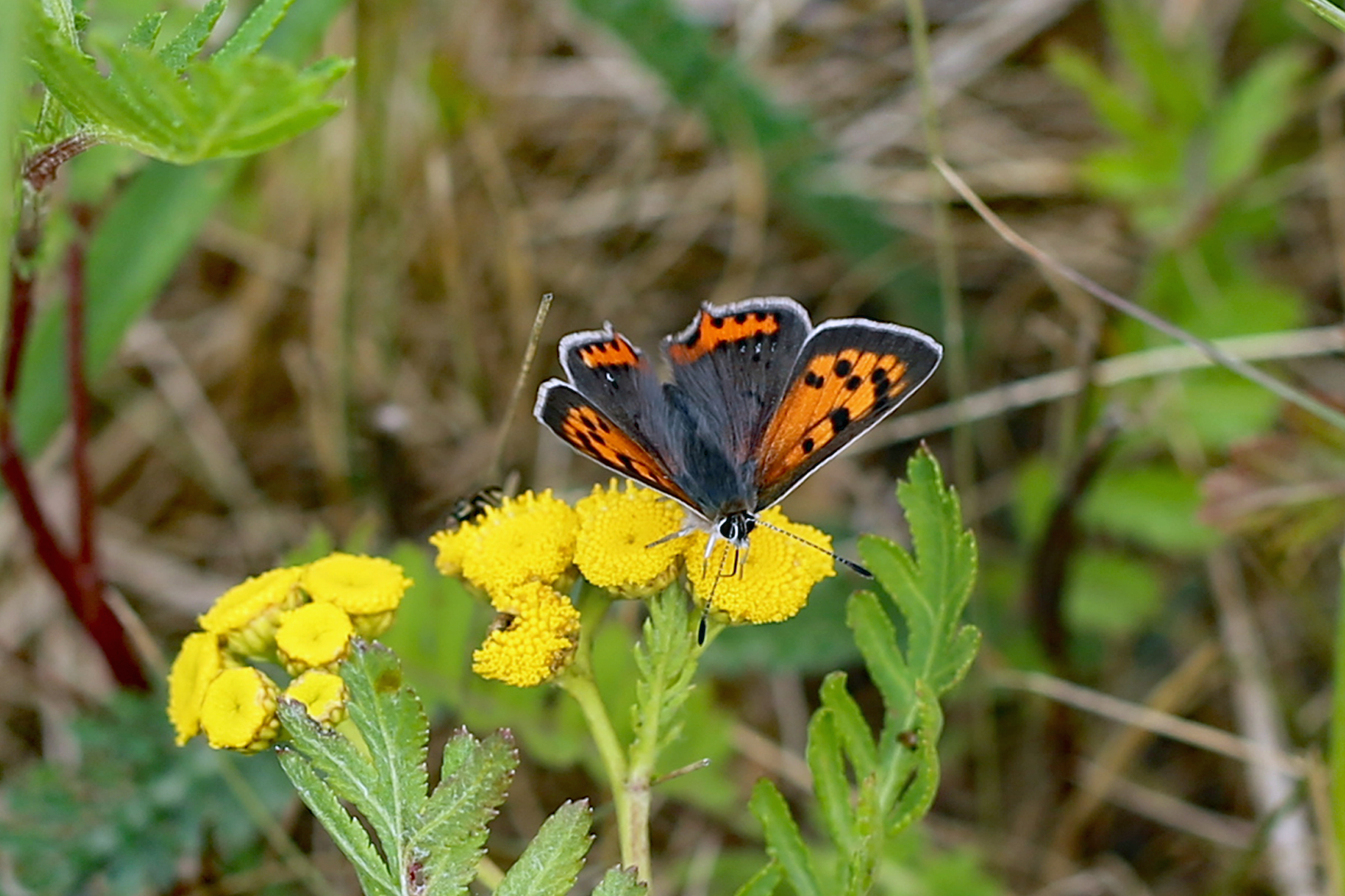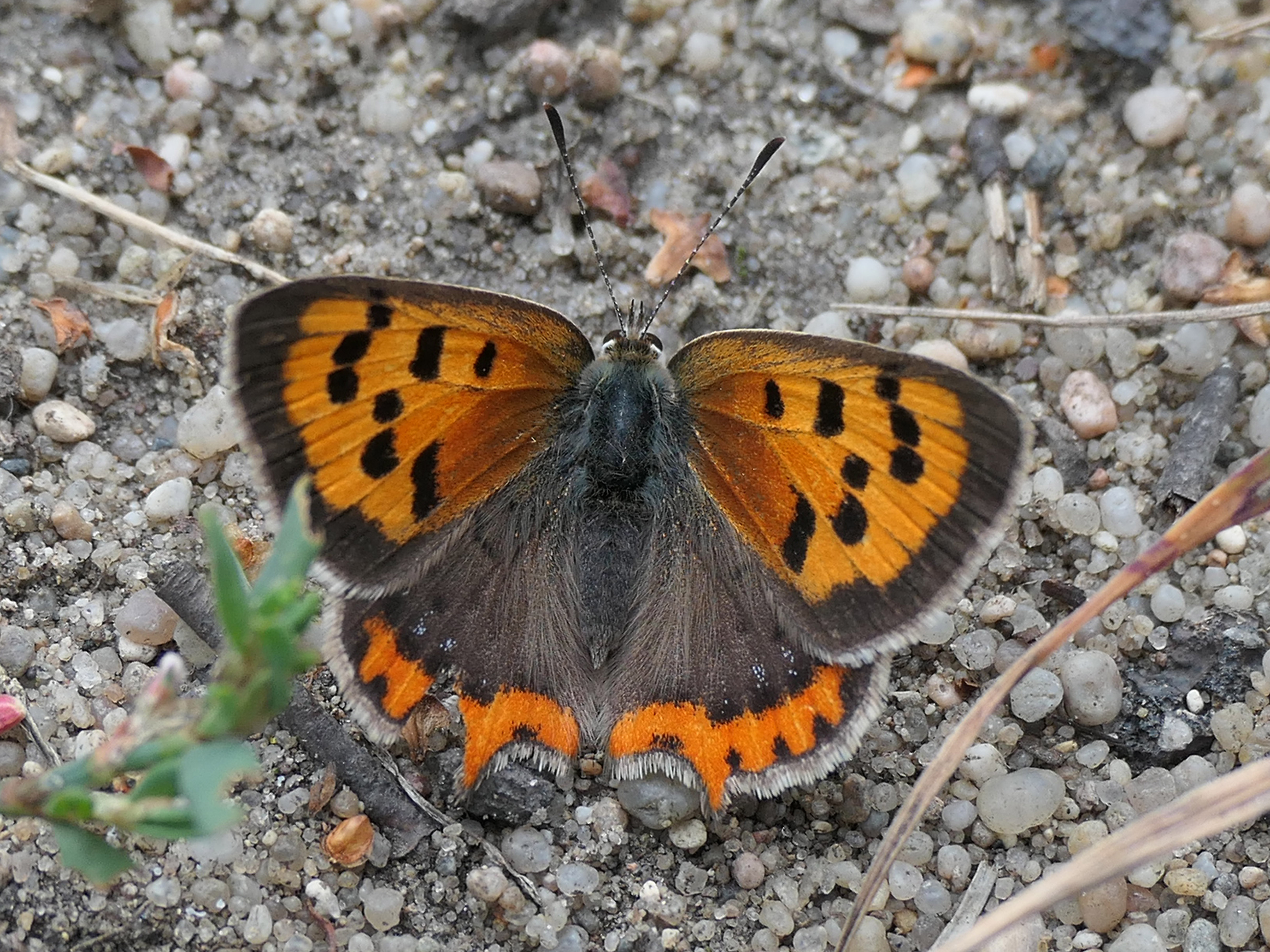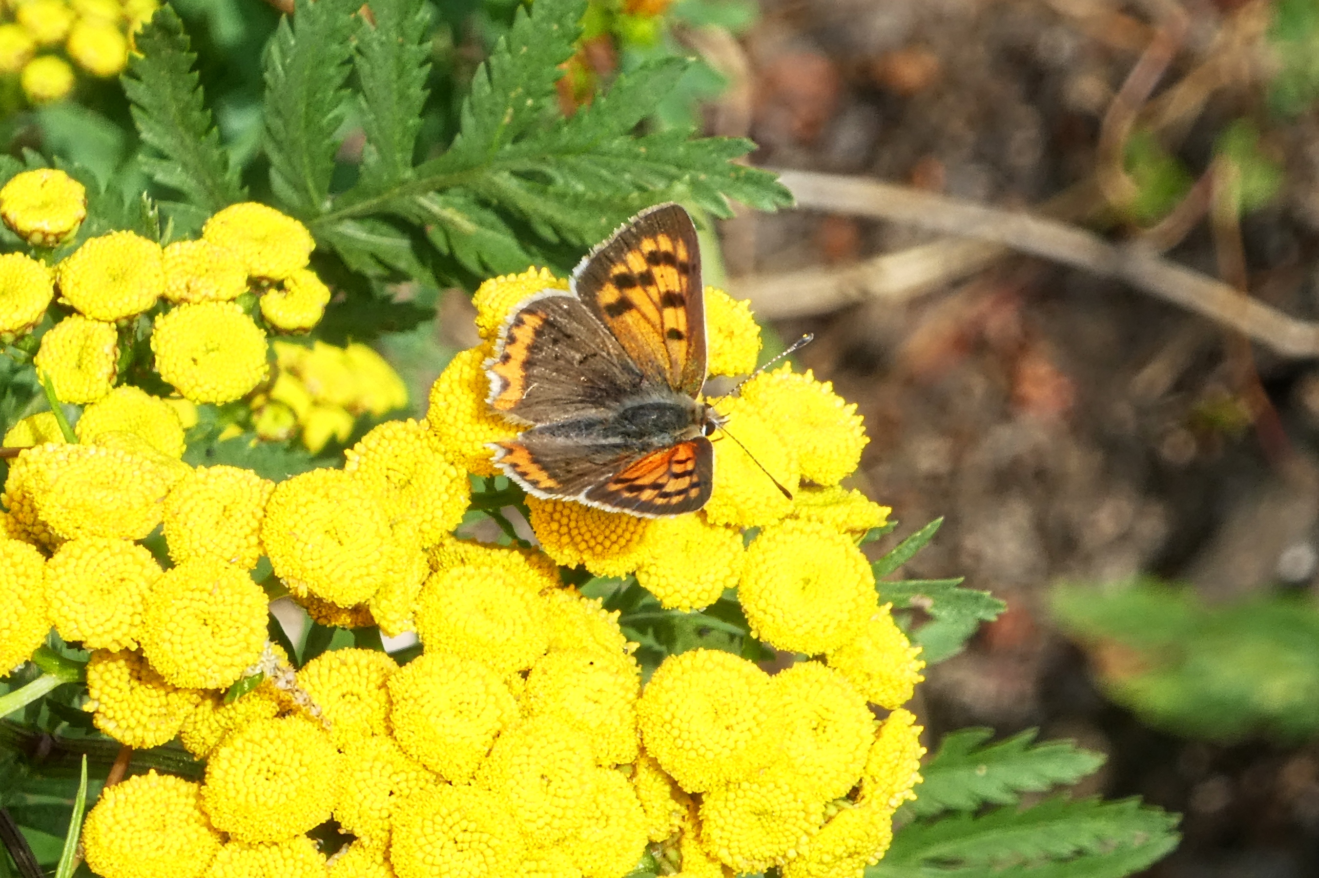 Kleiner Feuerfalter (Lycaena phlaeas (Linnaeus, 1761)), Laue, Rekultivierungsbereich der Tagebaulandschaft Goitzsche östlich vom Seelhausener See, nahe Leipzig, 16. Juni 2019