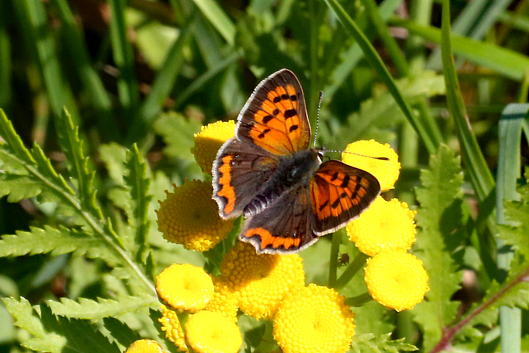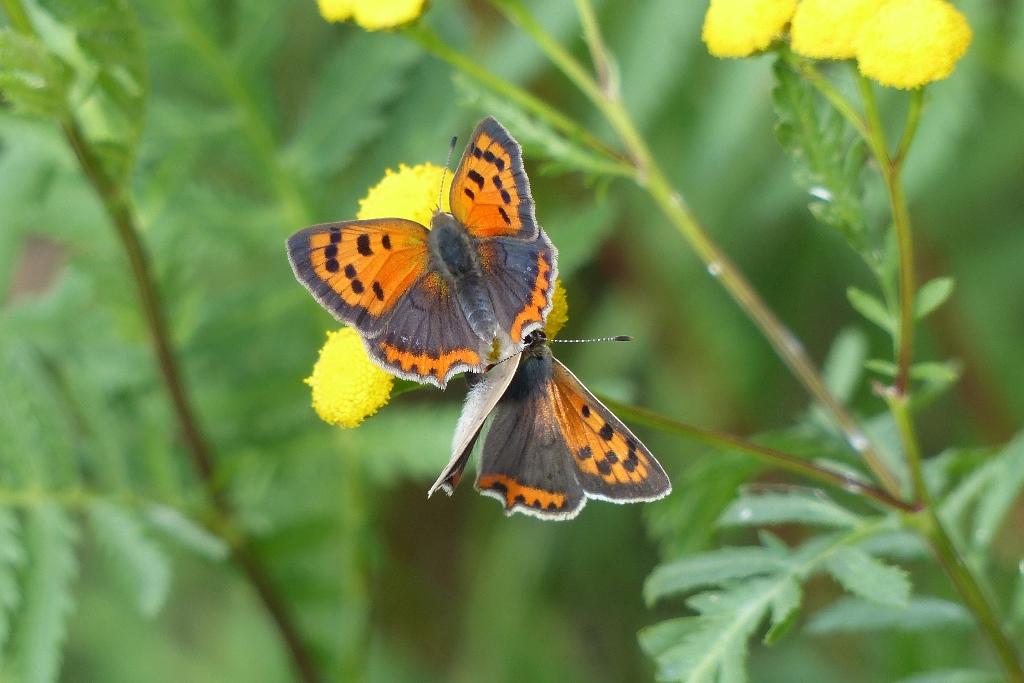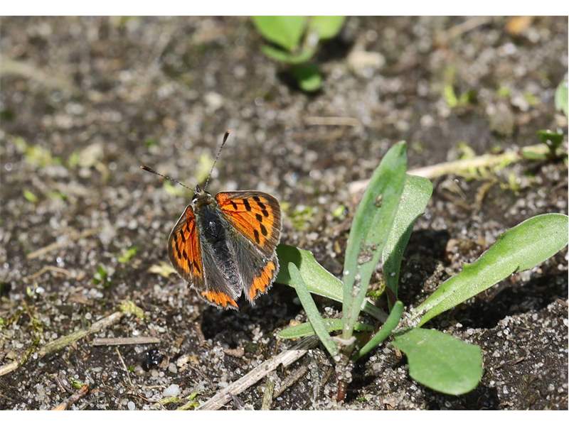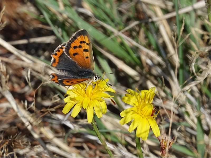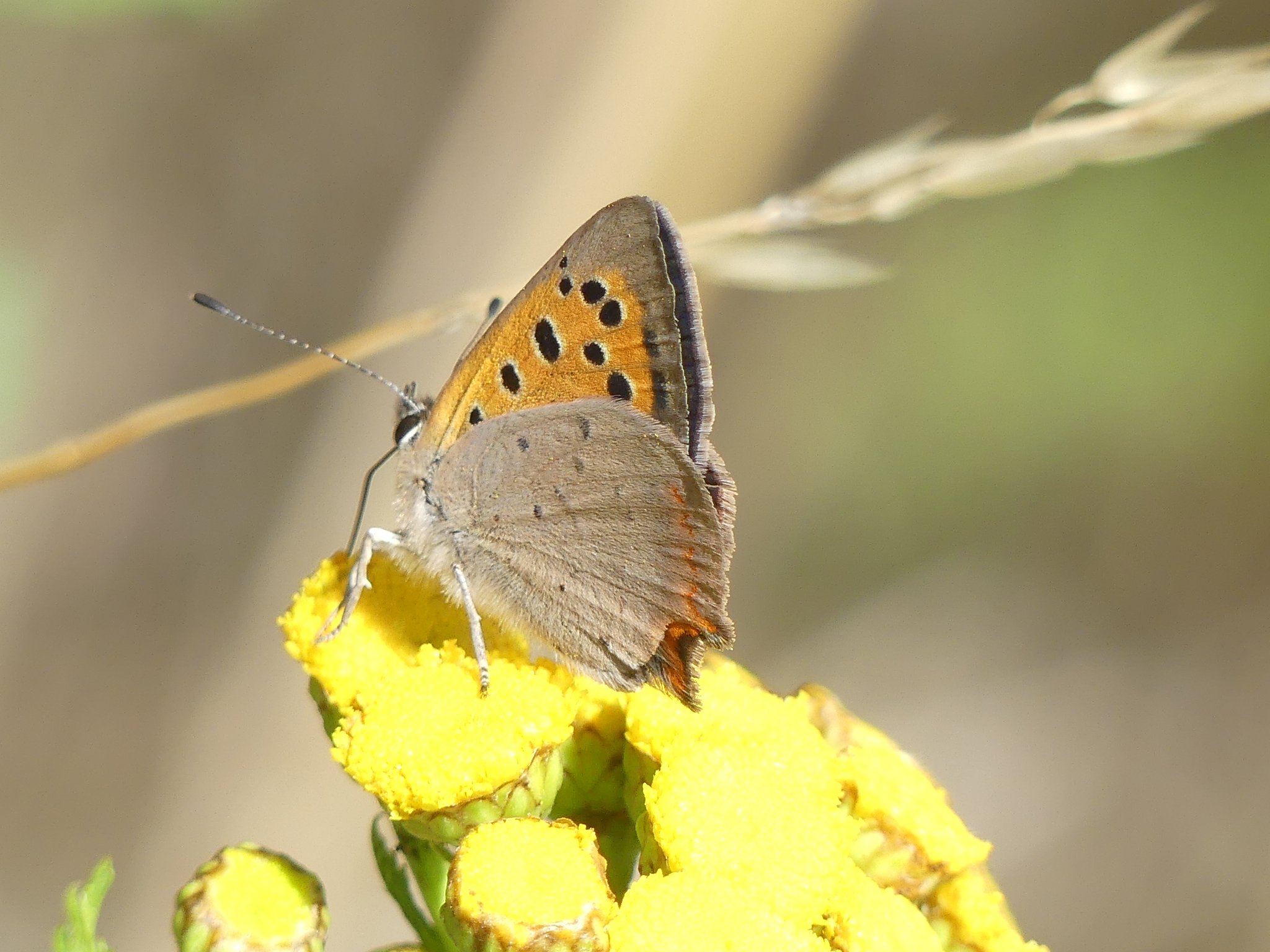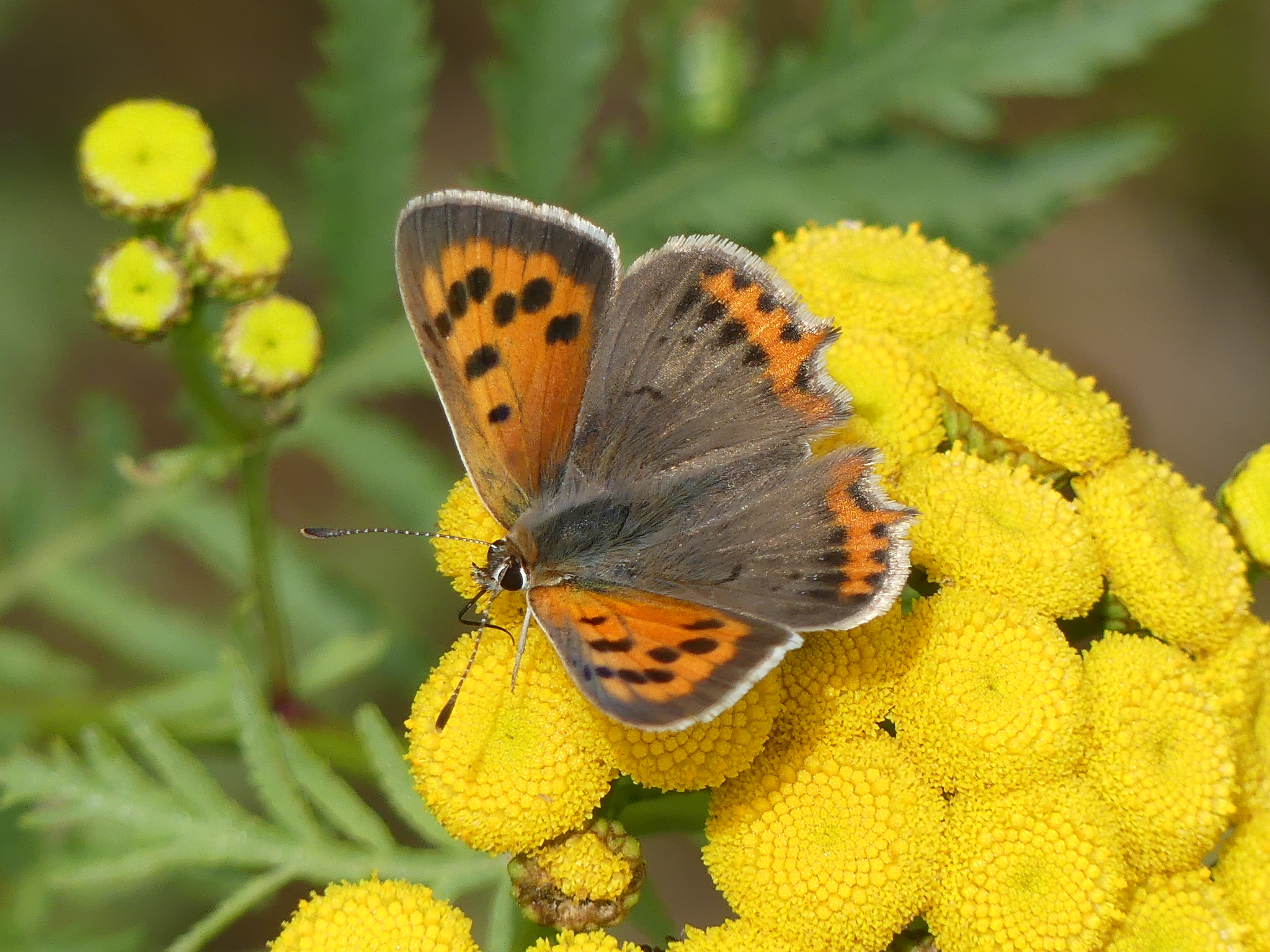 Kleiner Feuerfalter (Lycaena phlaeas (Linnaeus, 1761)), Laue, Rekultivierungsbereich der Tagebaulandschaft Goitzsche östlich vom Seelhausener See, nahe Leipzig, 16. Juni 2019
