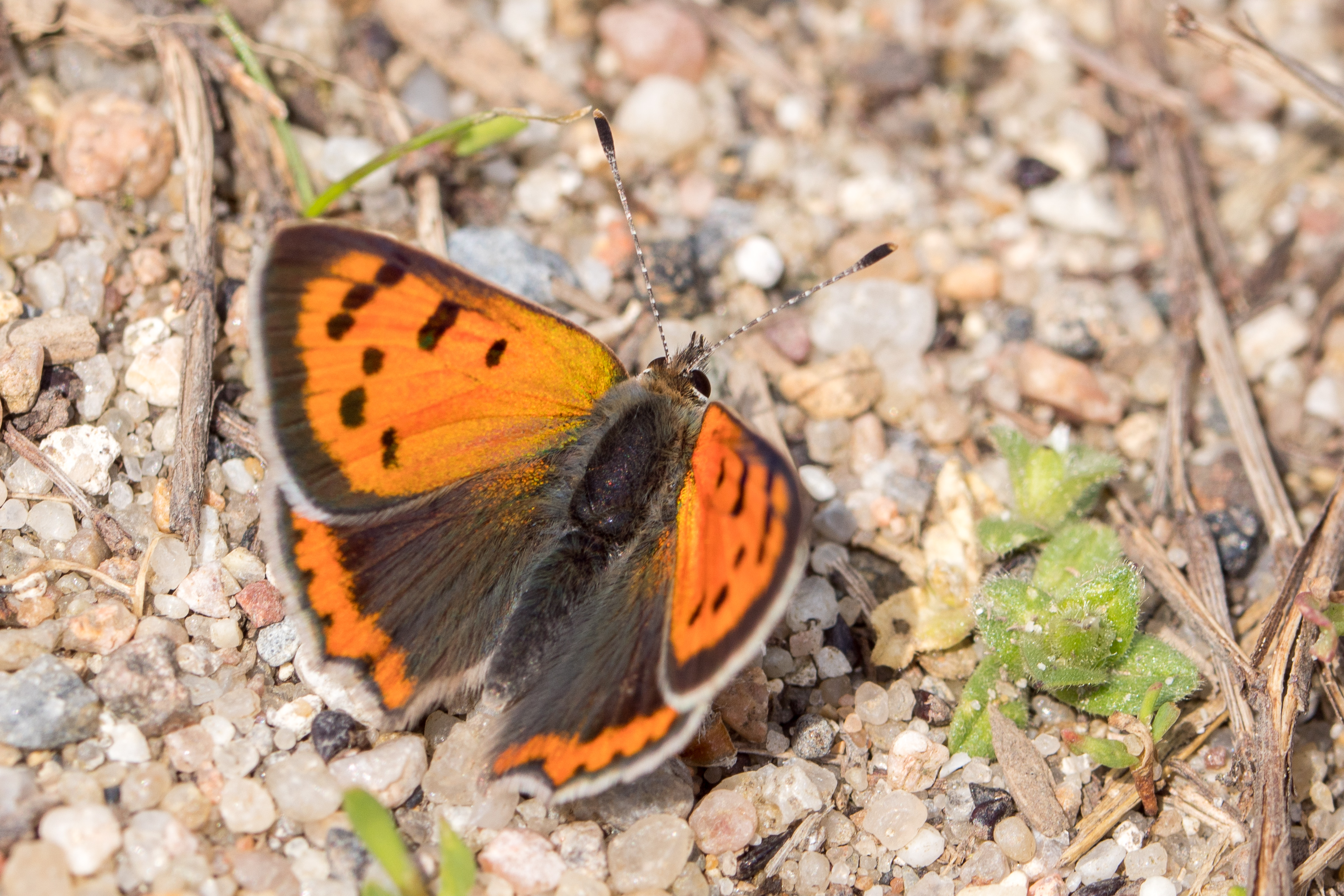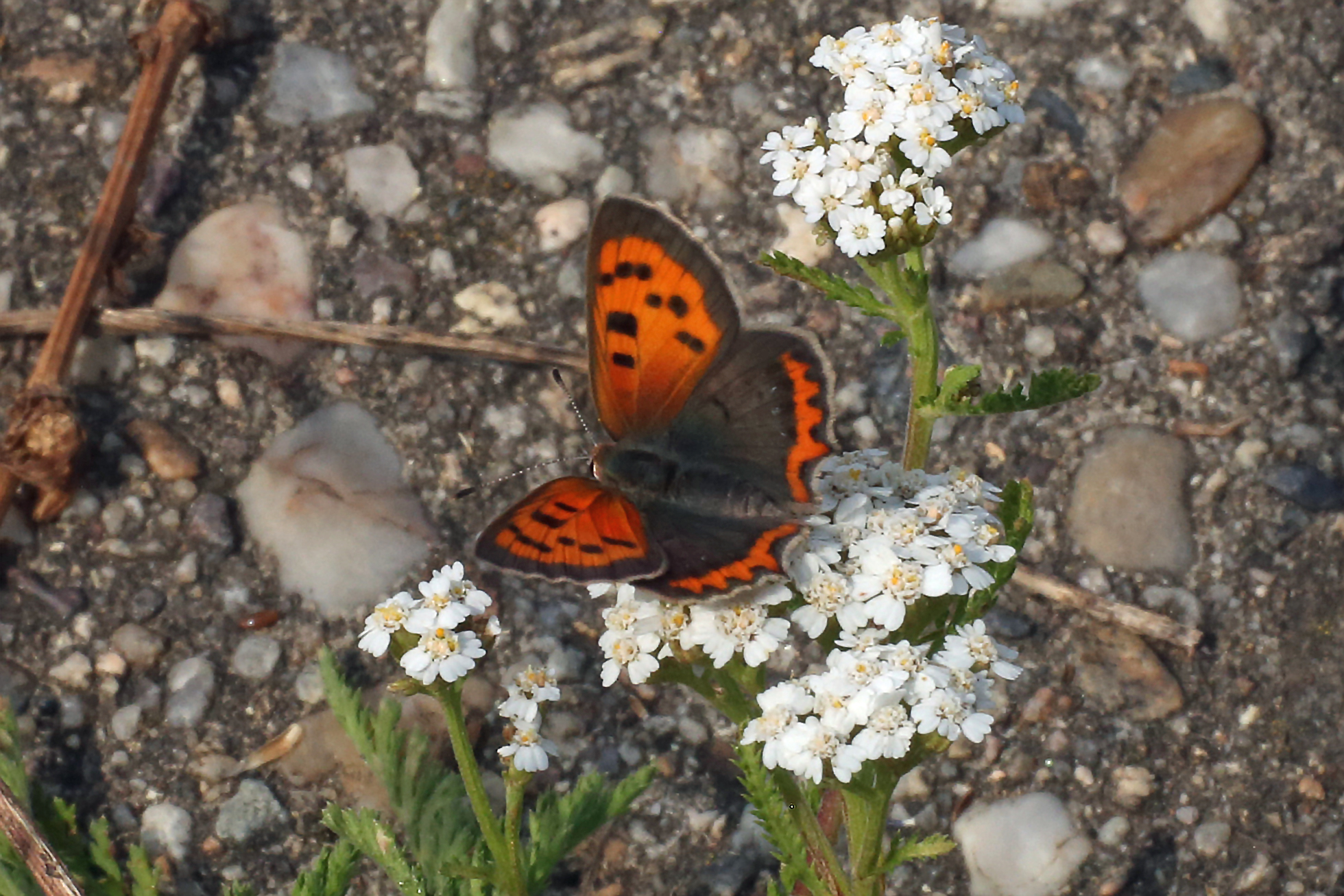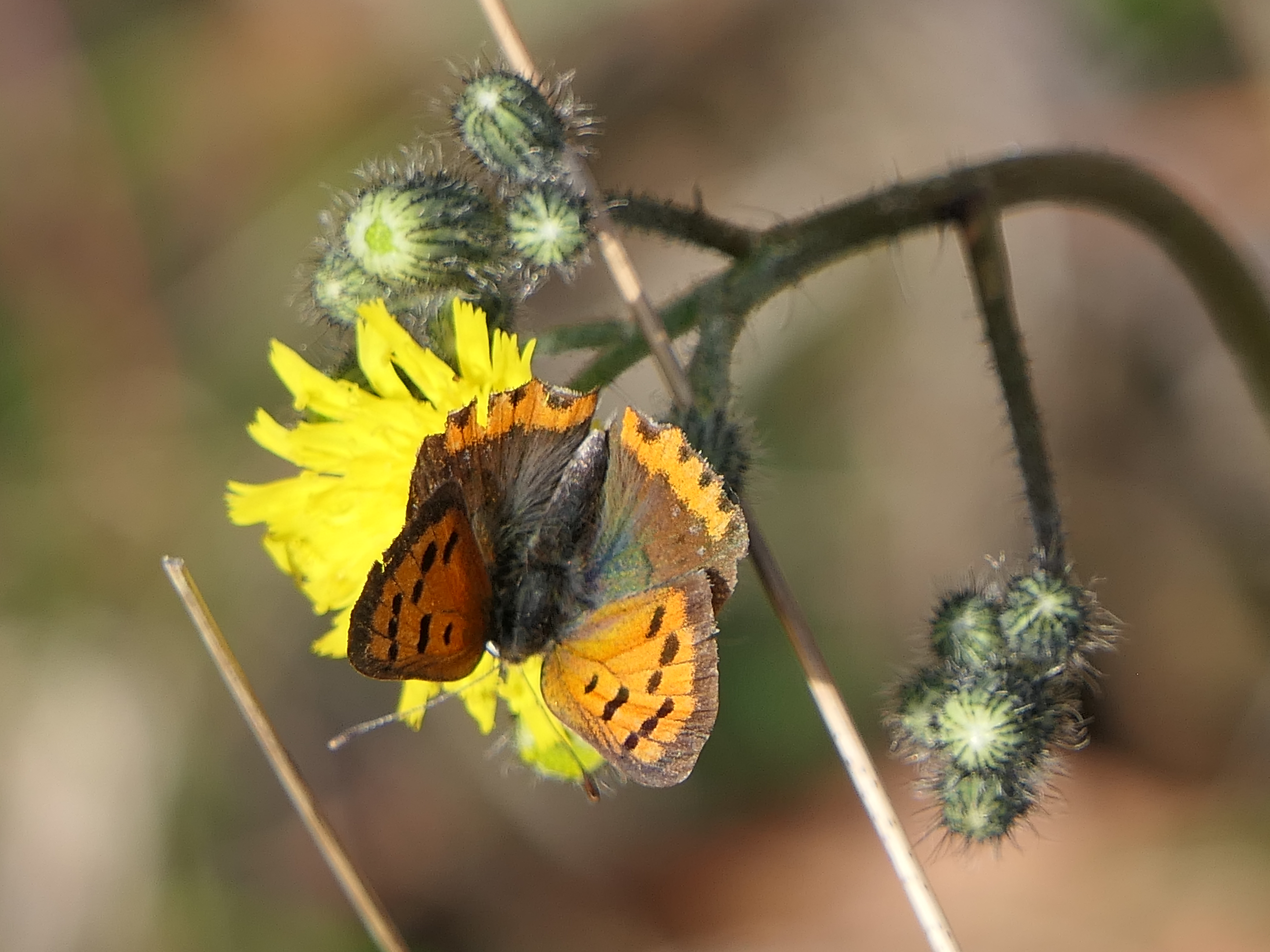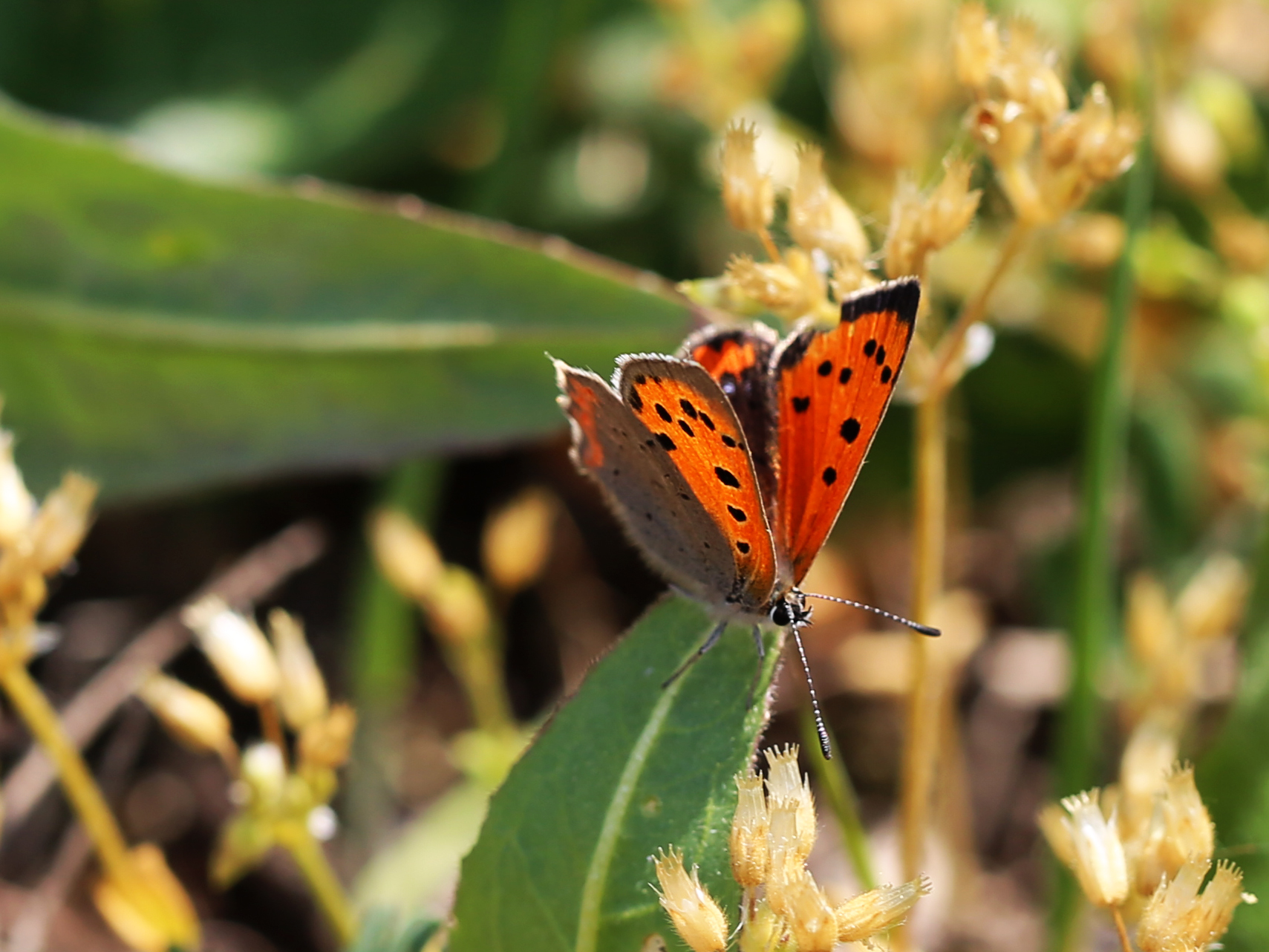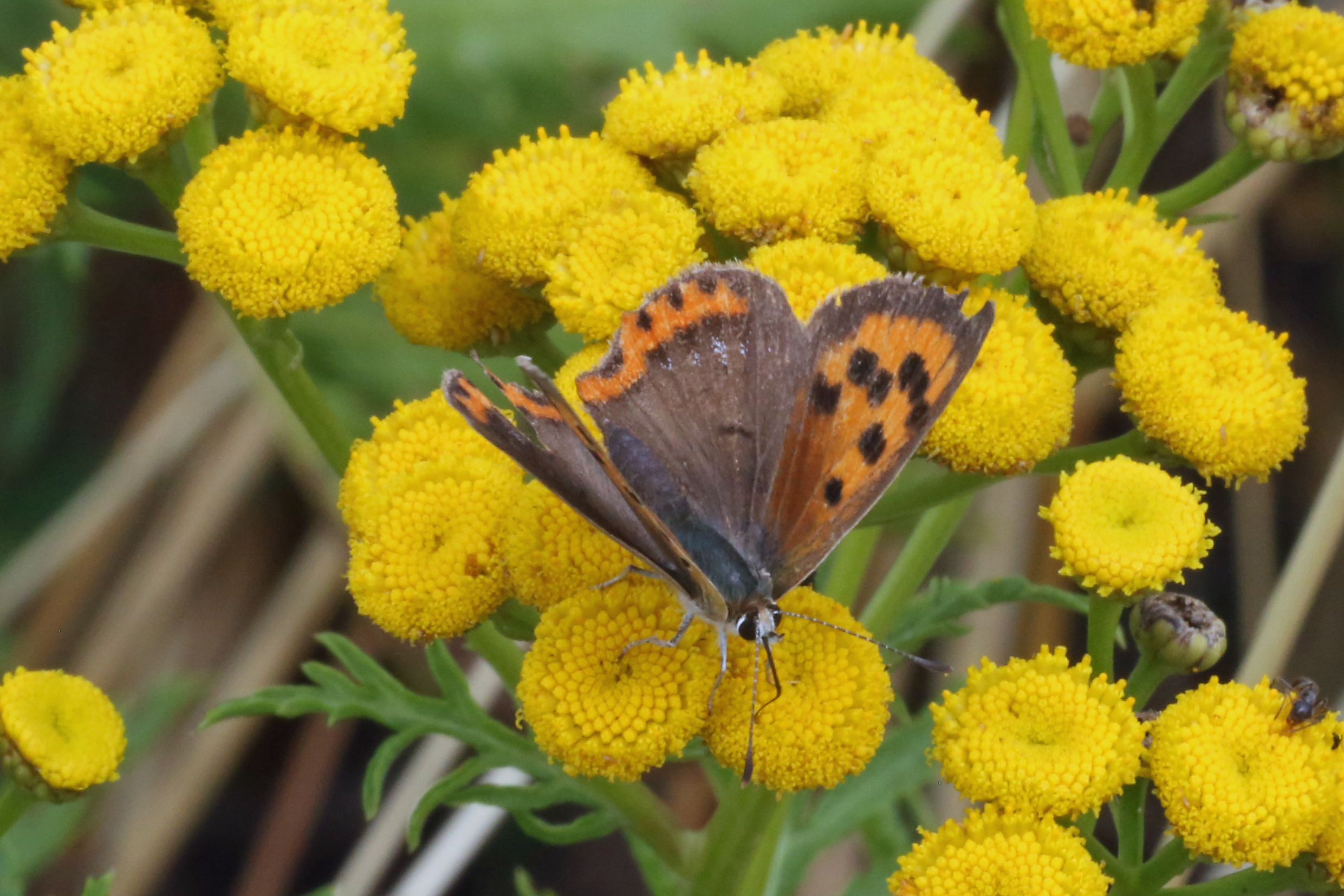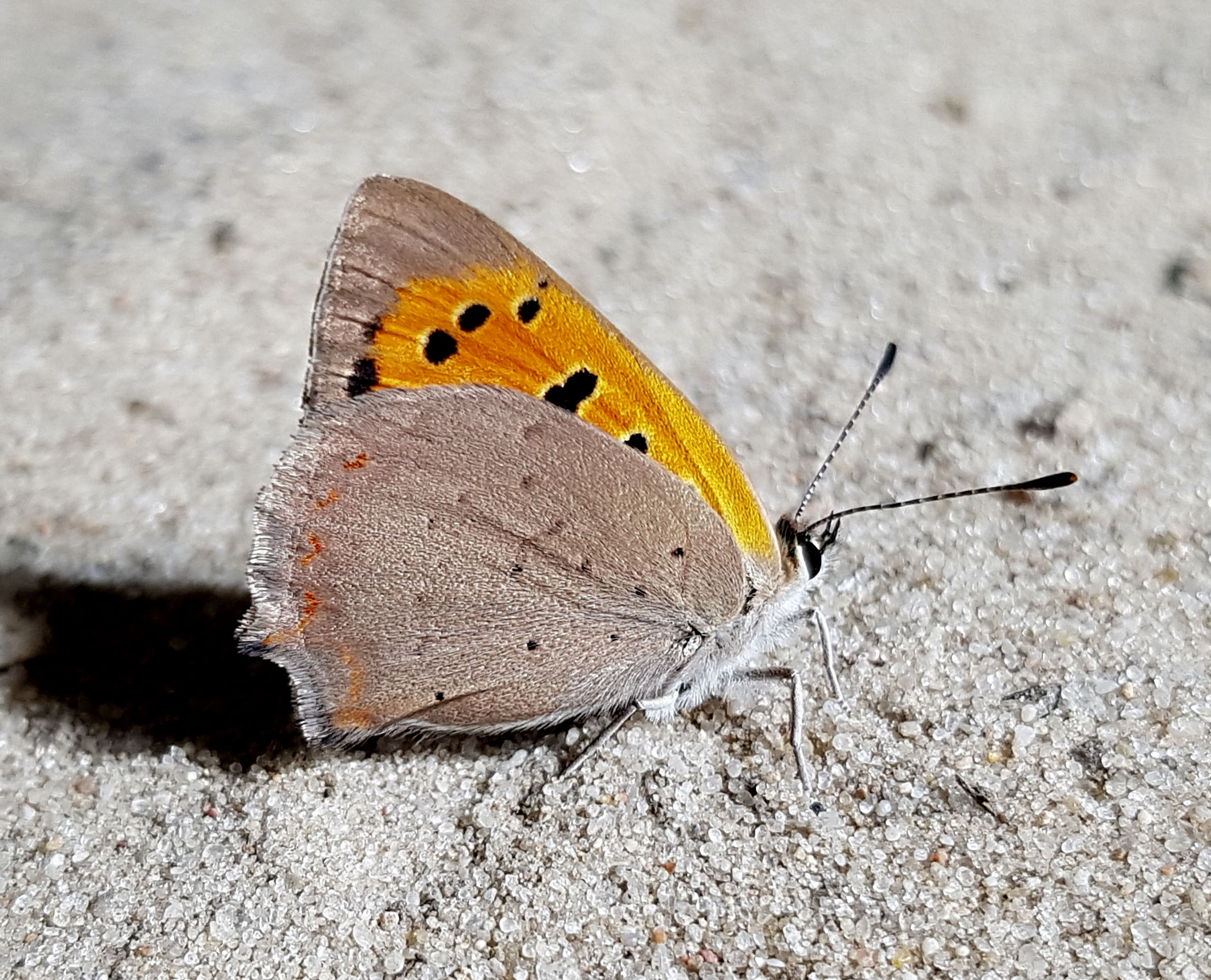 Kleiner Feuerfalter (Lycaena phlaeas (Linnaeus, 1761)), Laue, Rekultivierungsbereich der Tagebaulandschaft Goitzsche östlich vom Seelhausener See, nahe Leipzig, 16. Juni 2019