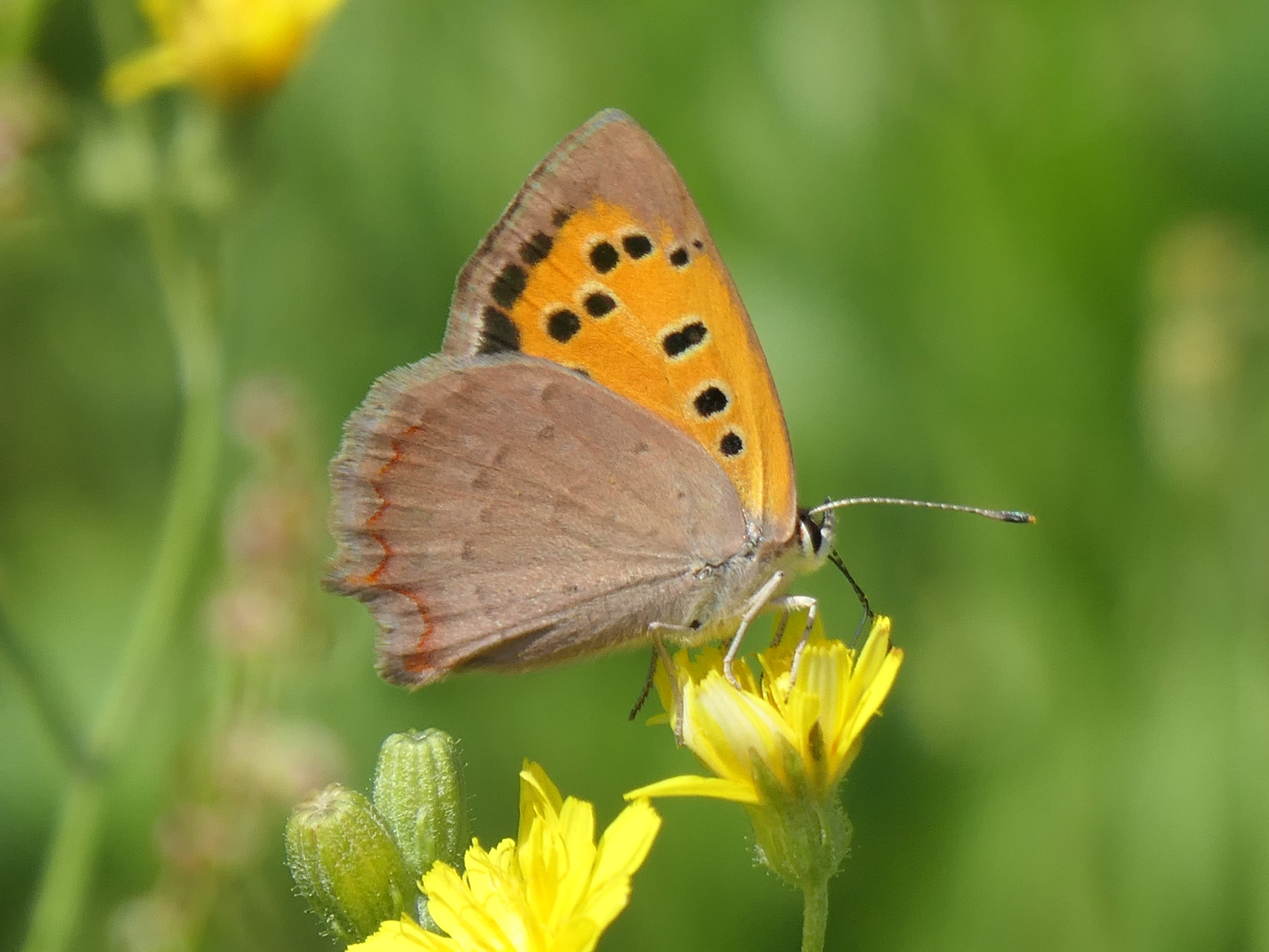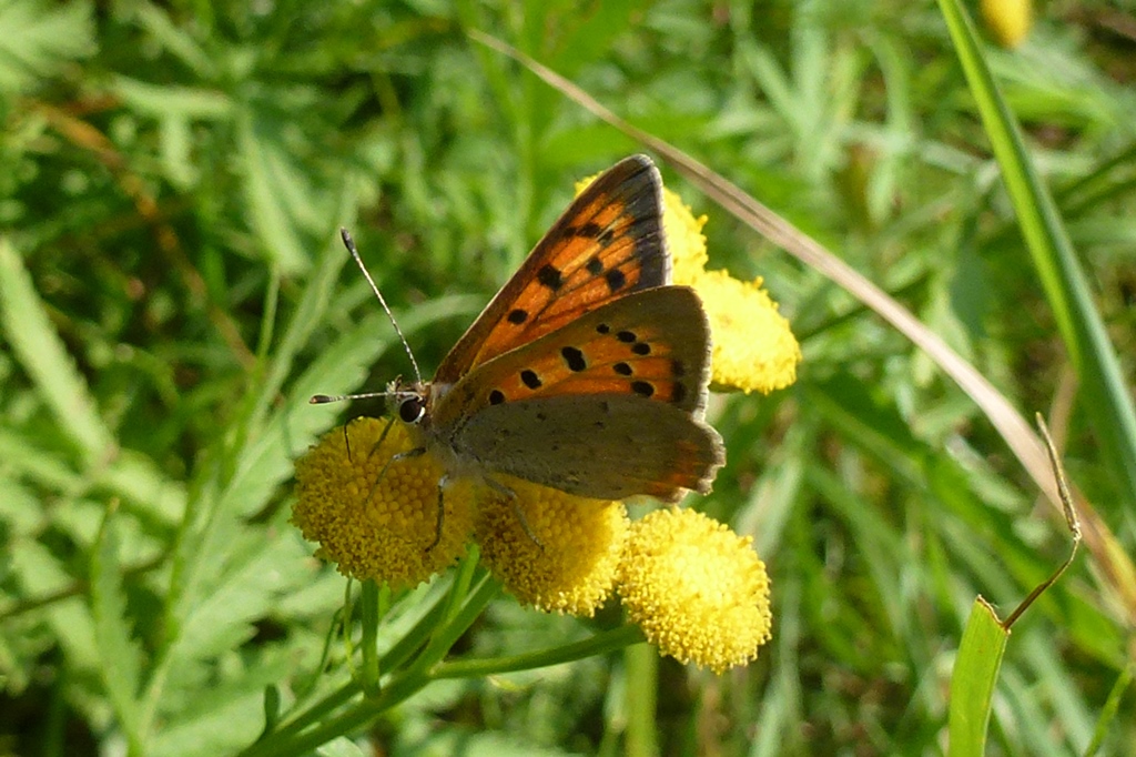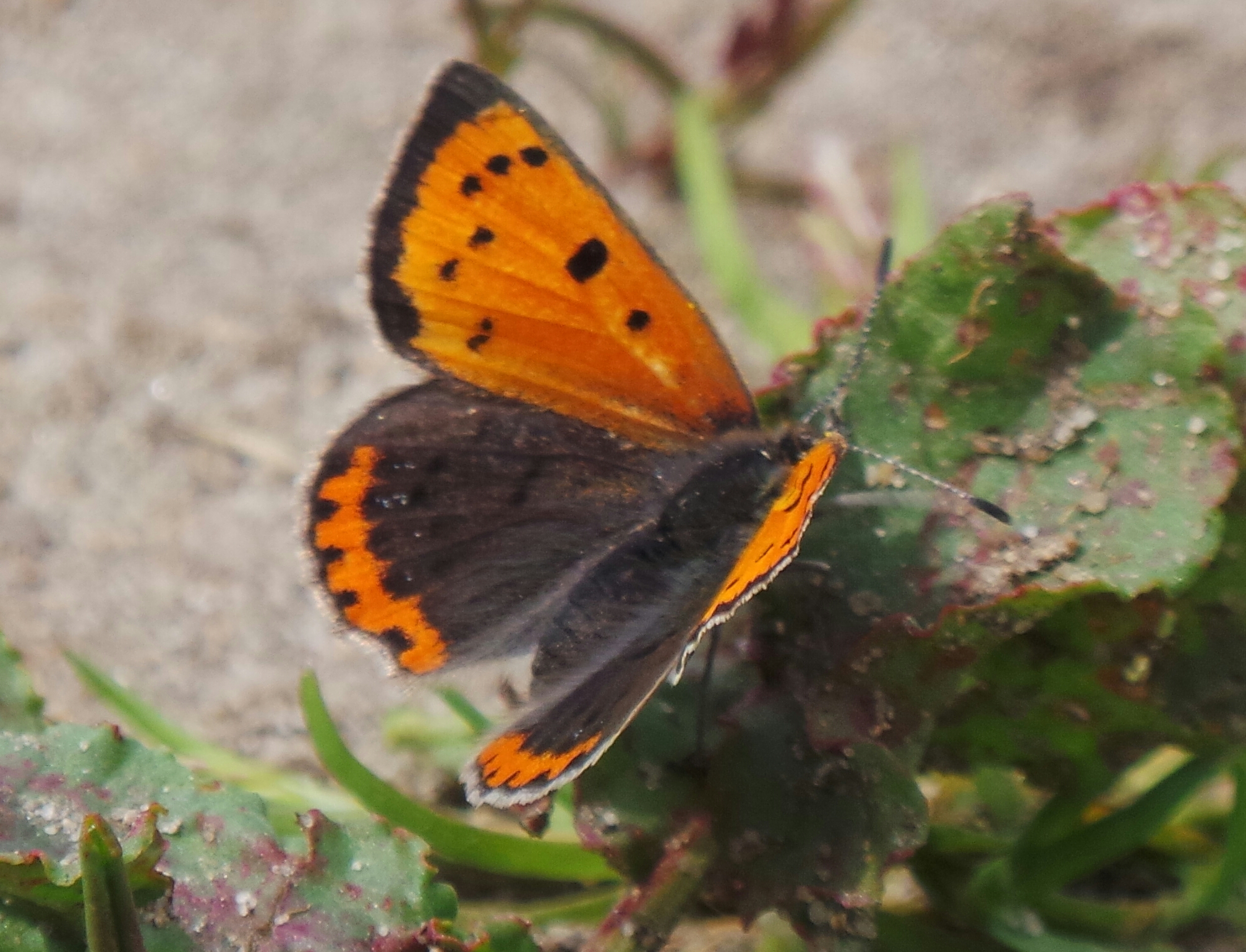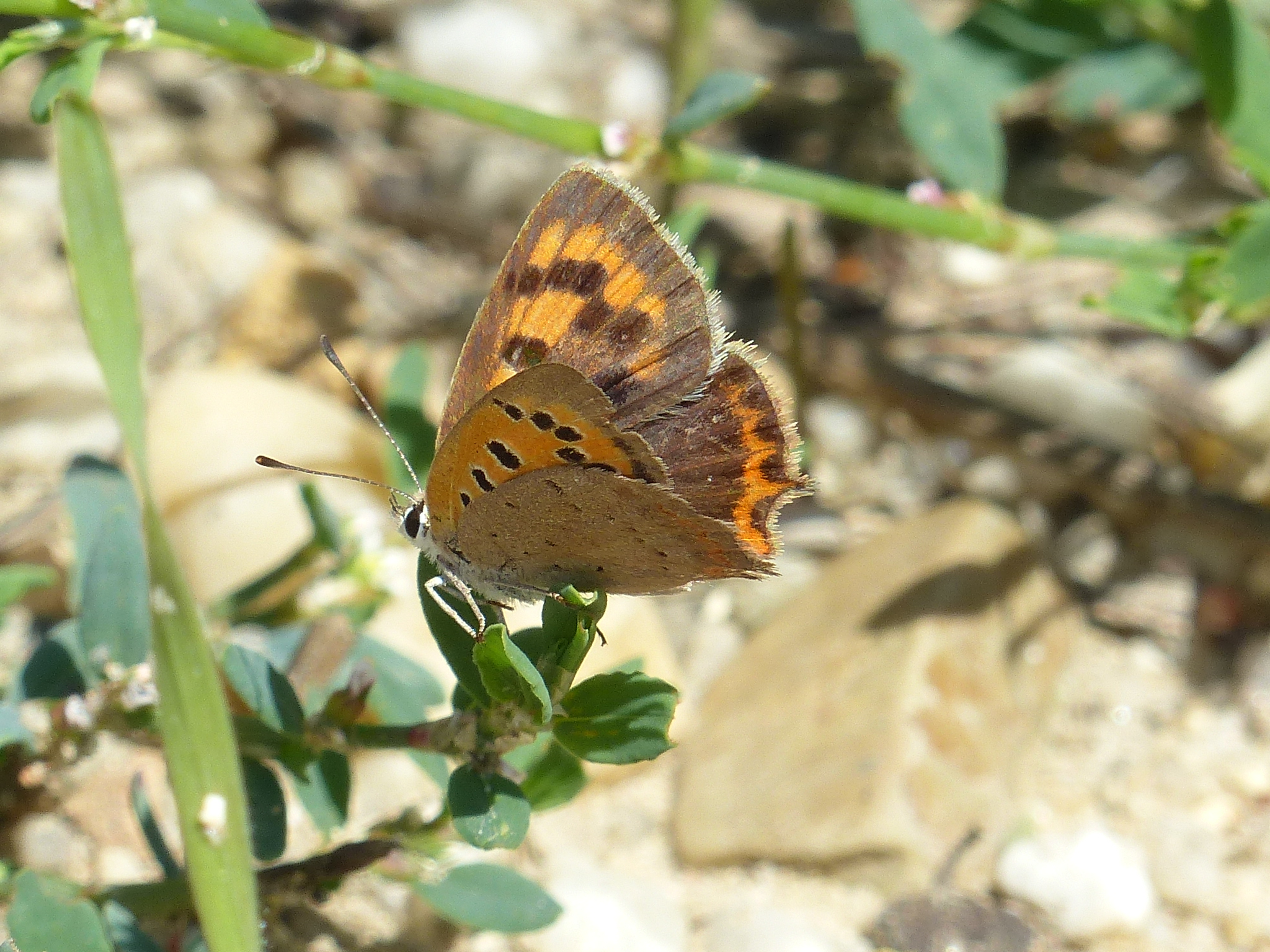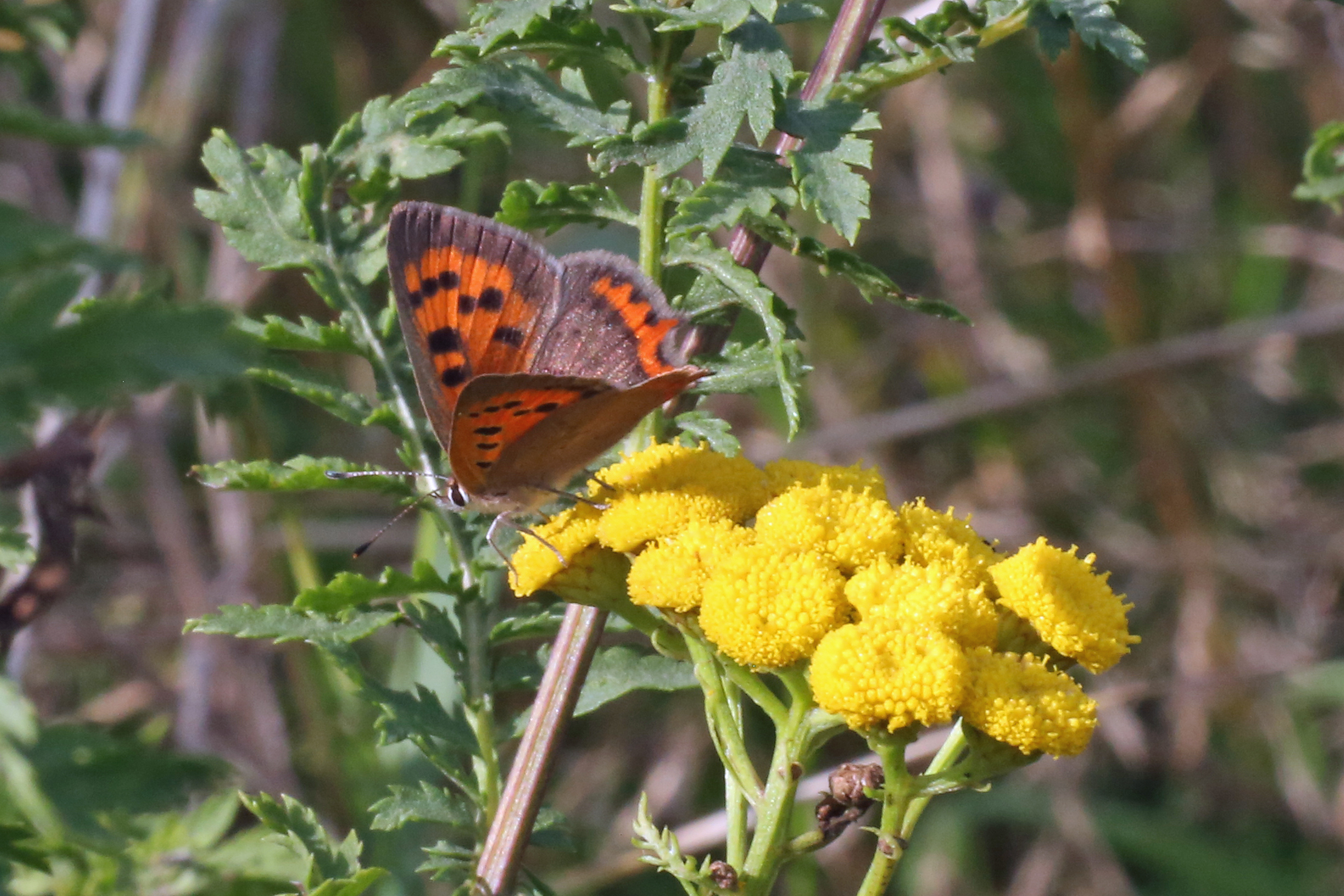 Kleiner Feuerfalter (Lycaena phlaeas (Linnaeus, 1761)), Laue, Rekultivierungsbereich der Tagebaulandschaft Goitzsche östlich vom Seelhausener See, nahe Leipzig, 16. Juni 2019