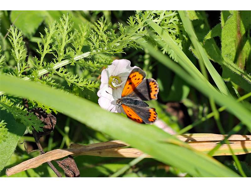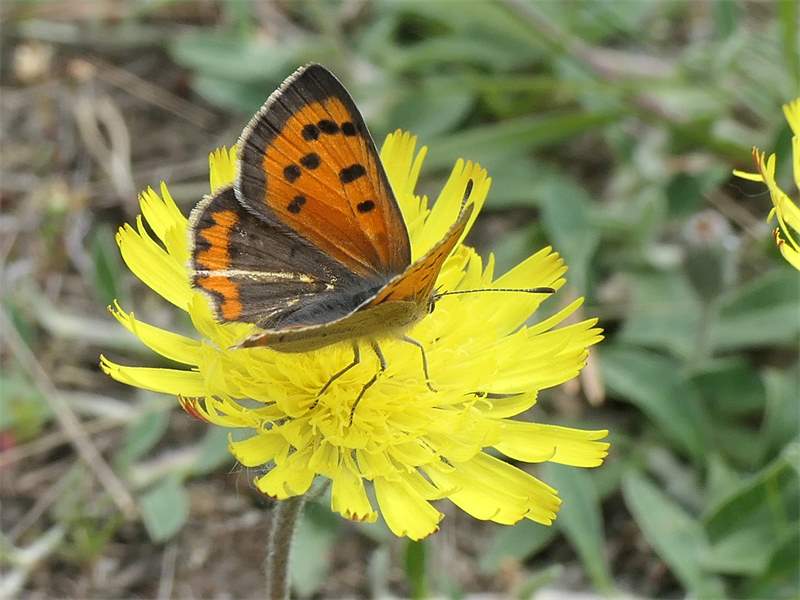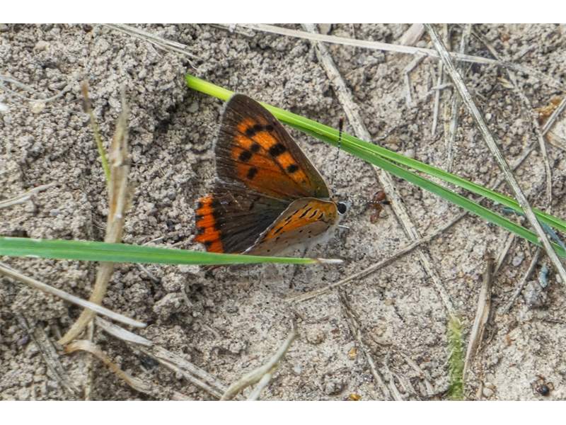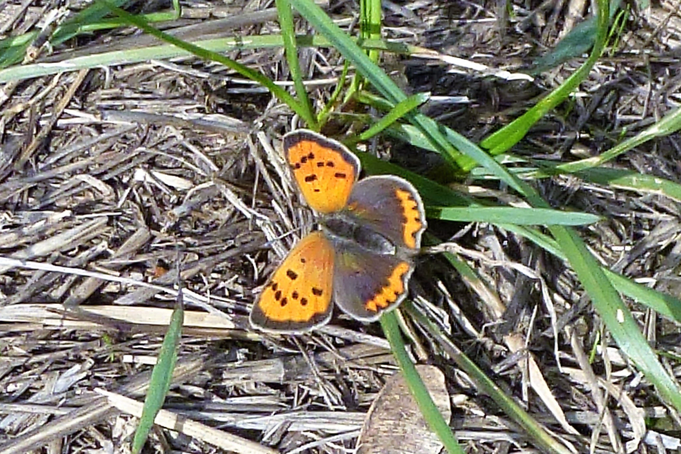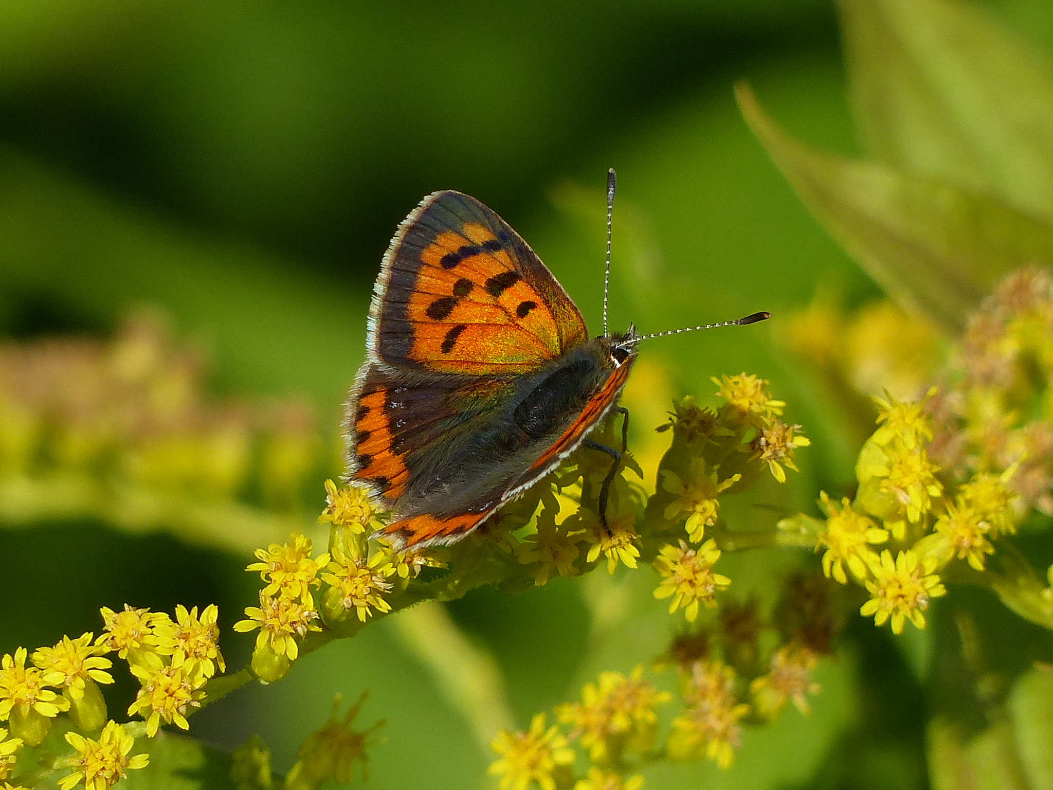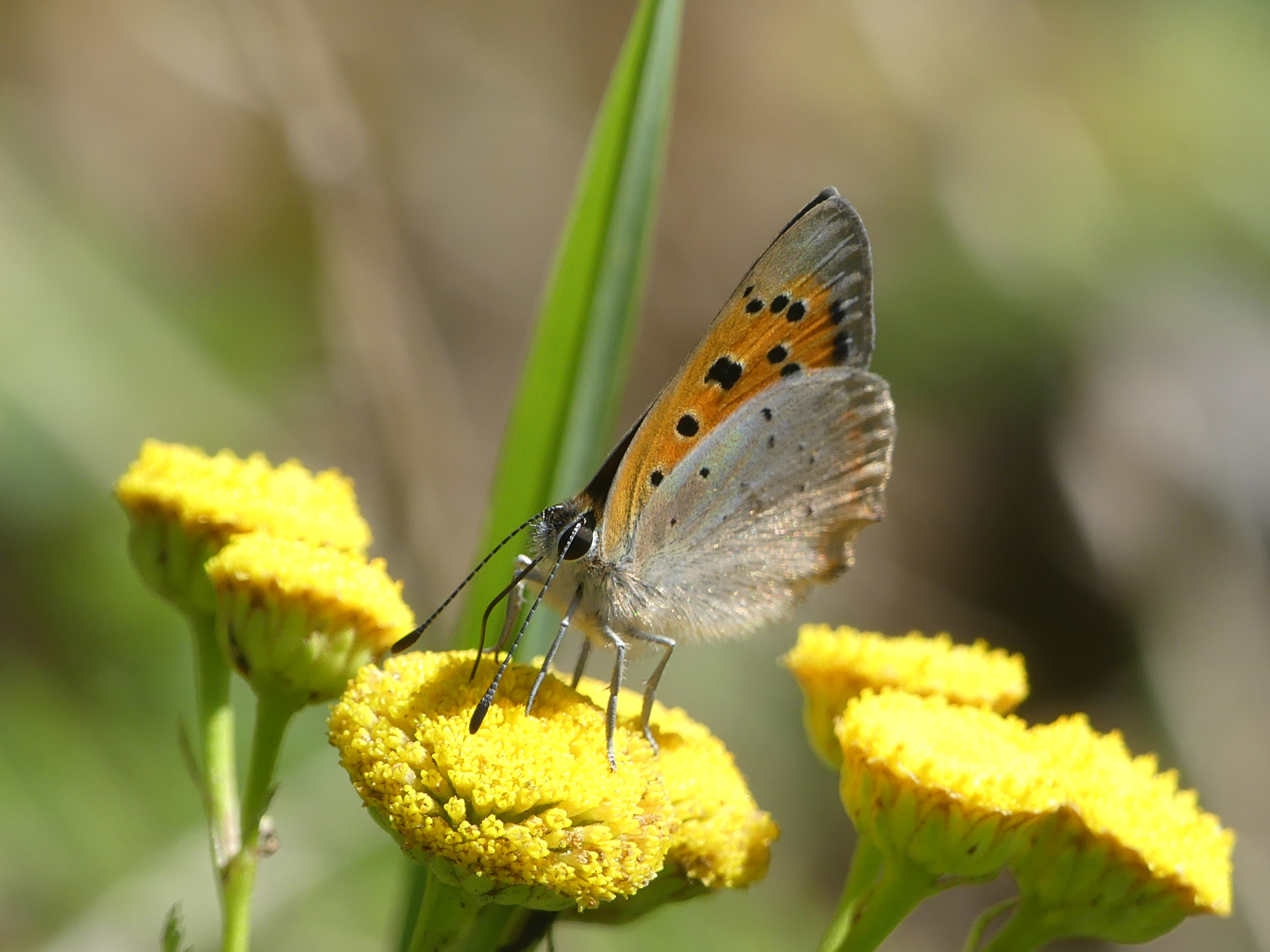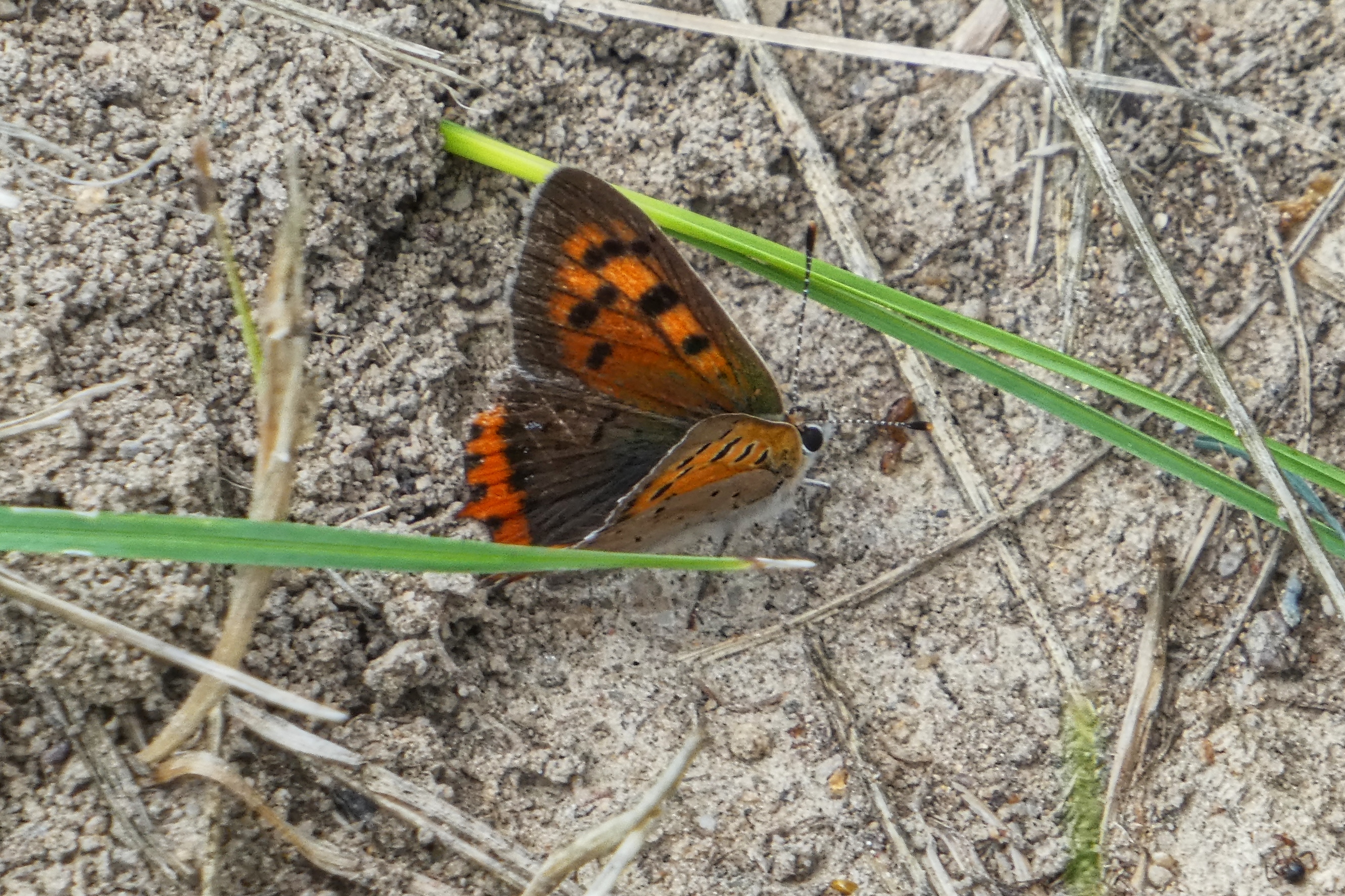 Kleiner Feuerfalter (Lycaena phlaeas (Linnaeus, 1761)), Laue, Rekultivierungsbereich der Tagebaulandschaft Goitzsche östlich vom Seelhausener See, nahe Leipzig, 16. Juni 2019