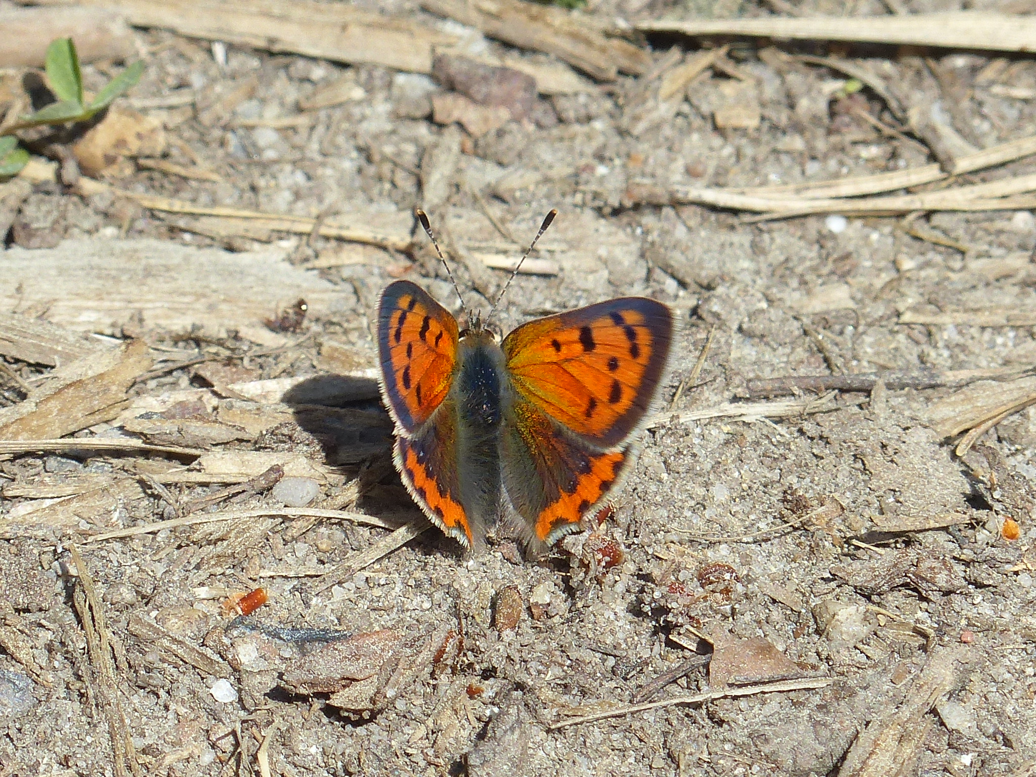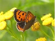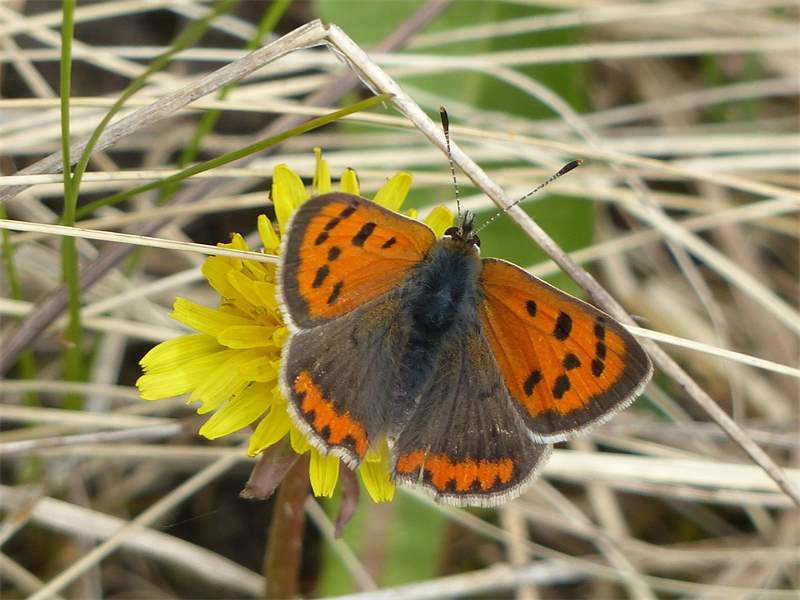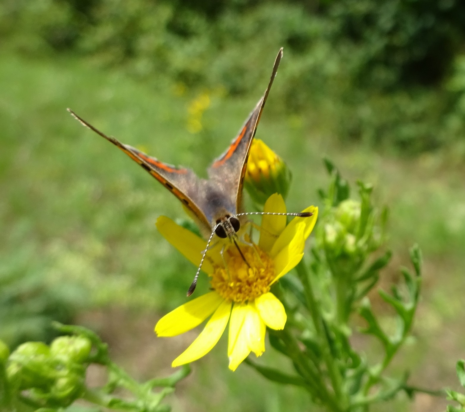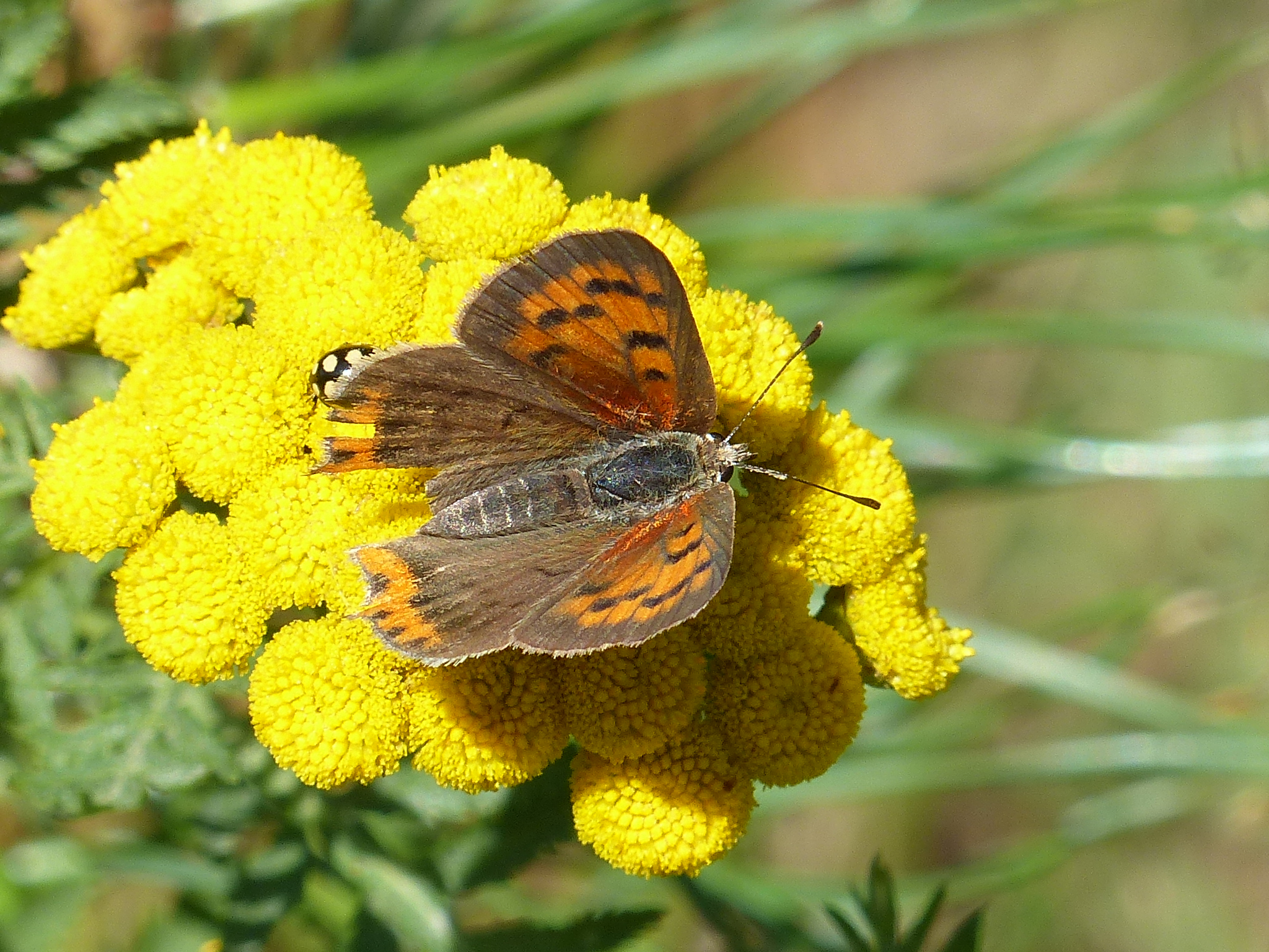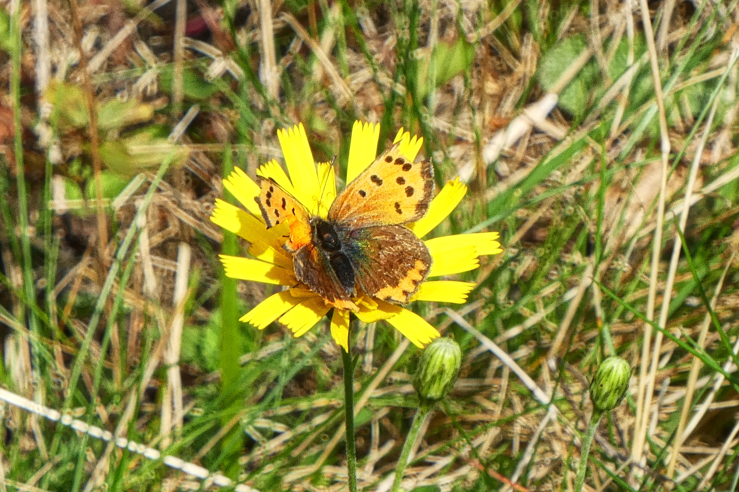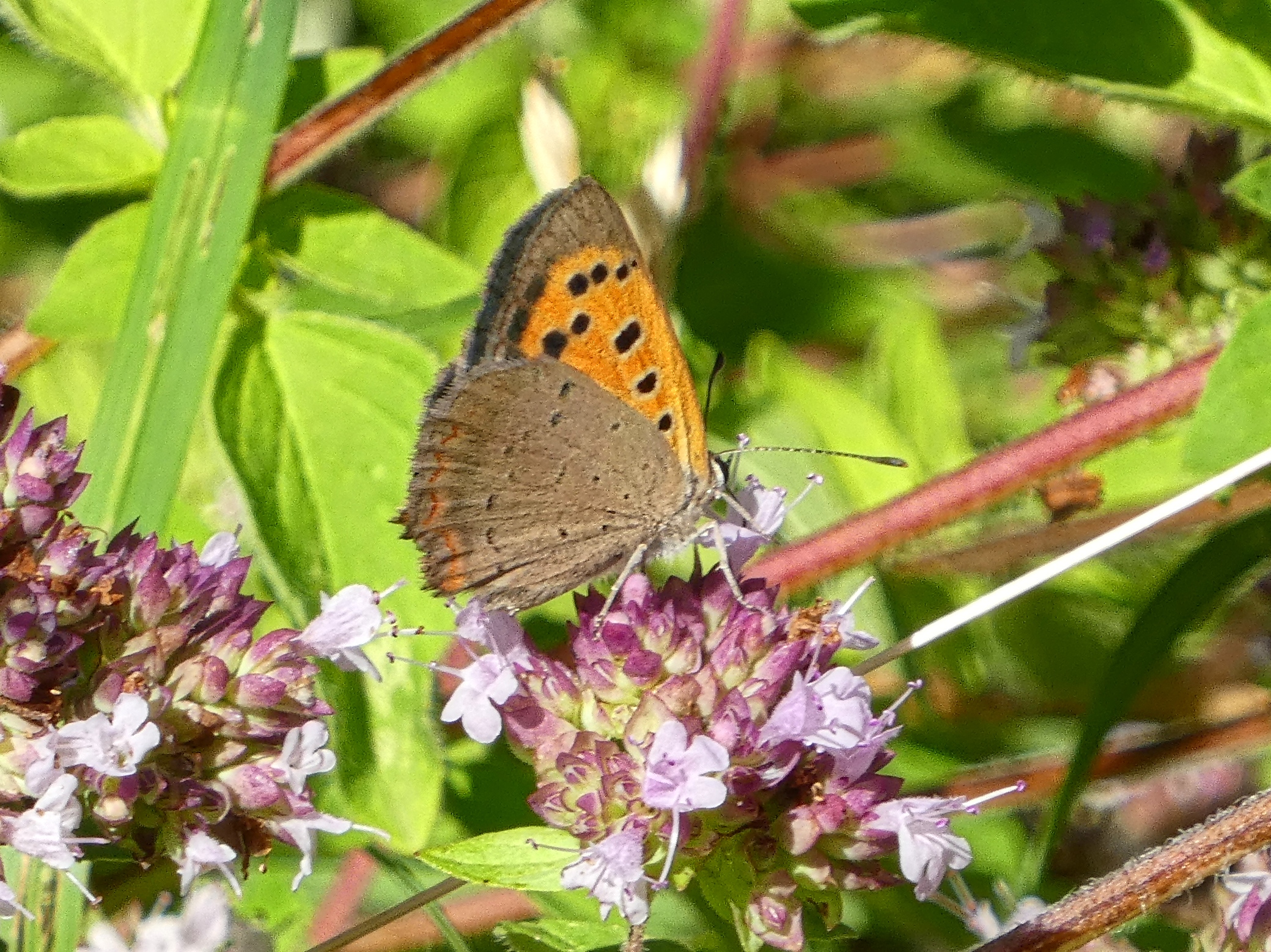 Kleiner Feuerfalter (Lycaena phlaeas (Linnaeus, 1761)), Laue, Rekultivierungsbereich der Tagebaulandschaft Goitzsche östlich vom Seelhausener See, nahe Leipzig, 16. Juni 2019