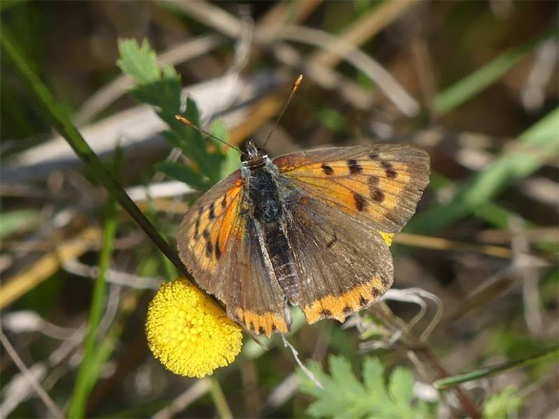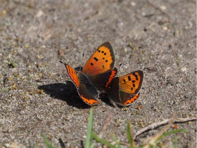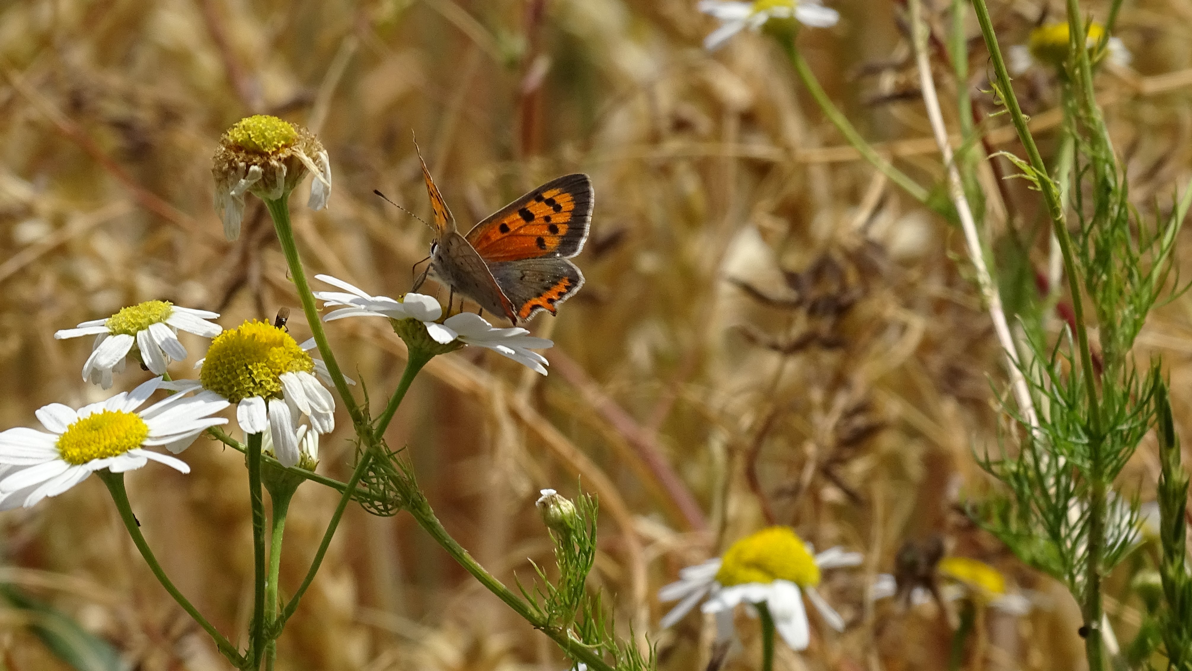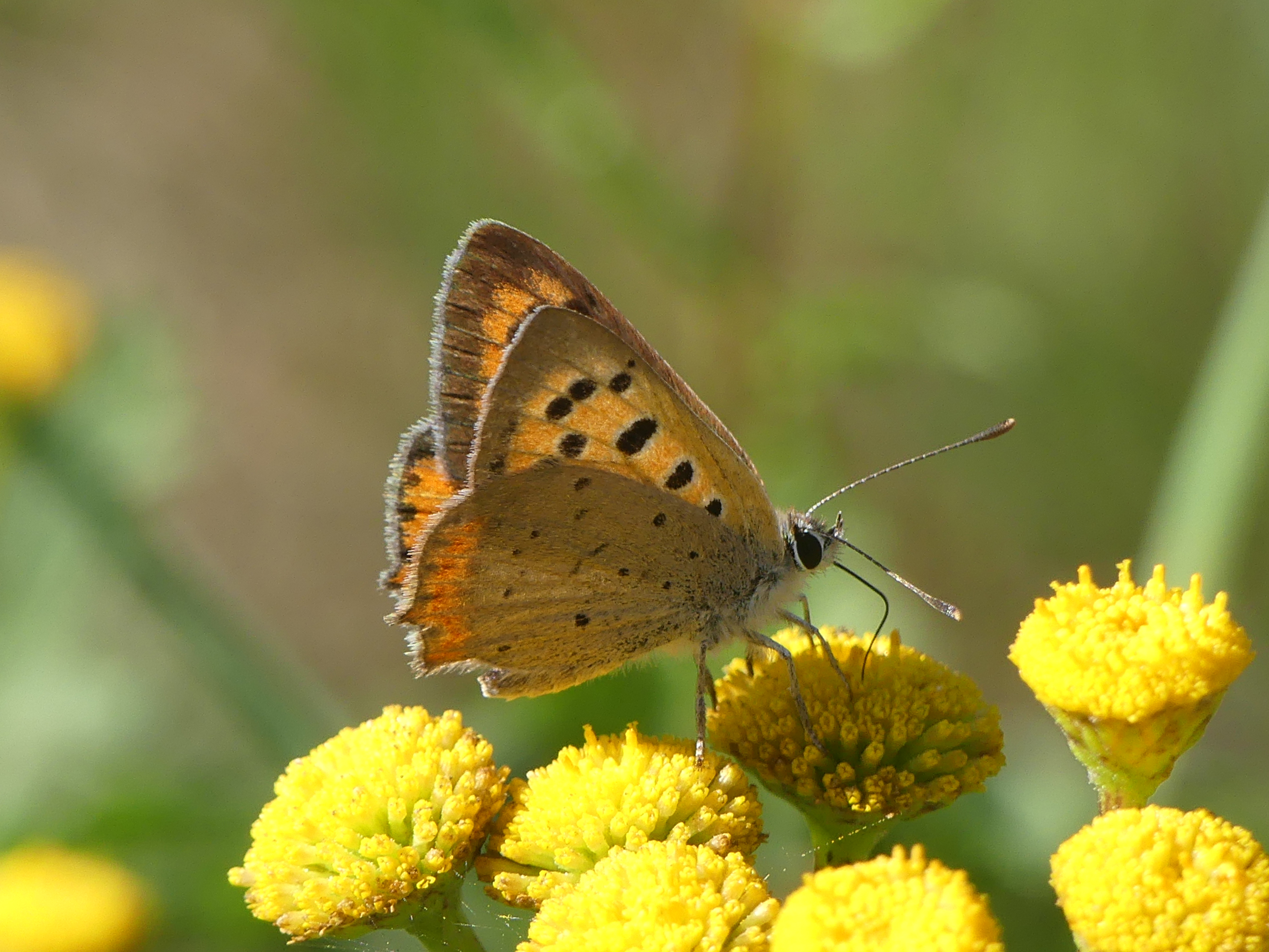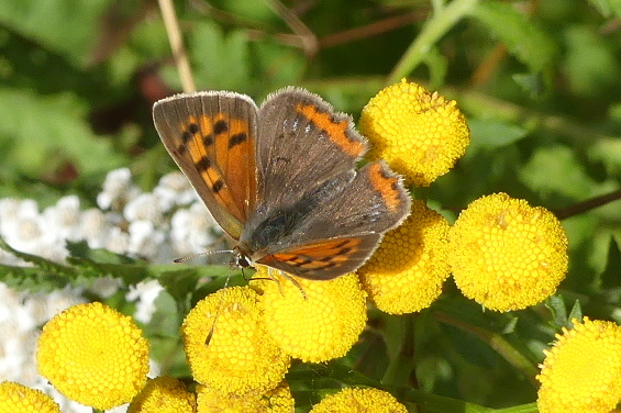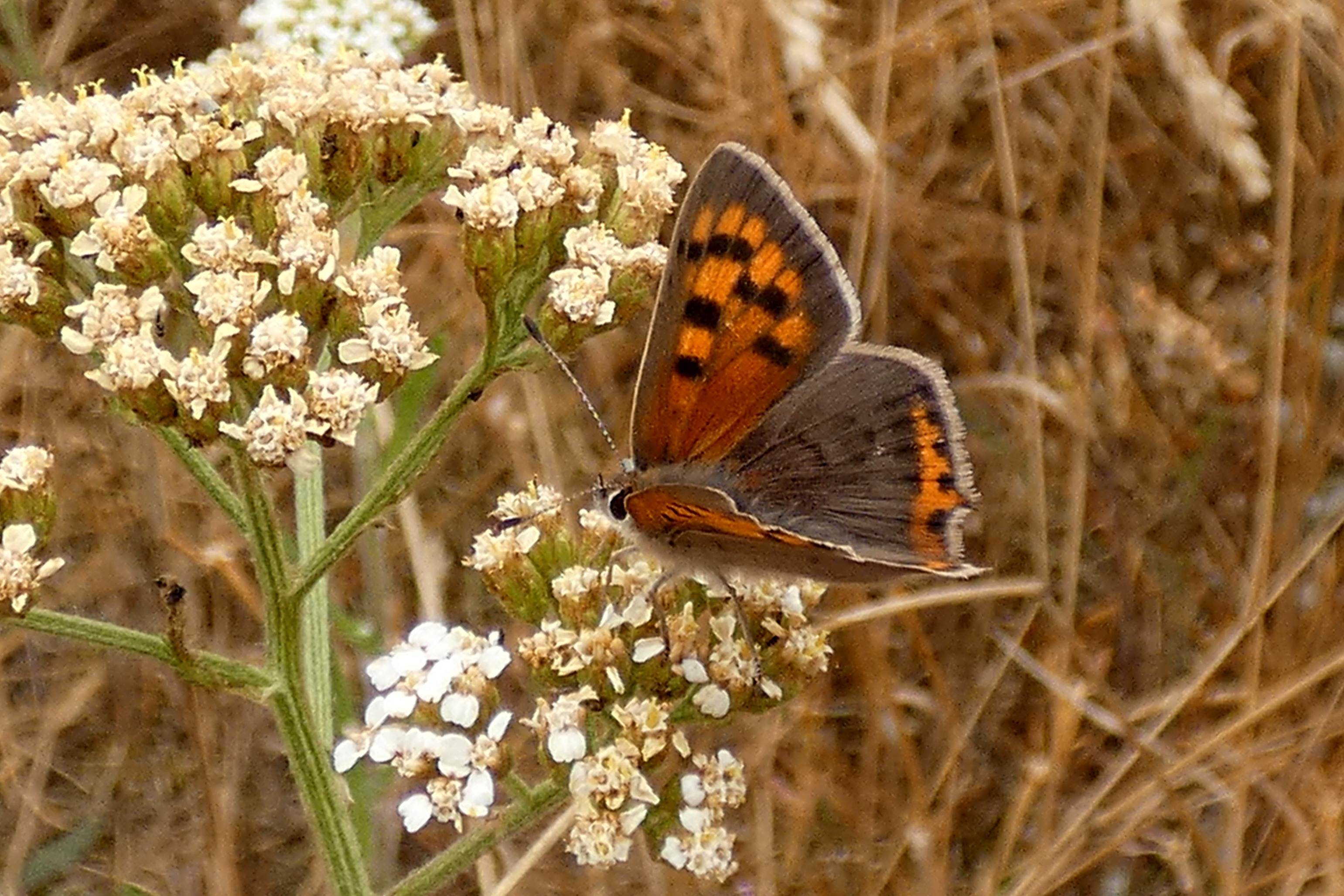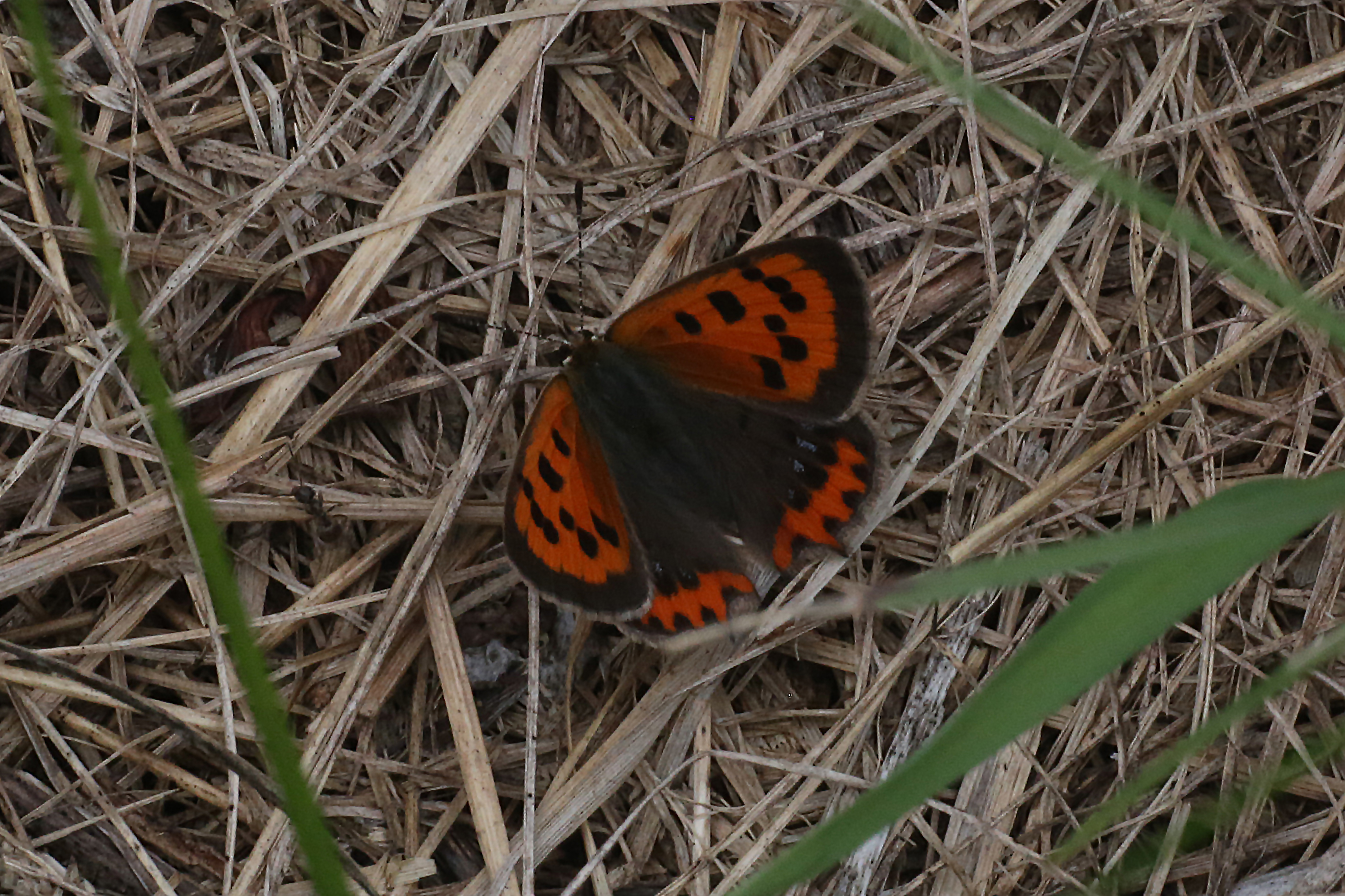 Kleiner Feuerfalter (Lycaena phlaeas (Linnaeus, 1761)), Laue, Rekultivierungsbereich der Tagebaulandschaft Goitzsche östlich vom Seelhausener See, nahe Leipzig, 16. Juni 2019