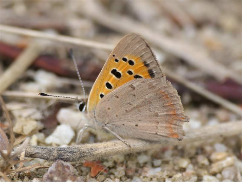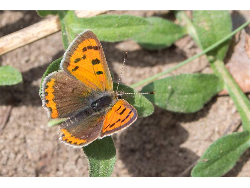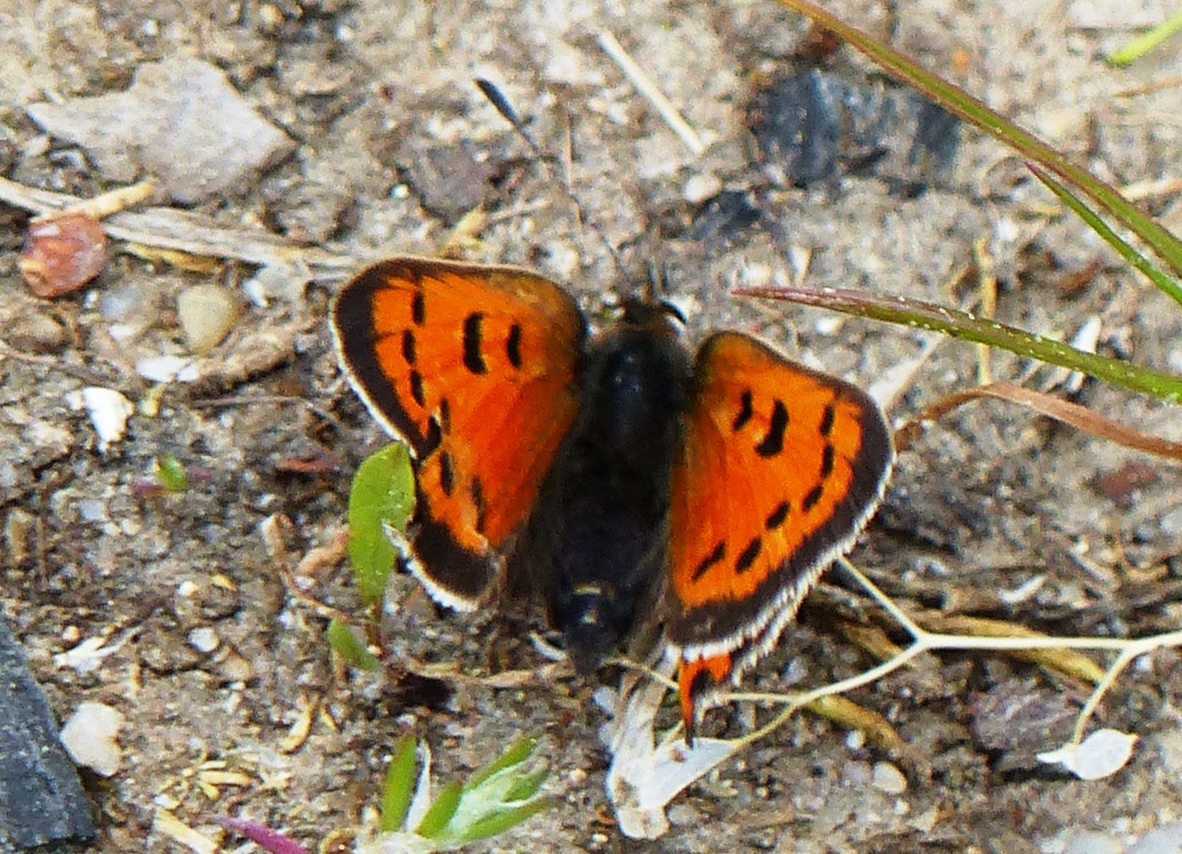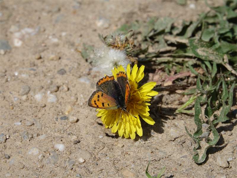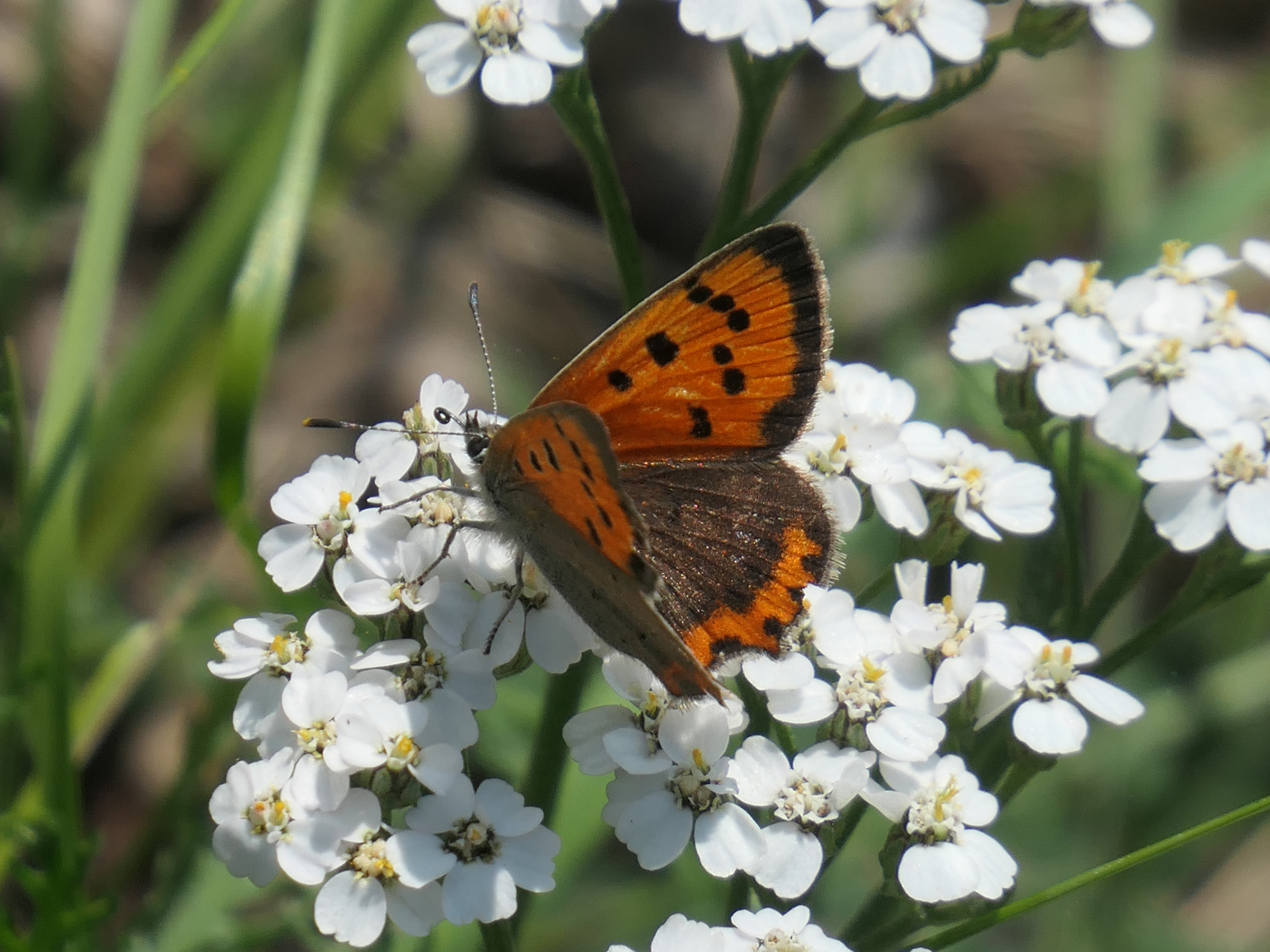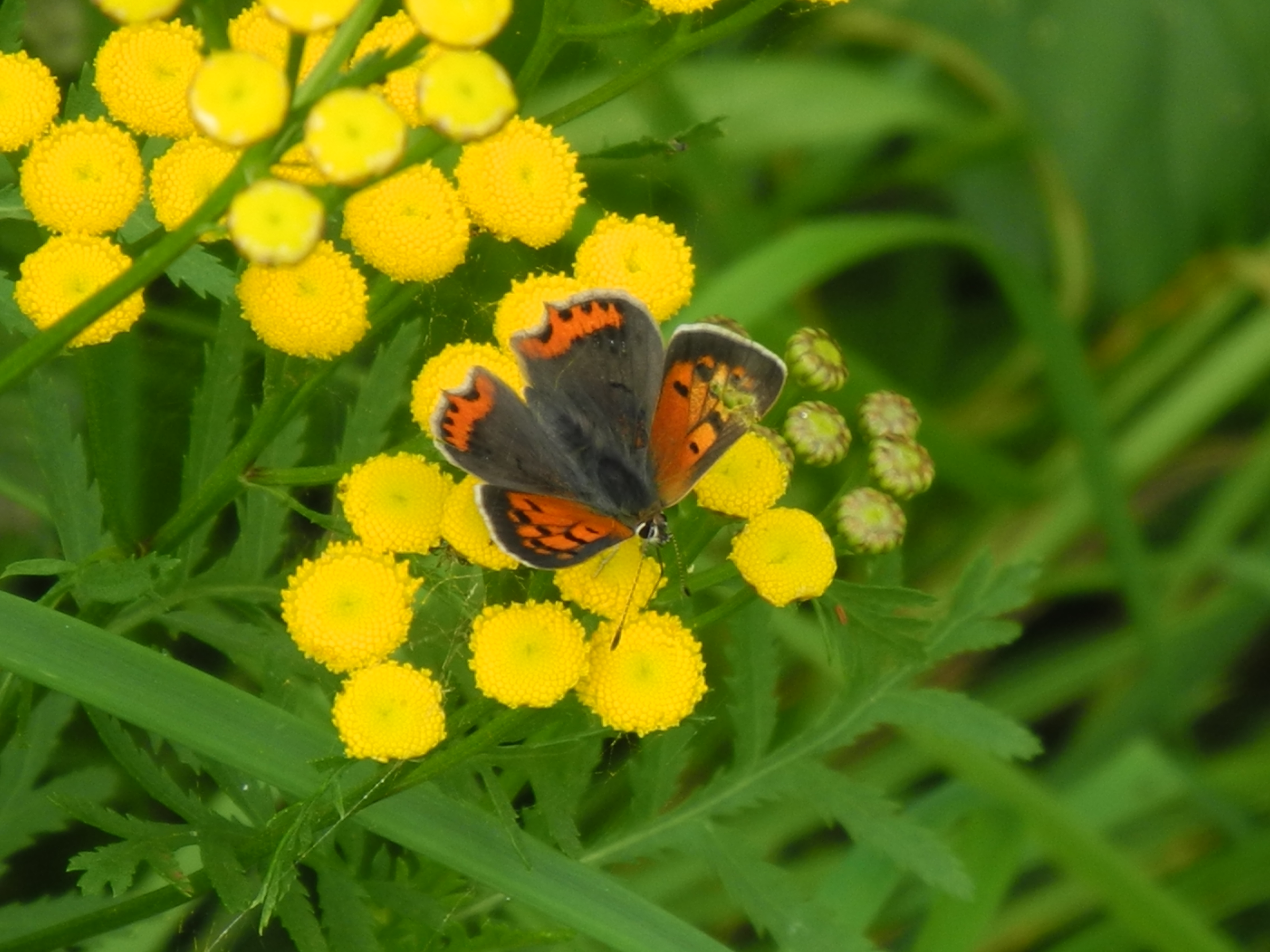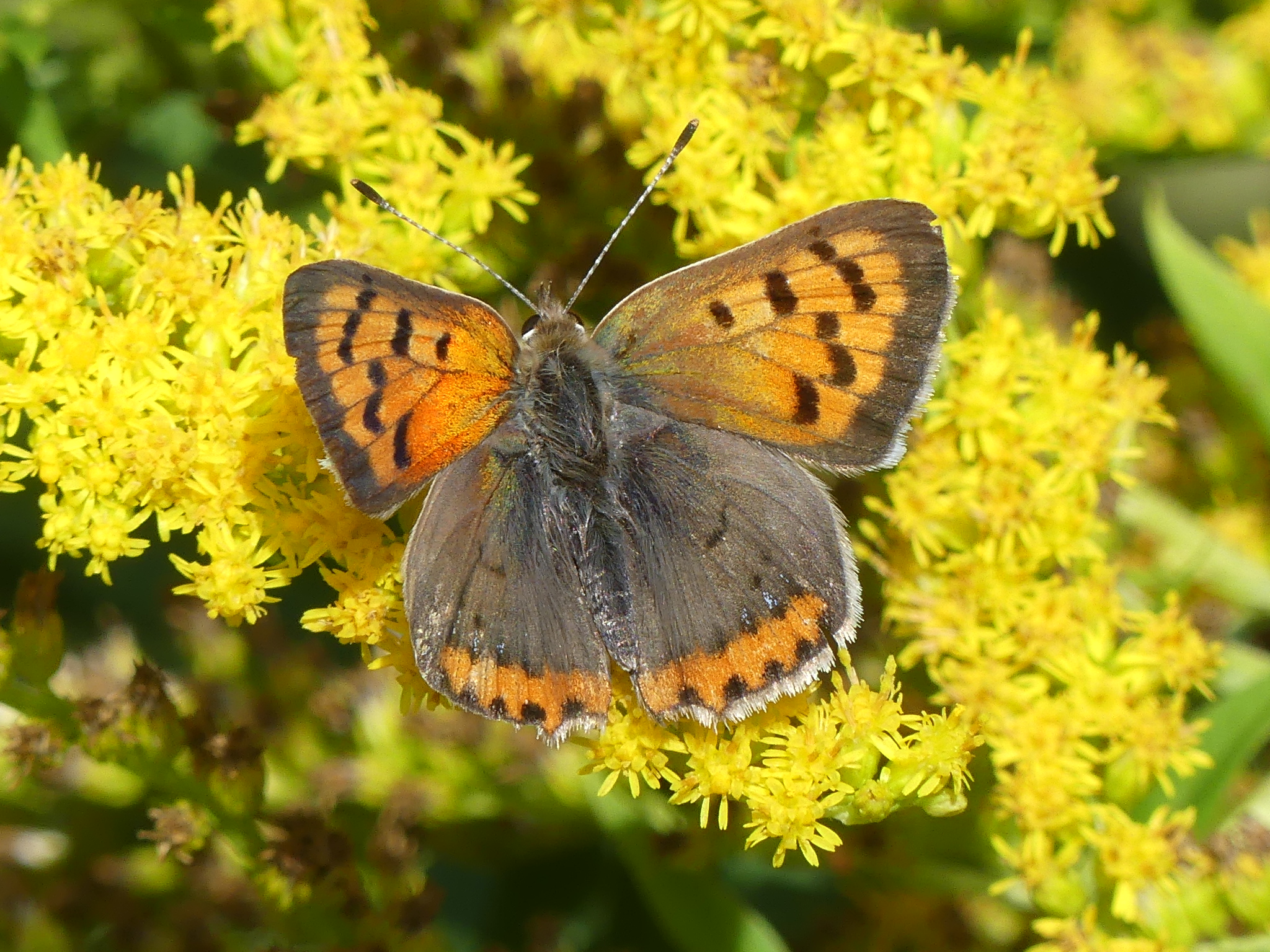 Kleiner Feuerfalter (Lycaena phlaeas (Linnaeus, 1761)), Laue, Rekultivierungsbereich der Tagebaulandschaft Goitzsche östlich vom Seelhausener See, nahe Leipzig, 16. Juni 2019