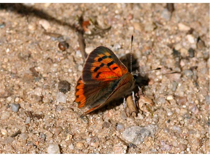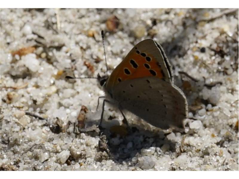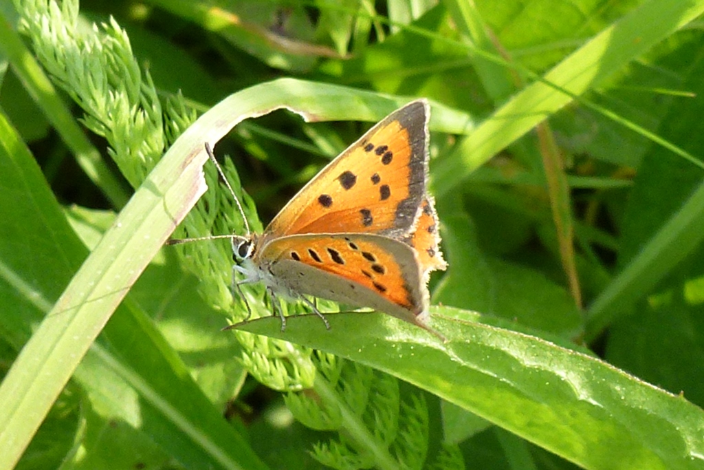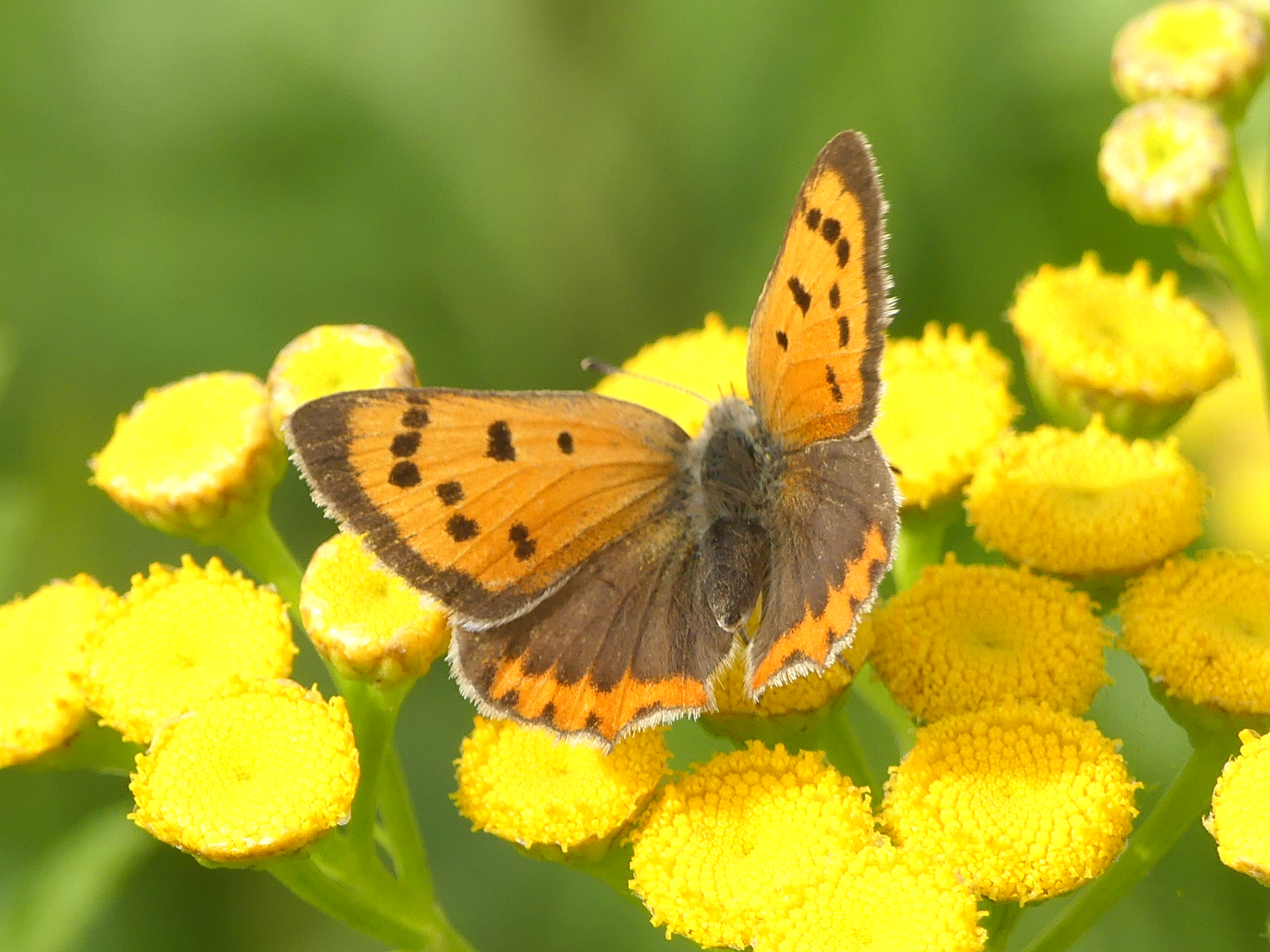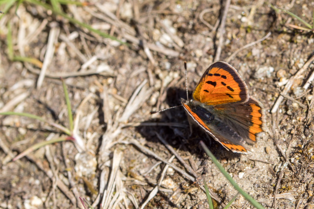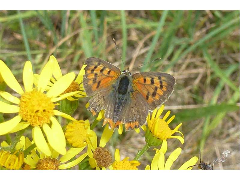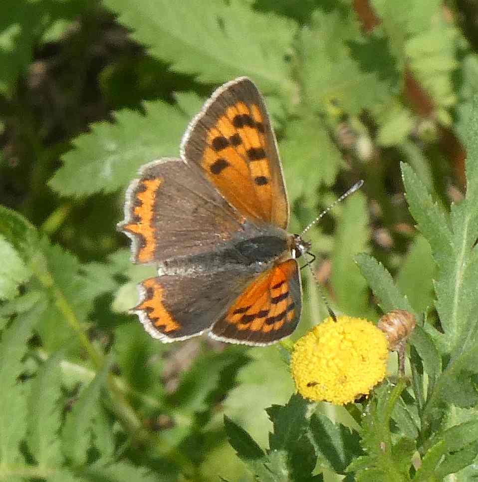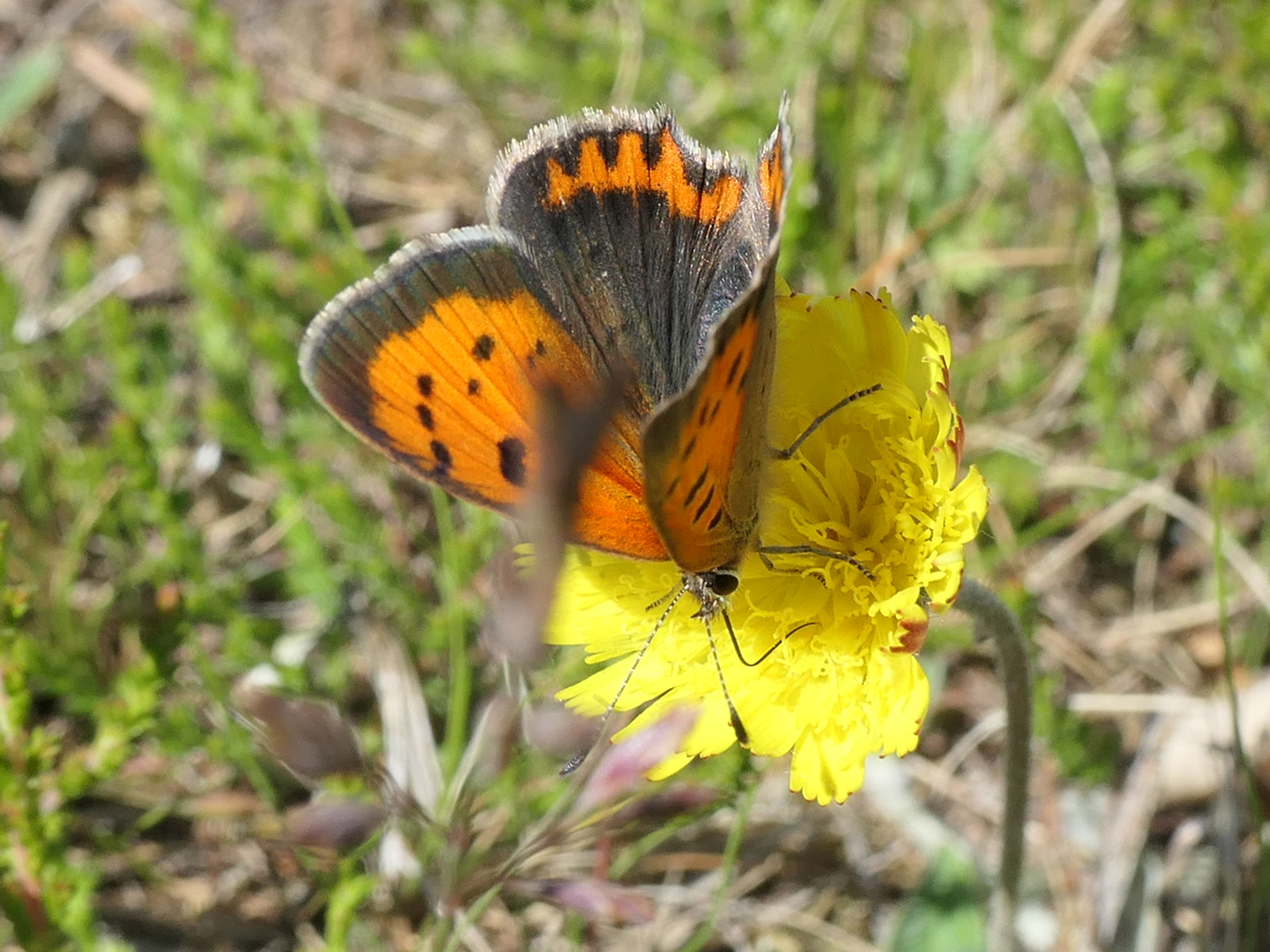 Kleiner Feuerfalter (Lycaena phlaeas (Linnaeus, 1761)), Laue, Rekultivierungsbereich der Tagebaulandschaft Goitzsche östlich vom Seelhausener See, nahe Leipzig, 16. Juni 2019