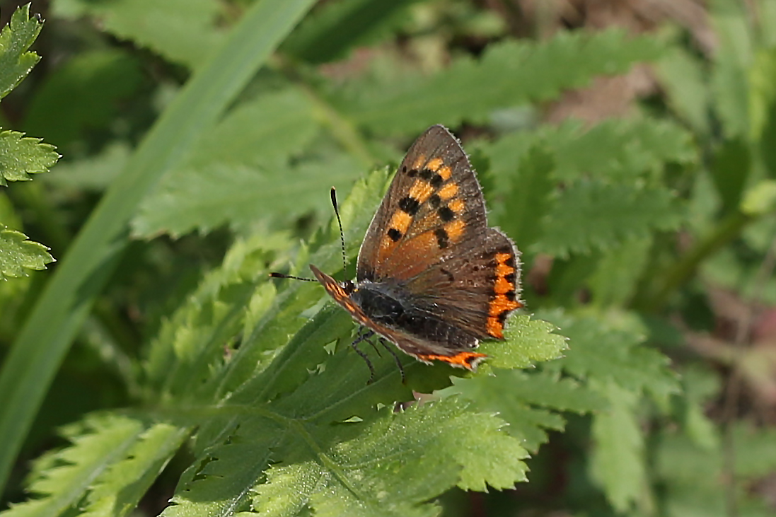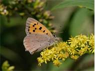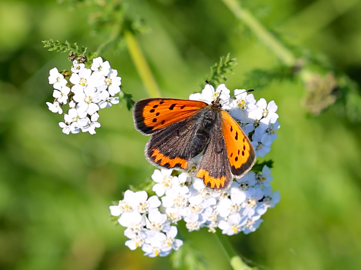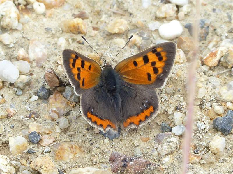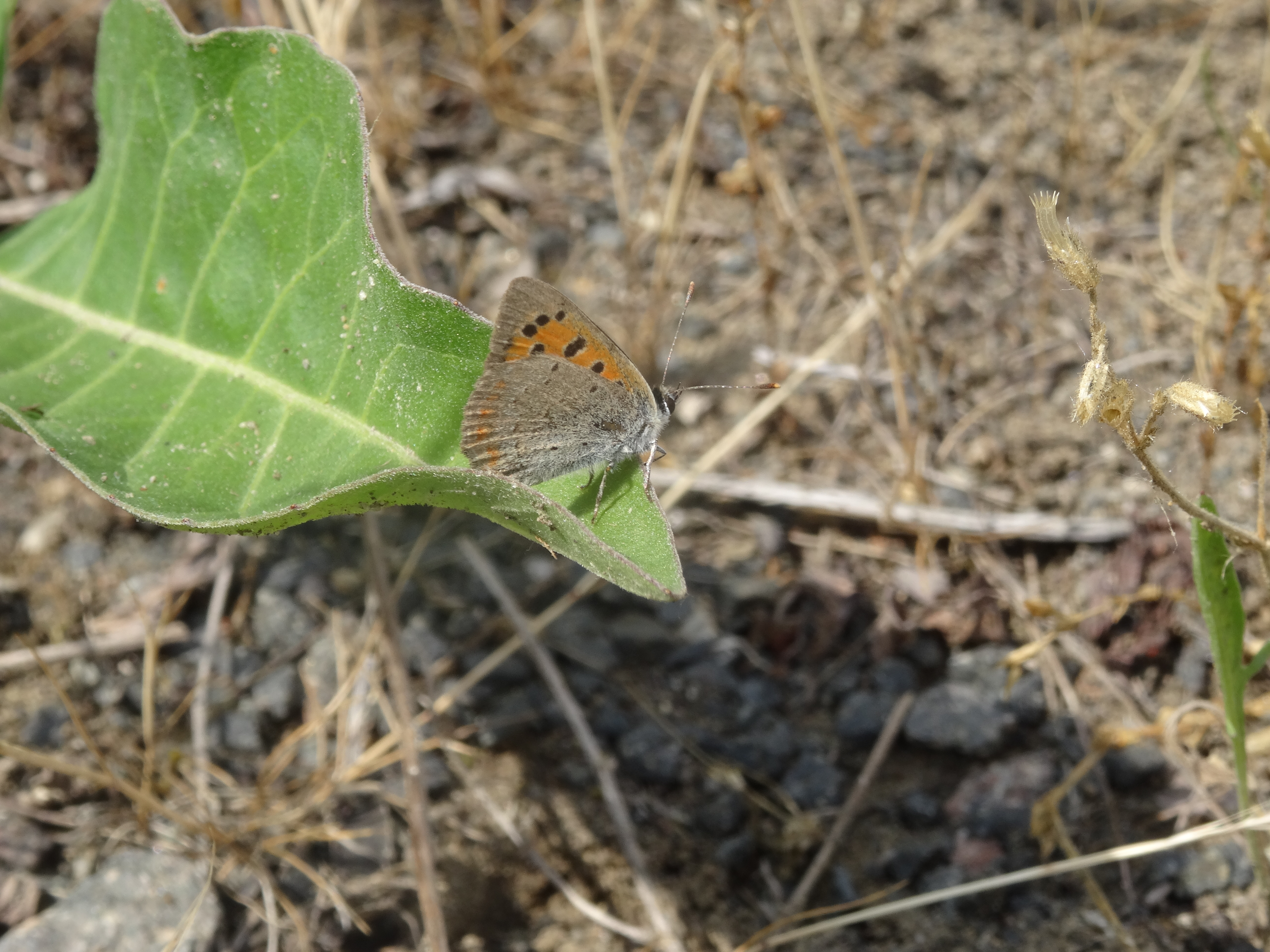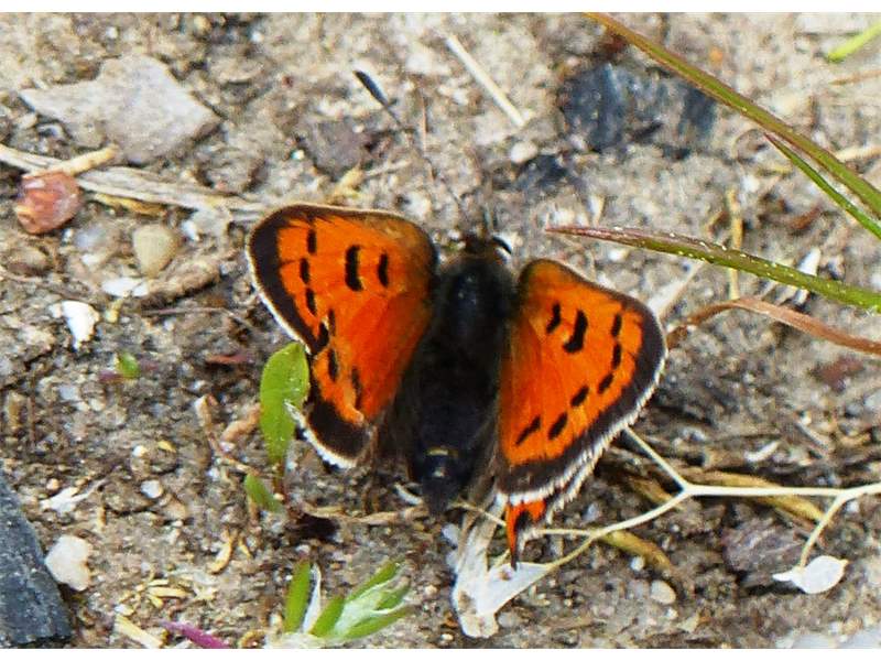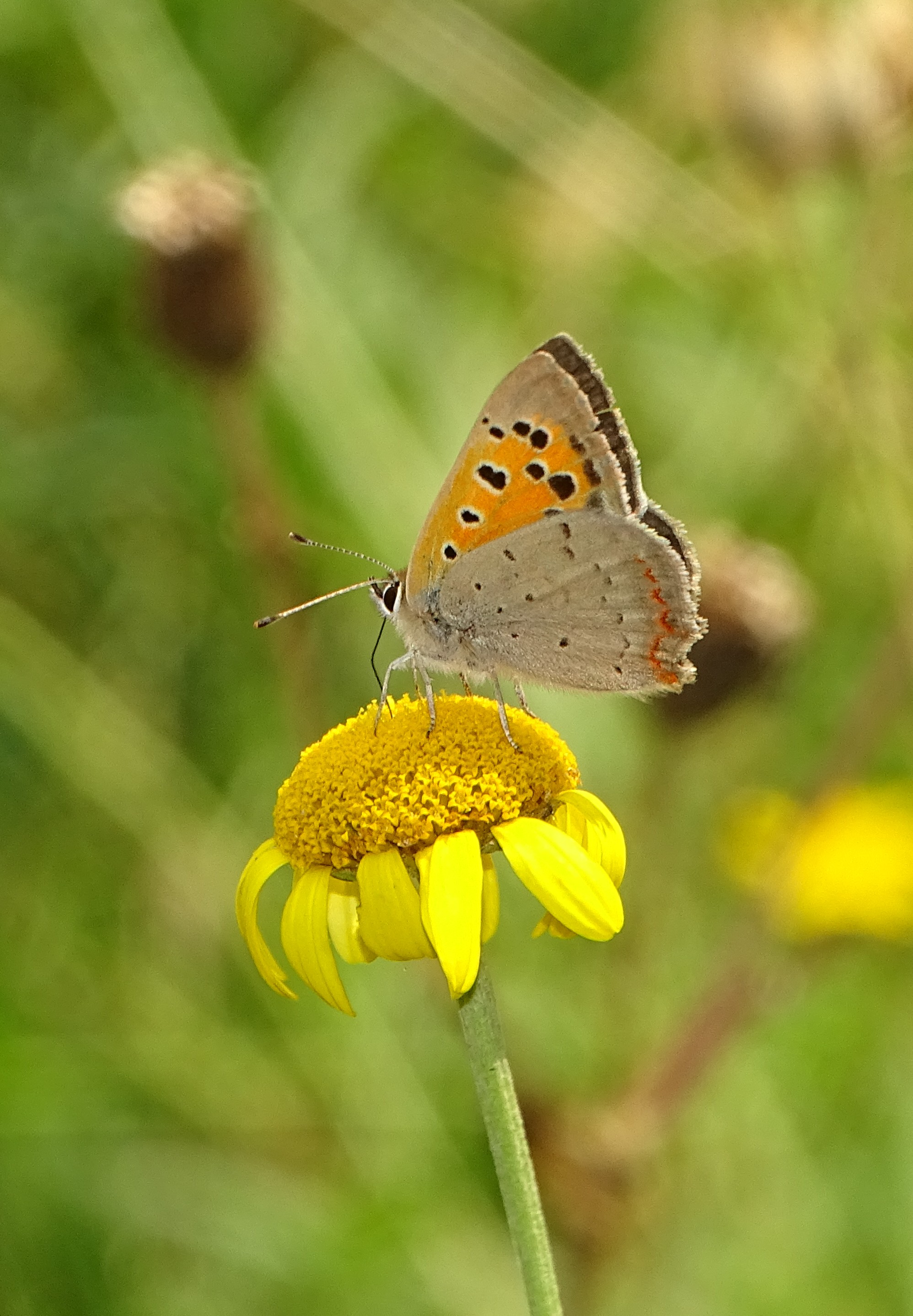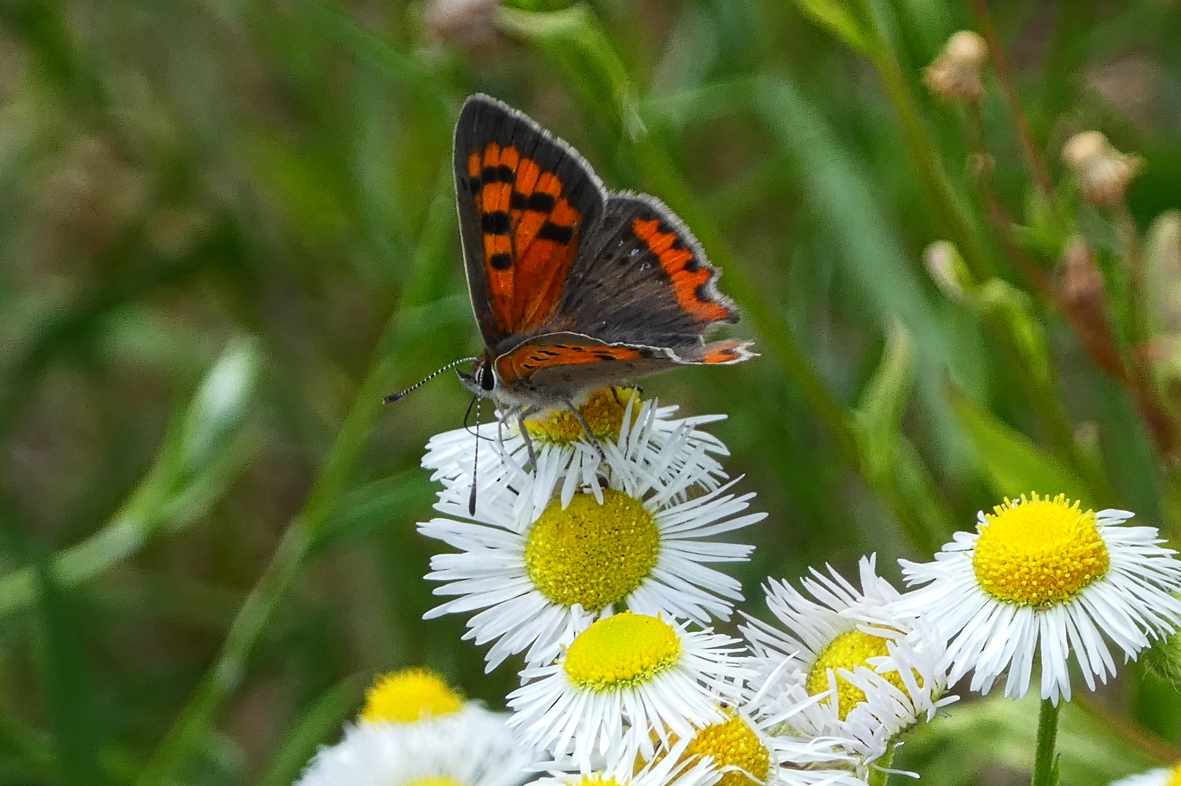Kleiner Feuerfalter (Lycaena phlaeas (Linnaeus, 1761)), Laue, Rekultivierungsbereich der Tagebaulandschaft Goitzsche östlich vom Seelhausener See, nahe Leipzig, 16. Juni 2019