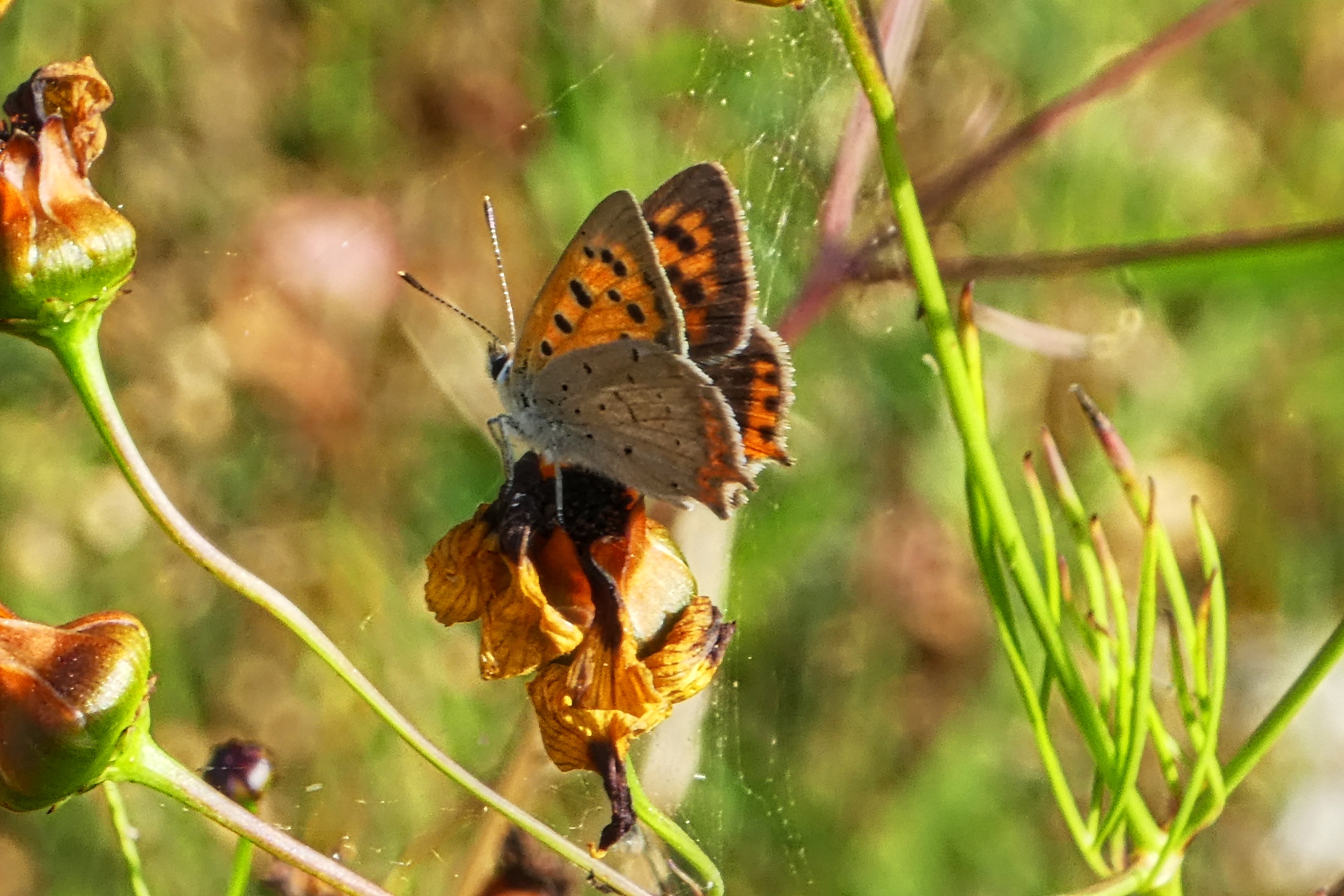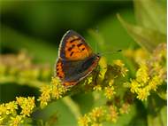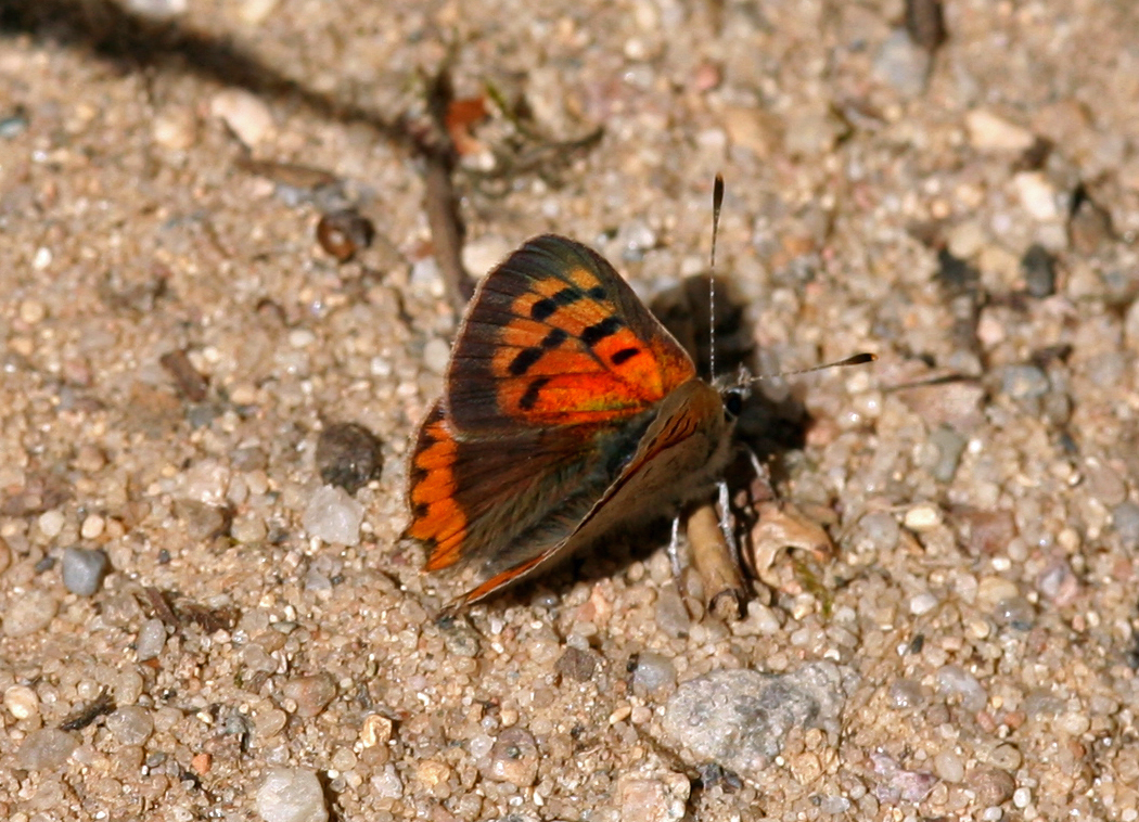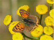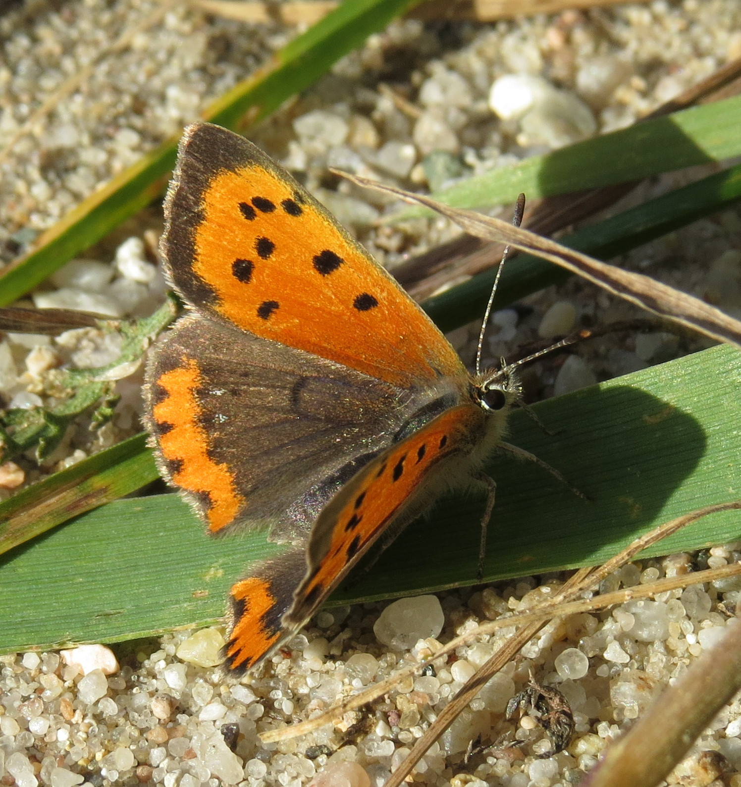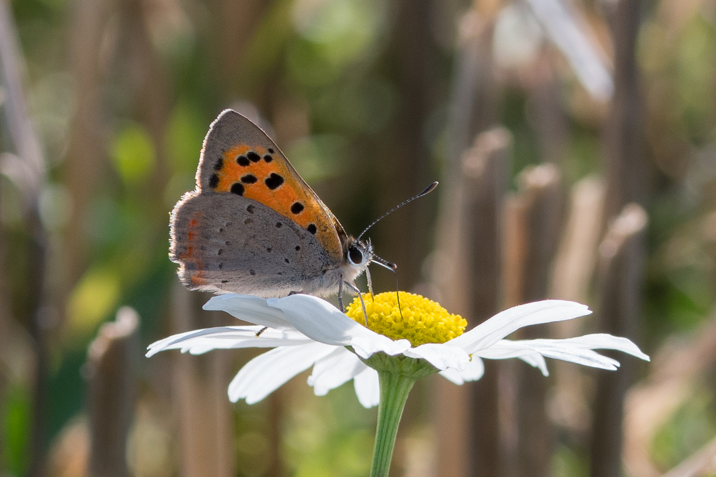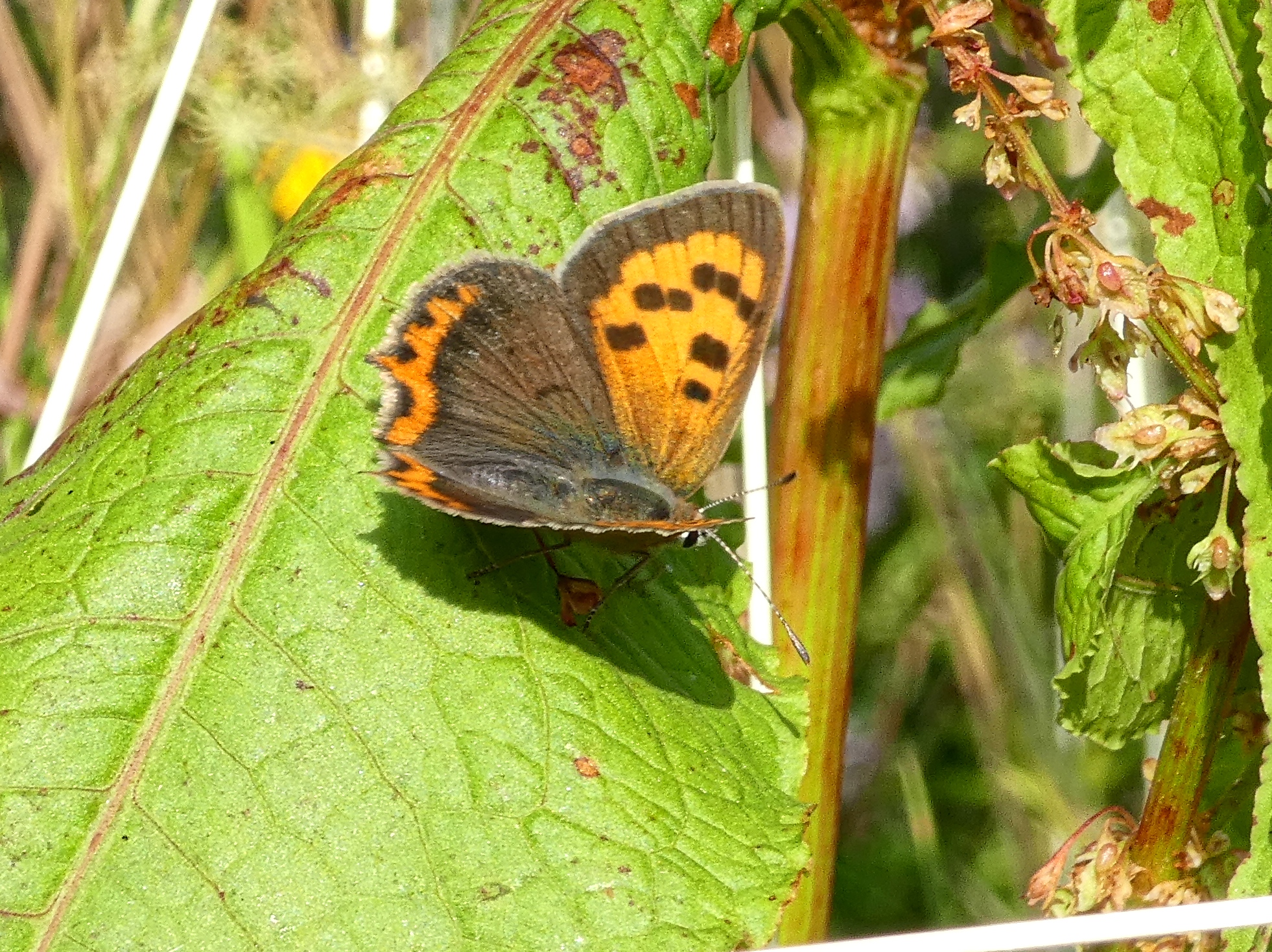Kleiner Feuerfalter (Lycaena phlaeas (Linnaeus, 1761)), Laue, Rekultivierungsbereich der Tagebaulandschaft Goitzsche östlich vom Seelhausener See, nahe Leipzig, 16. Juni 2019
