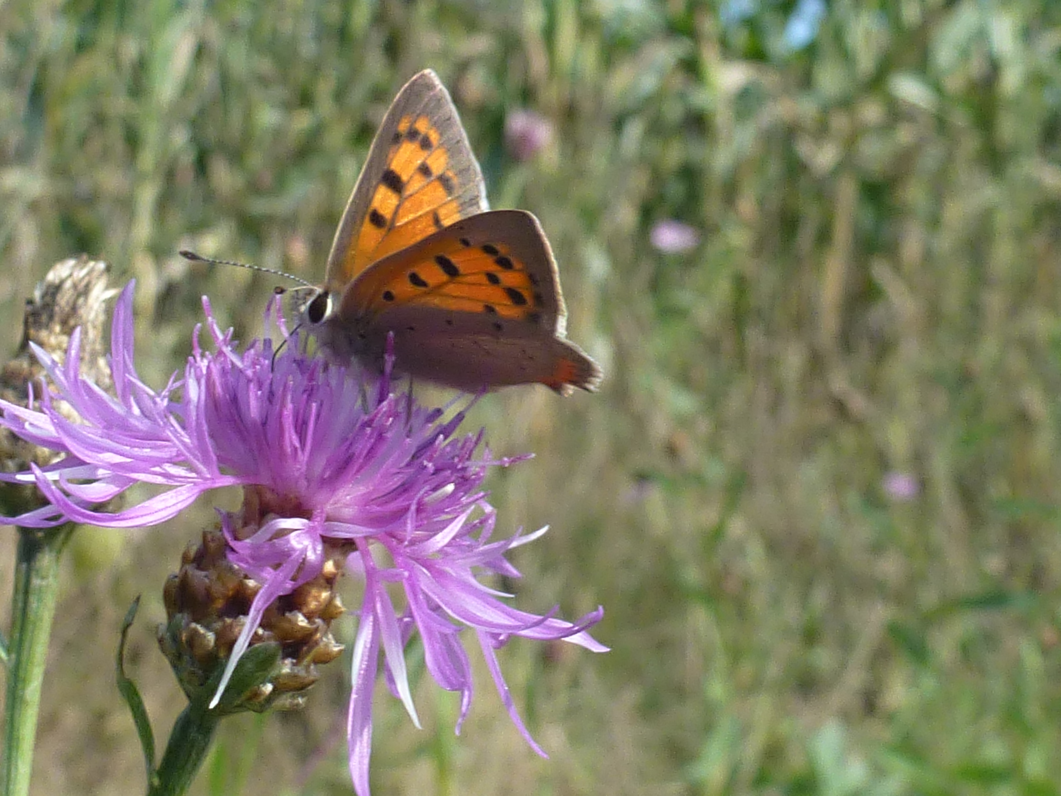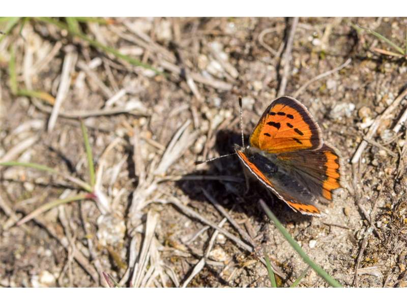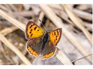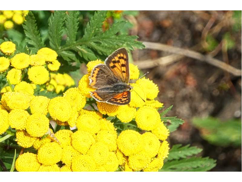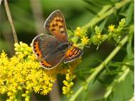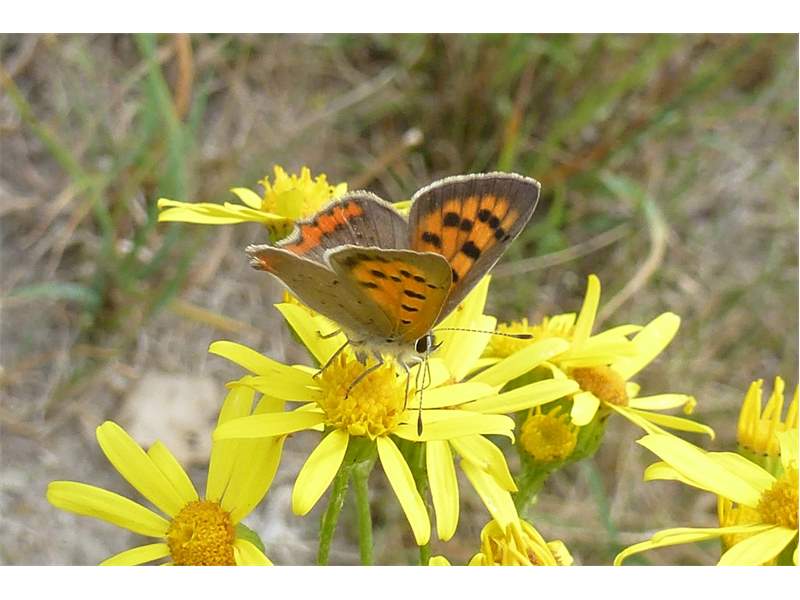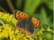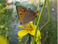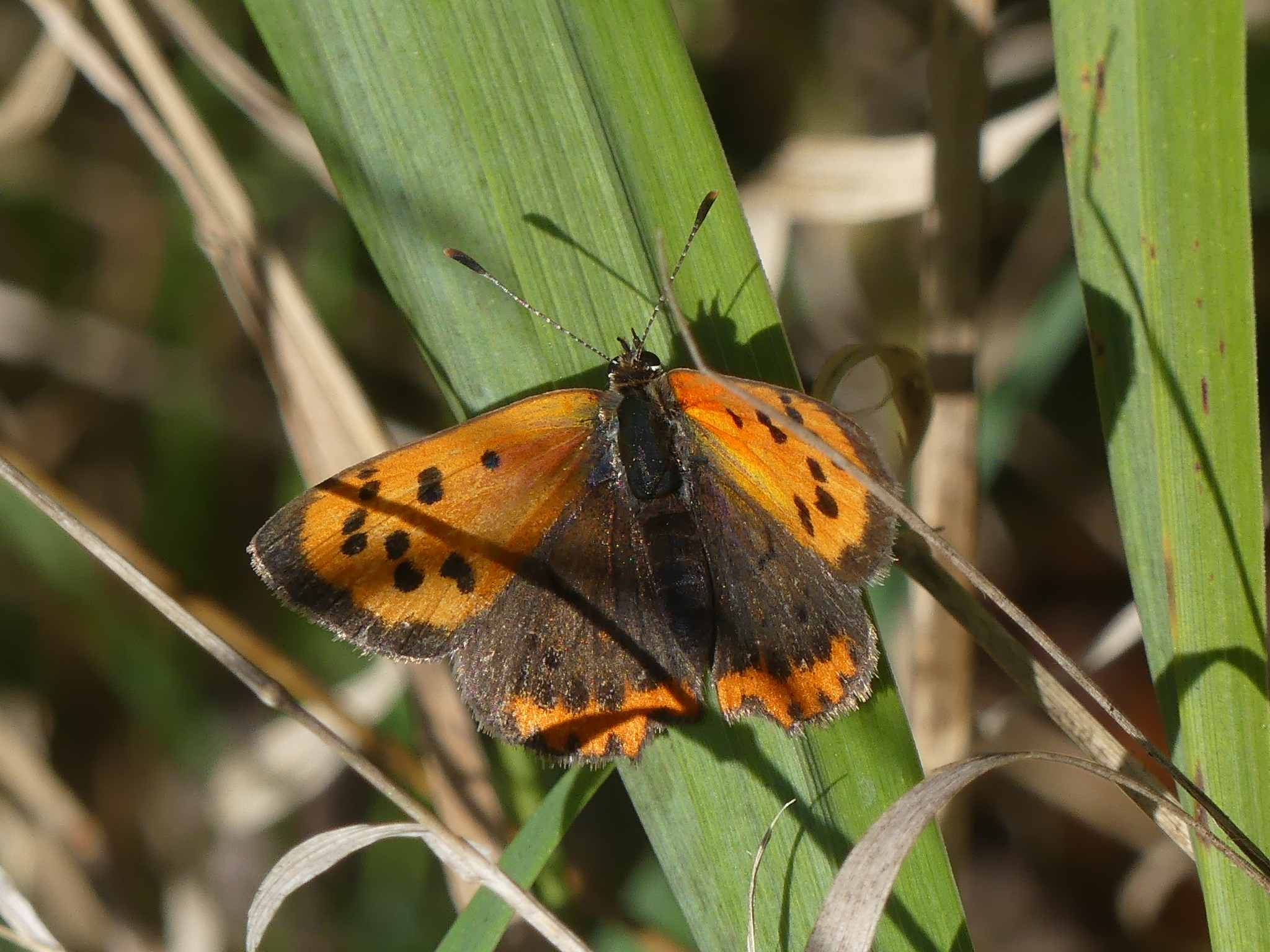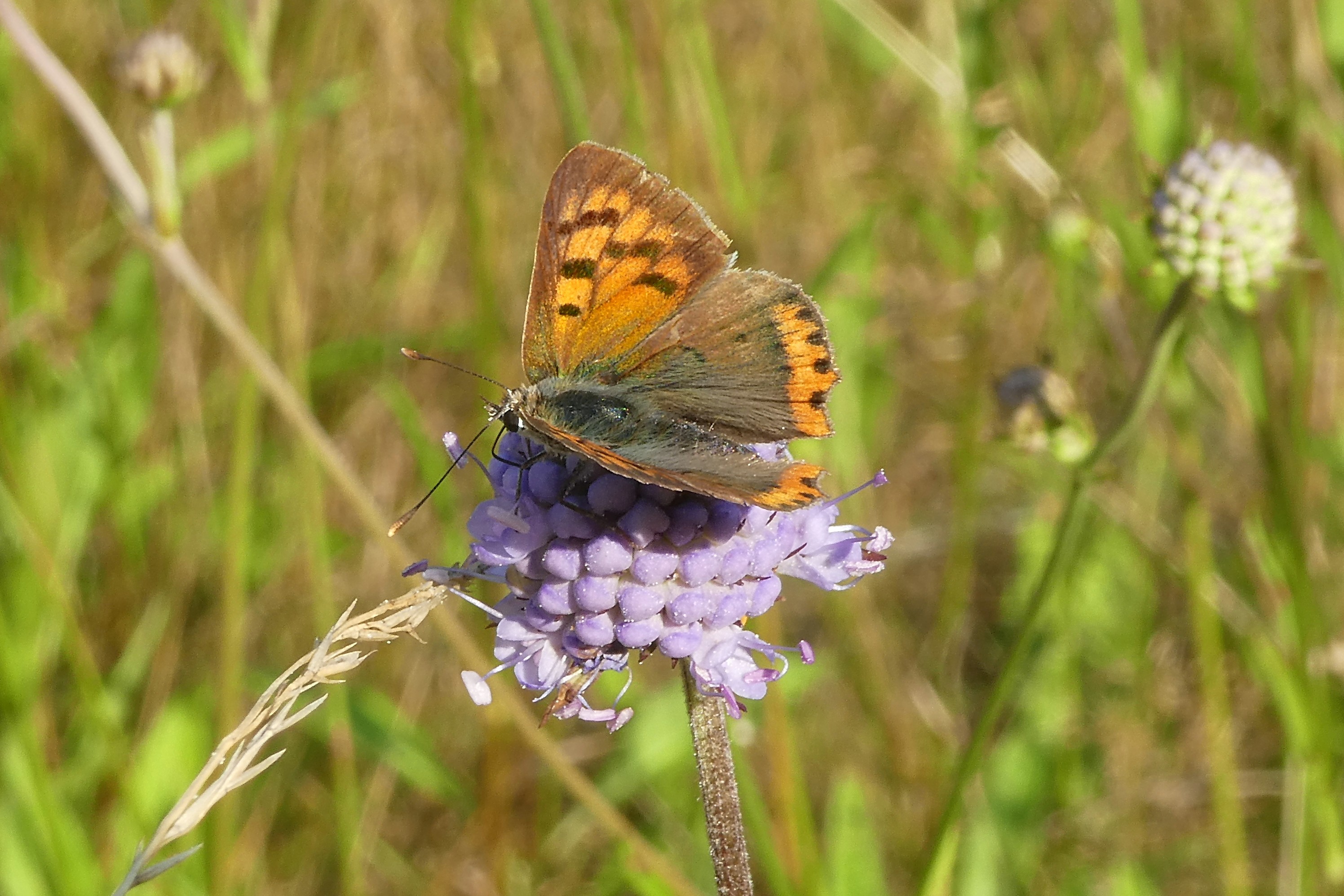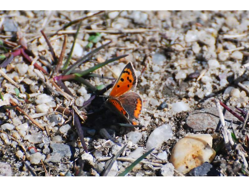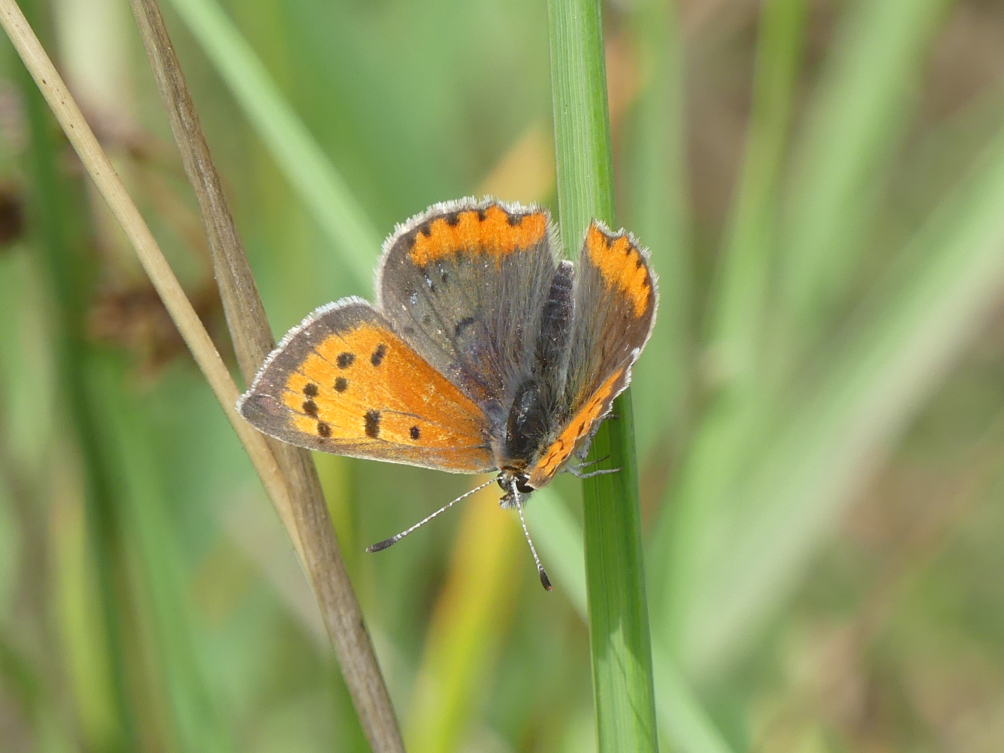 Kleiner Feuerfalter (Lycaena phlaeas (Linnaeus, 1761)), Laue, Rekultivierungsbereich der Tagebaulandschaft Goitzsche östlich vom Seelhausener See, nahe Leipzig, 16. Juni 2019