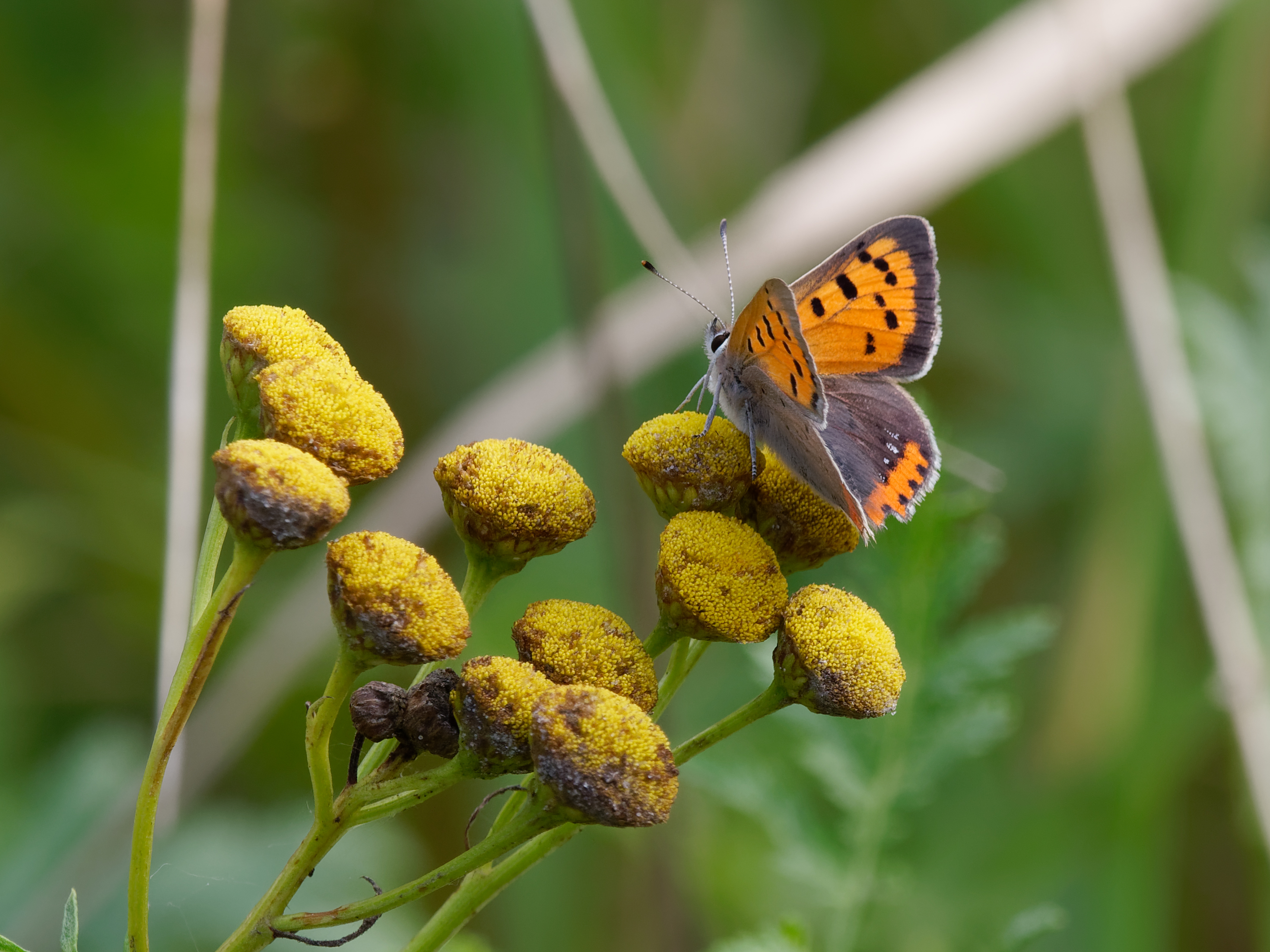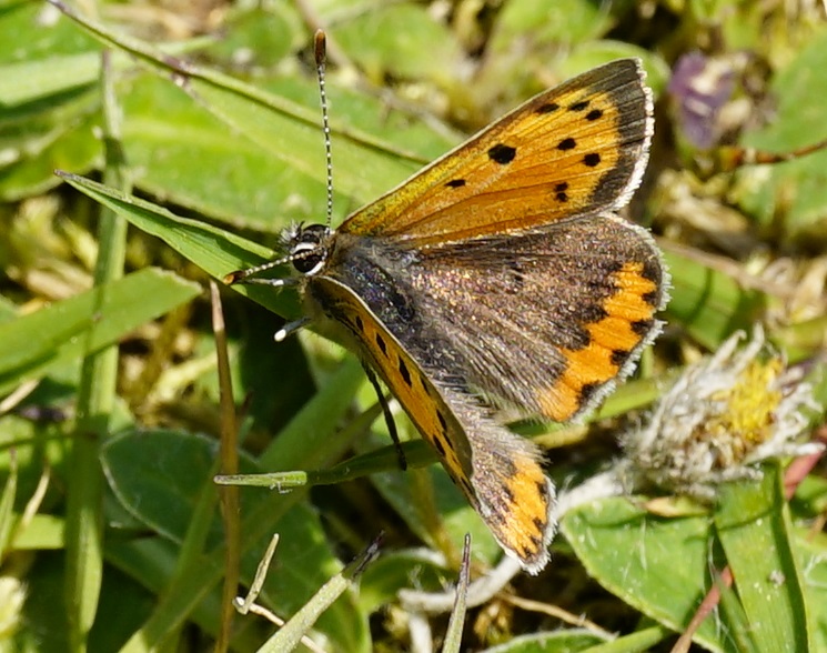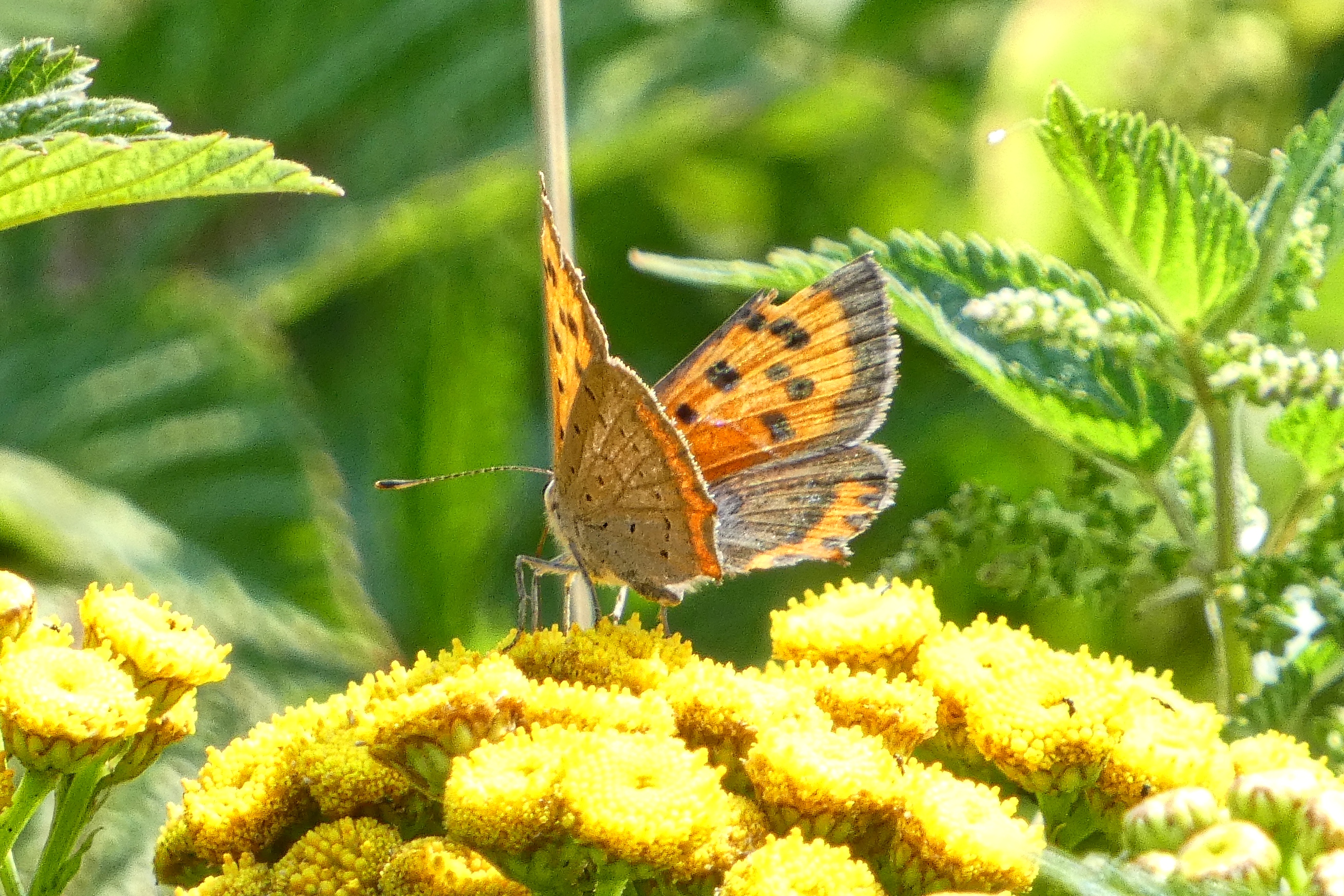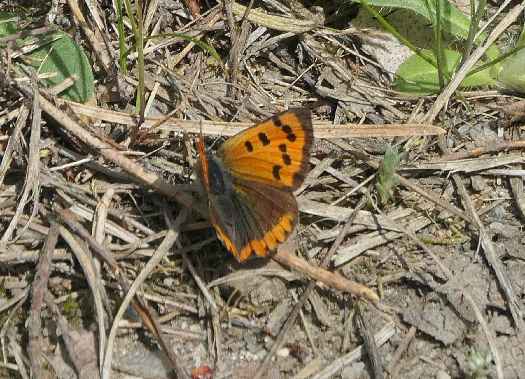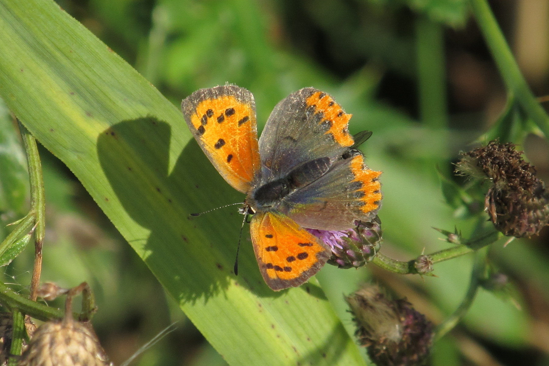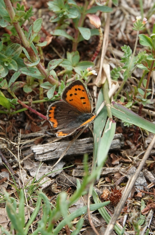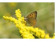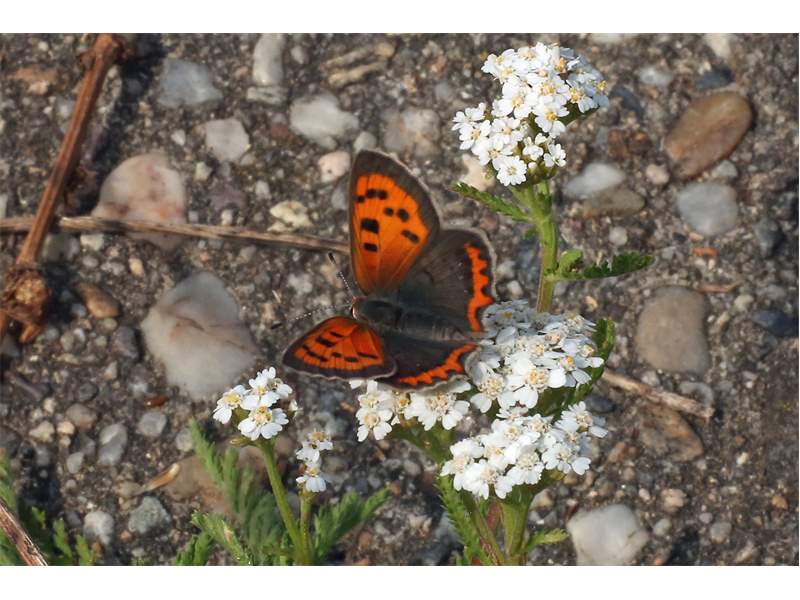 Kleiner Feuerfalter (Lycaena phlaeas (Linnaeus, 1761)), Laue, Rekultivierungsbereich der Tagebaulandschaft Goitzsche östlich vom Seelhausener See, nahe Leipzig, 16. Juni 2019