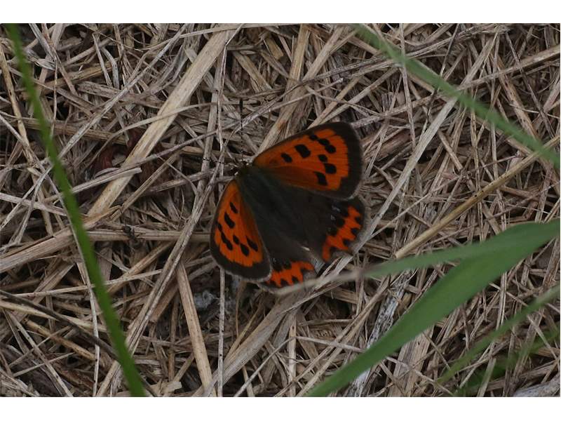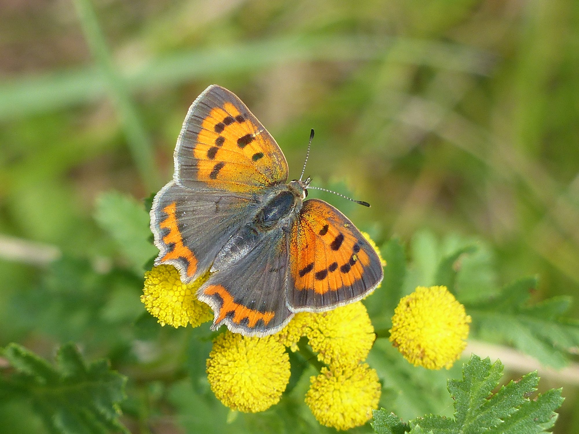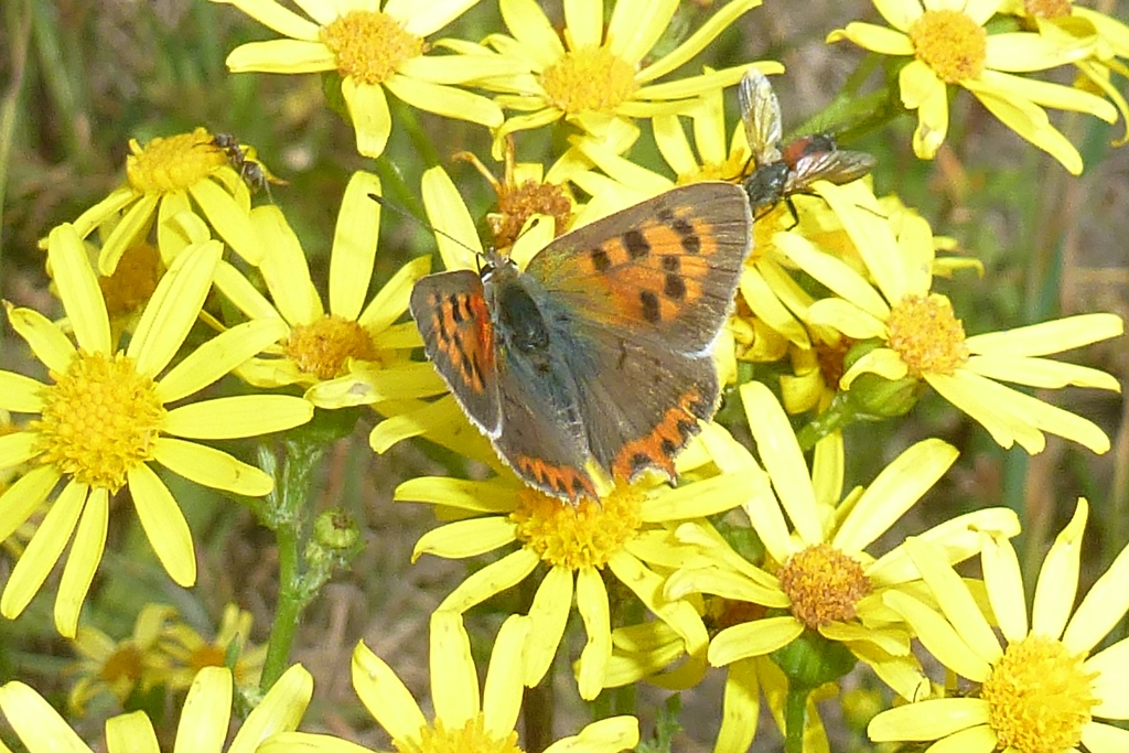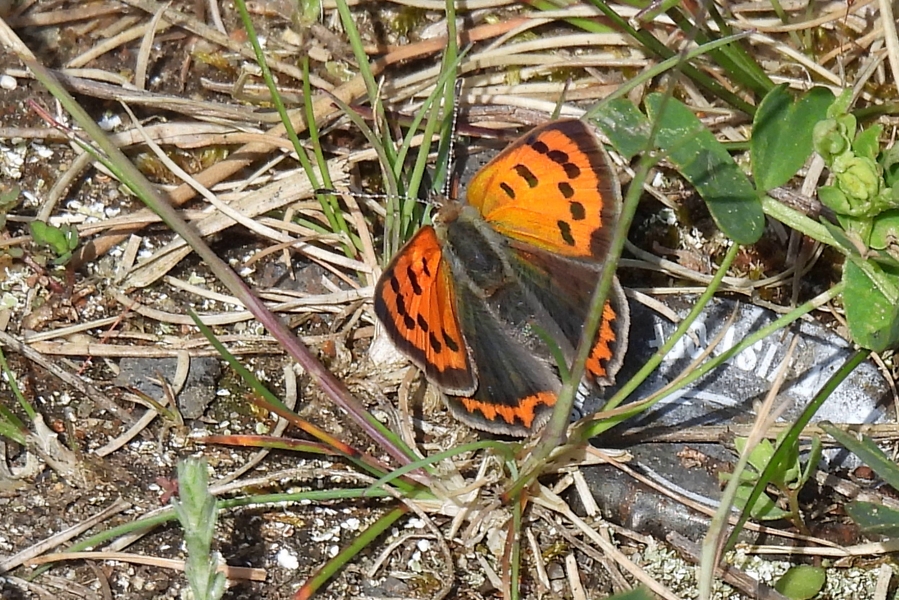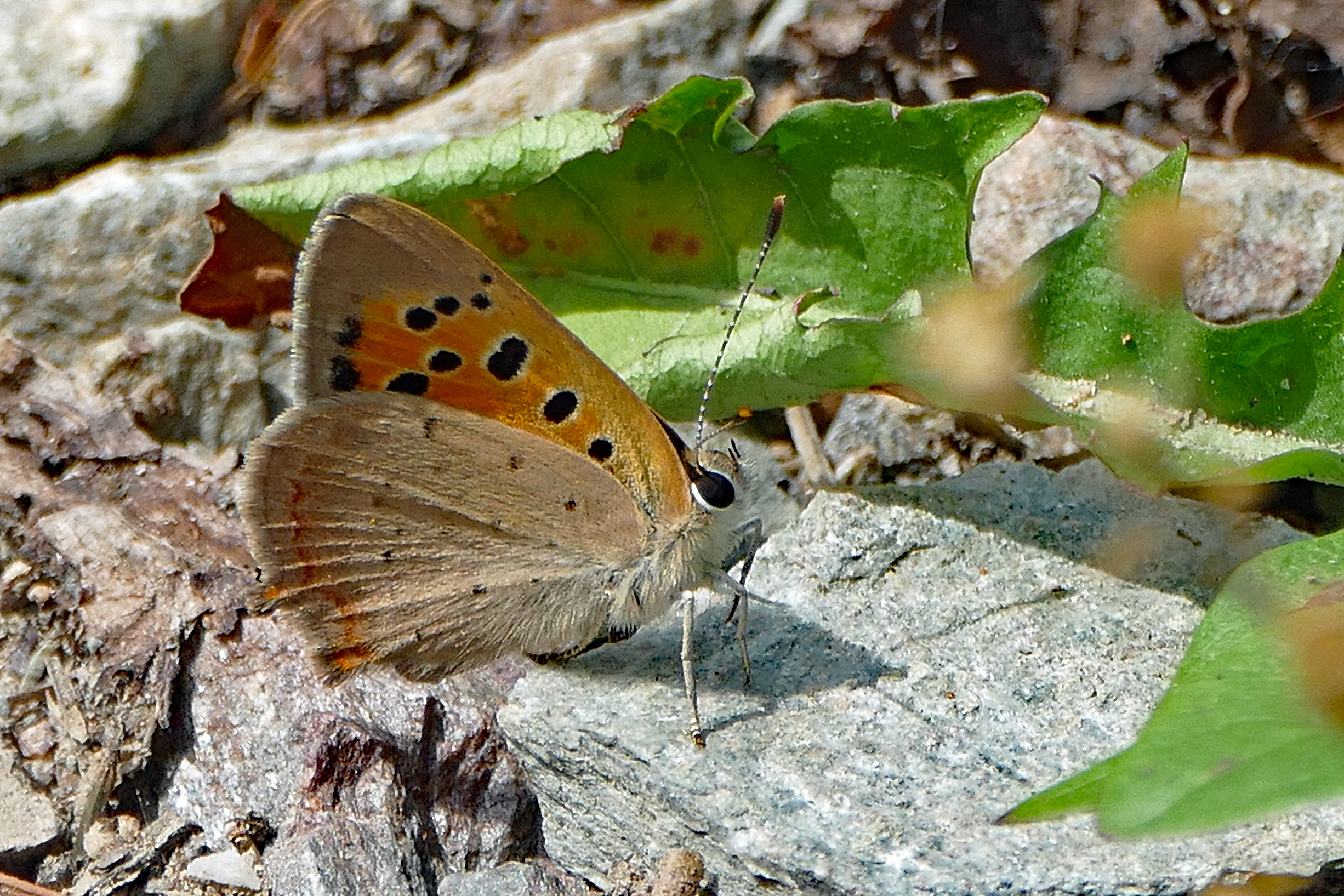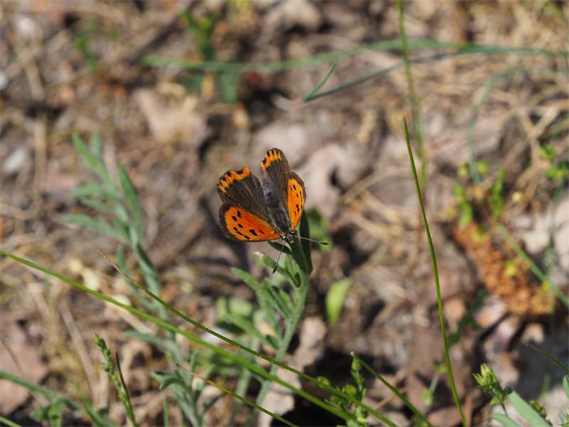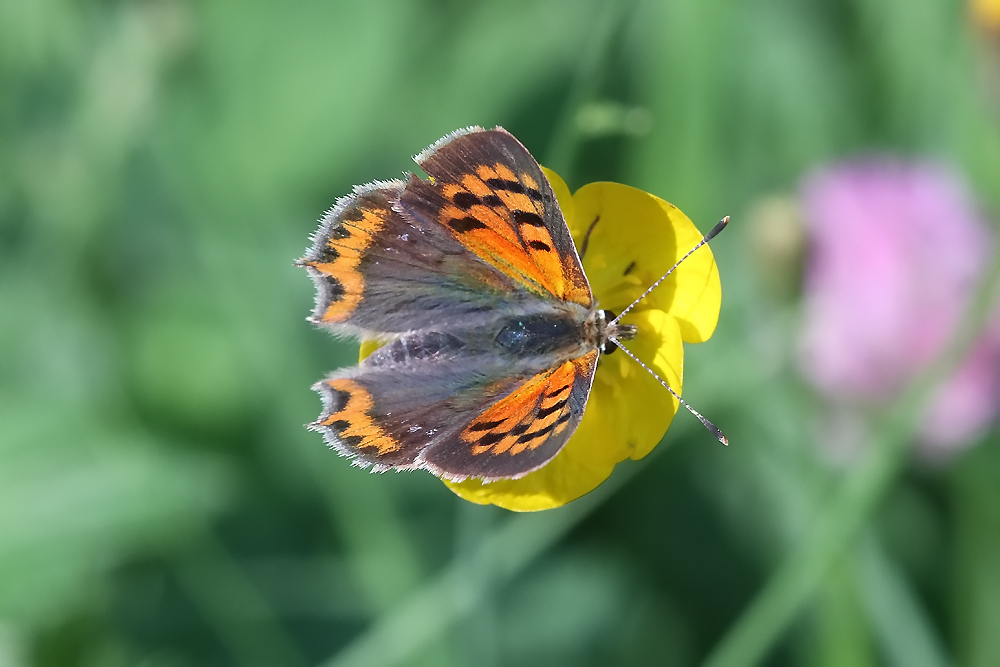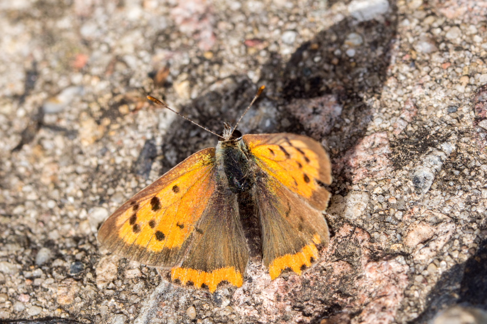 Kleiner Feuerfalter (Lycaena phlaeas (Linnaeus, 1761)), Laue, Rekultivierungsbereich der Tagebaulandschaft Goitzsche östlich vom Seelhausener See, nahe Leipzig, 16. Juni 2019