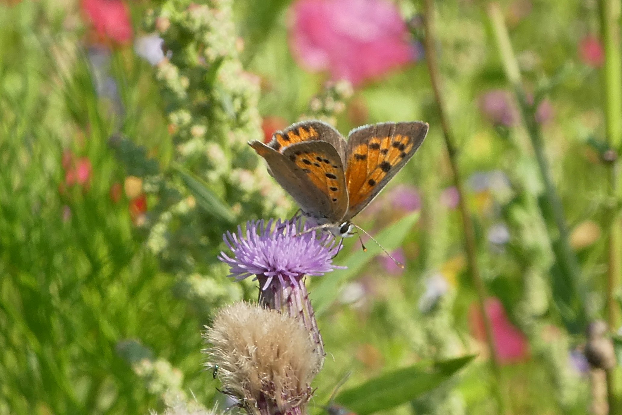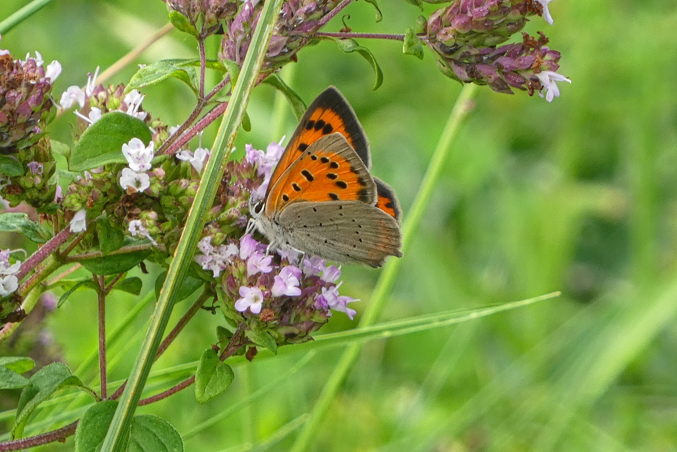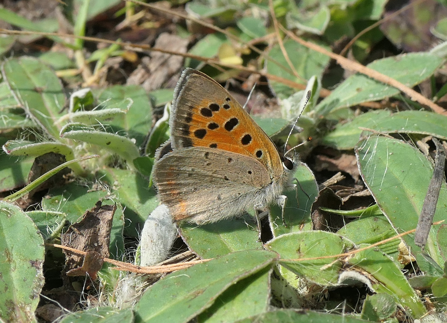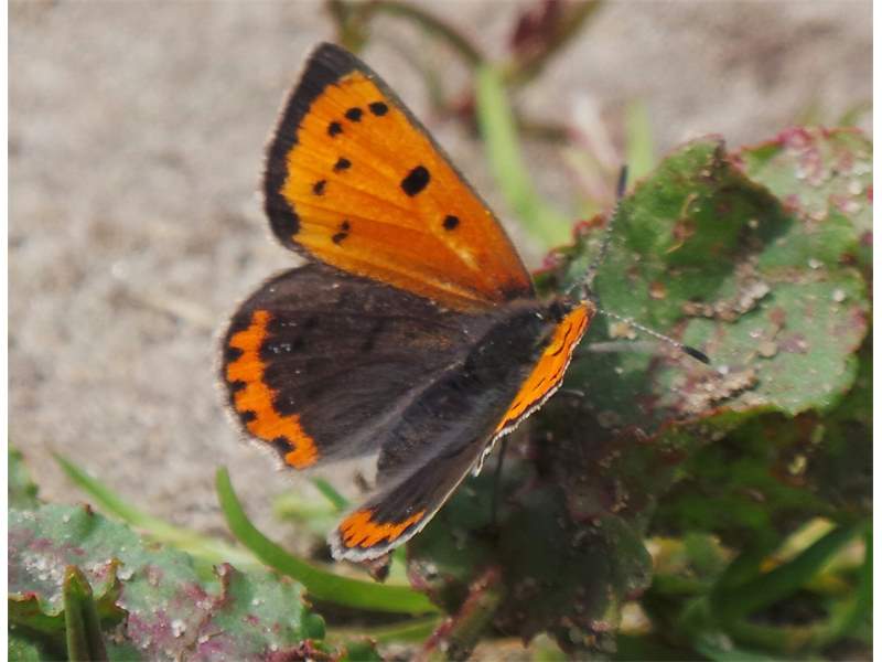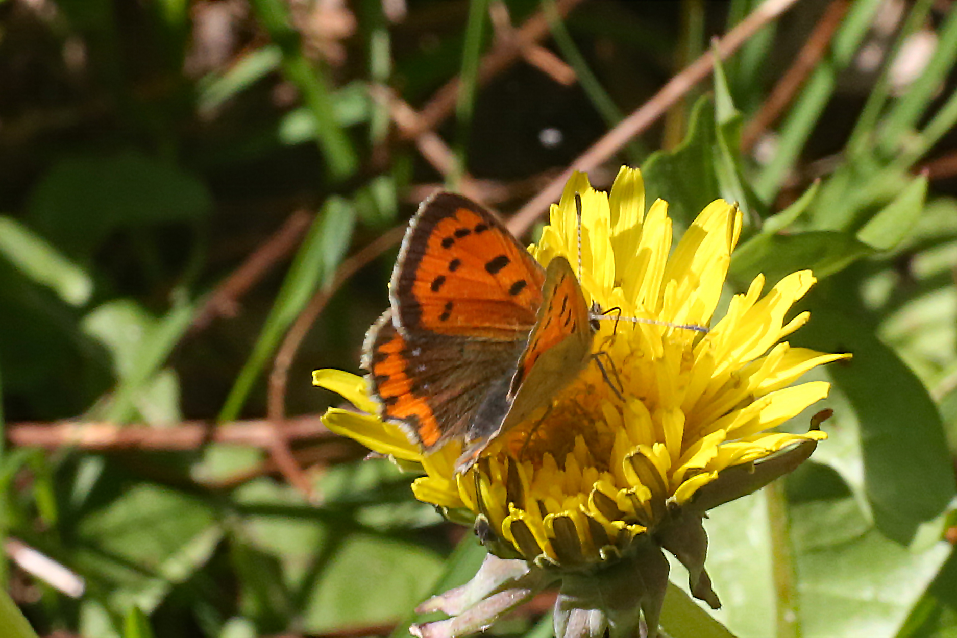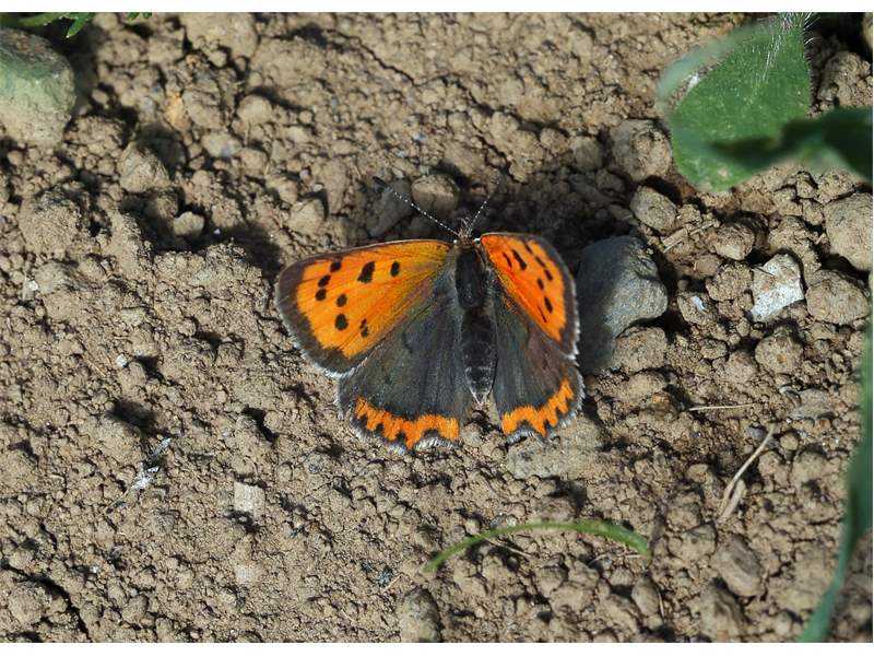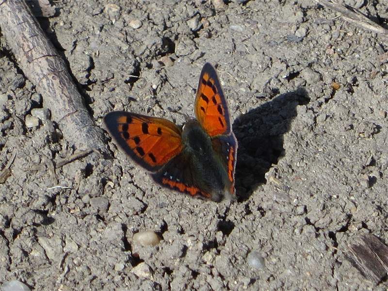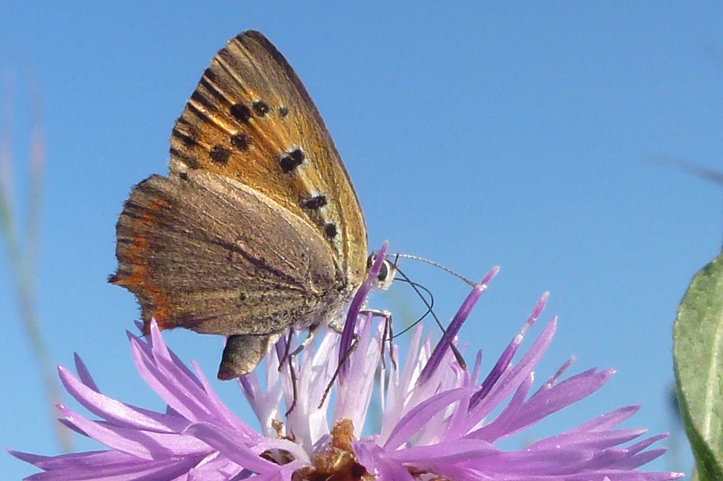 Kleiner Feuerfalter (Lycaena phlaeas (Linnaeus, 1761)), Laue, Rekultivierungsbereich der Tagebaulandschaft Goitzsche östlich vom Seelhausener See, nahe Leipzig, 16. Juni 2019