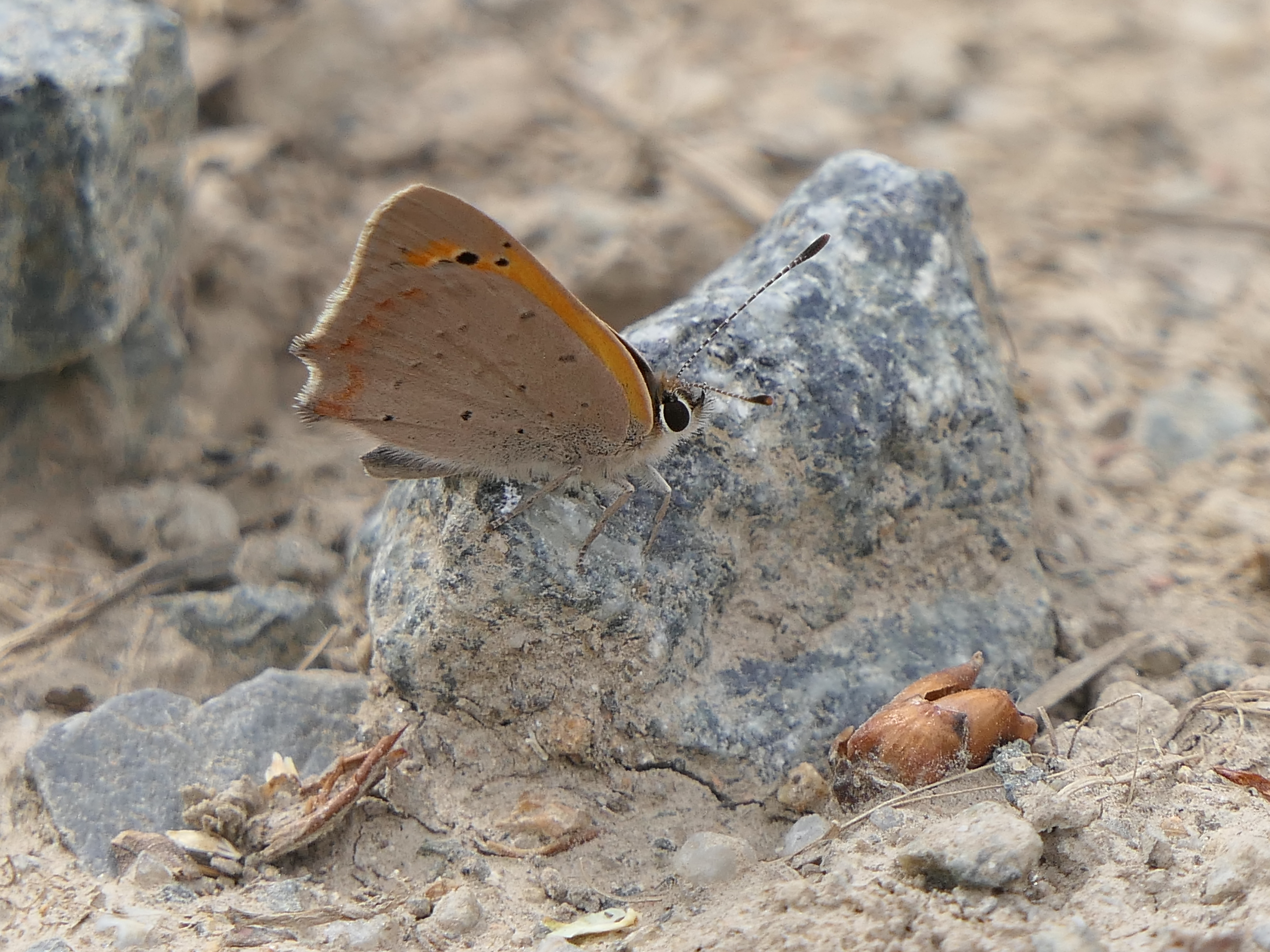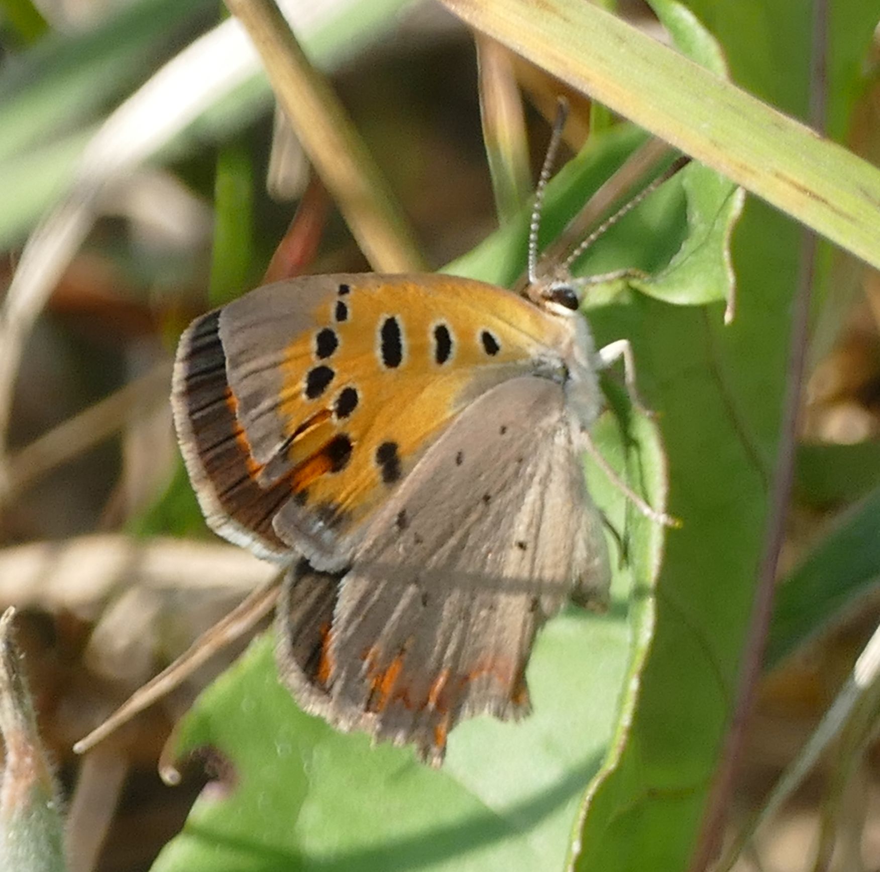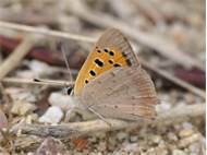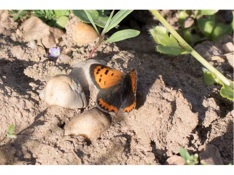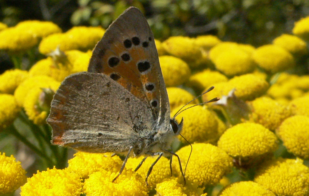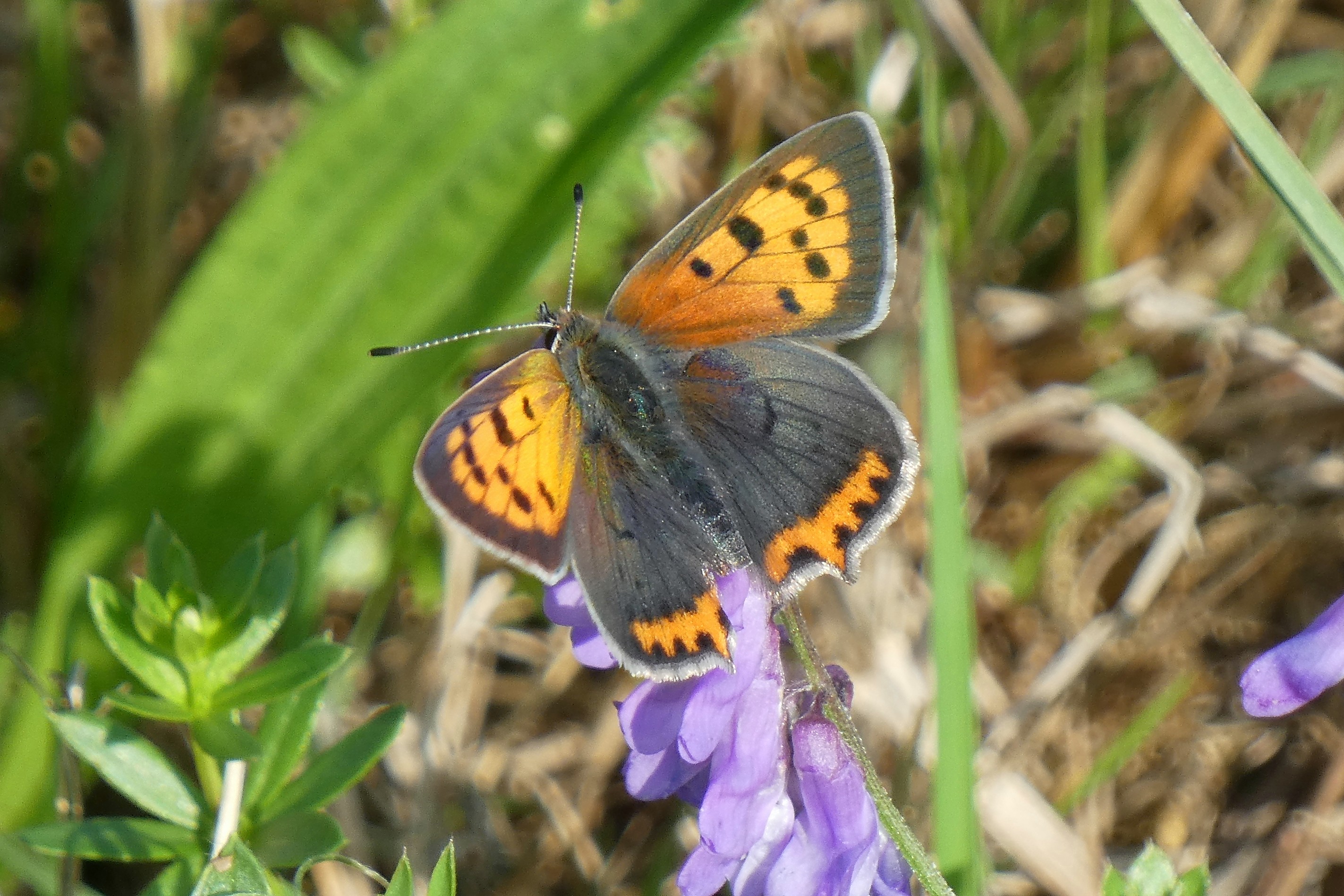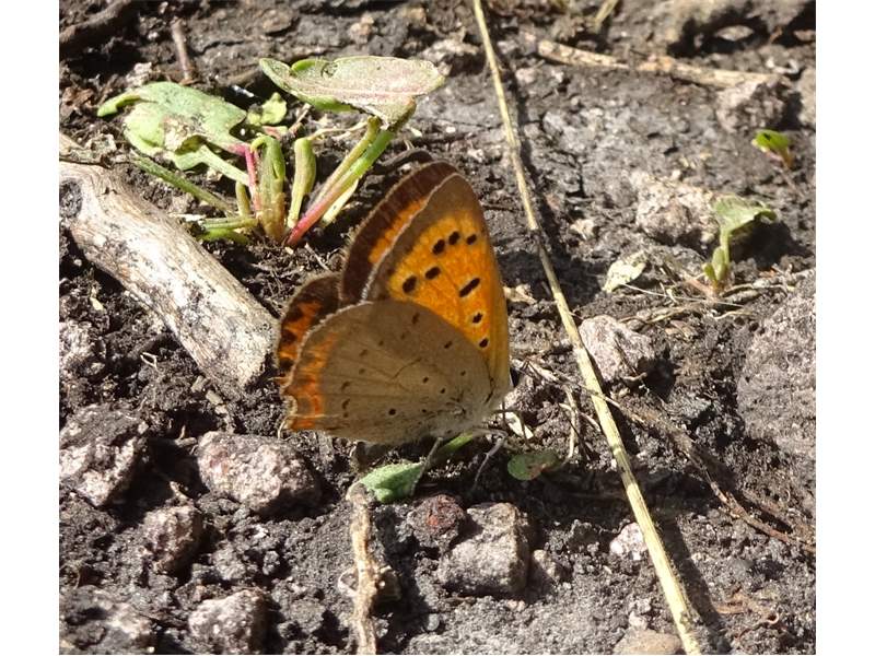 Kleiner Feuerfalter (Lycaena phlaeas (Linnaeus, 1761)), Laue, Rekultivierungsbereich der Tagebaulandschaft Goitzsche östlich vom Seelhausener See, nahe Leipzig, 16. Juni 2019