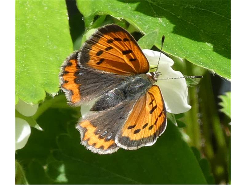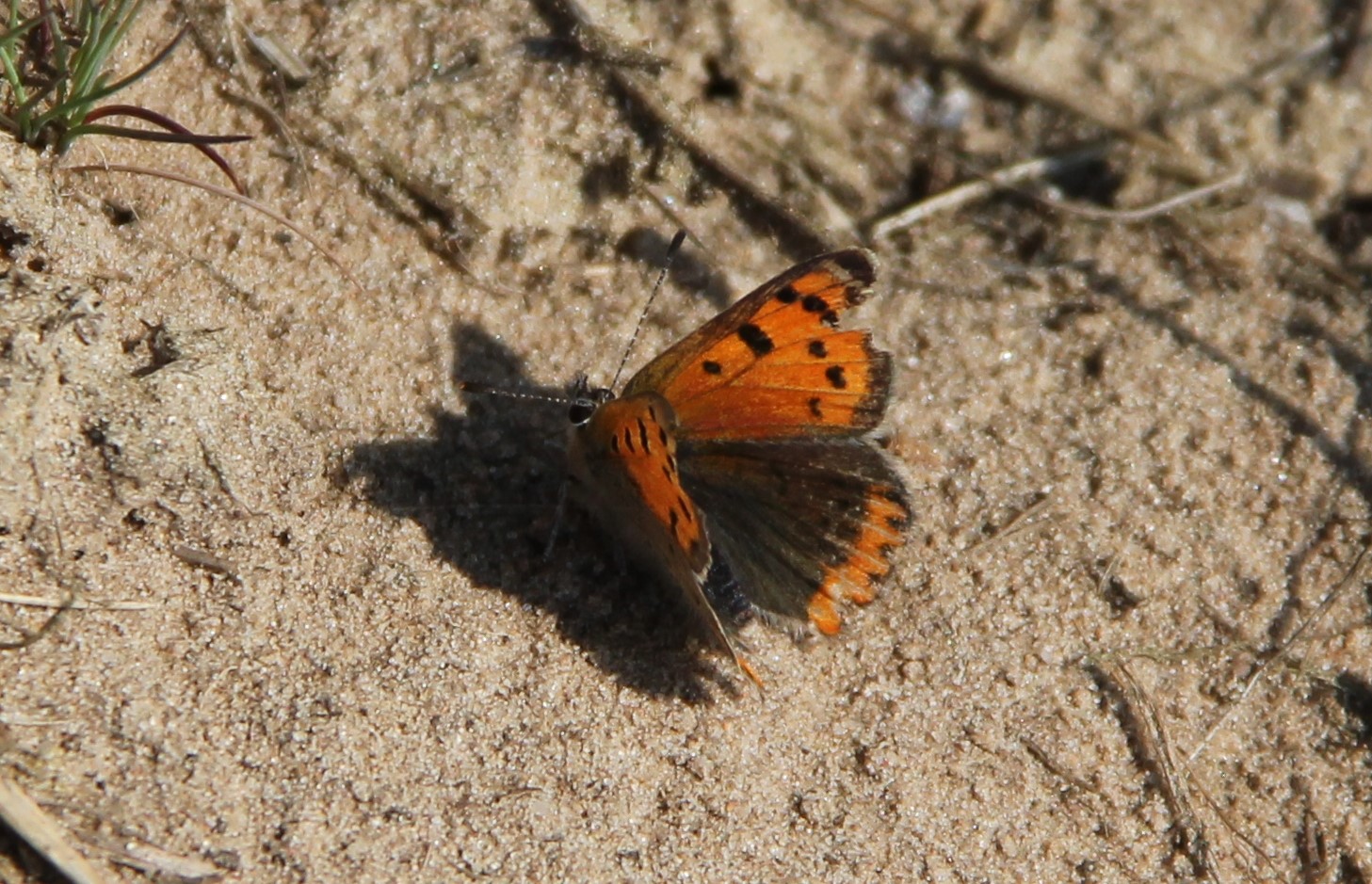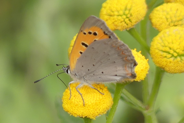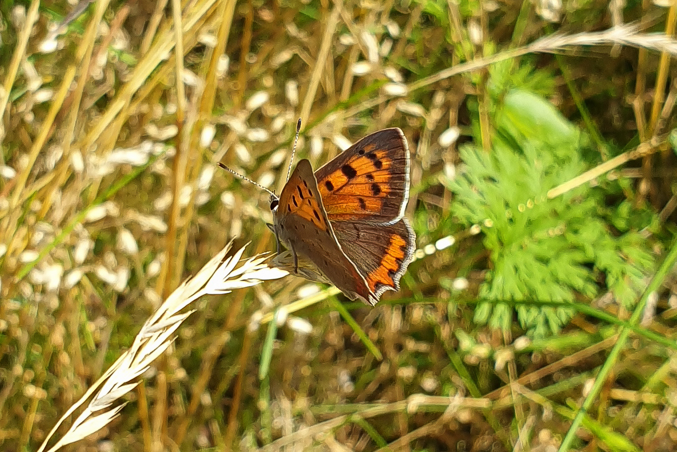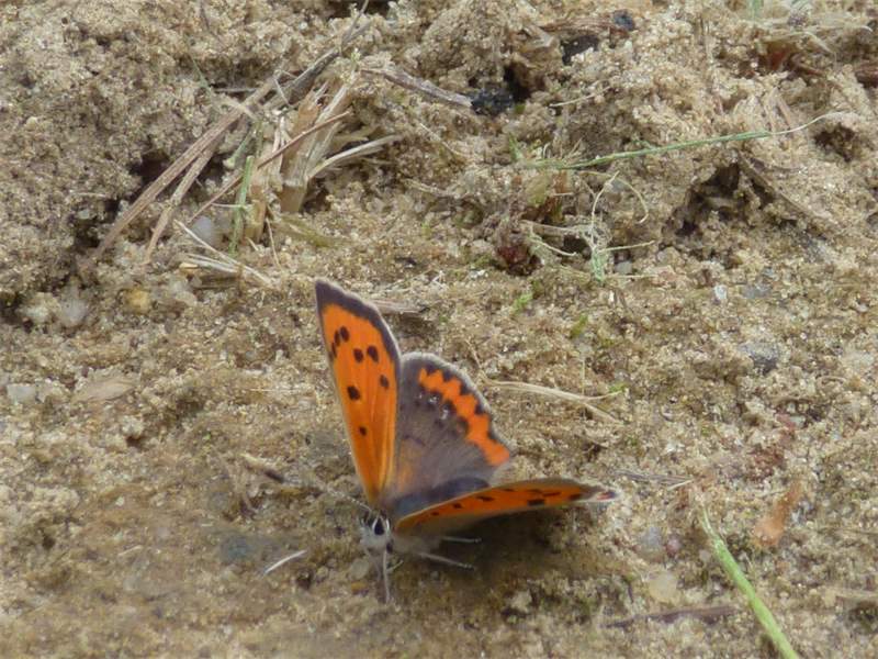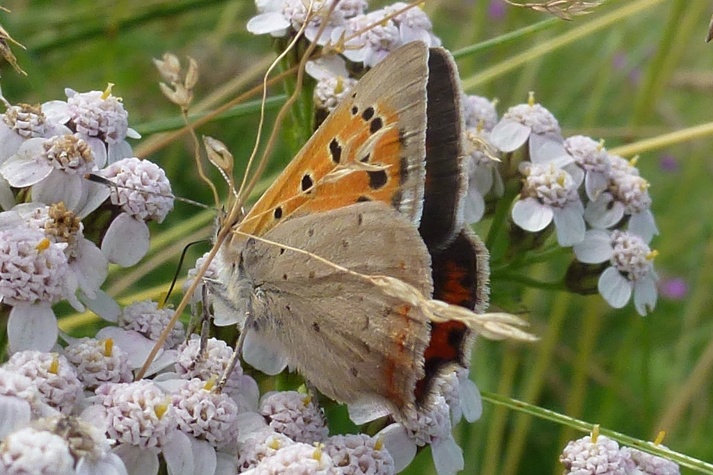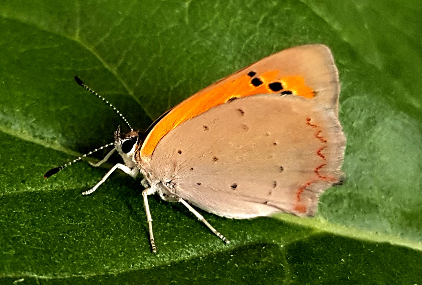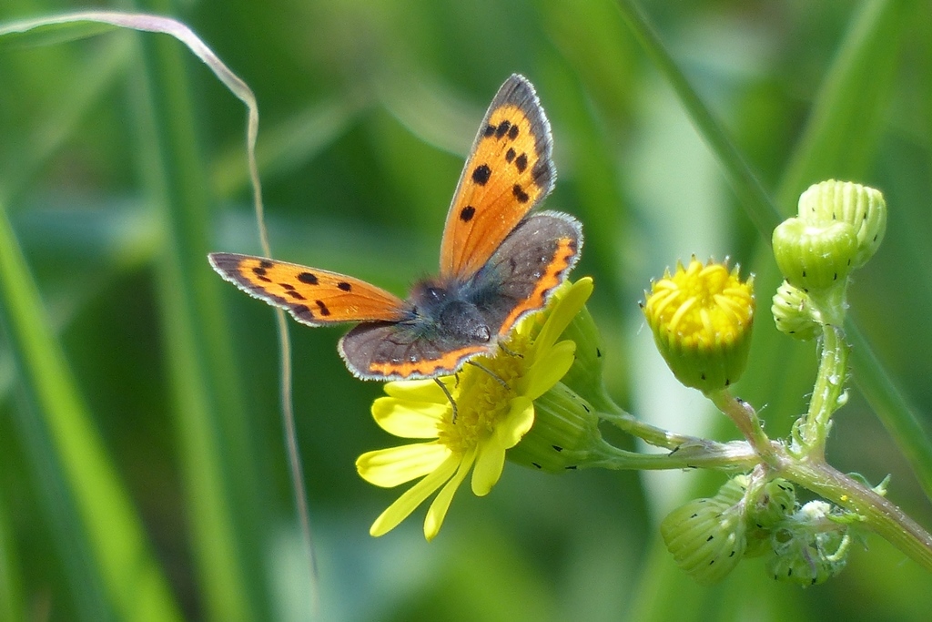Kleiner Feuerfalter (Lycaena phlaeas (Linnaeus, 1761)), Laue, Rekultivierungsbereich der Tagebaulandschaft Goitzsche östlich vom Seelhausener See, nahe Leipzig, 16. Juni 2019