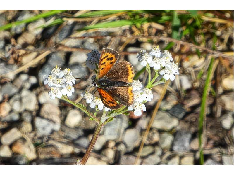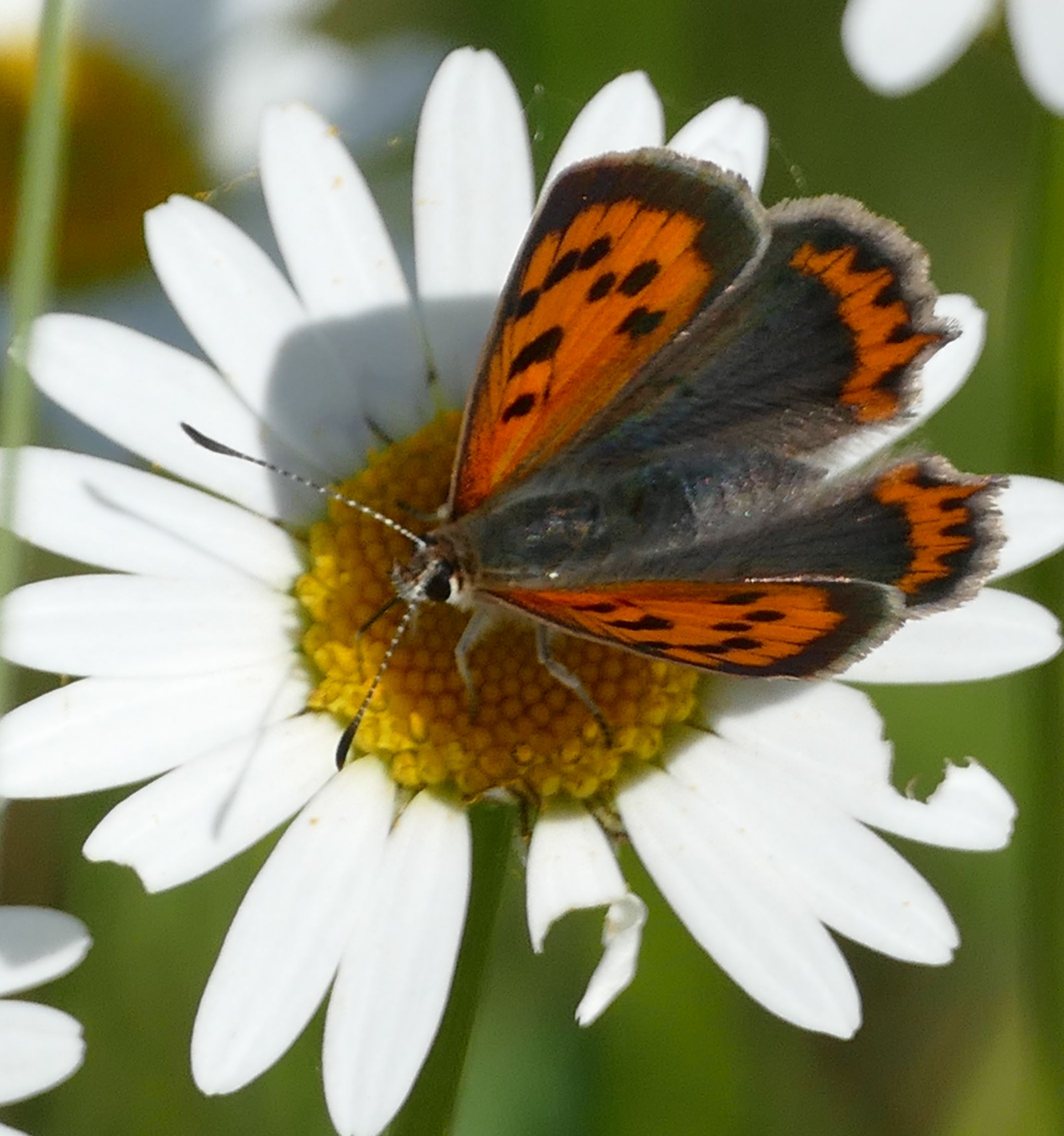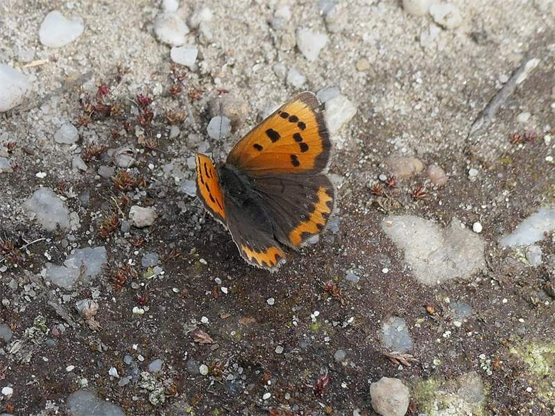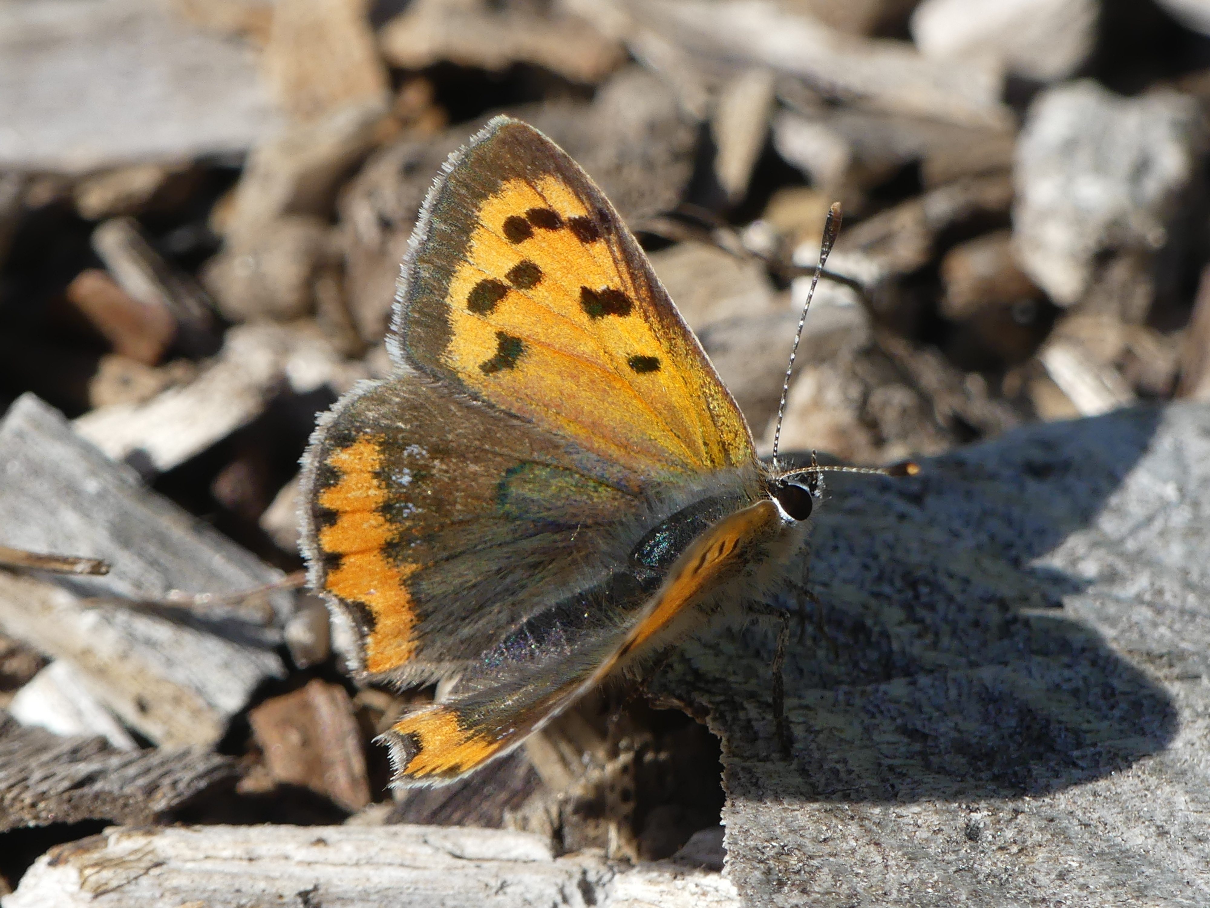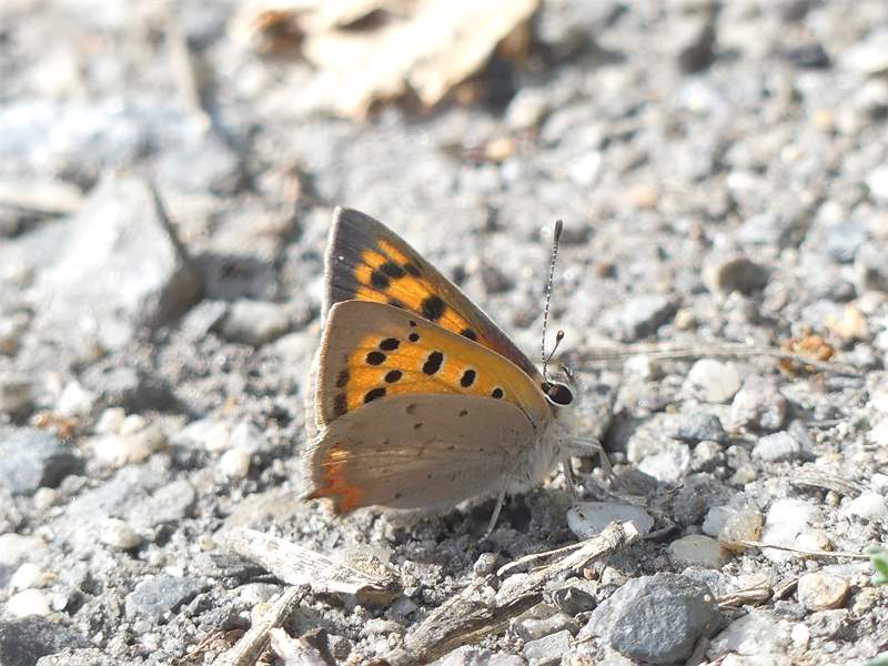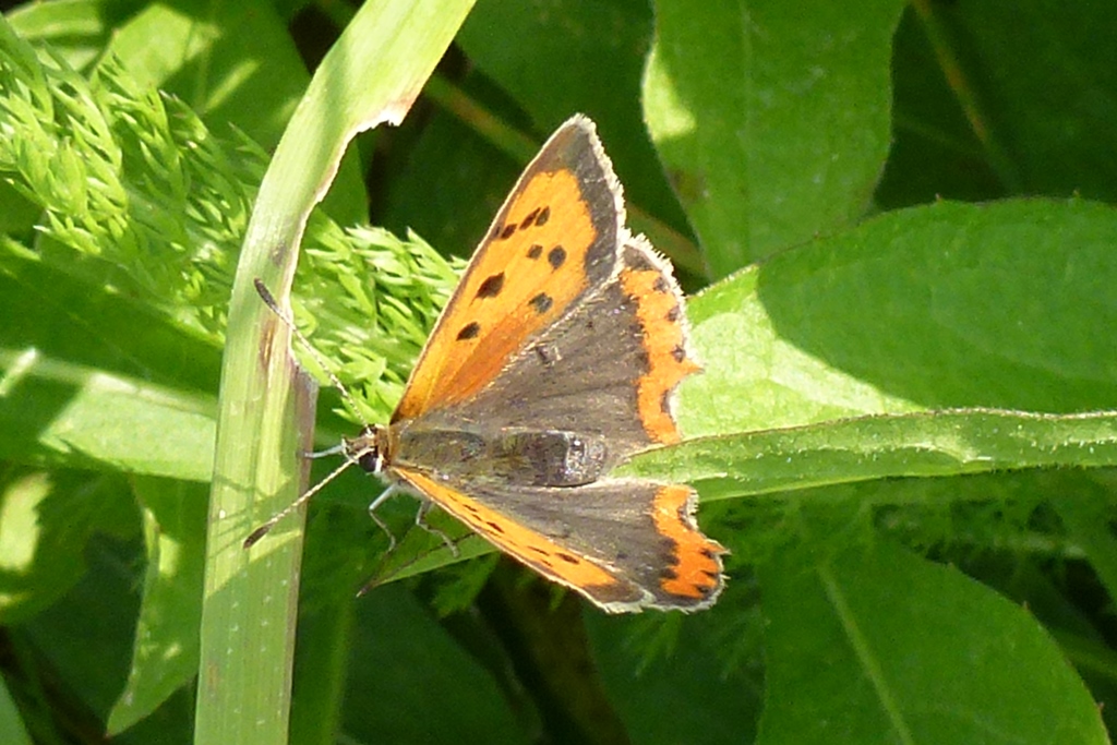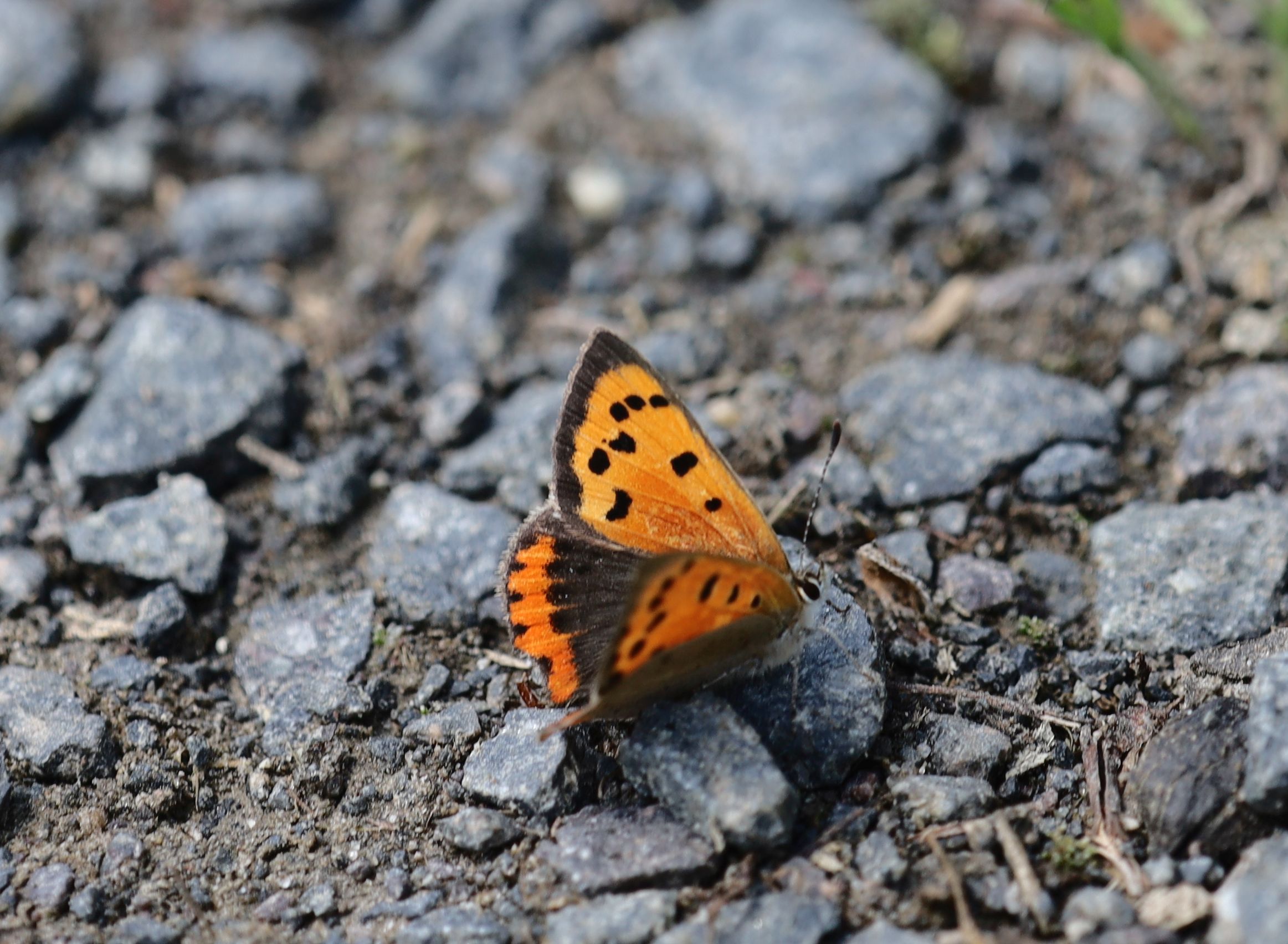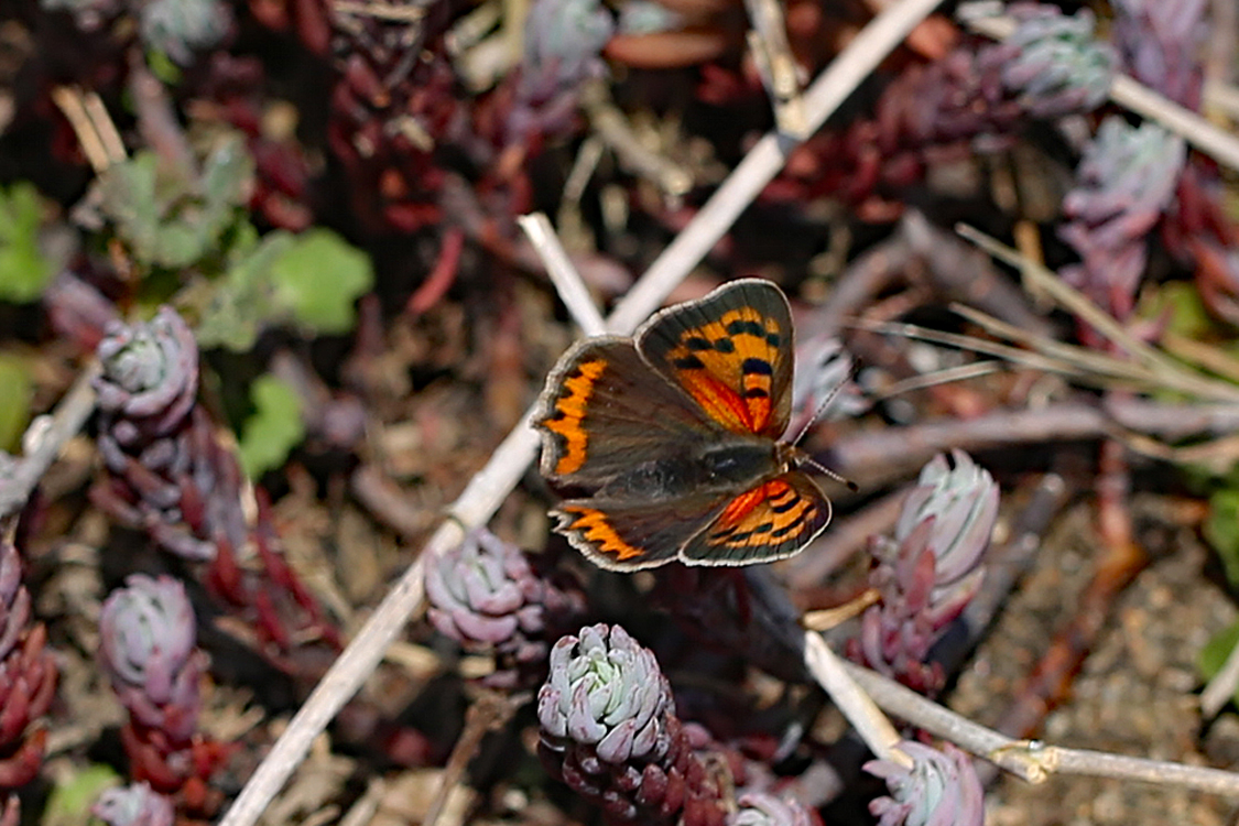 Kleiner Feuerfalter (Lycaena phlaeas (Linnaeus, 1761)), Laue, Rekultivierungsbereich der Tagebaulandschaft Goitzsche östlich vom Seelhausener See, nahe Leipzig, 16. Juni 2019