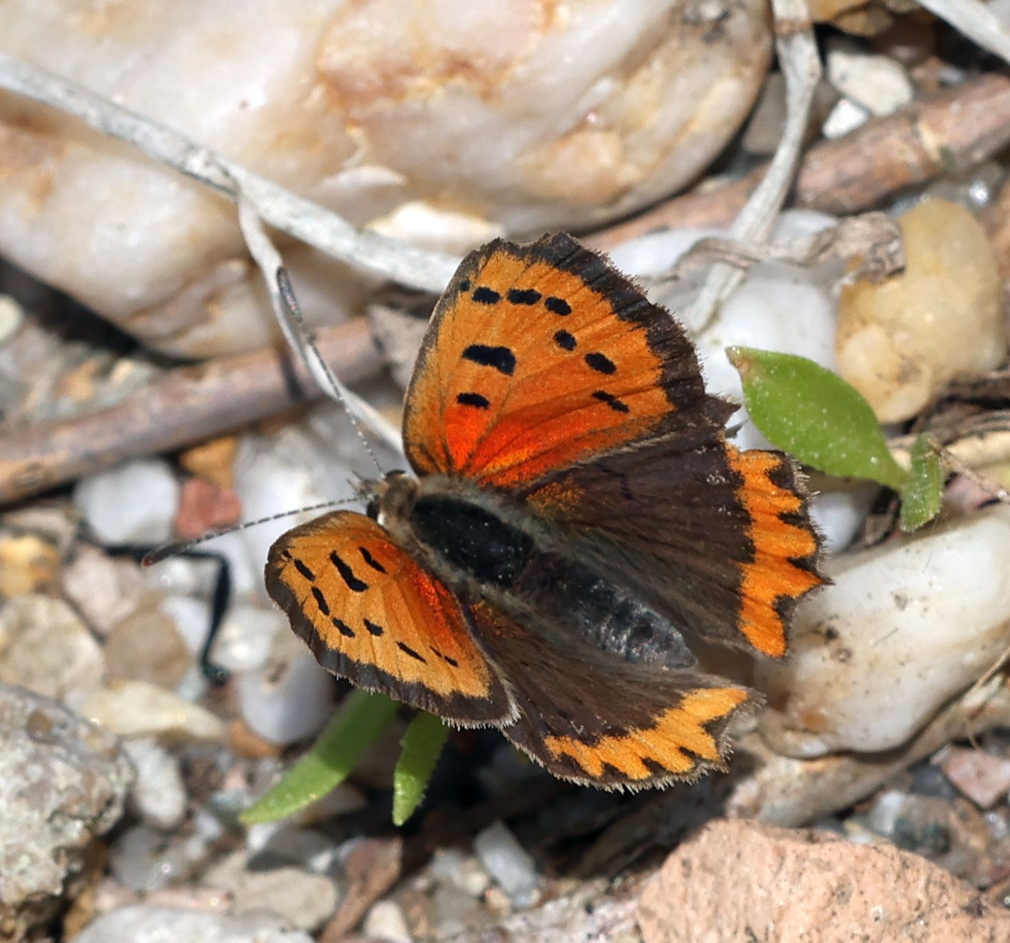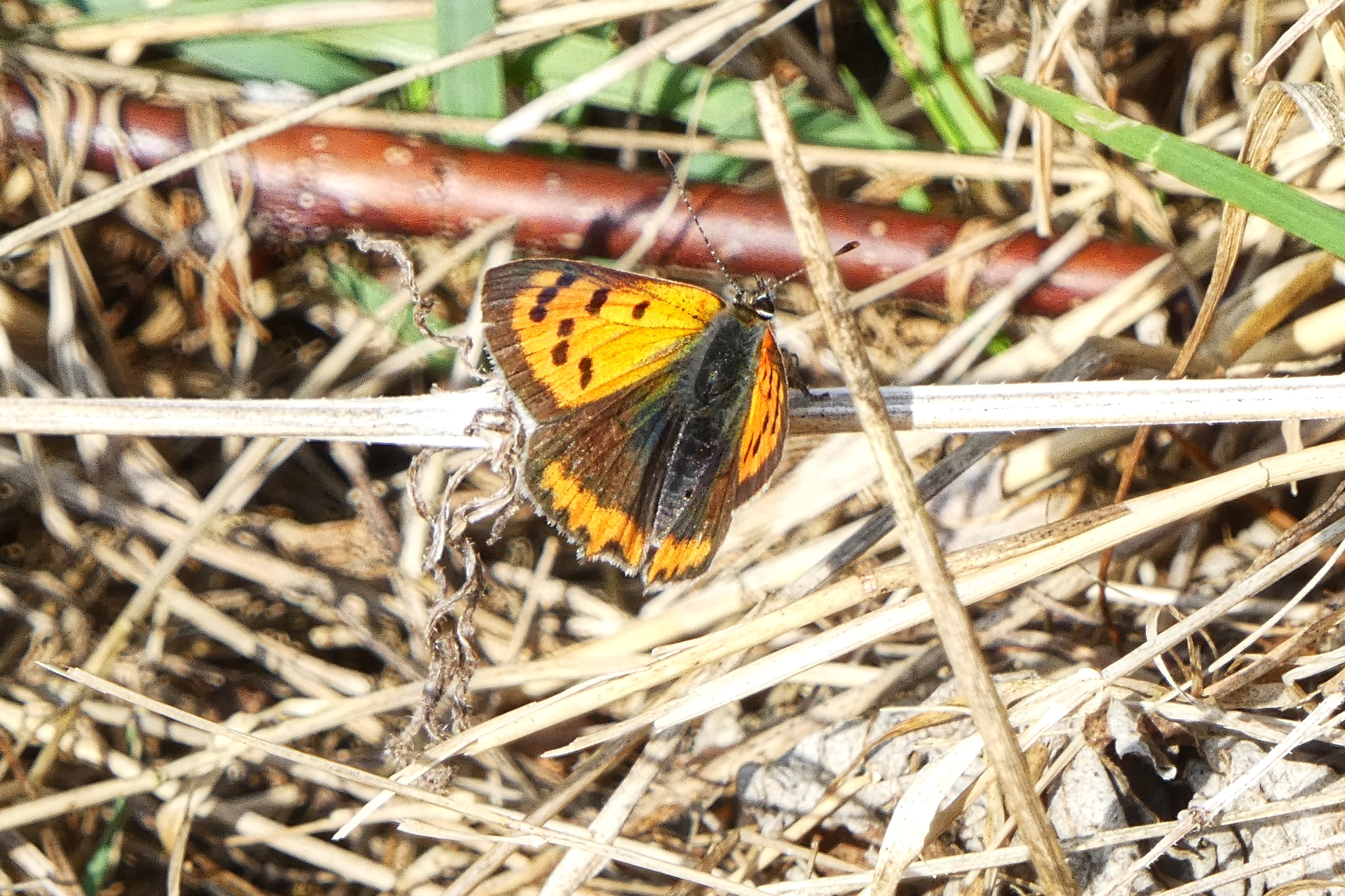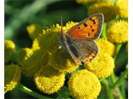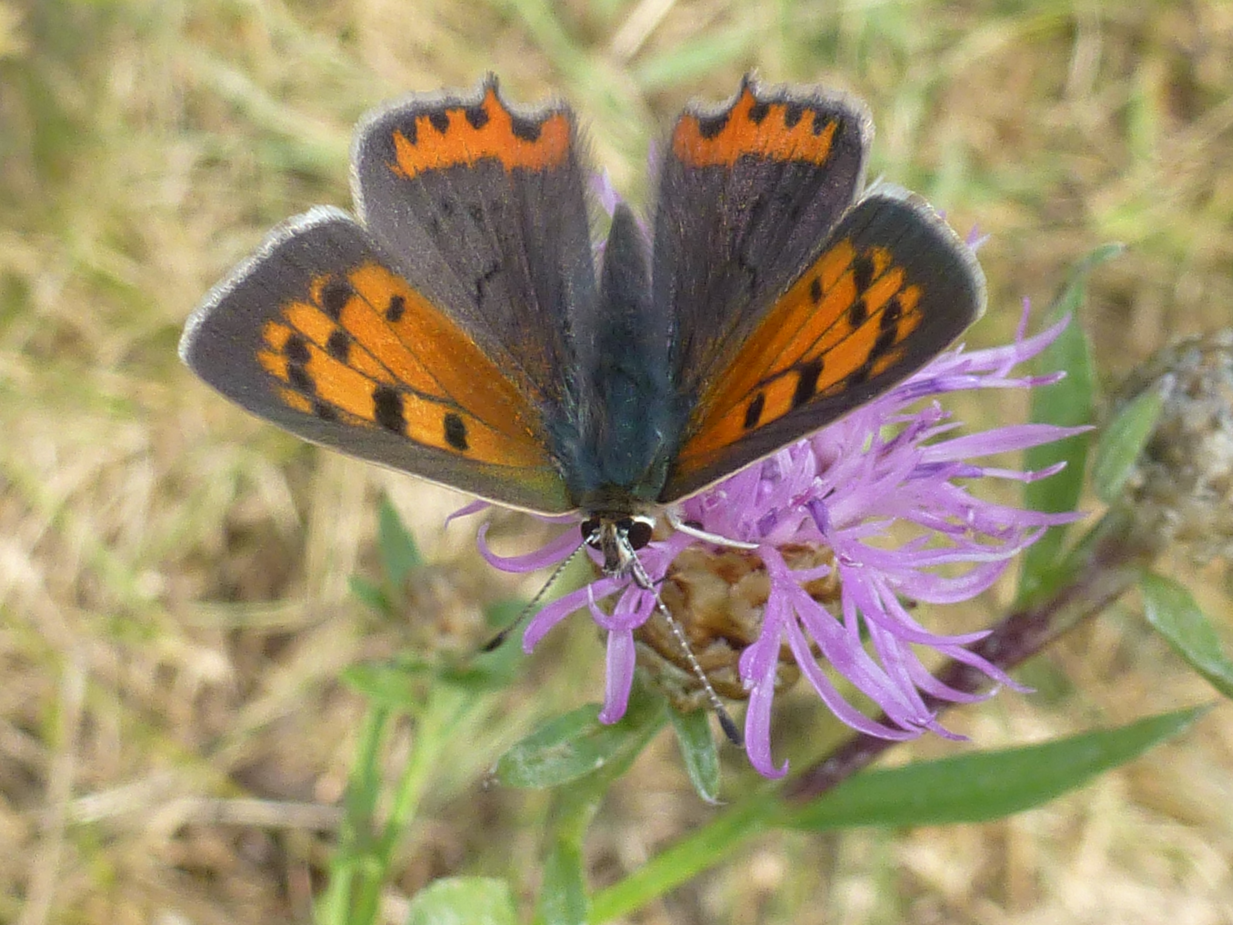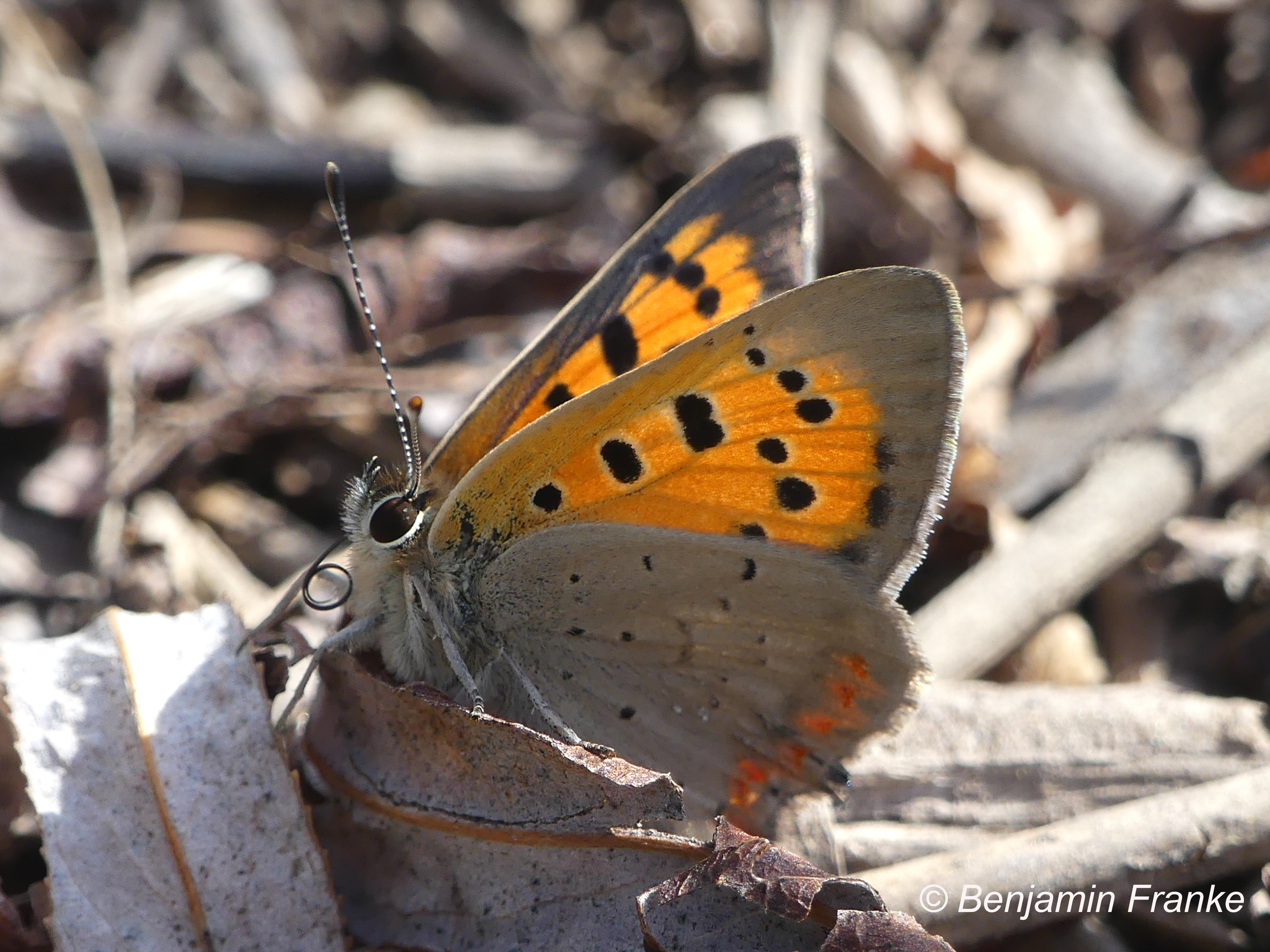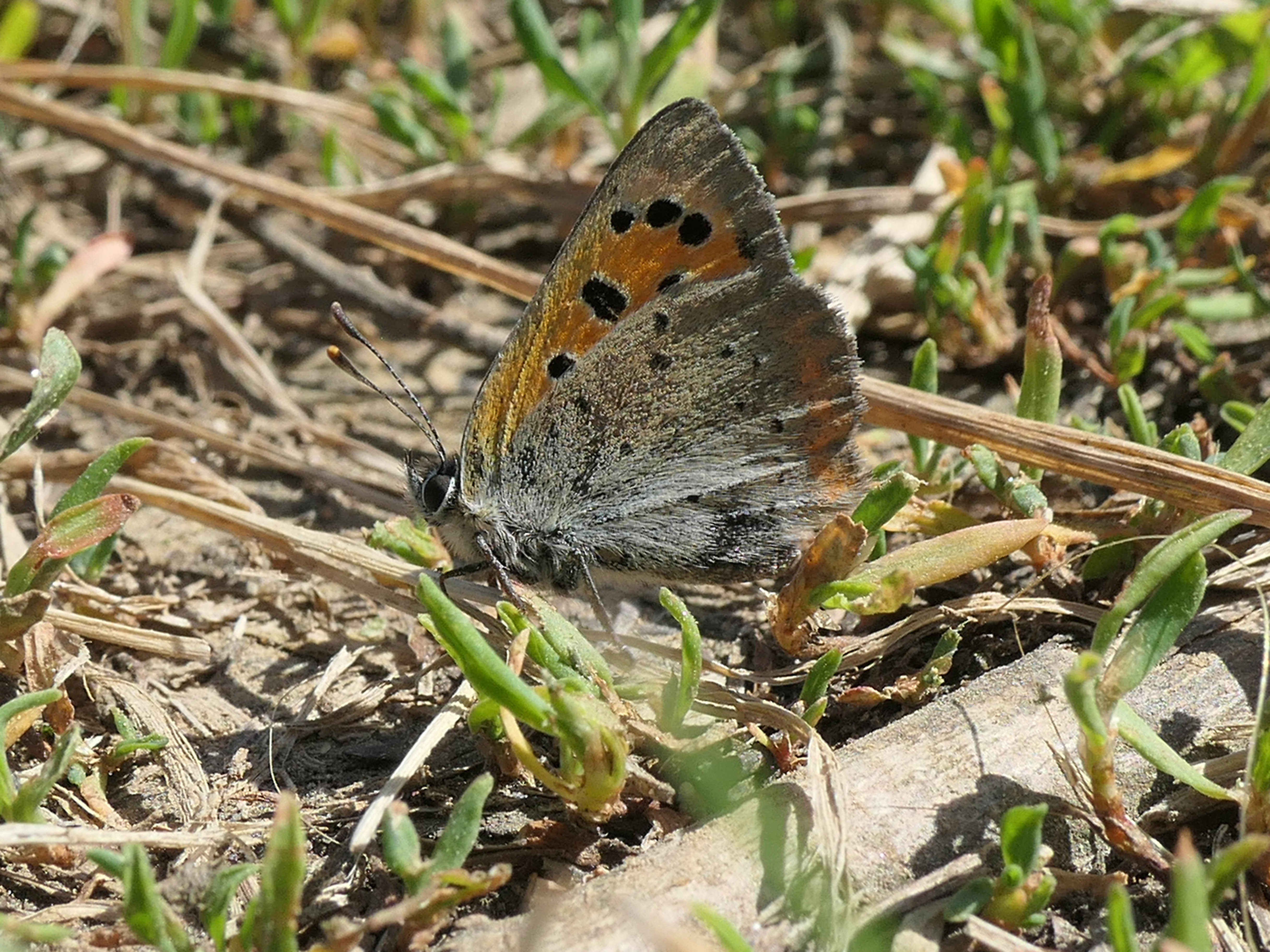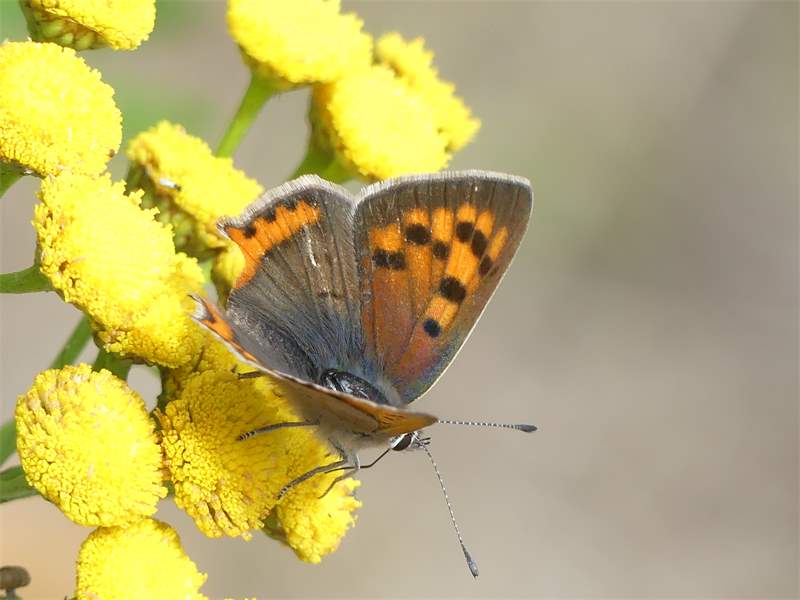 Kleiner Feuerfalter (Lycaena phlaeas (Linnaeus, 1761)), Laue, Rekultivierungsbereich der Tagebaulandschaft Goitzsche östlich vom Seelhausener See, nahe Leipzig, 16. Juni 2019