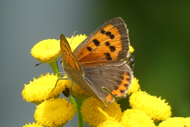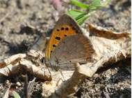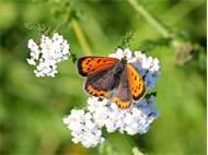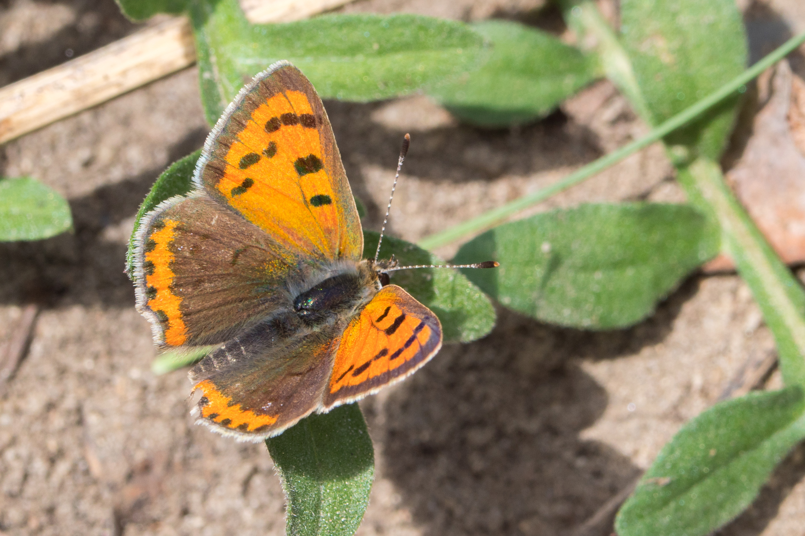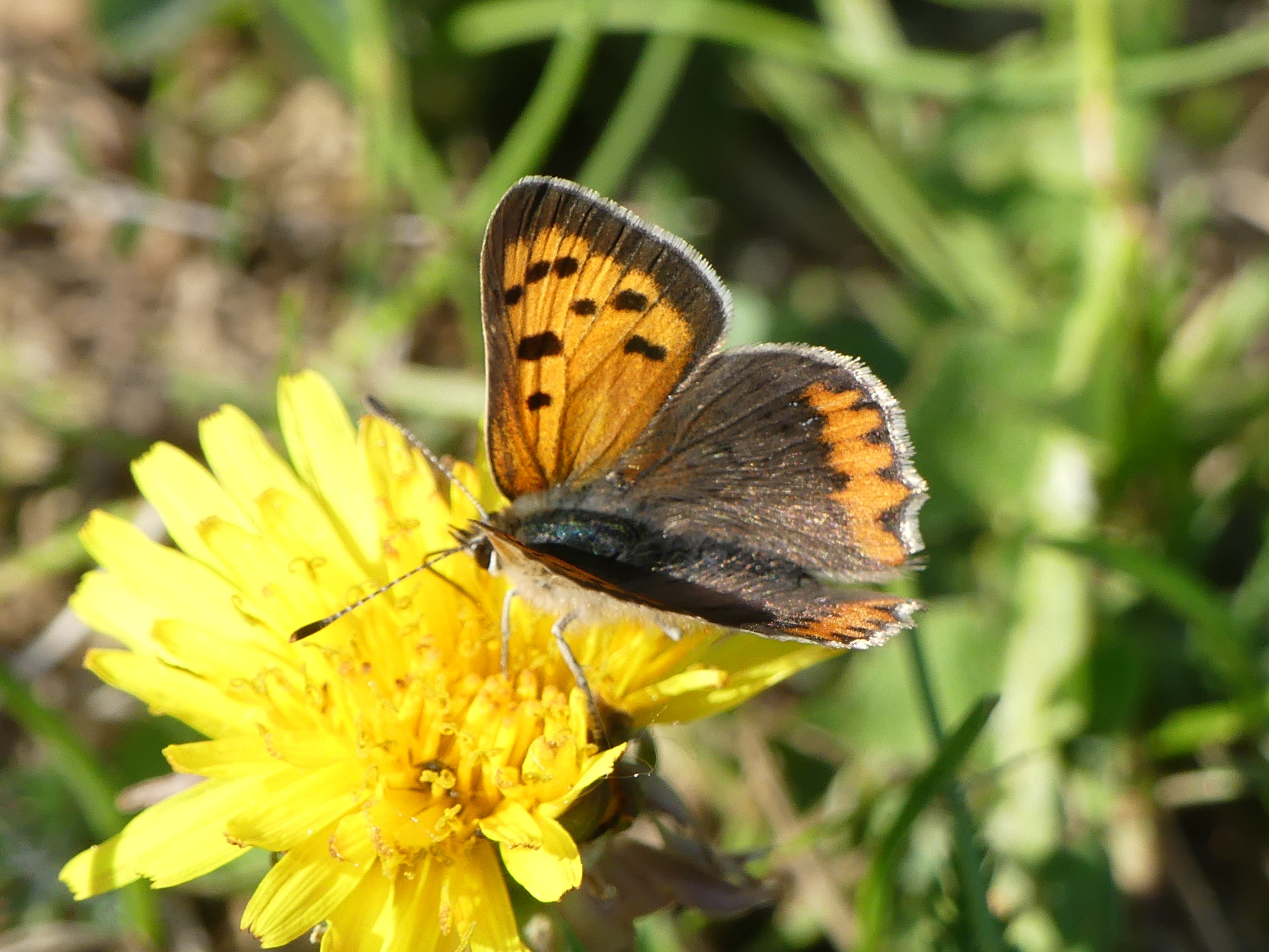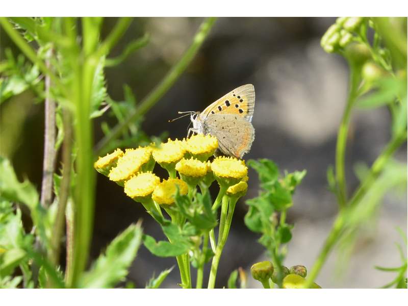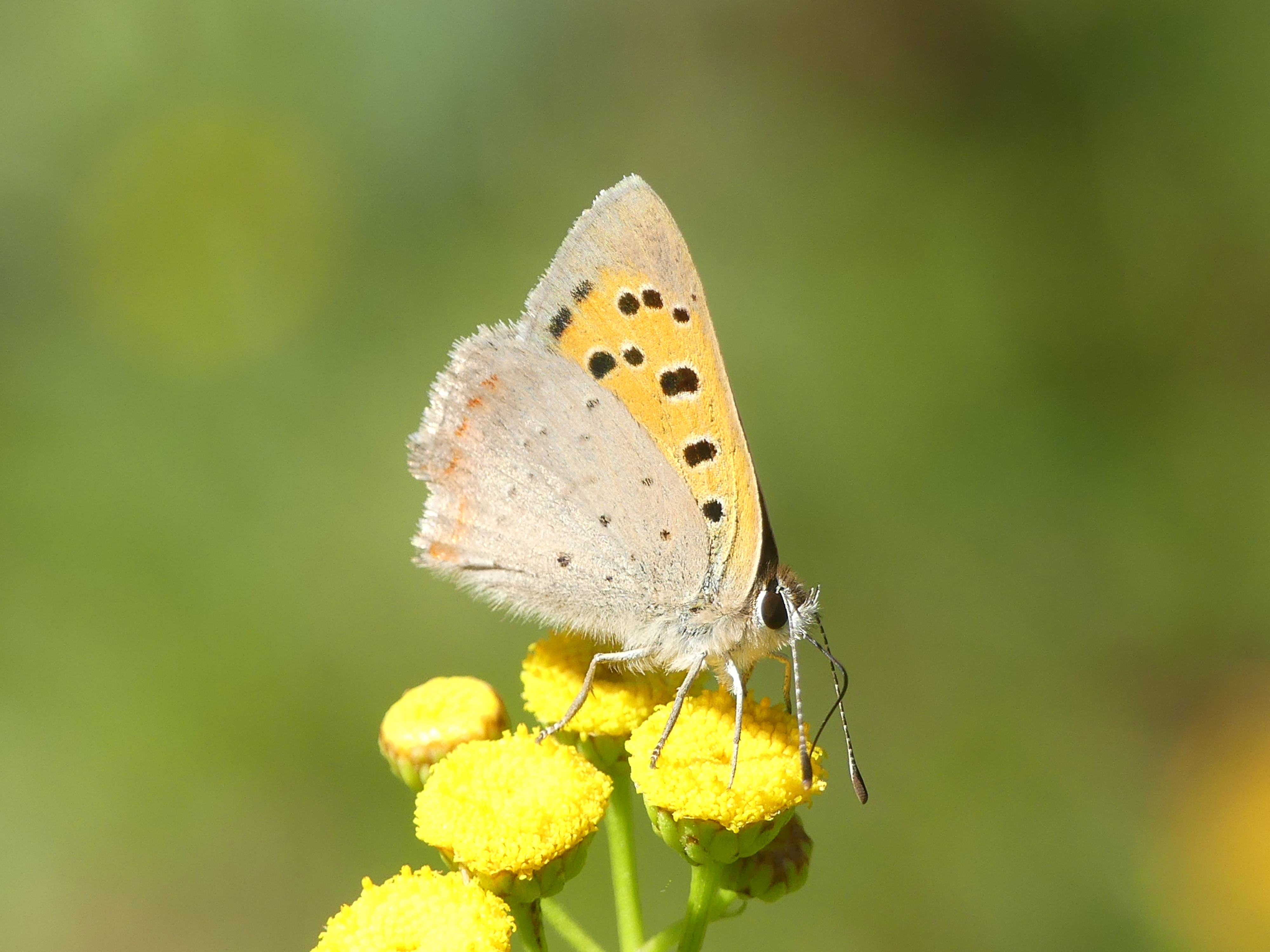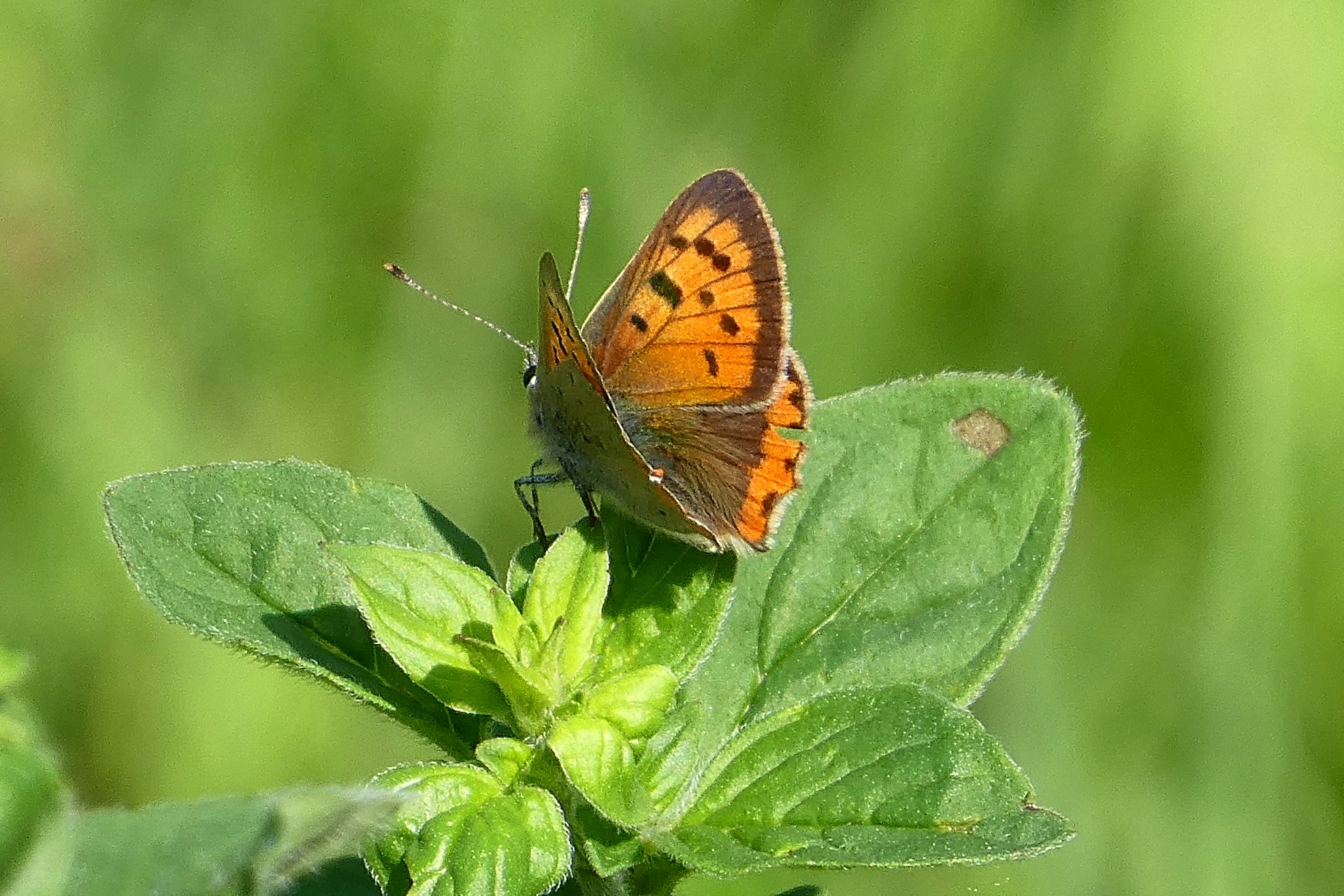 Kleiner Feuerfalter (Lycaena phlaeas (Linnaeus, 1761)), Laue, Rekultivierungsbereich der Tagebaulandschaft Goitzsche östlich vom Seelhausener See, nahe Leipzig, 16. Juni 2019