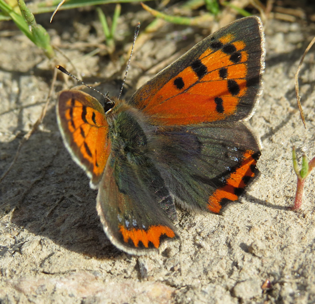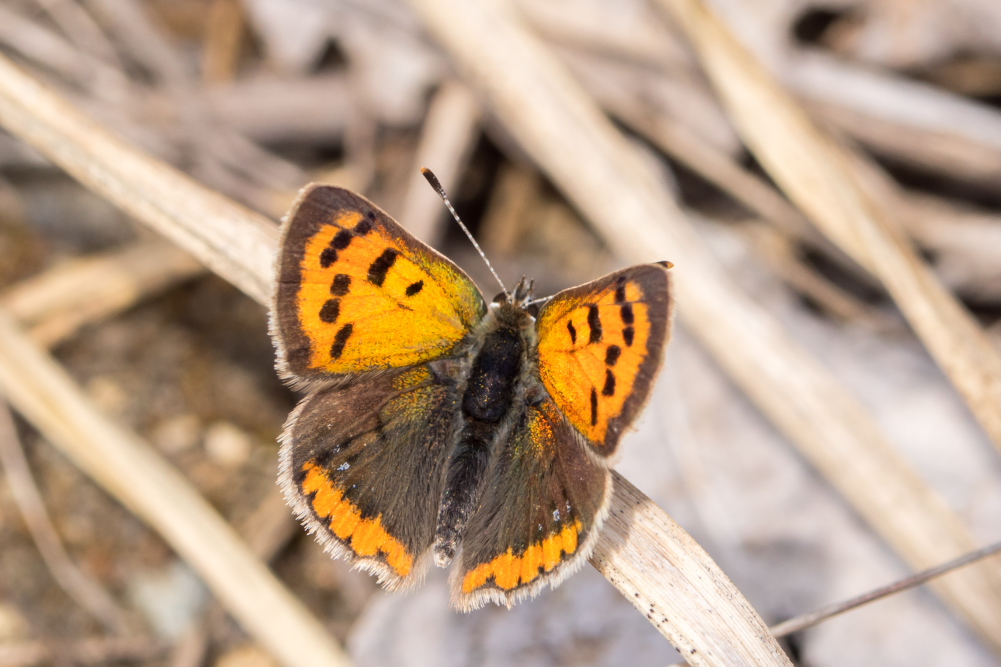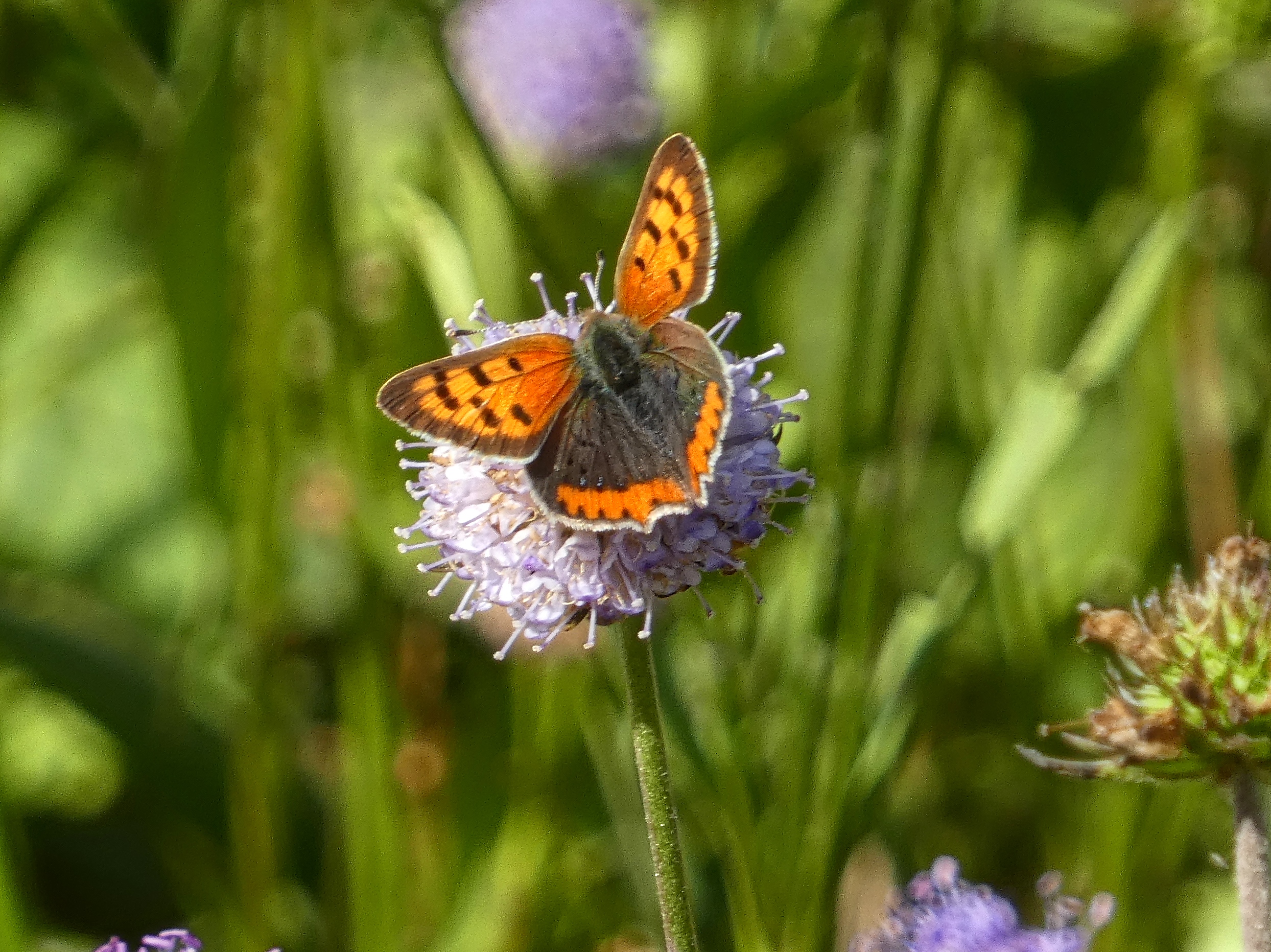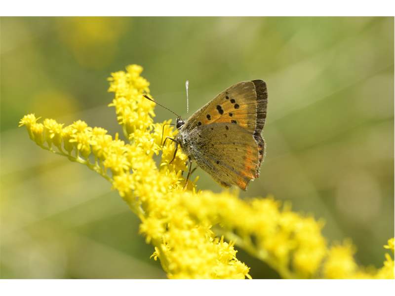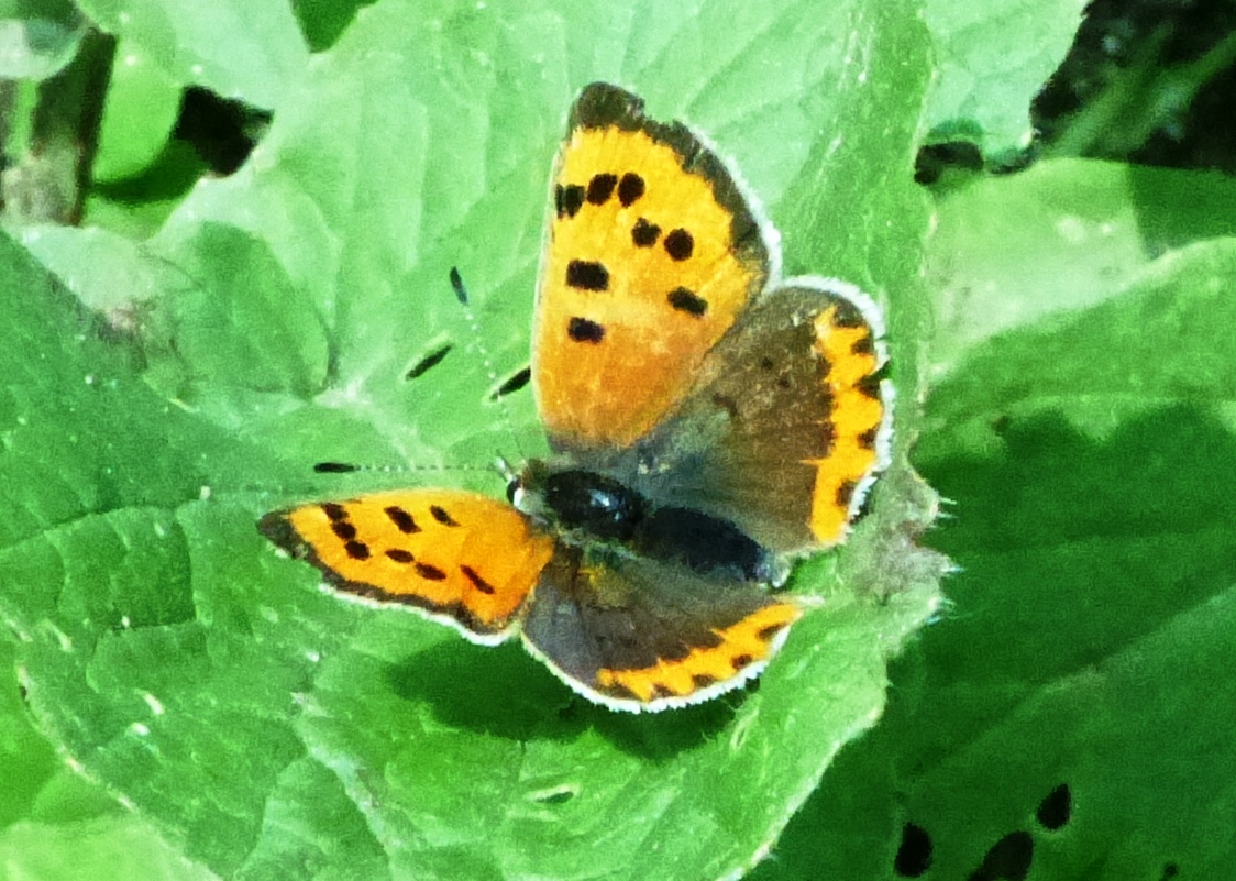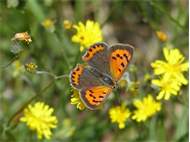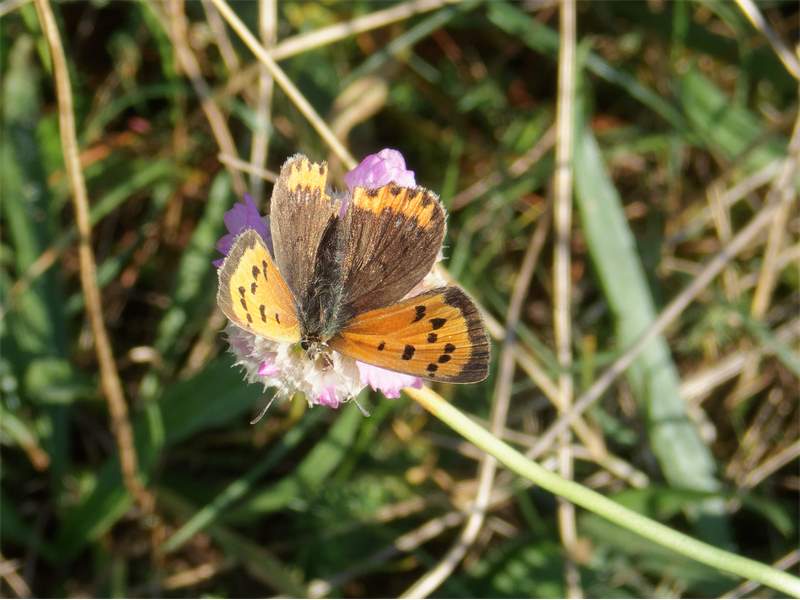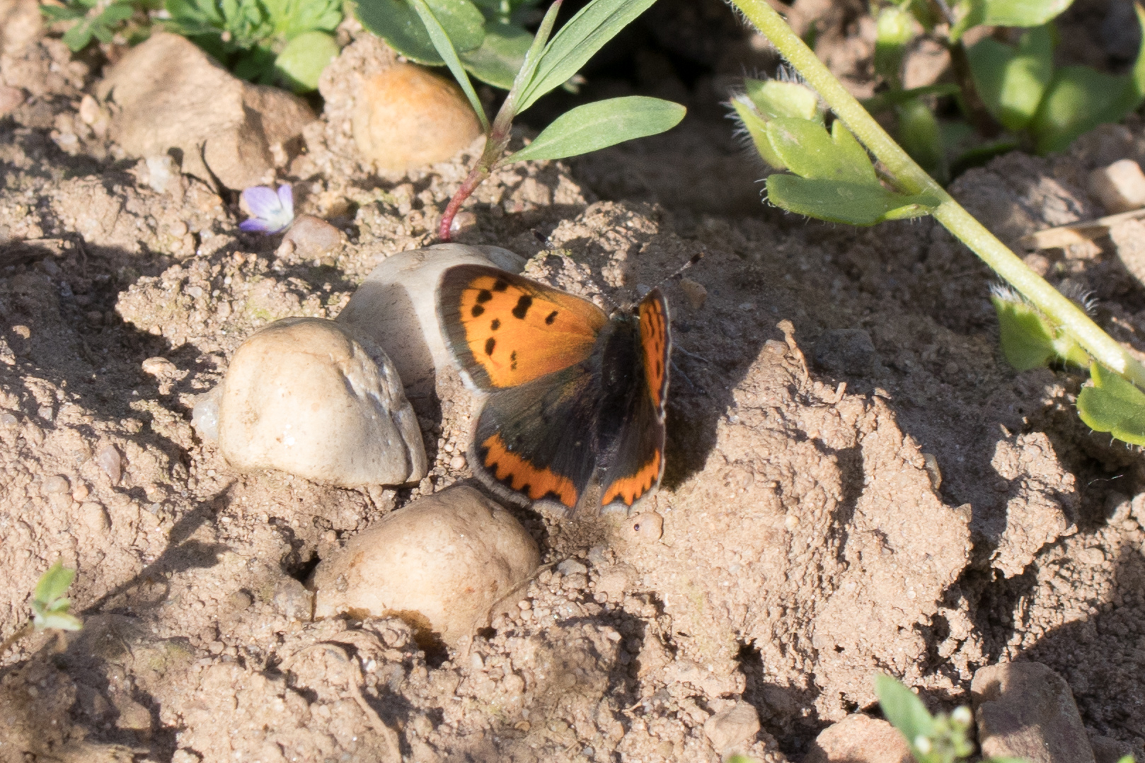 Kleiner Feuerfalter (Lycaena phlaeas (Linnaeus, 1761)), Laue, Rekultivierungsbereich der Tagebaulandschaft Goitzsche östlich vom Seelhausener See, nahe Leipzig, 16. Juni 2019