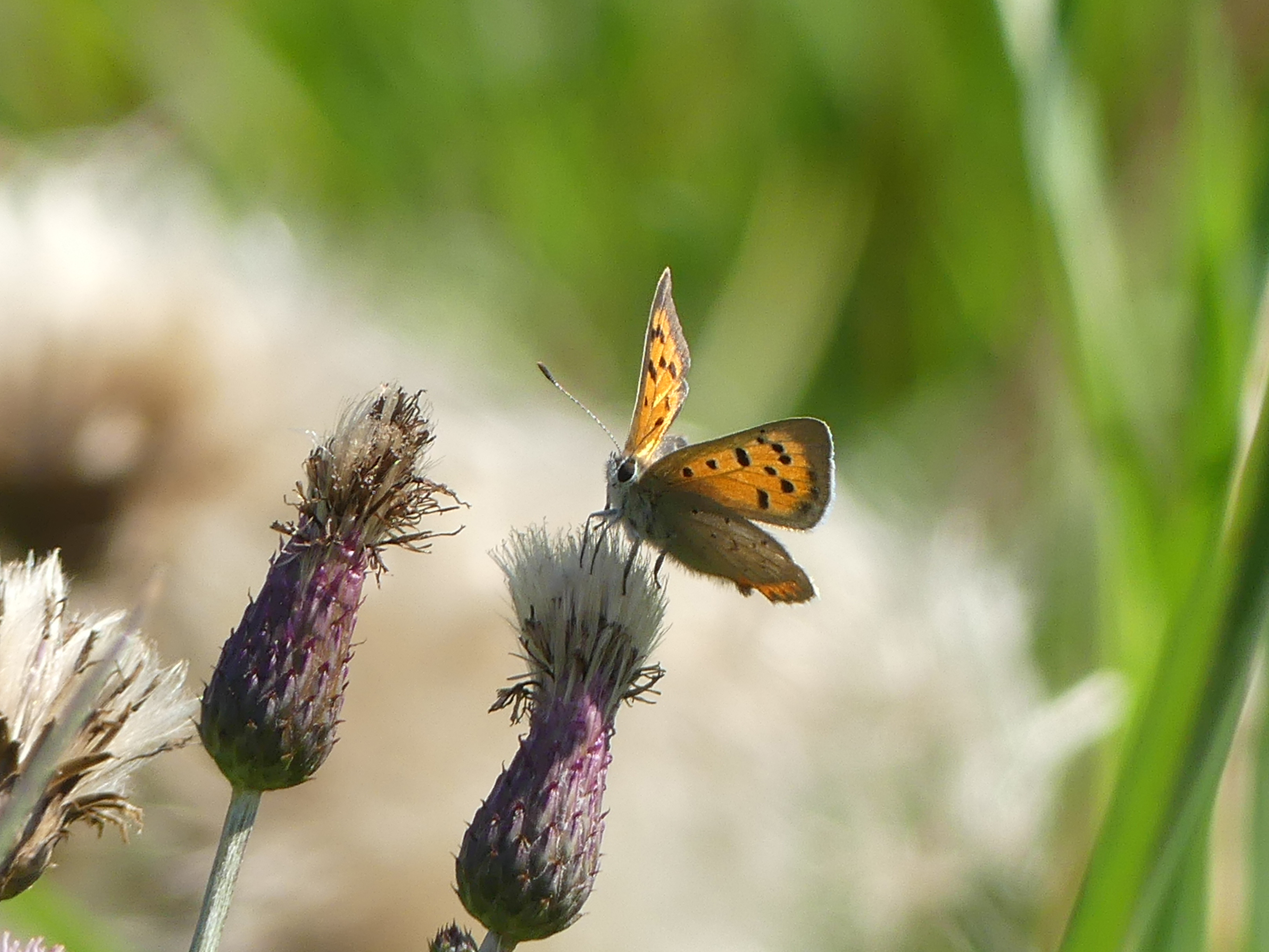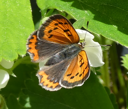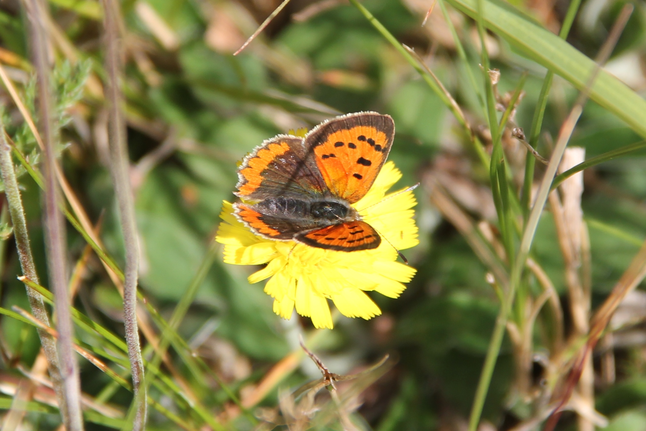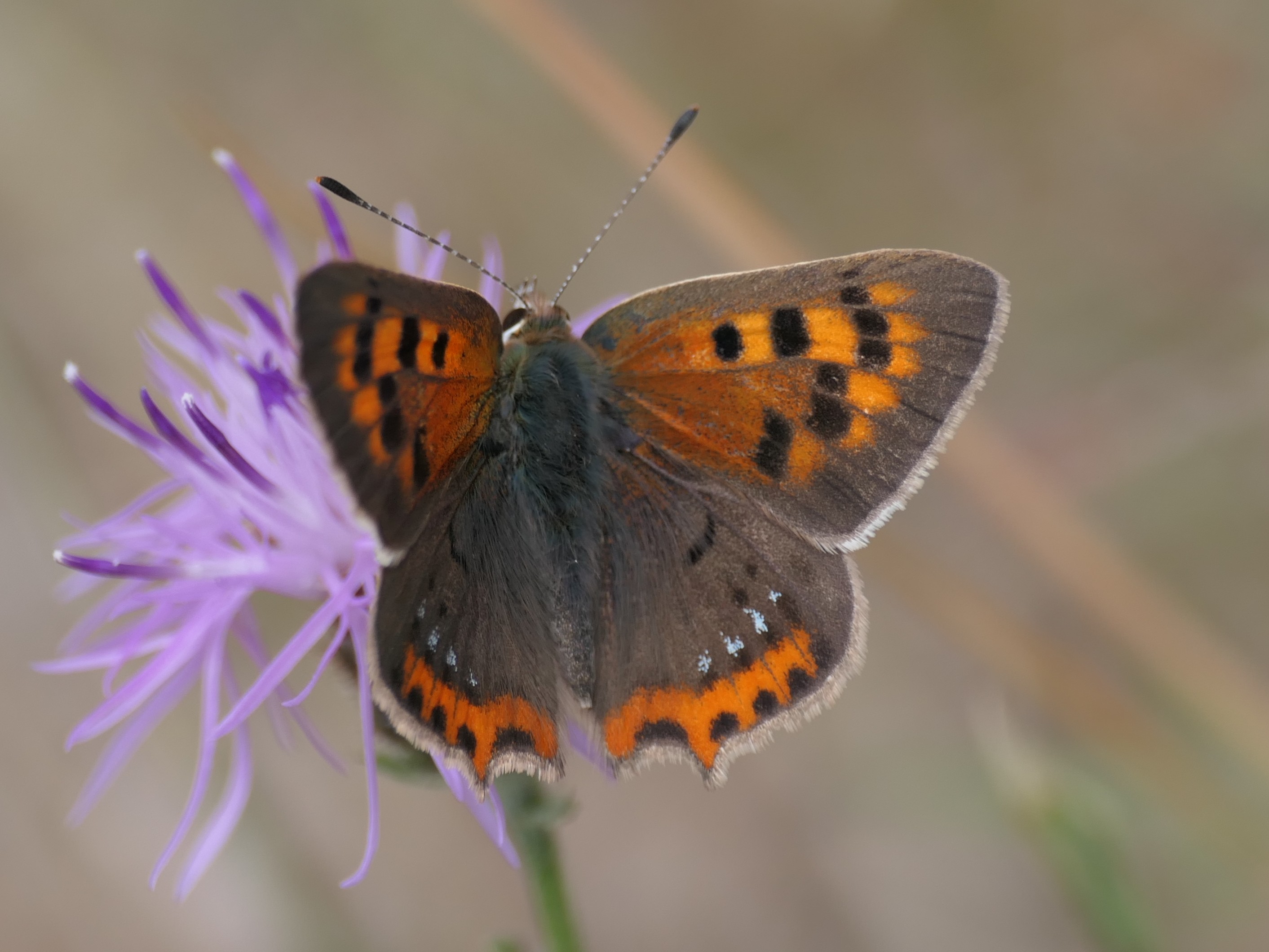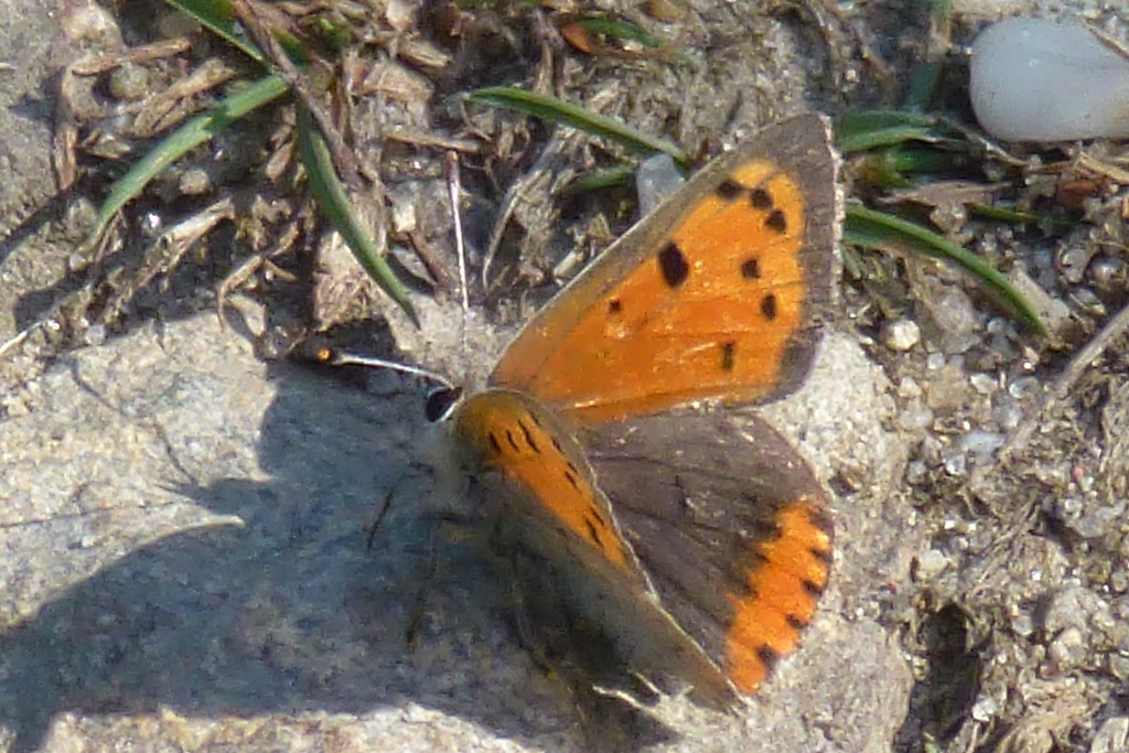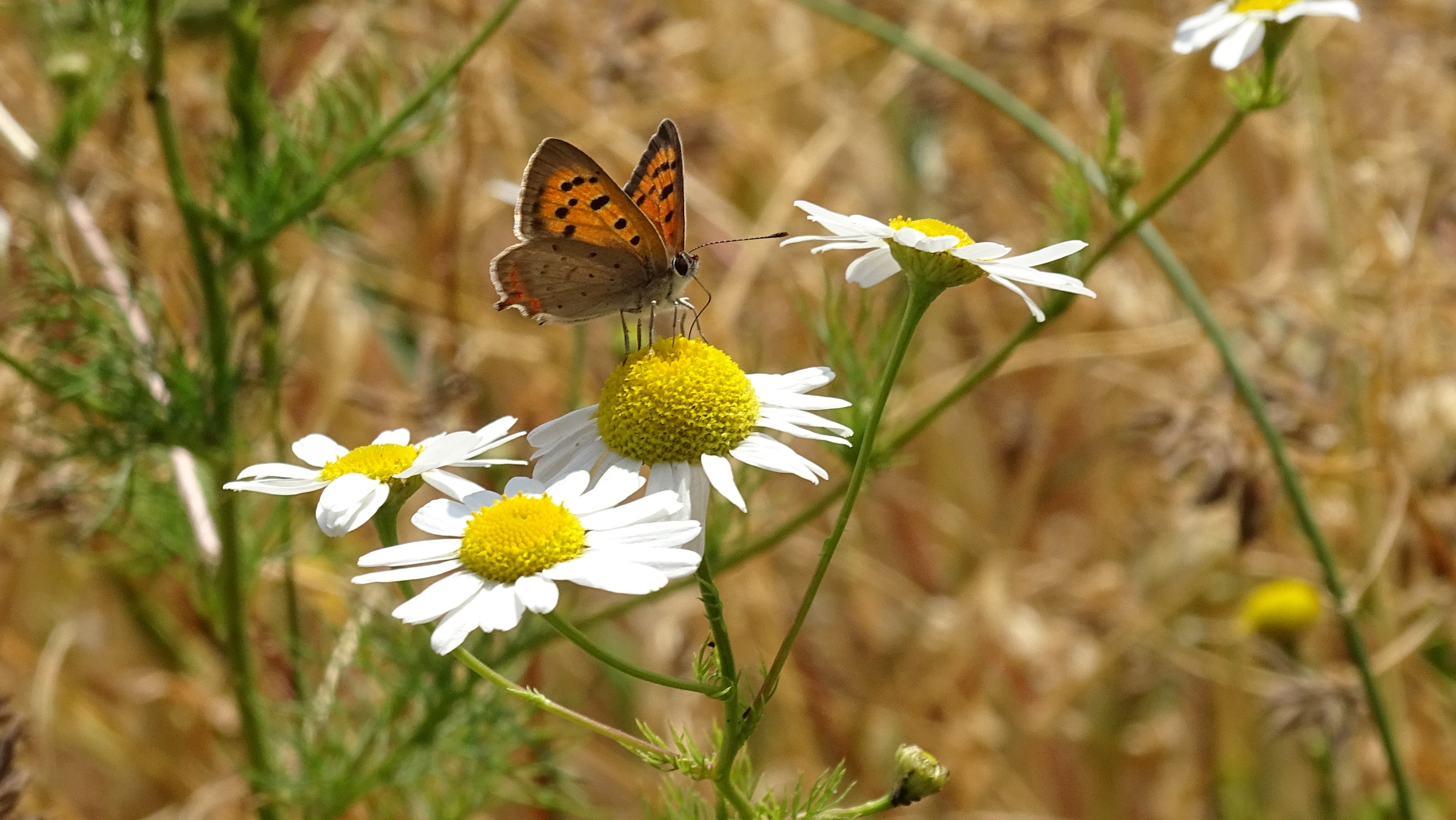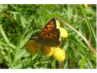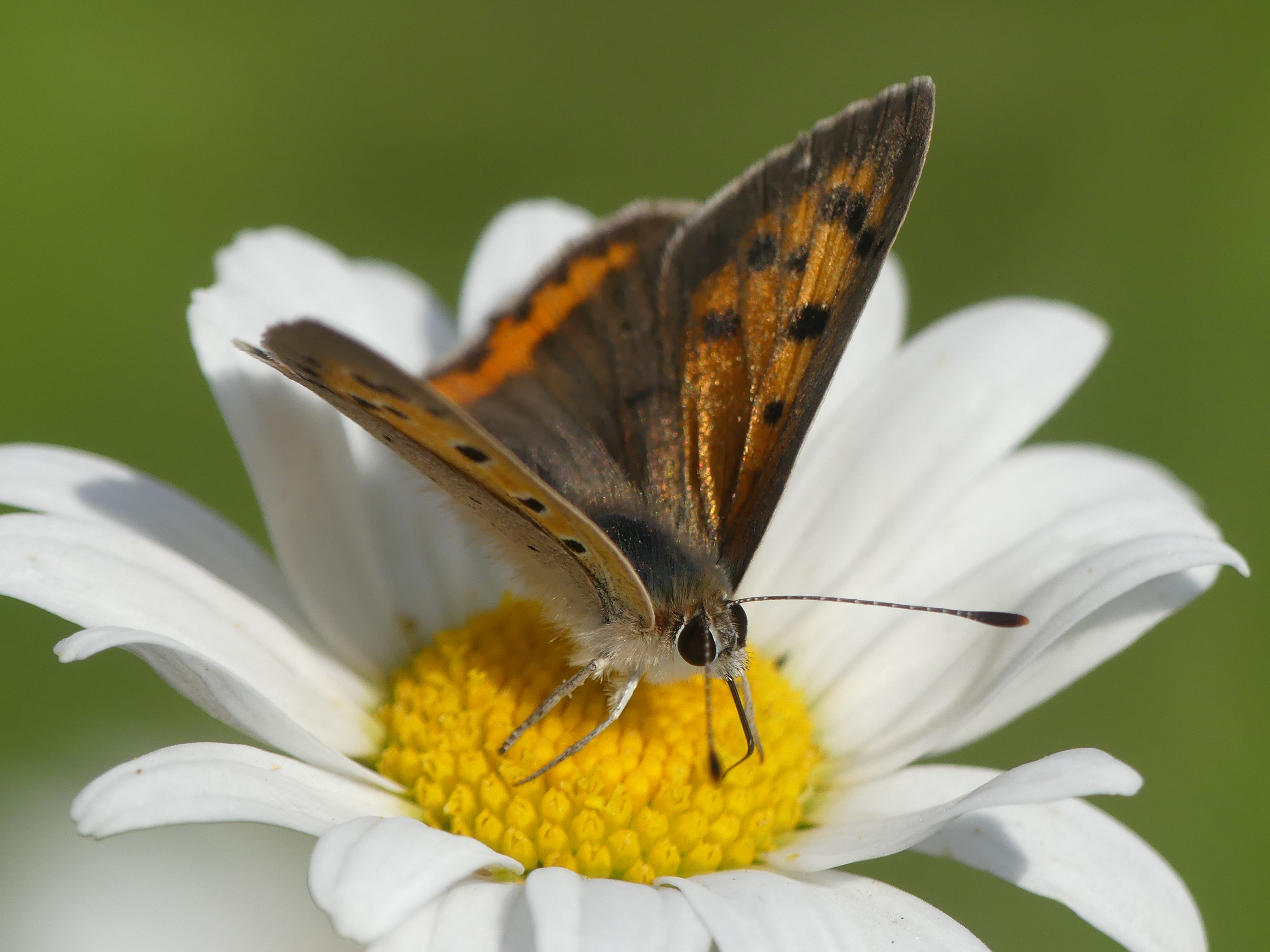 Kleiner Feuerfalter (Lycaena phlaeas (Linnaeus, 1761)), Laue, Rekultivierungsbereich der Tagebaulandschaft Goitzsche östlich vom Seelhausener See, nahe Leipzig, 16. Juni 2019