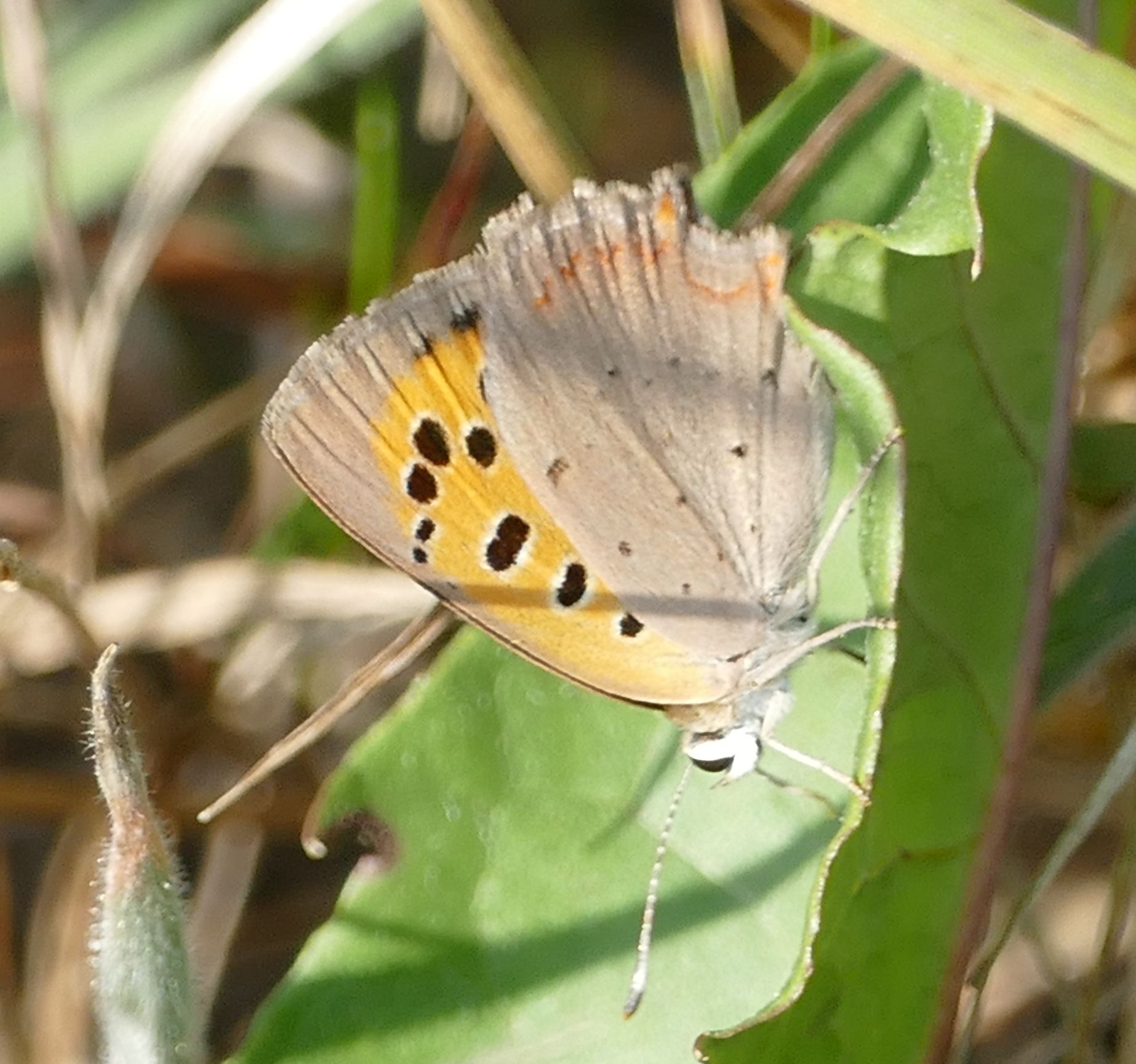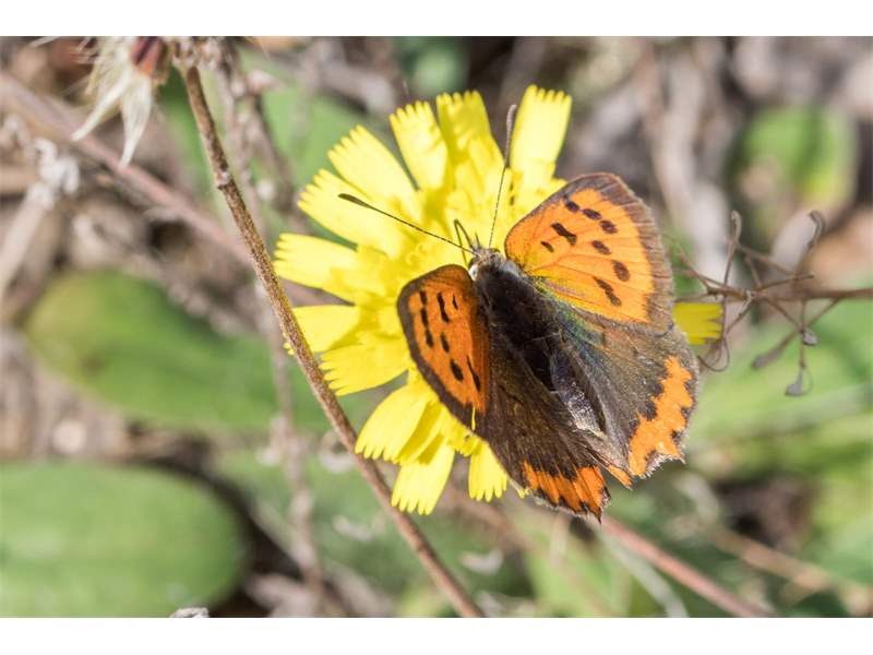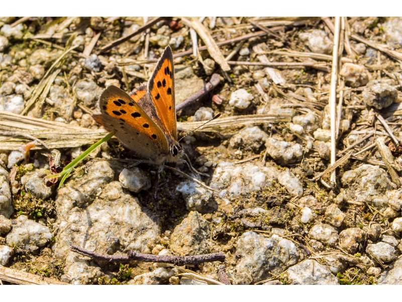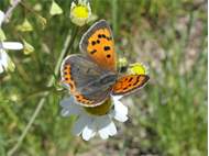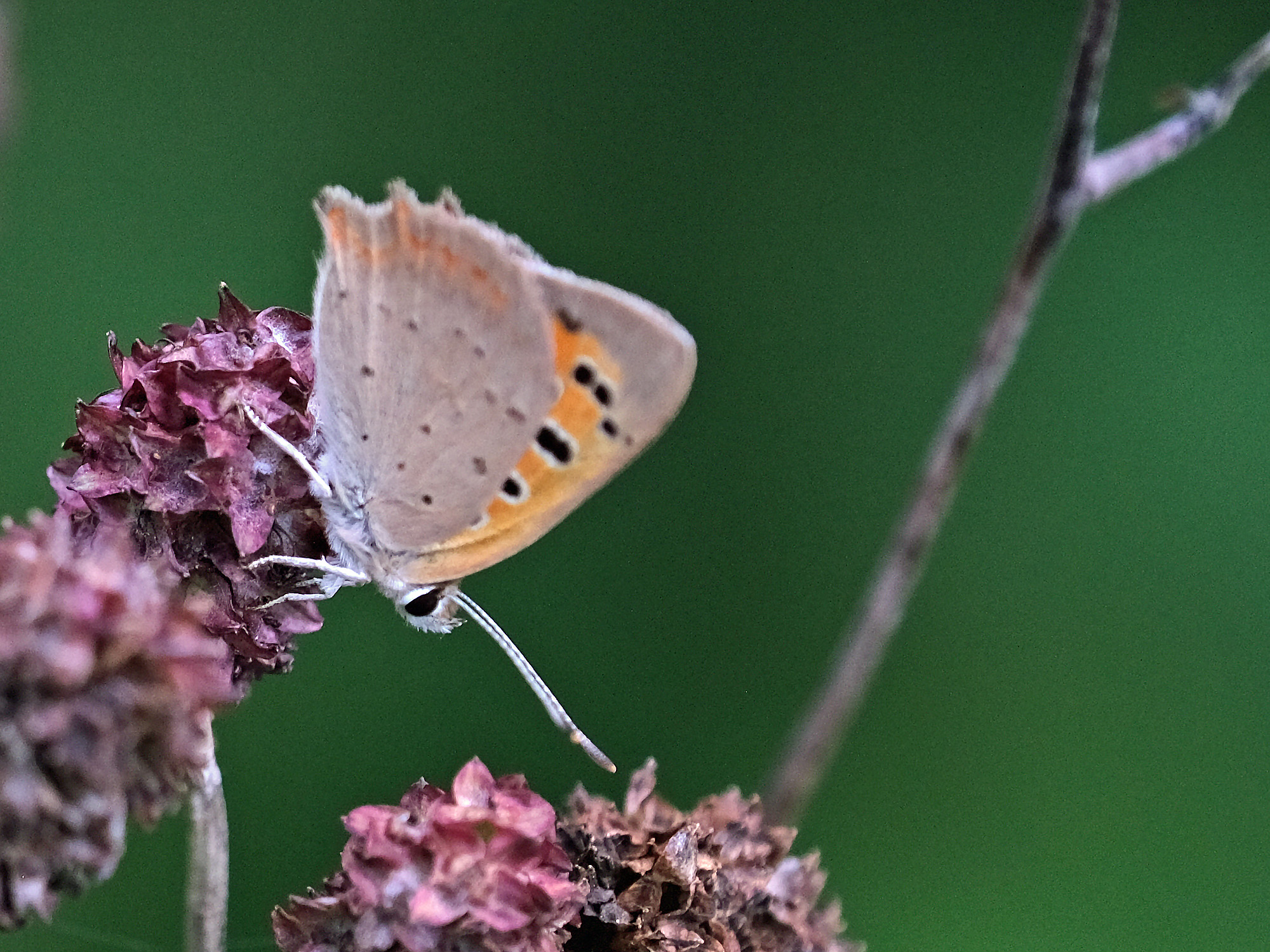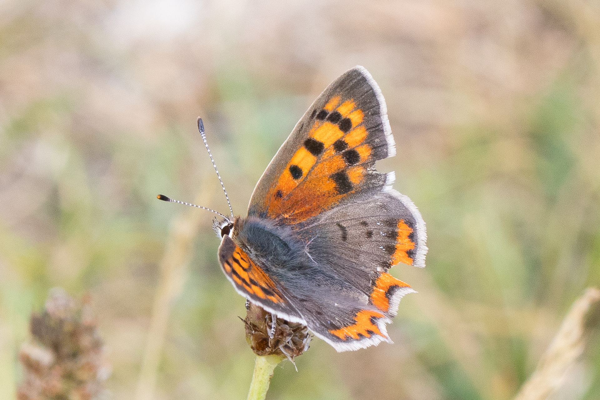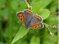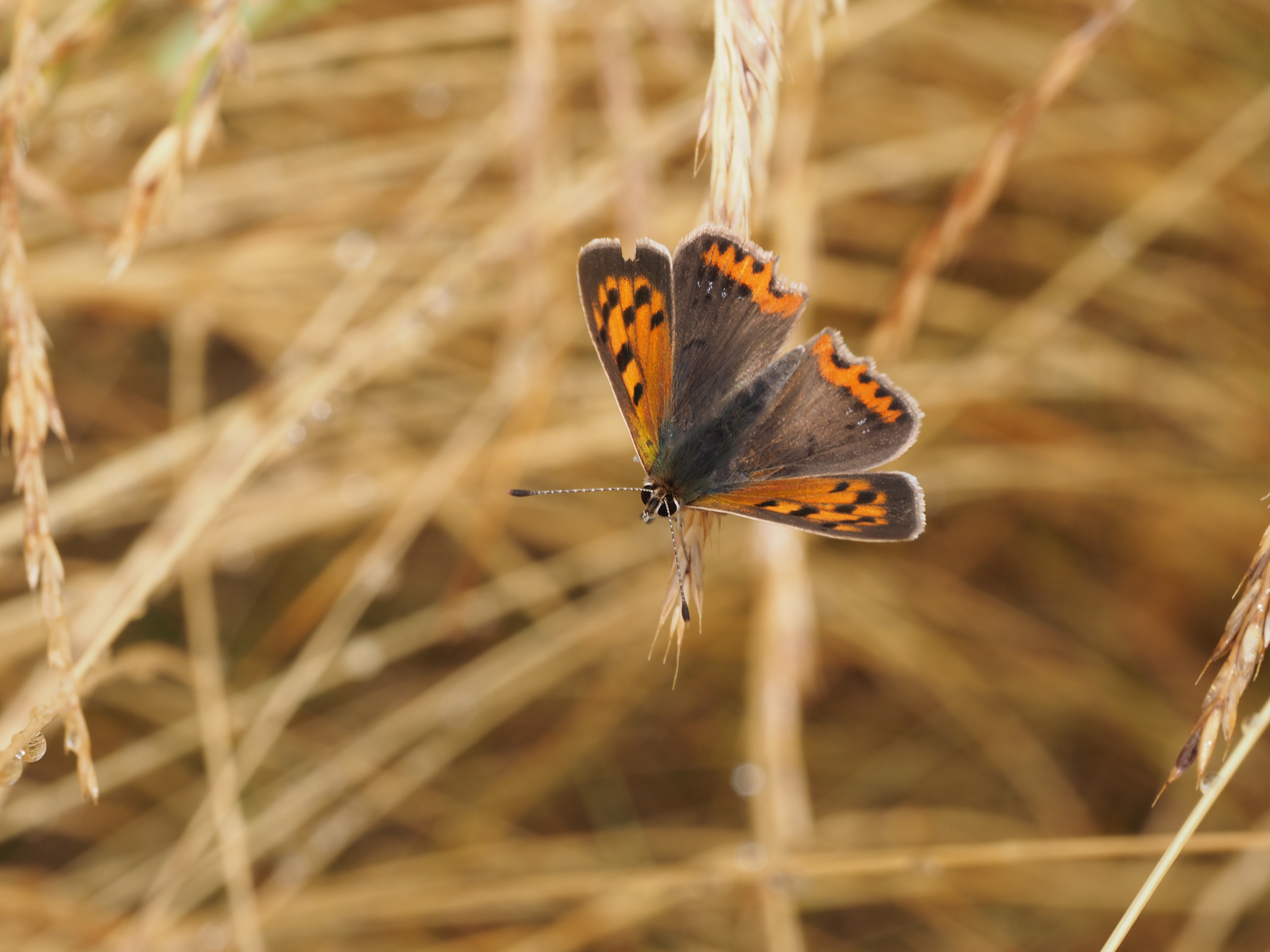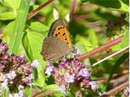 Kleiner Feuerfalter (Lycaena phlaeas (Linnaeus, 1761)), Laue, Rekultivierungsbereich der Tagebaulandschaft Goitzsche östlich vom Seelhausener See, nahe Leipzig, 16. Juni 2019