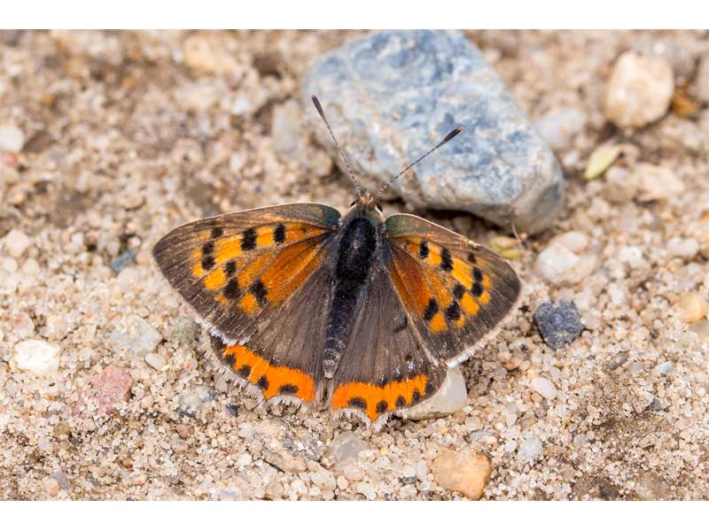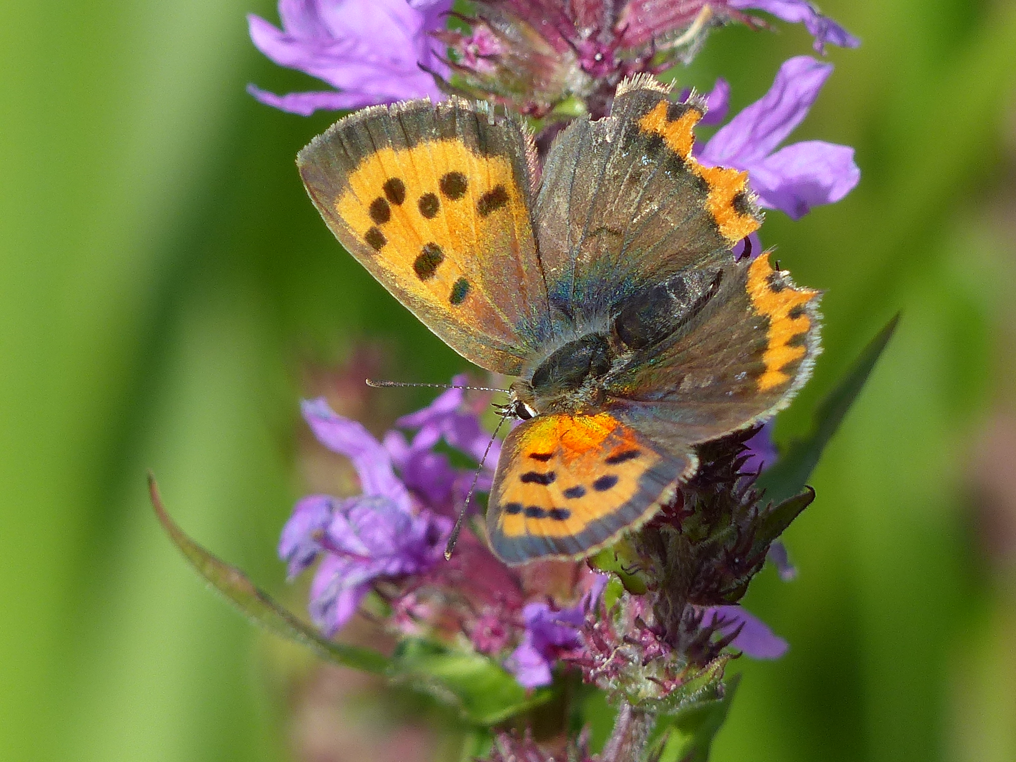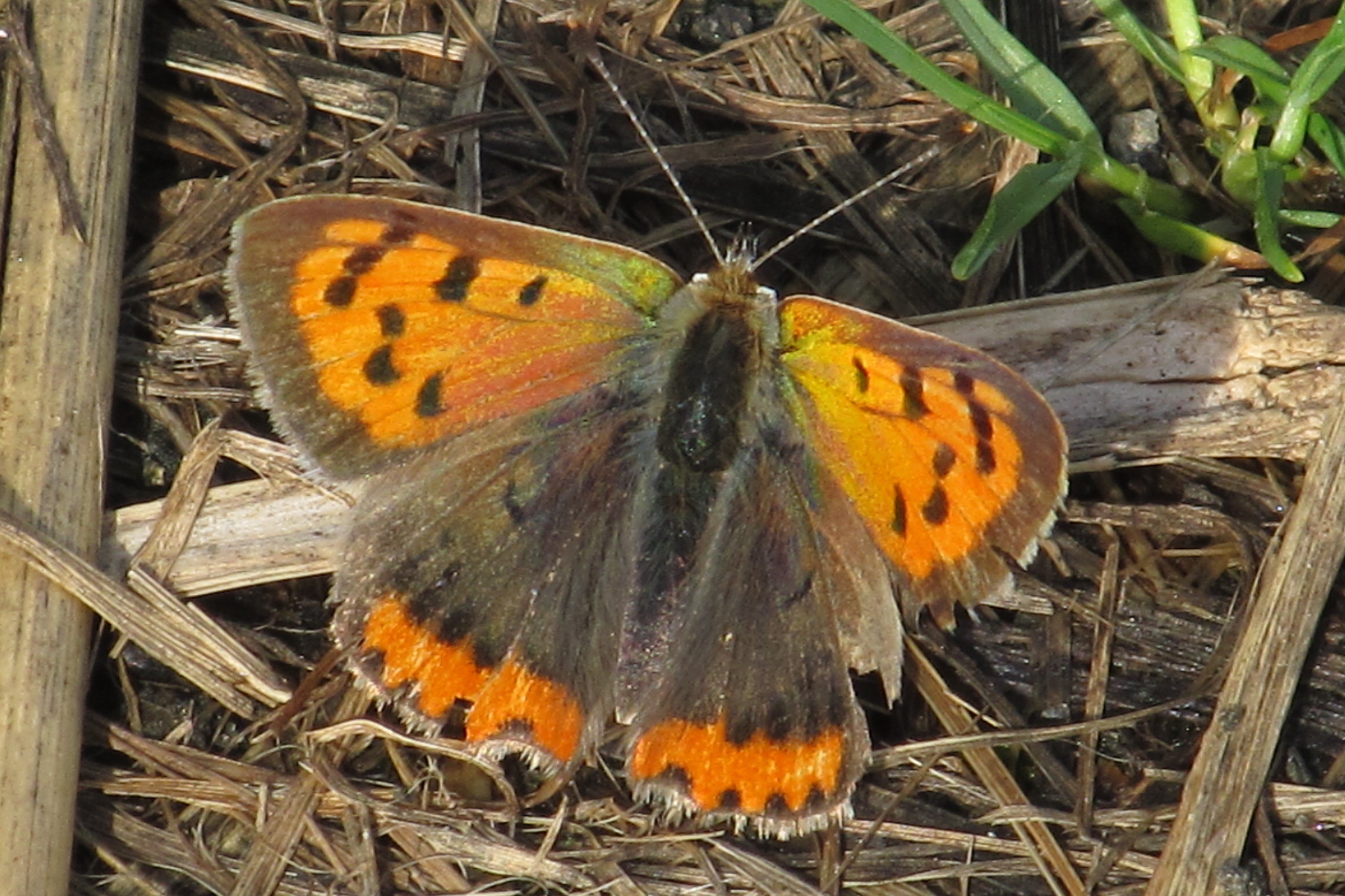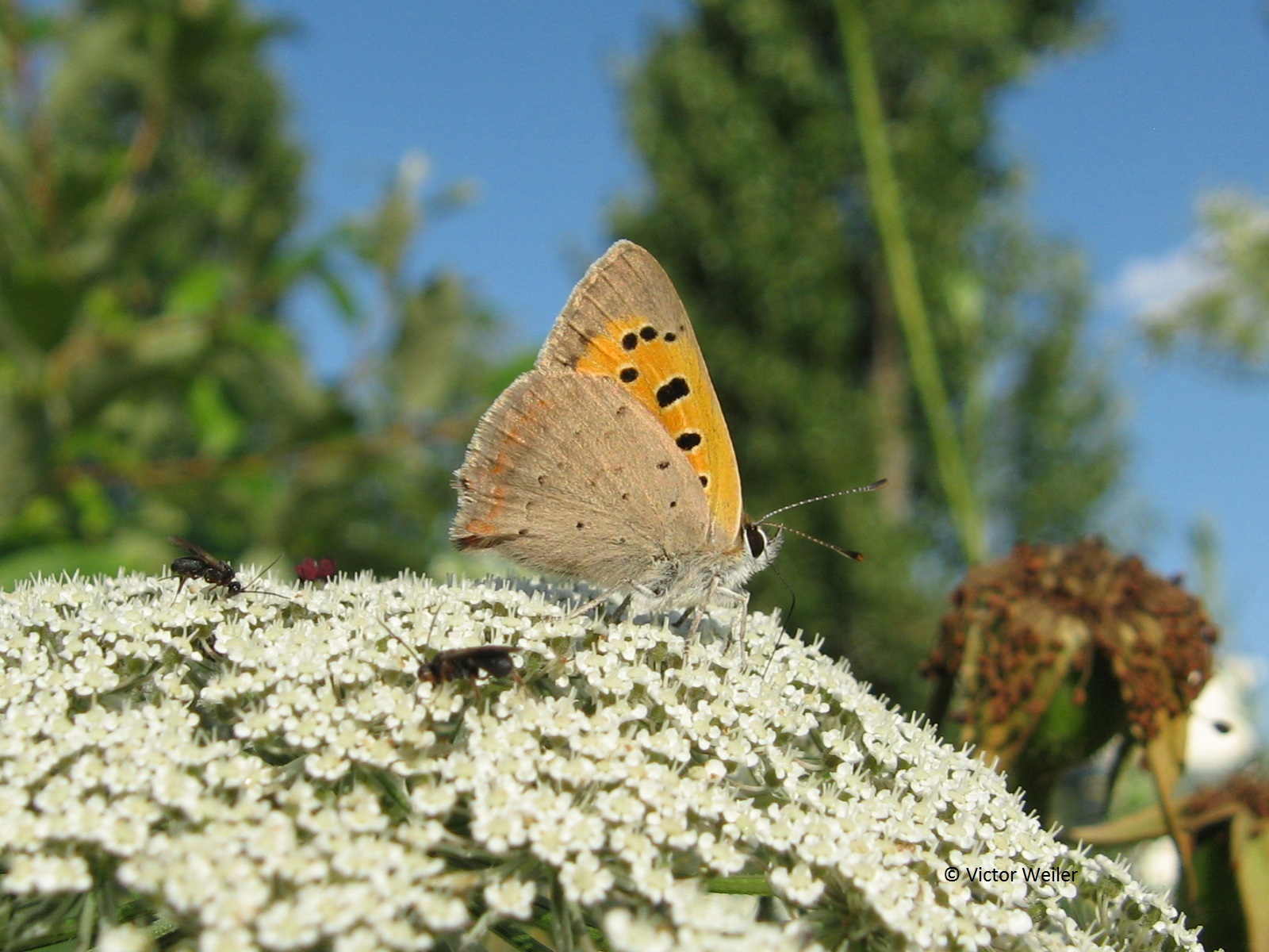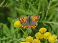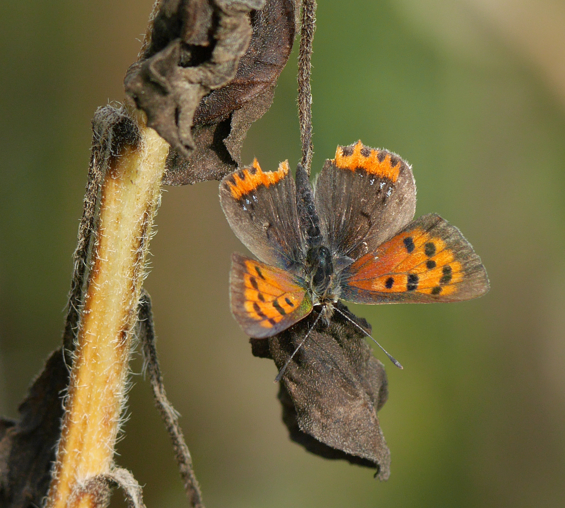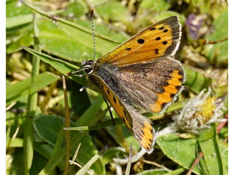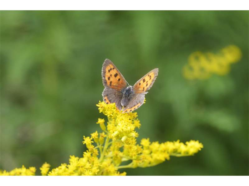 Kleiner Feuerfalter (Lycaena phlaeas (Linnaeus, 1761)), Laue, Rekultivierungsbereich der Tagebaulandschaft Goitzsche östlich vom Seelhausener See, nahe Leipzig, 16. Juni 2019