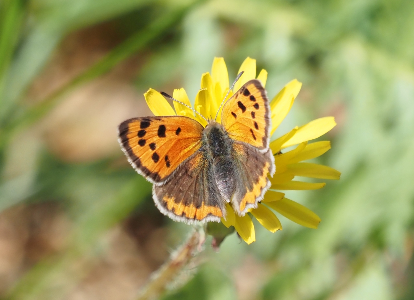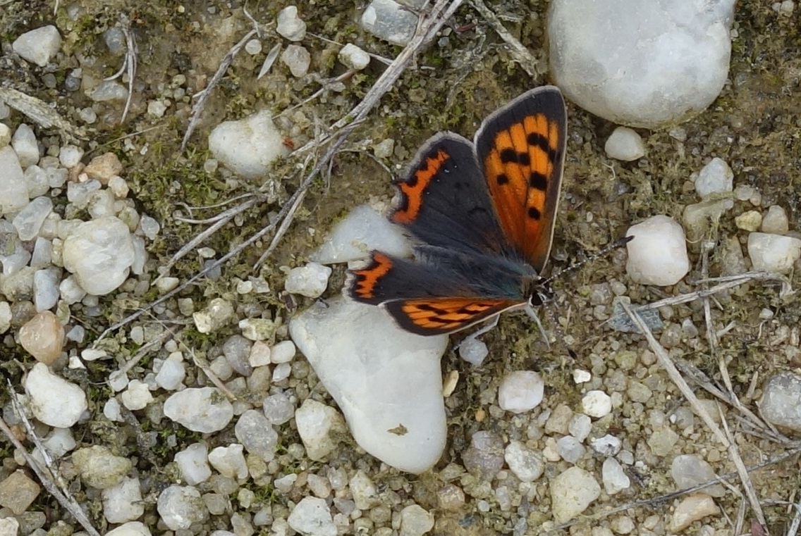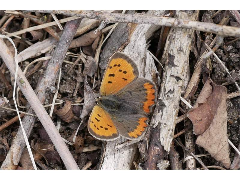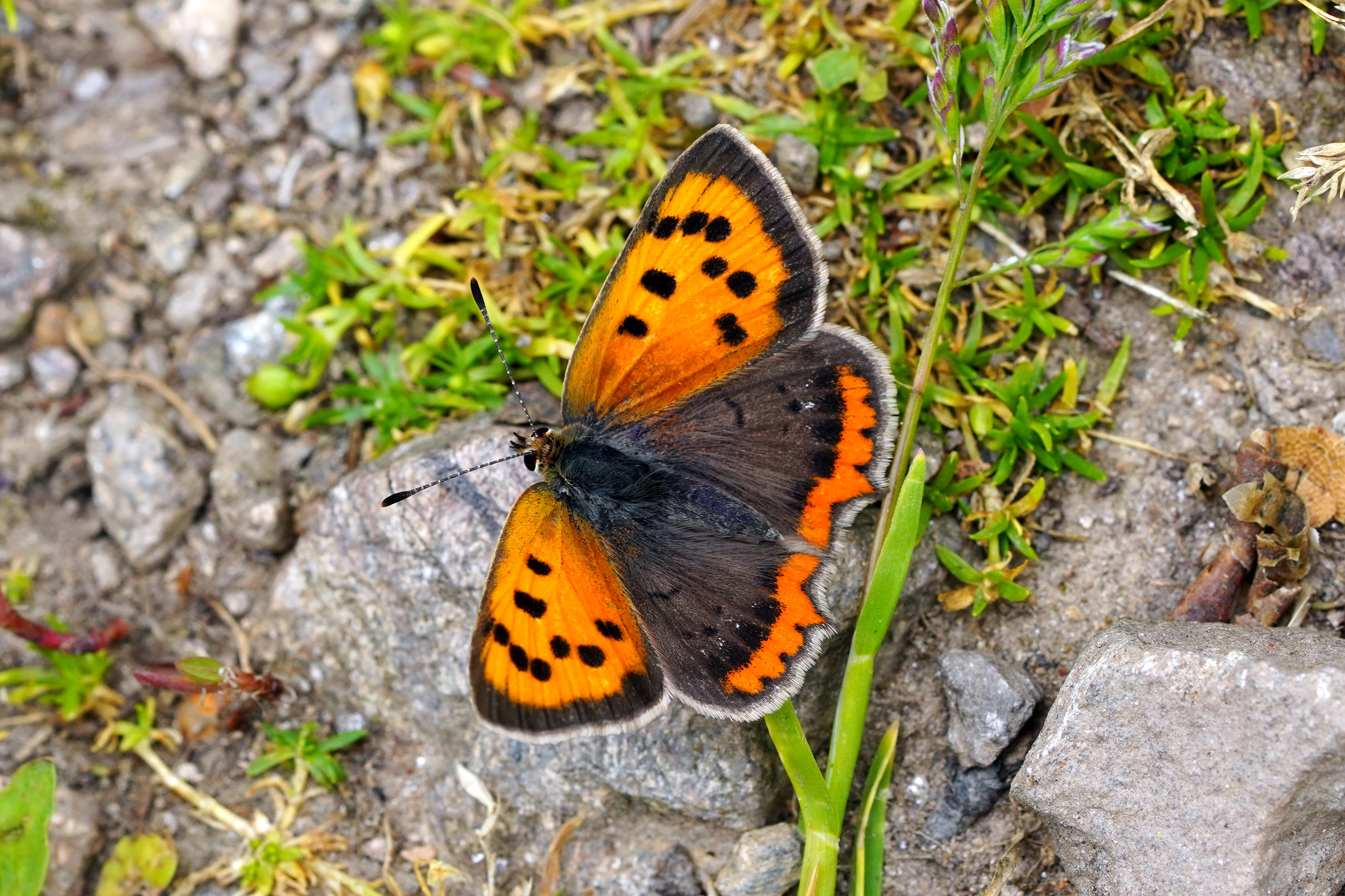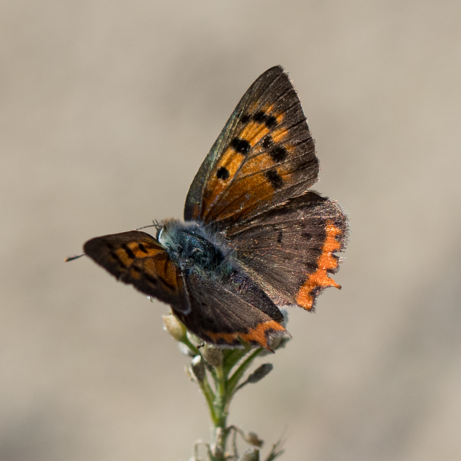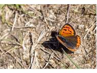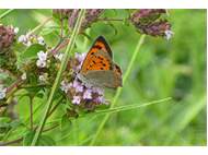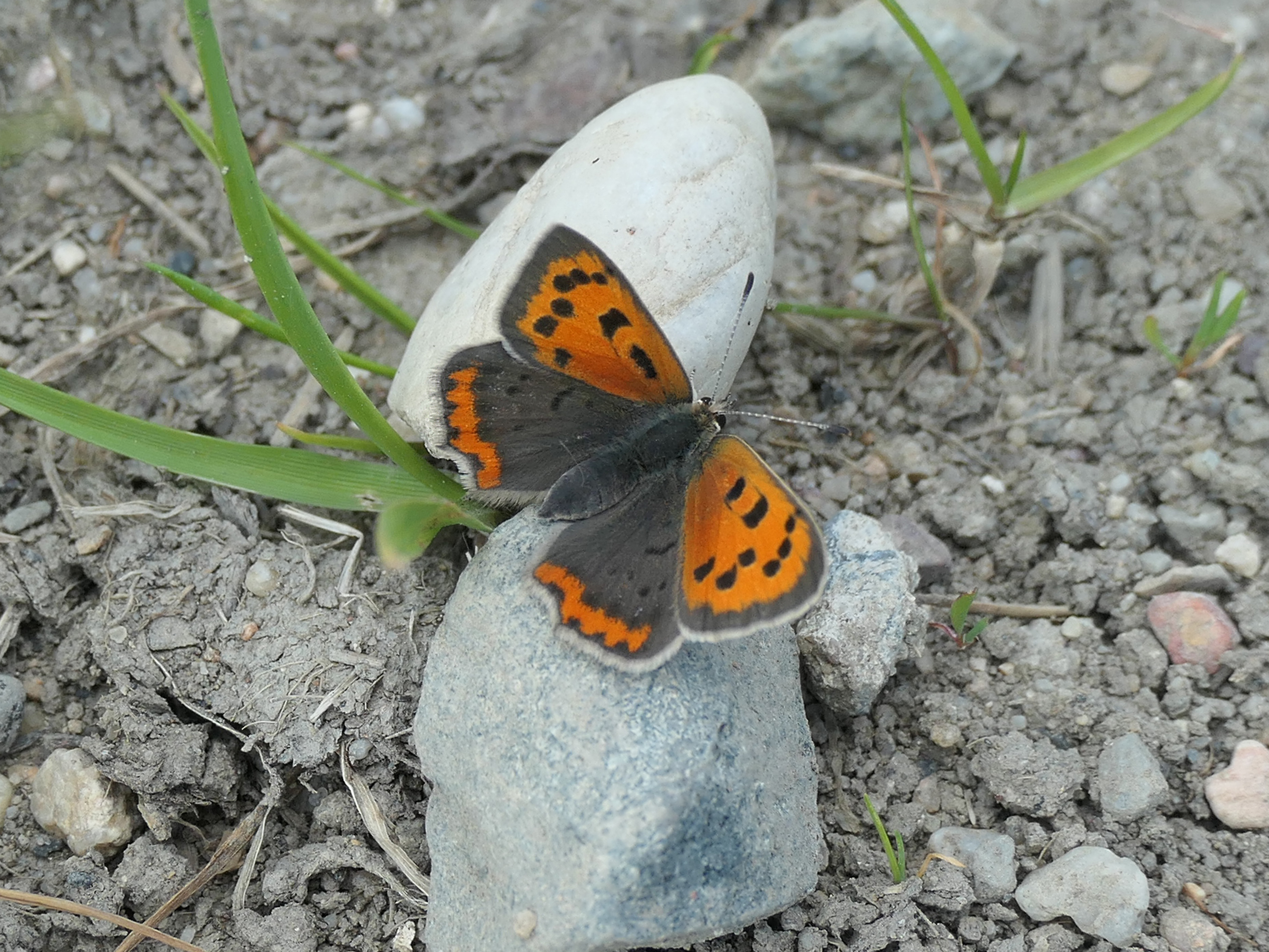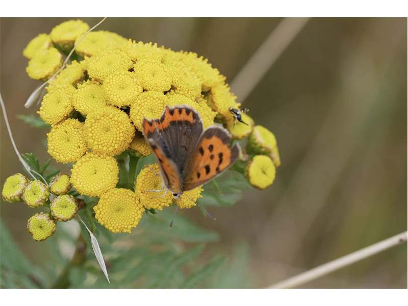 Kleiner Feuerfalter (Lycaena phlaeas (Linnaeus, 1761)), Laue, Rekultivierungsbereich der Tagebaulandschaft Goitzsche östlich vom Seelhausener See, nahe Leipzig, 16. Juni 2019