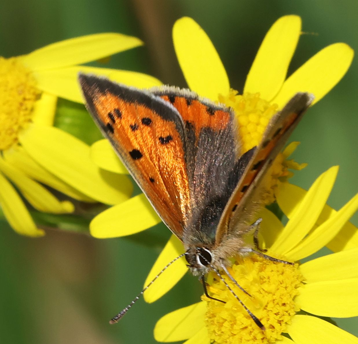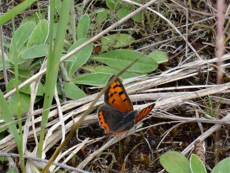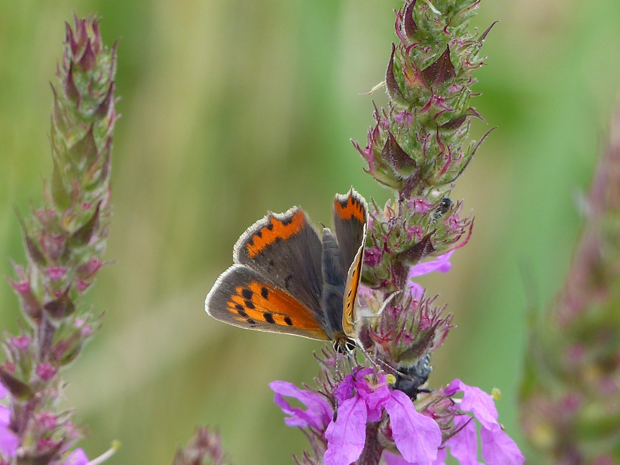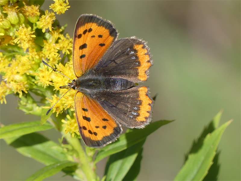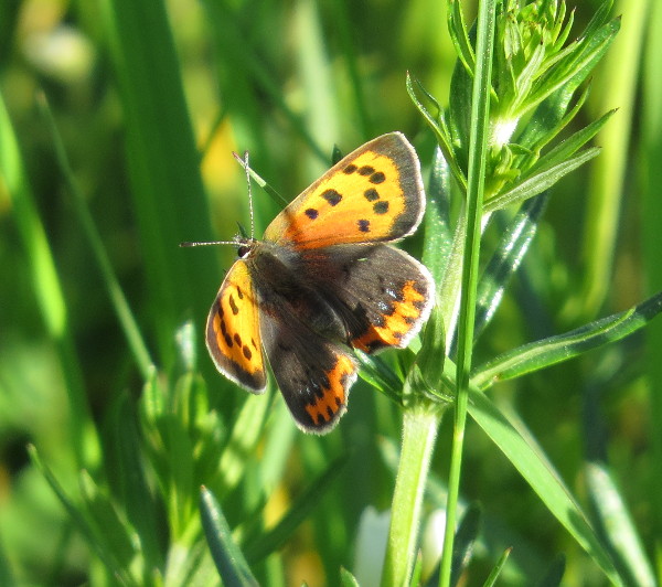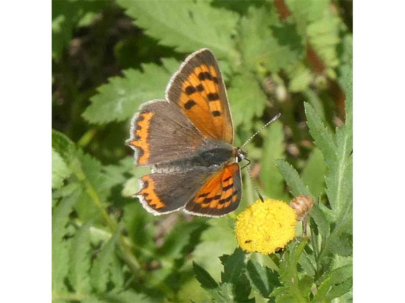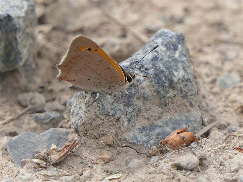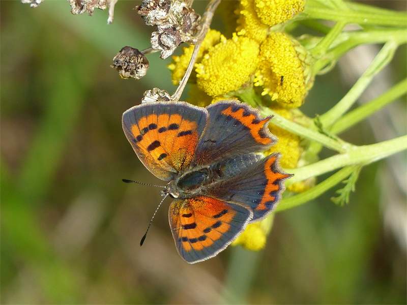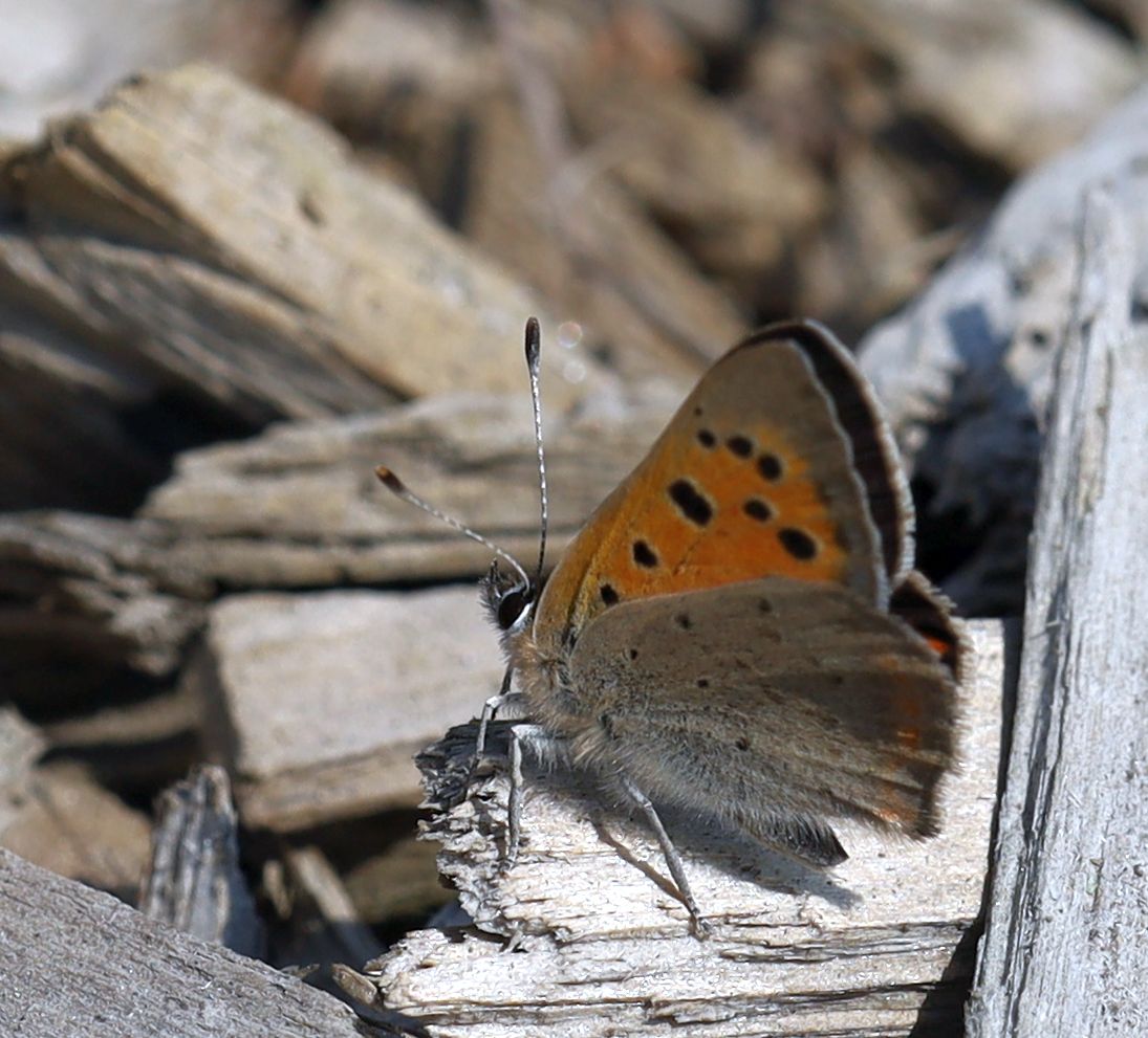 Kleiner Feuerfalter (Lycaena phlaeas (Linnaeus, 1761)), Laue, Rekultivierungsbereich der Tagebaulandschaft Goitzsche östlich vom Seelhausener See, nahe Leipzig, 16. Juni 2019