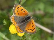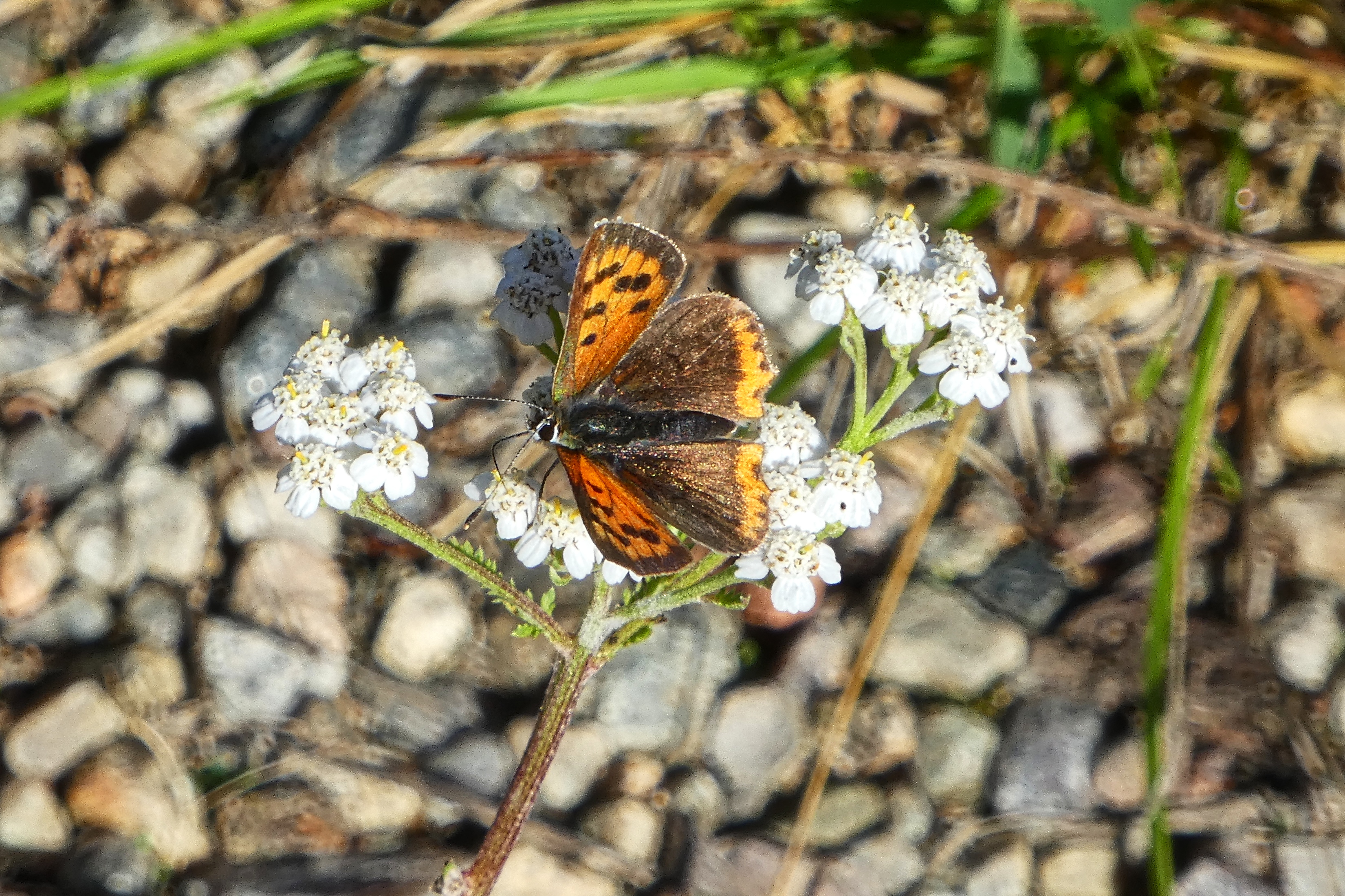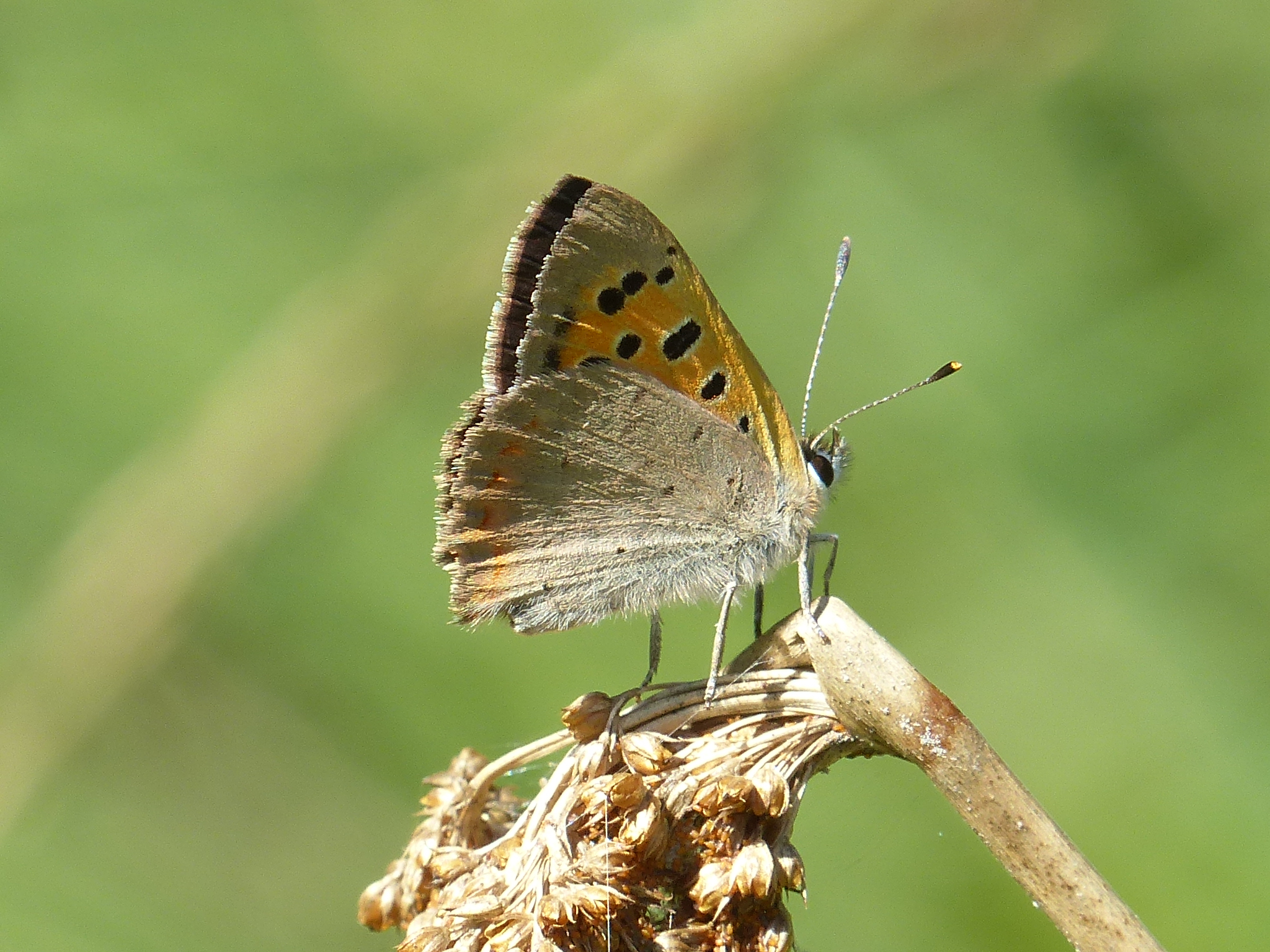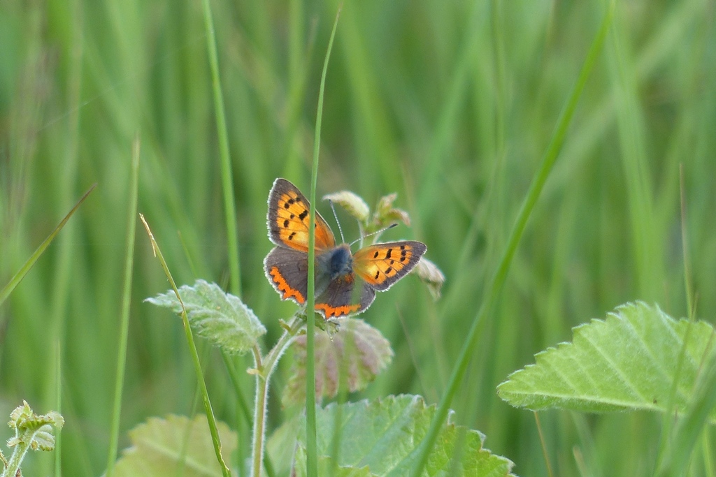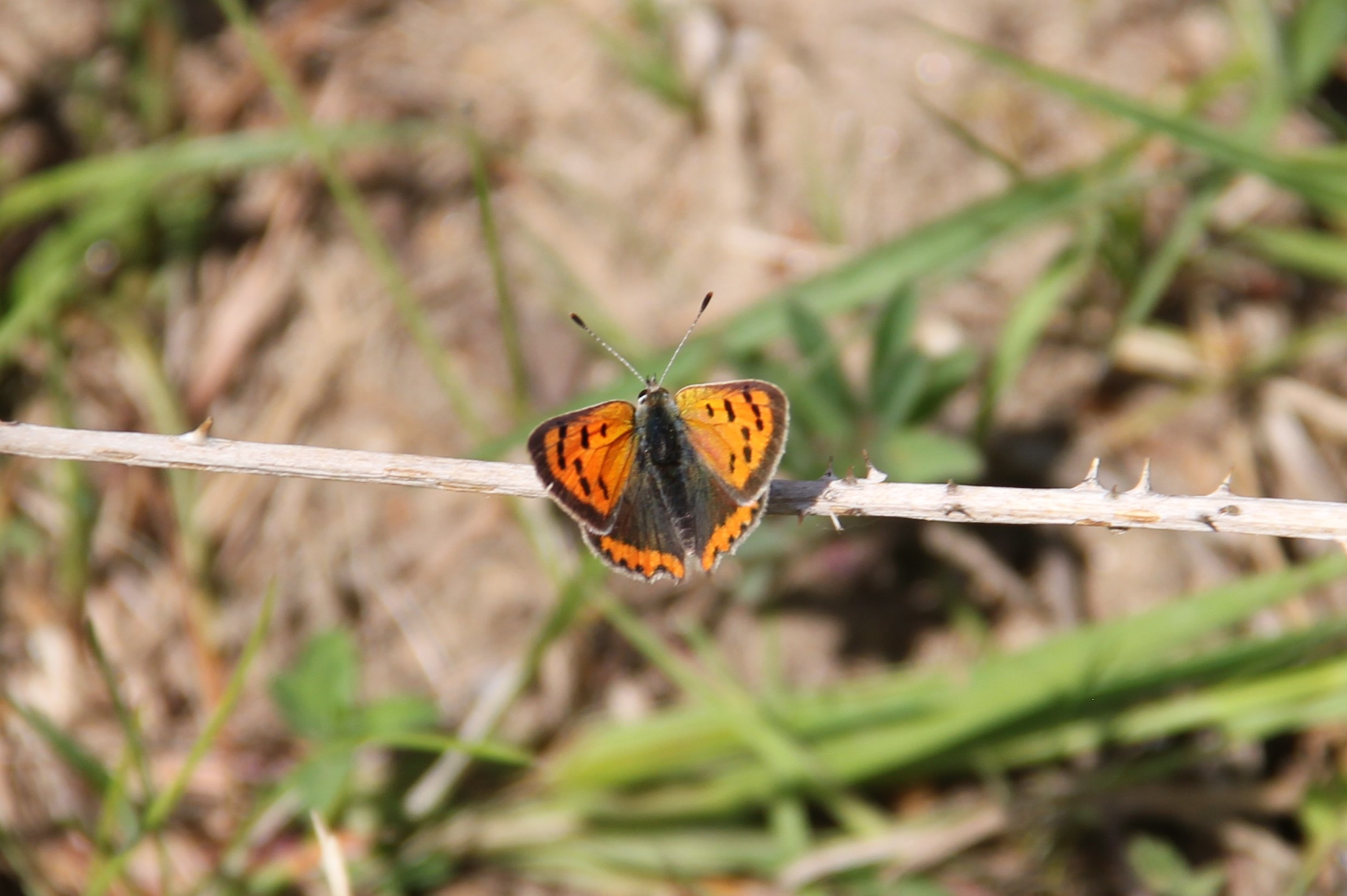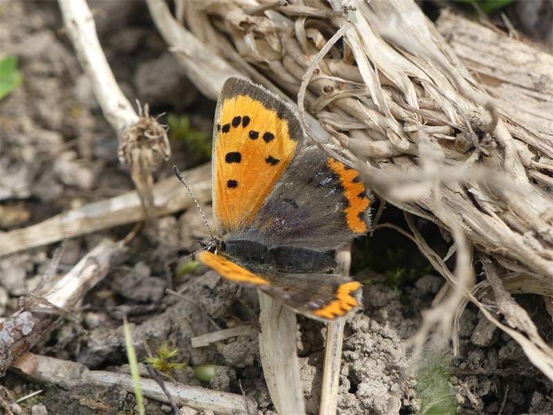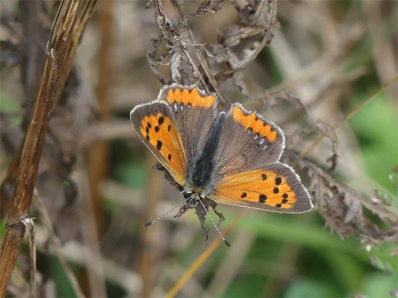 Kleiner Feuerfalter (Lycaena phlaeas (Linnaeus, 1761)), Laue, Rekultivierungsbereich der Tagebaulandschaft Goitzsche östlich vom Seelhausener See, nahe Leipzig, 16. Juni 2019