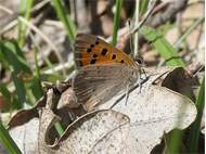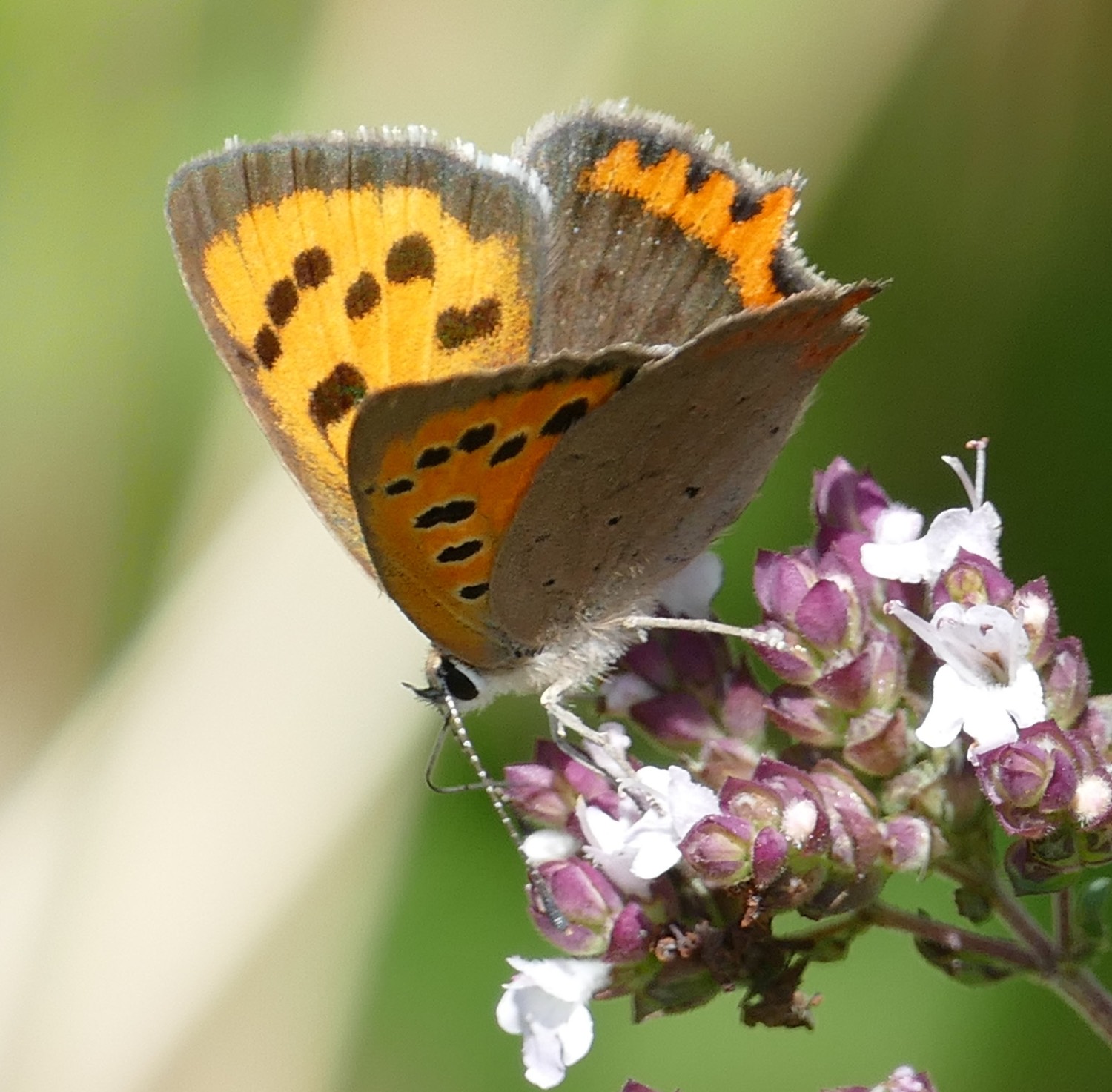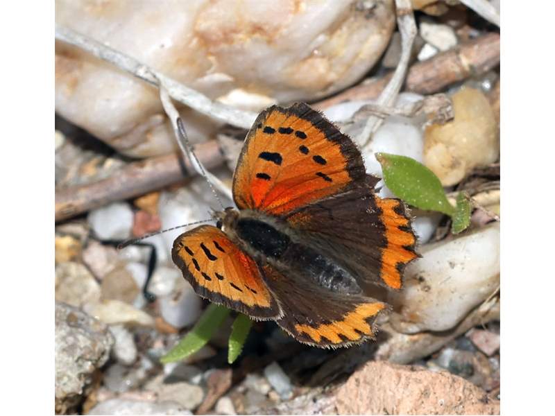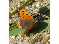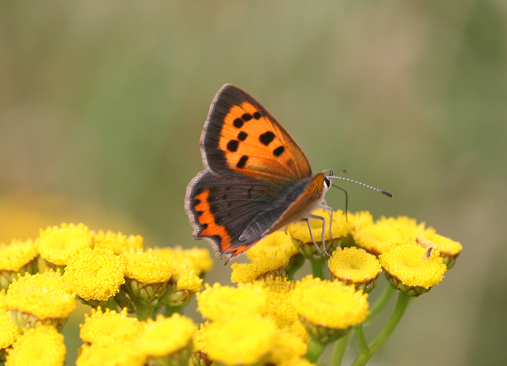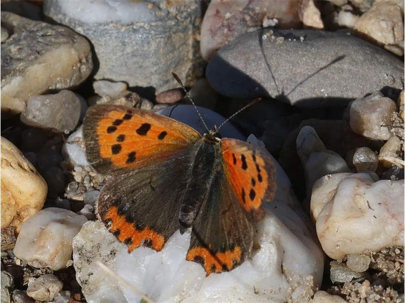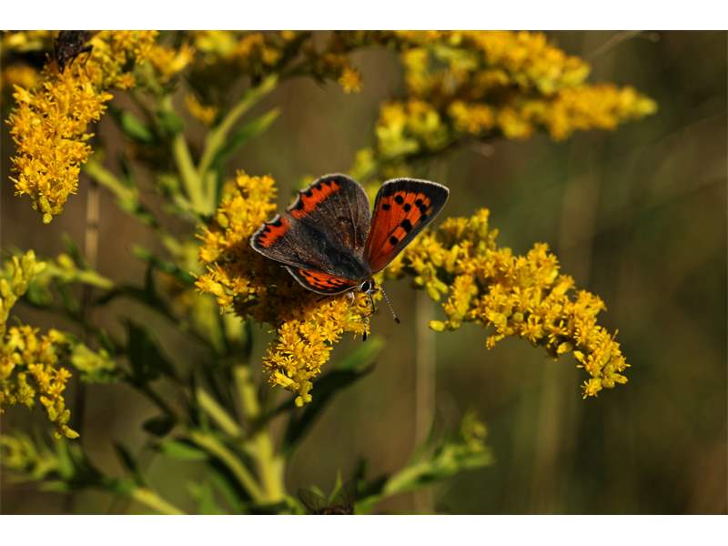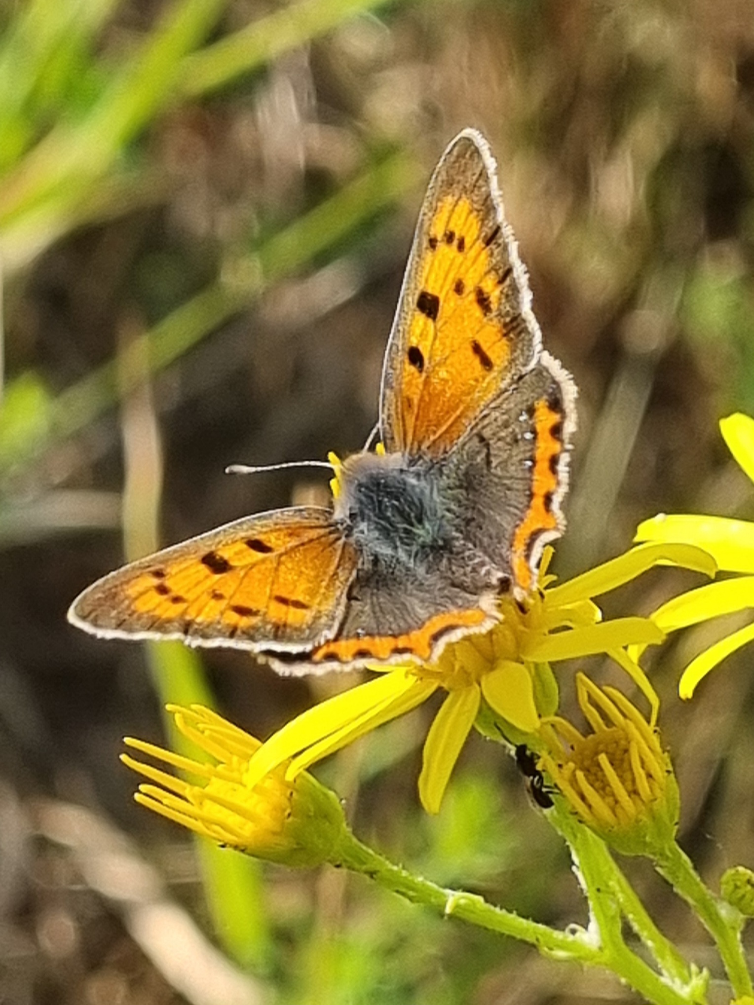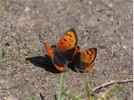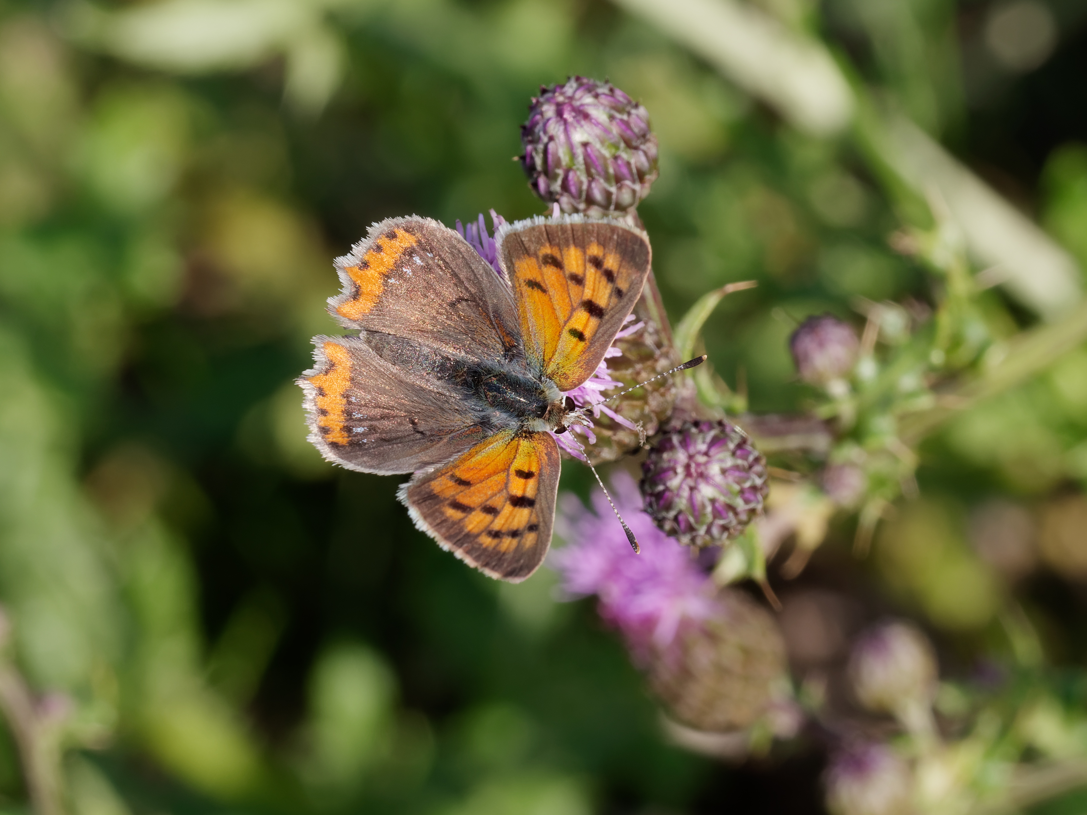 Kleiner Feuerfalter (Lycaena phlaeas (Linnaeus, 1761)), Laue, Rekultivierungsbereich der Tagebaulandschaft Goitzsche östlich vom Seelhausener See, nahe Leipzig, 16. Juni 2019
