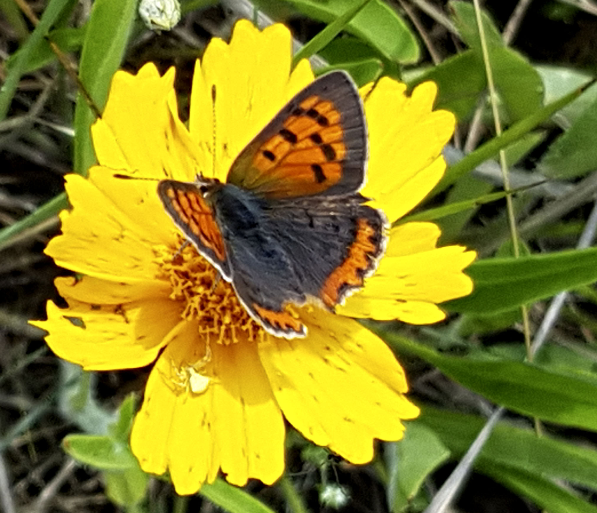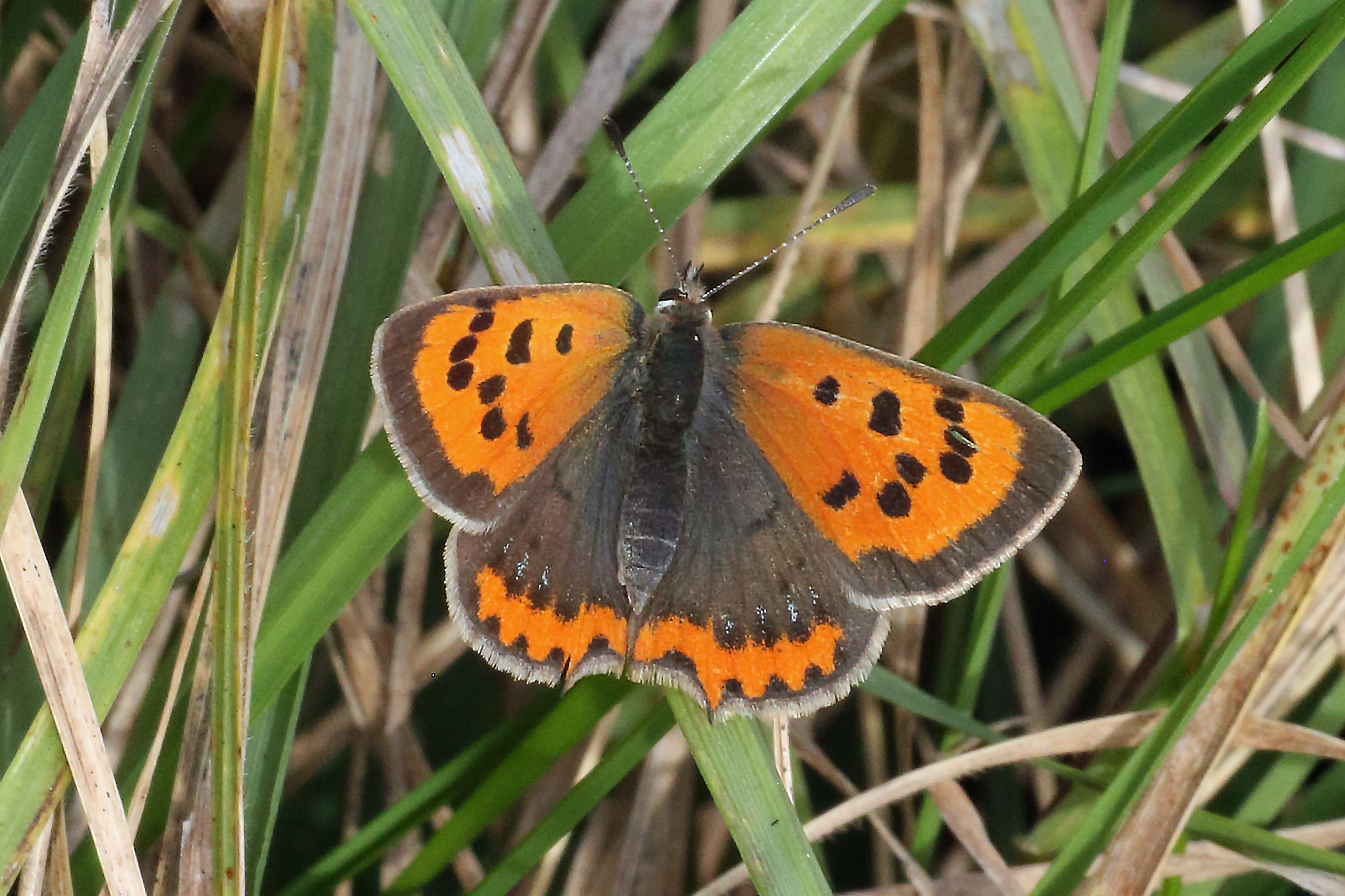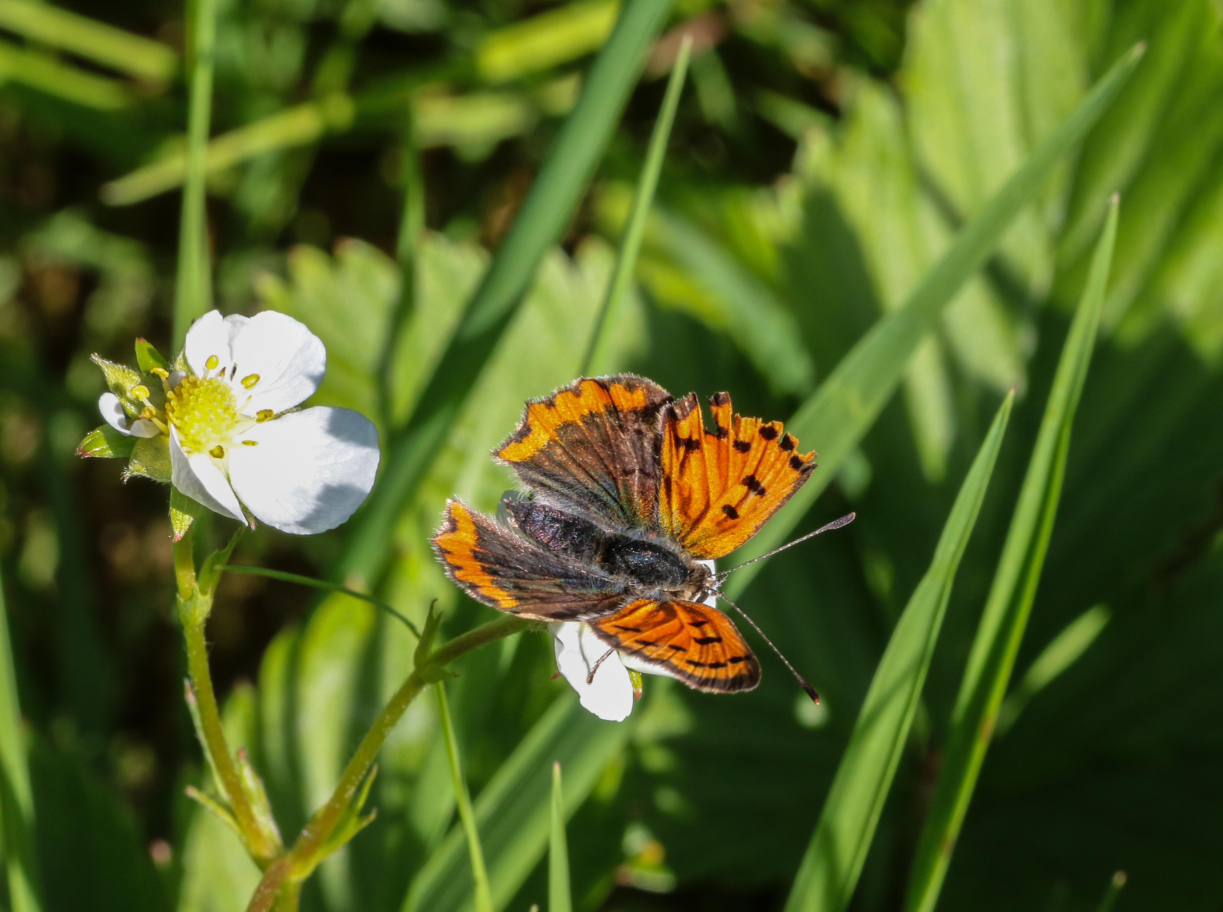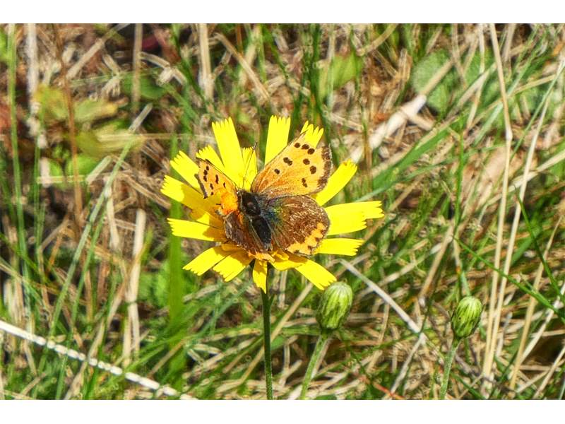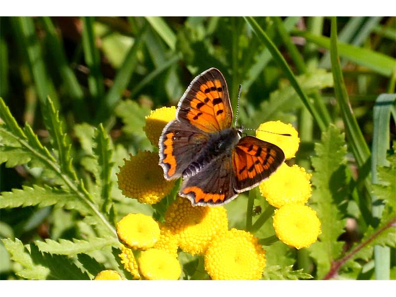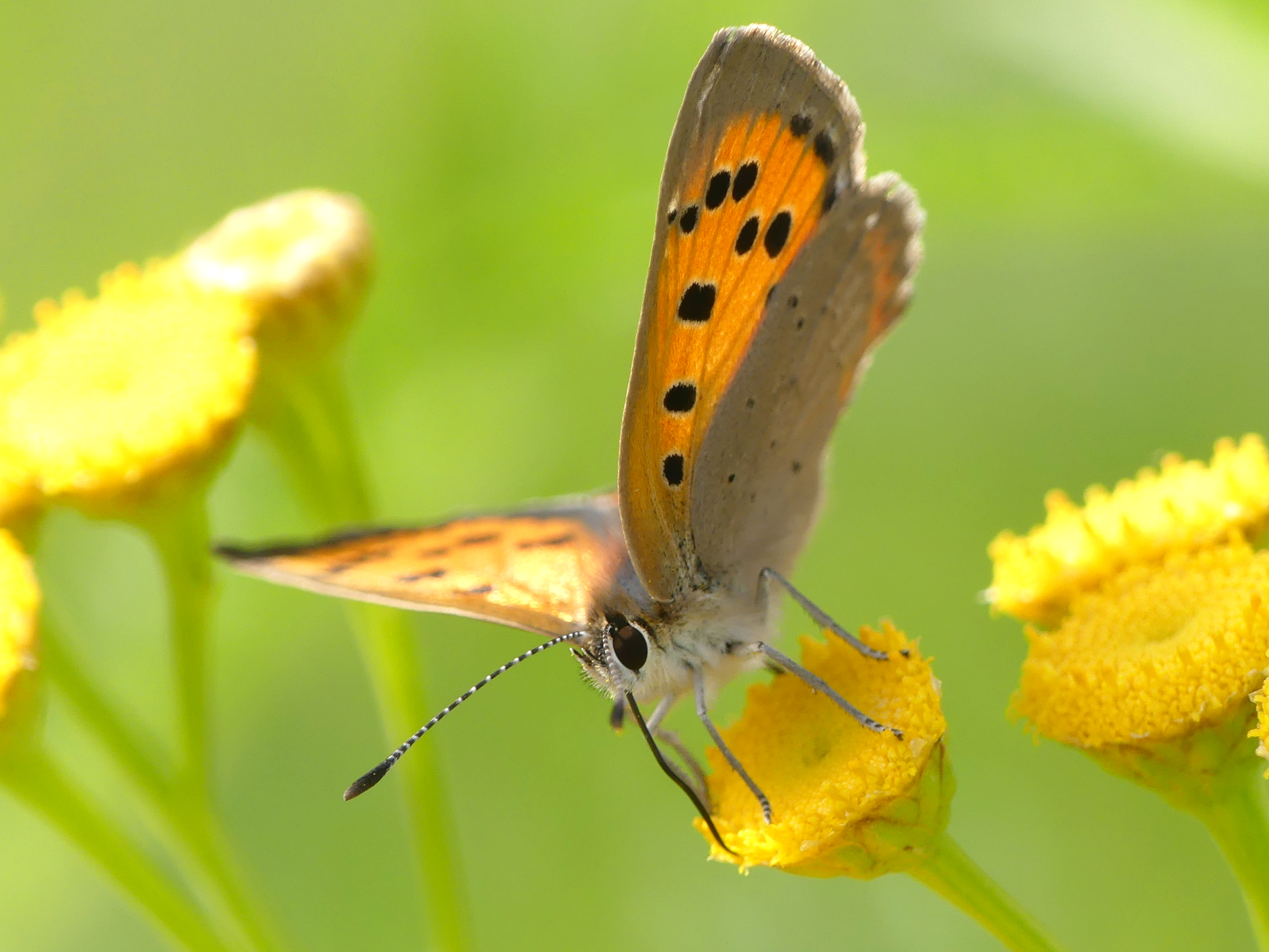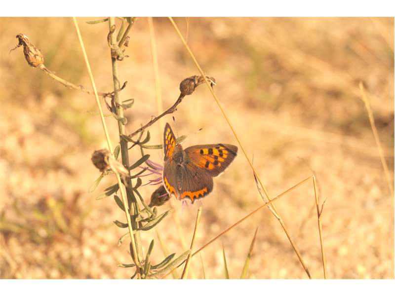 Kleiner Feuerfalter (Lycaena phlaeas (Linnaeus, 1761)), Laue, Rekultivierungsbereich der Tagebaulandschaft Goitzsche östlich vom Seelhausener See, nahe Leipzig, 16. Juni 2019
