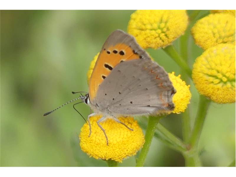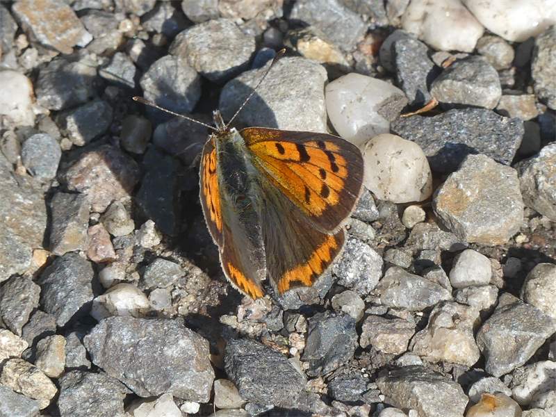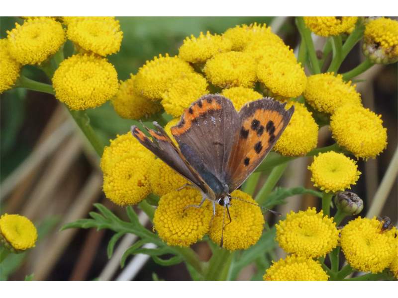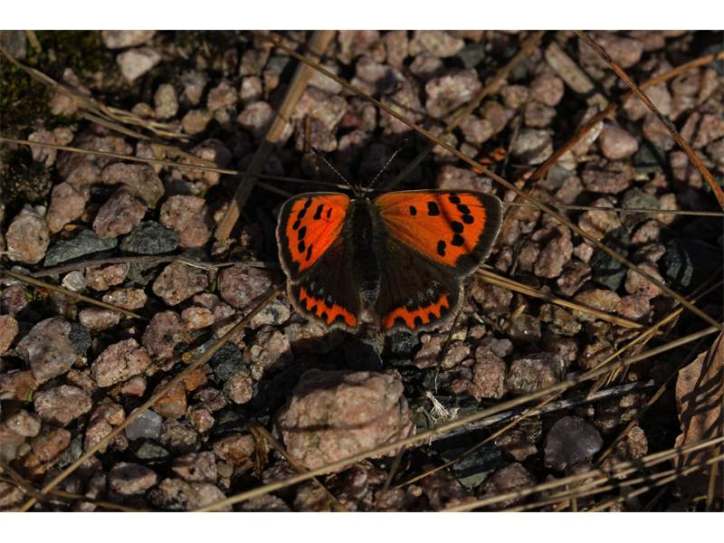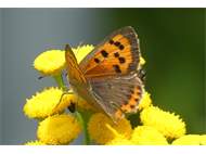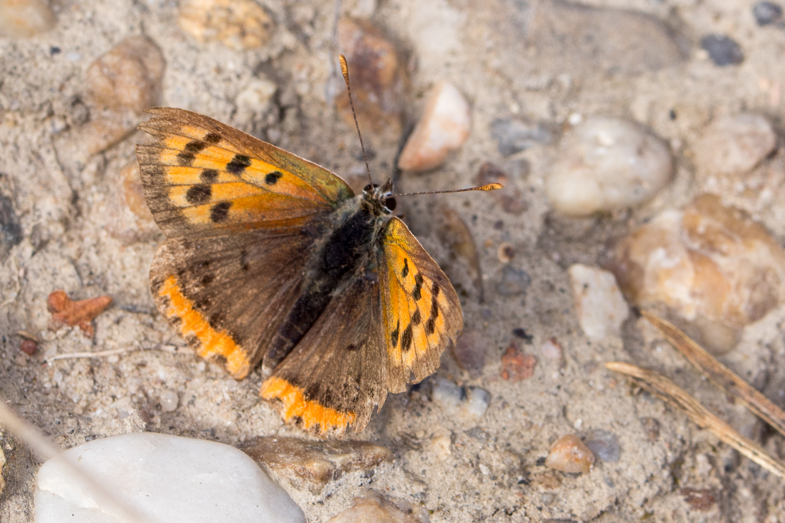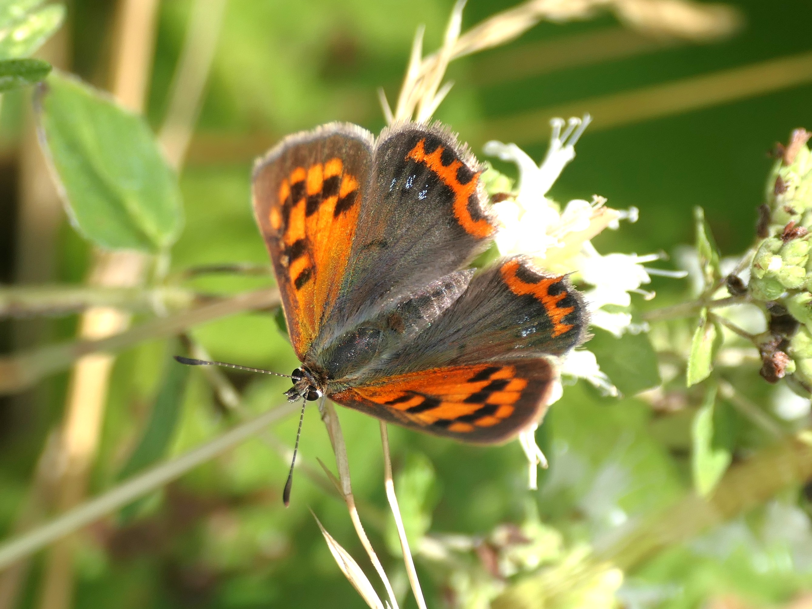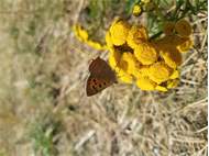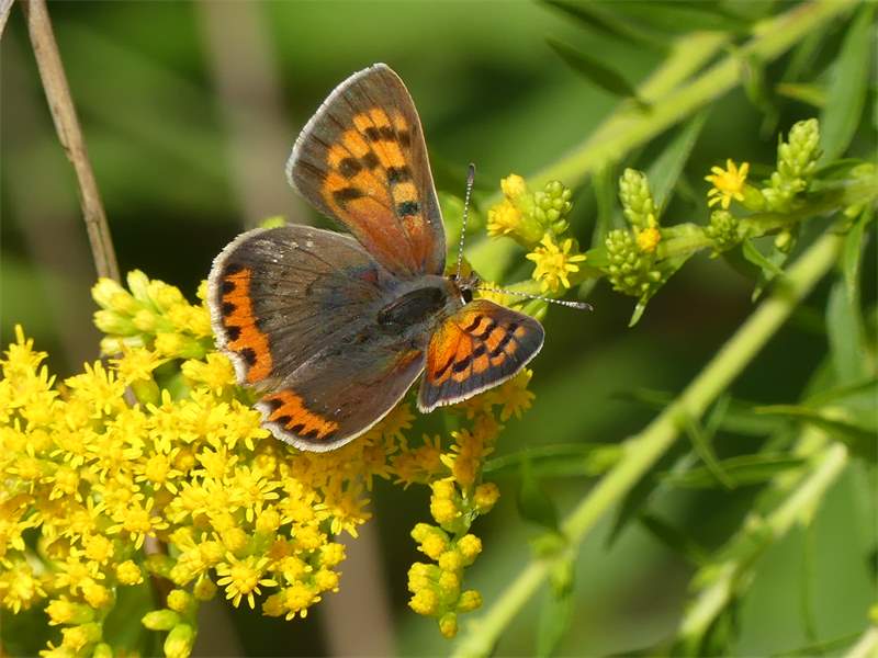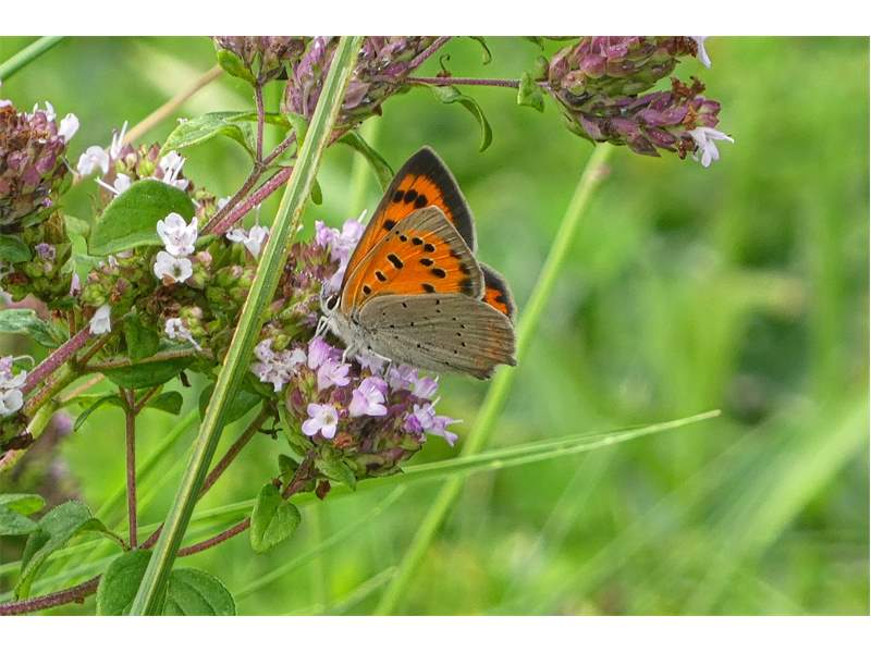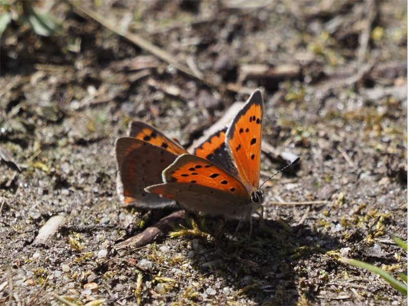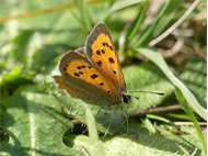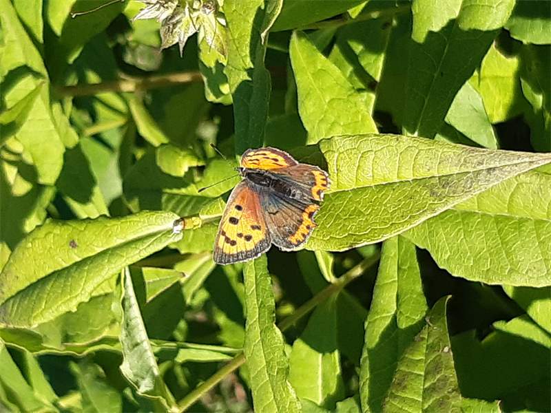 Kleiner Feuerfalter (Lycaena phlaeas (Linnaeus, 1761)), Laue, Rekultivierungsbereich der Tagebaulandschaft Goitzsche östlich vom Seelhausener See, nahe Leipzig, 16. Juni 2019