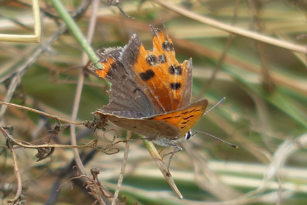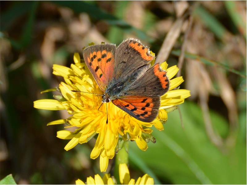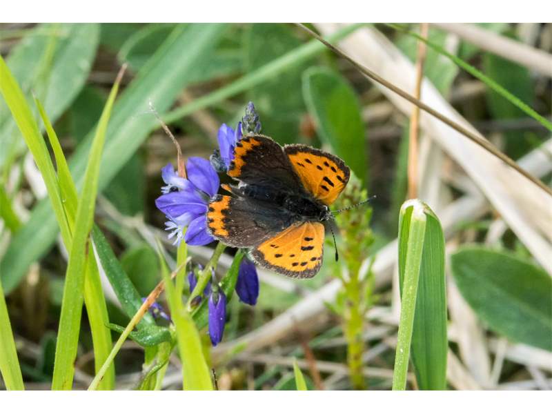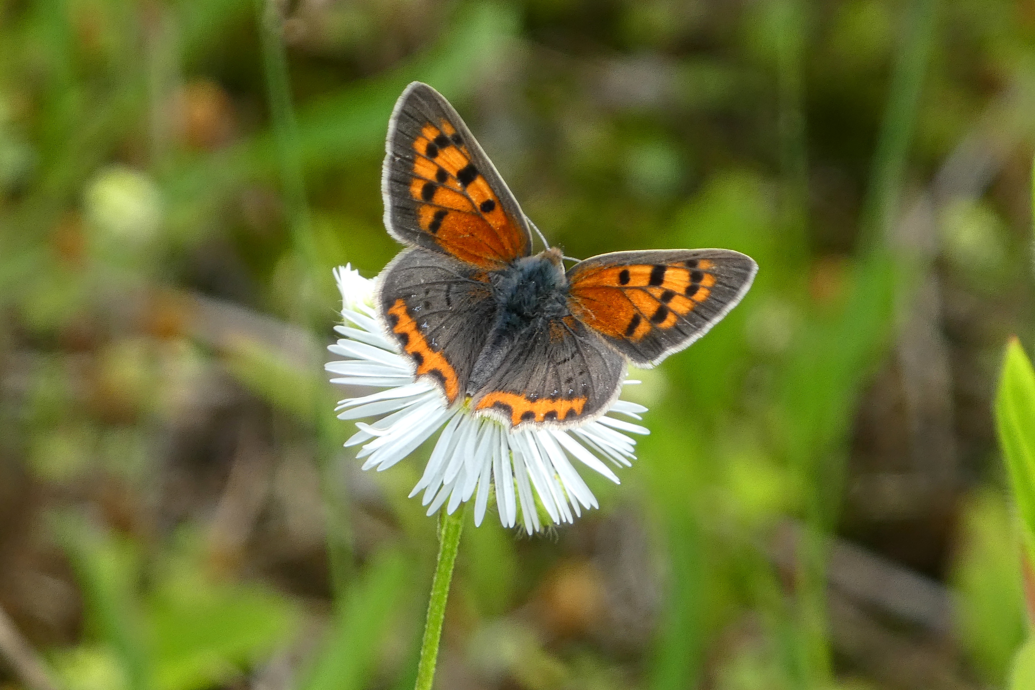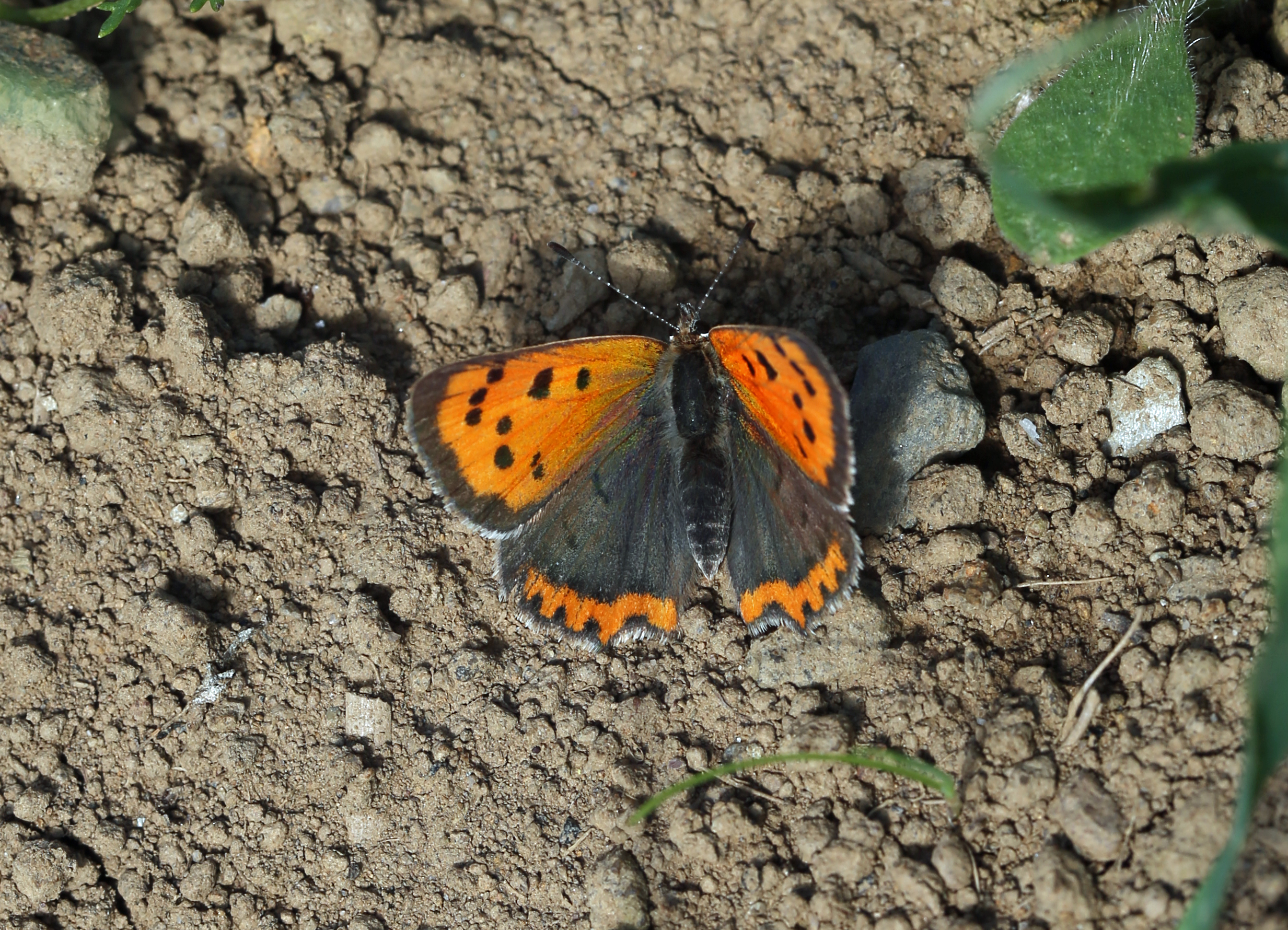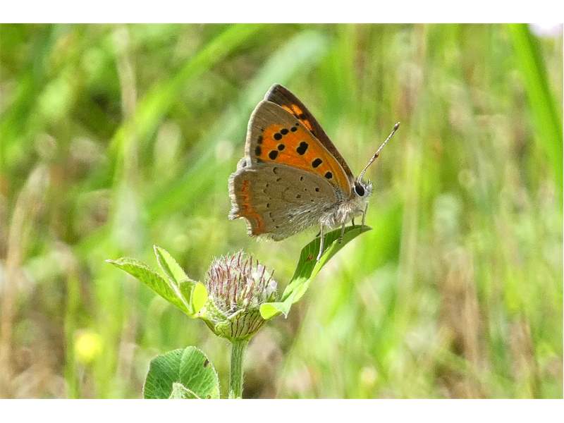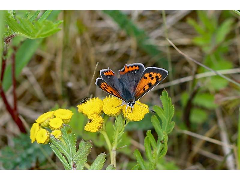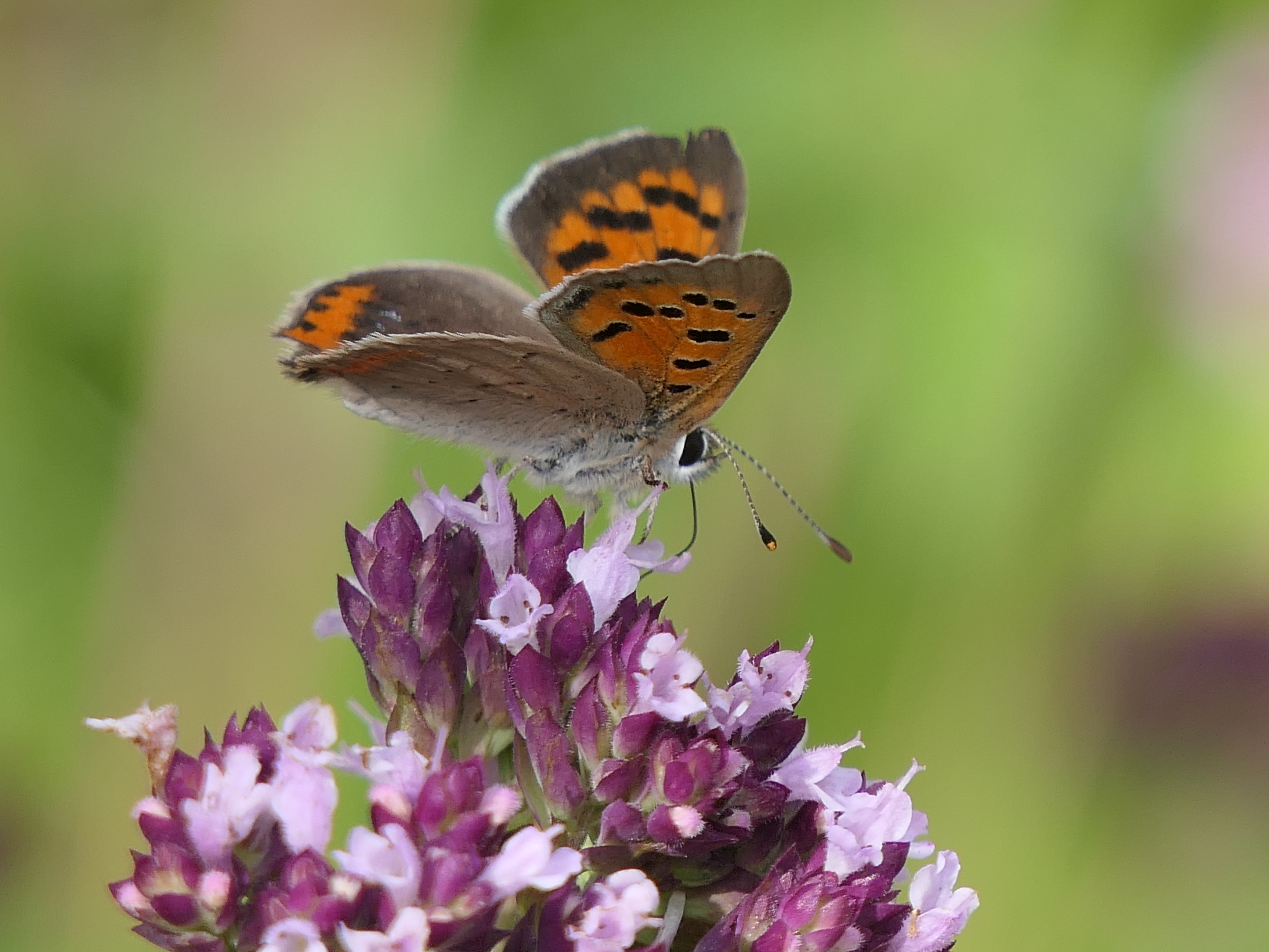 Kleiner Feuerfalter (Lycaena phlaeas (Linnaeus, 1761)), Laue, Rekultivierungsbereich der Tagebaulandschaft Goitzsche östlich vom Seelhausener See, nahe Leipzig, 16. Juni 2019