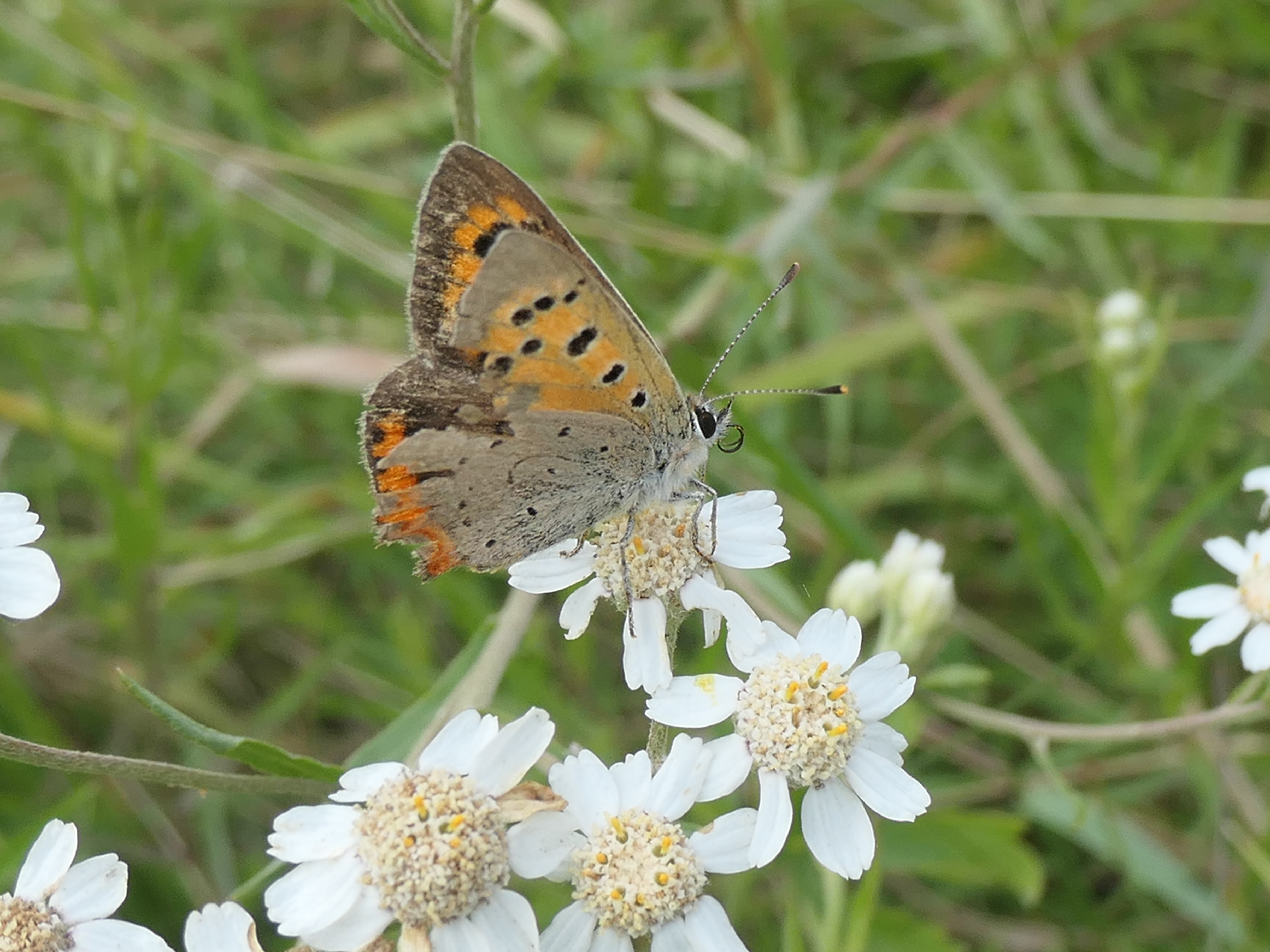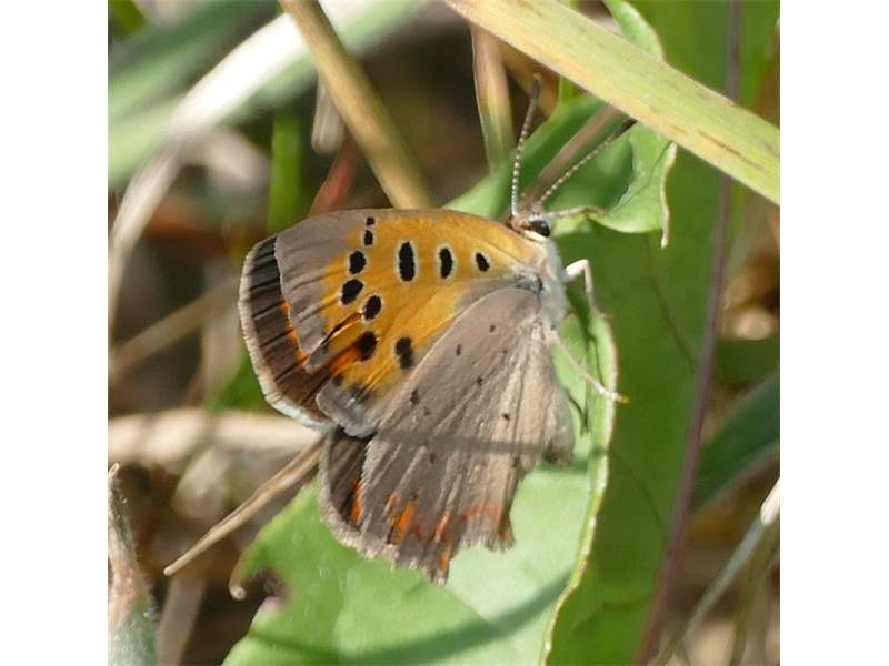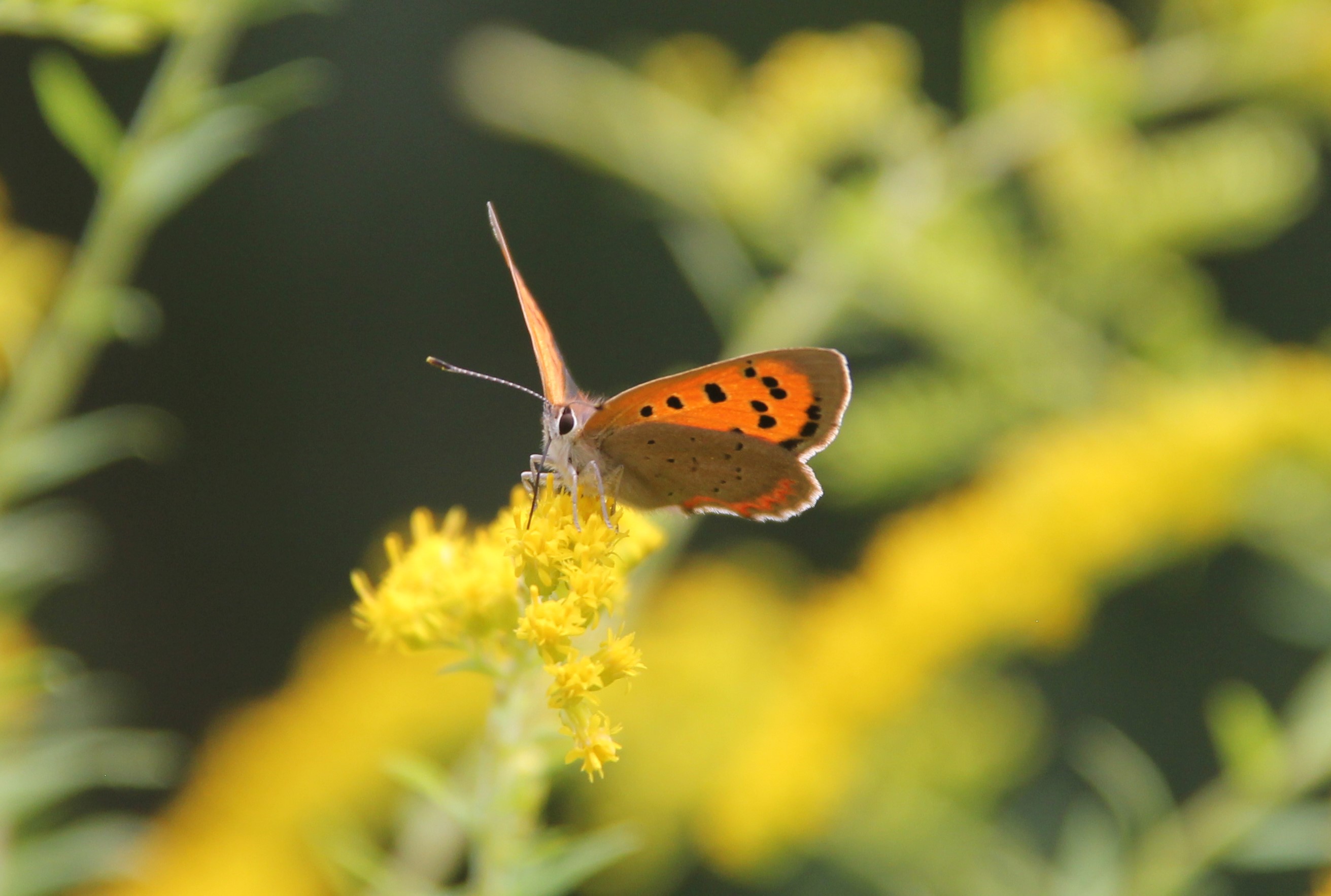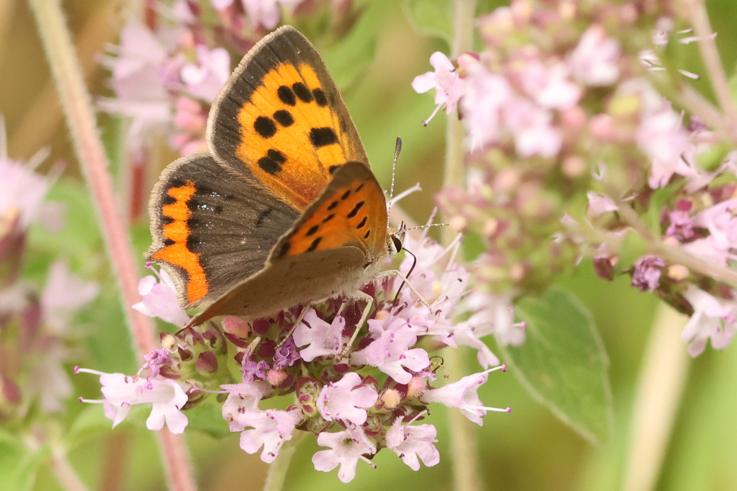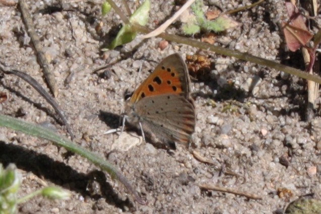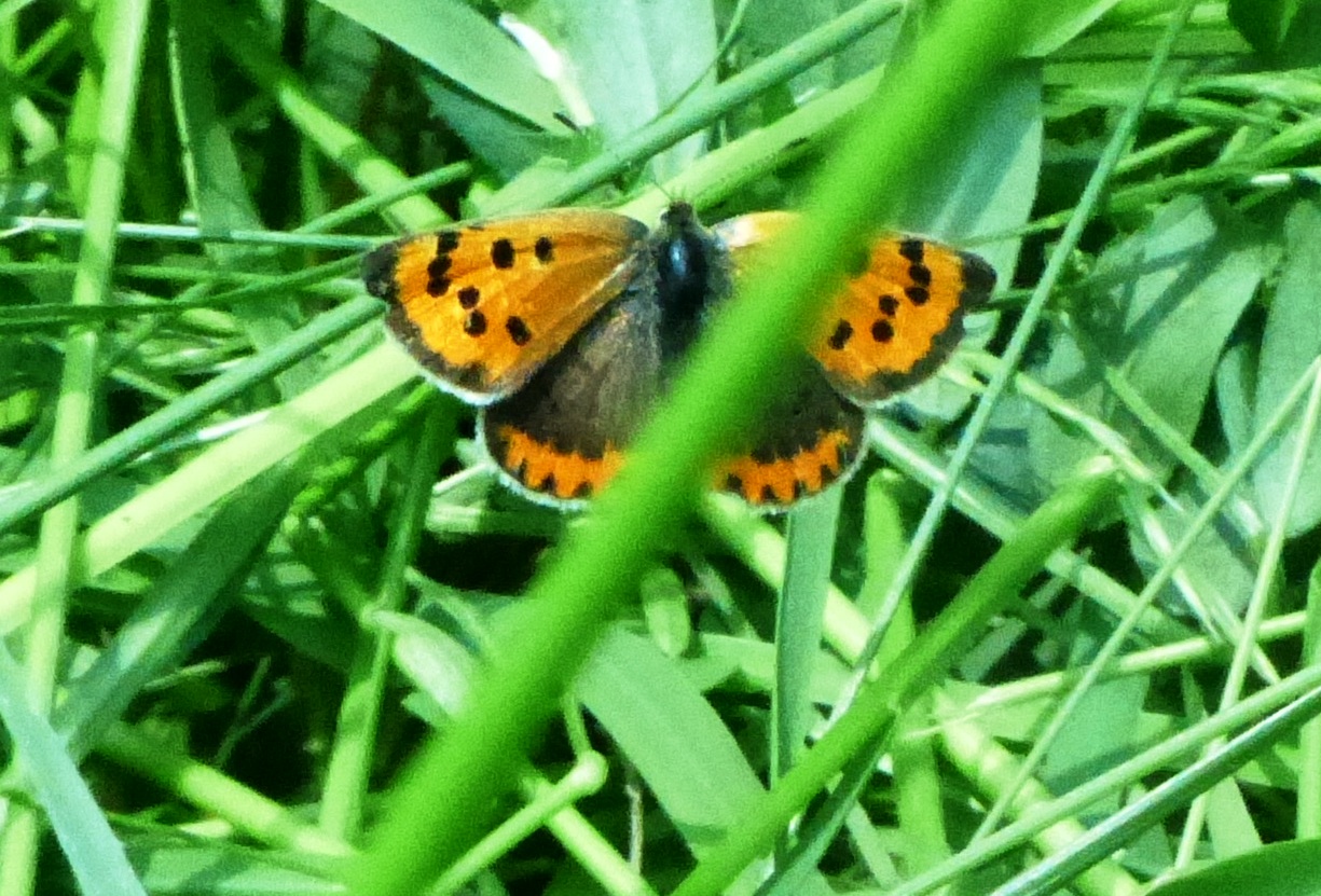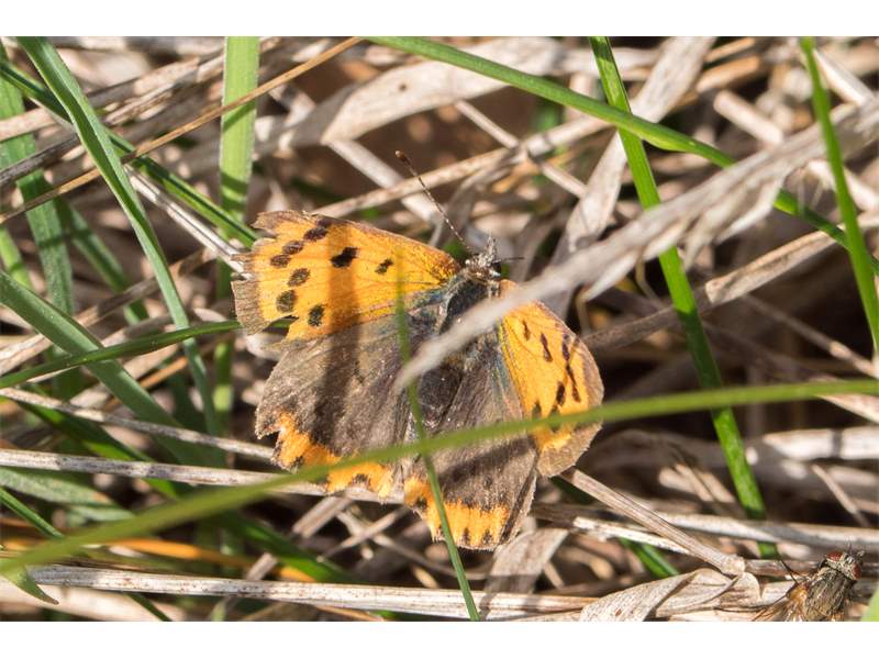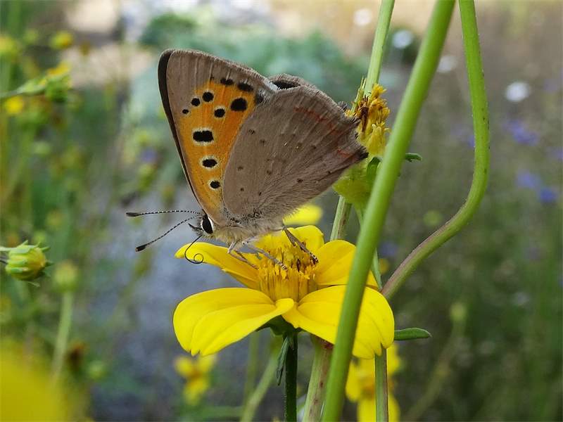Kleiner Feuerfalter (Lycaena phlaeas (Linnaeus, 1761)), Laue, Rekultivierungsbereich der Tagebaulandschaft Goitzsche östlich vom Seelhausener See, nahe Leipzig, 16. Juni 2019