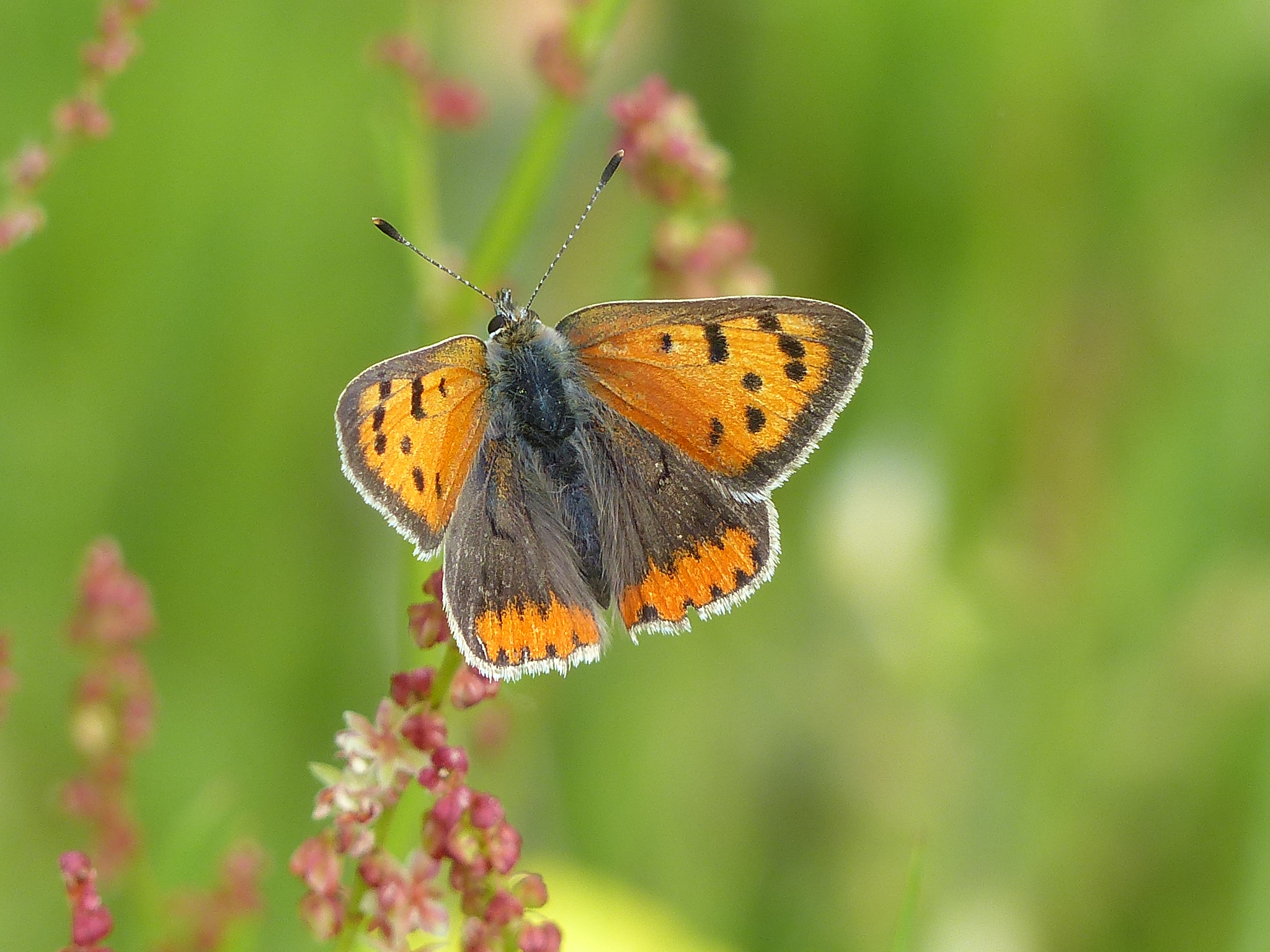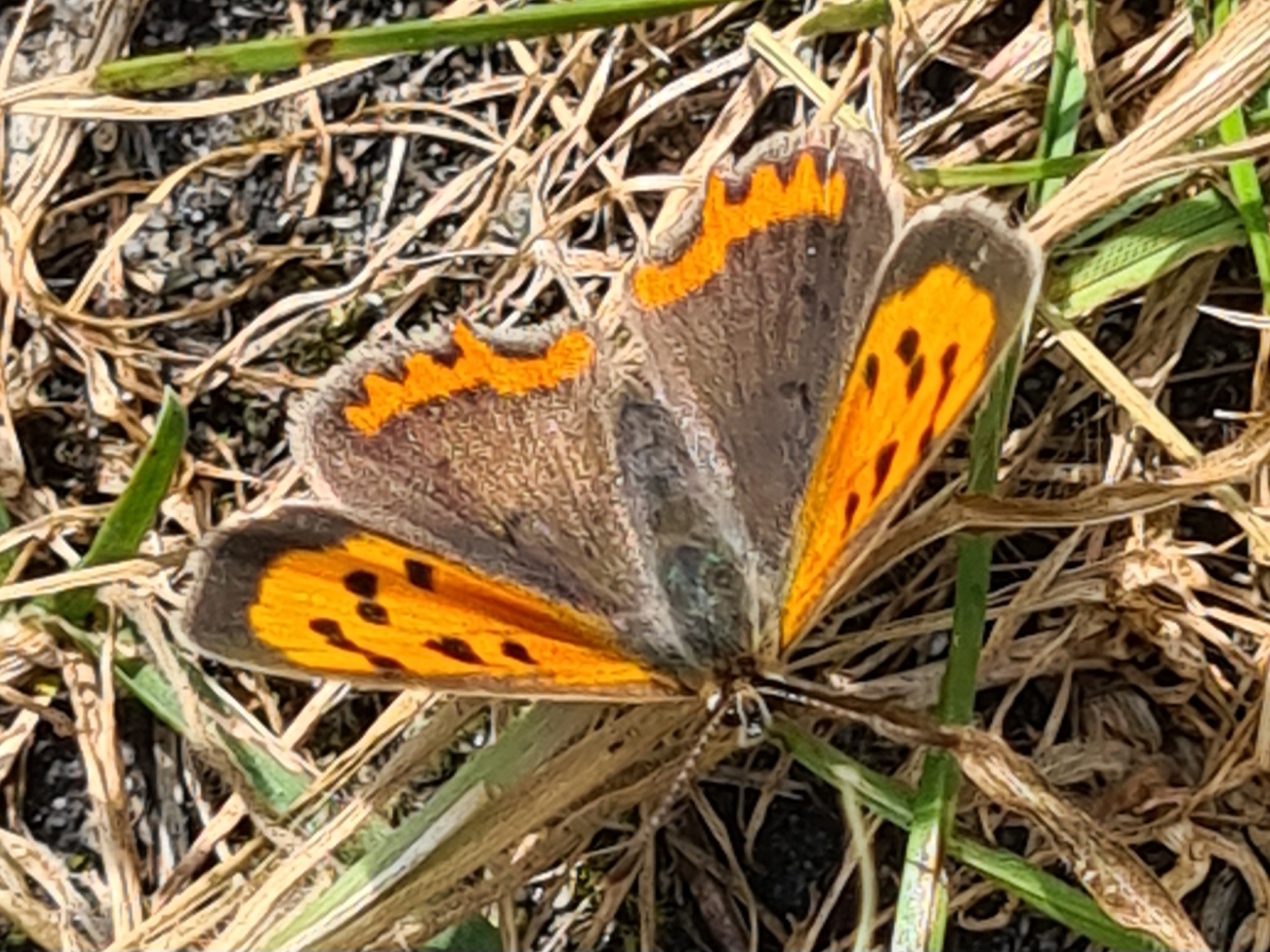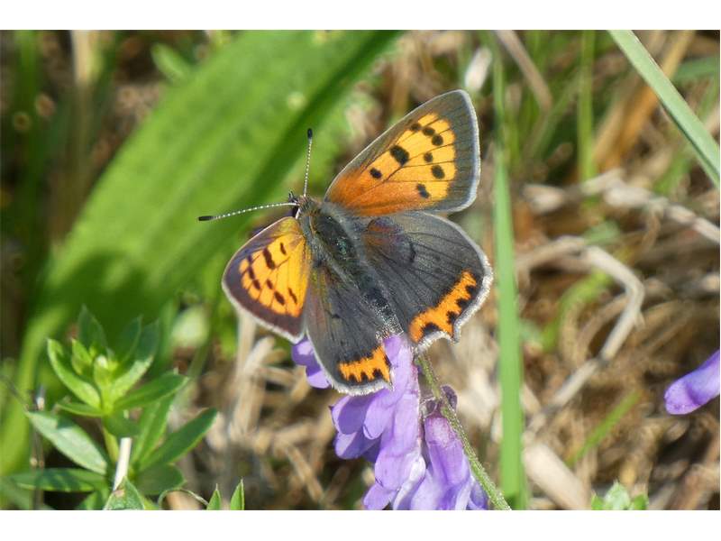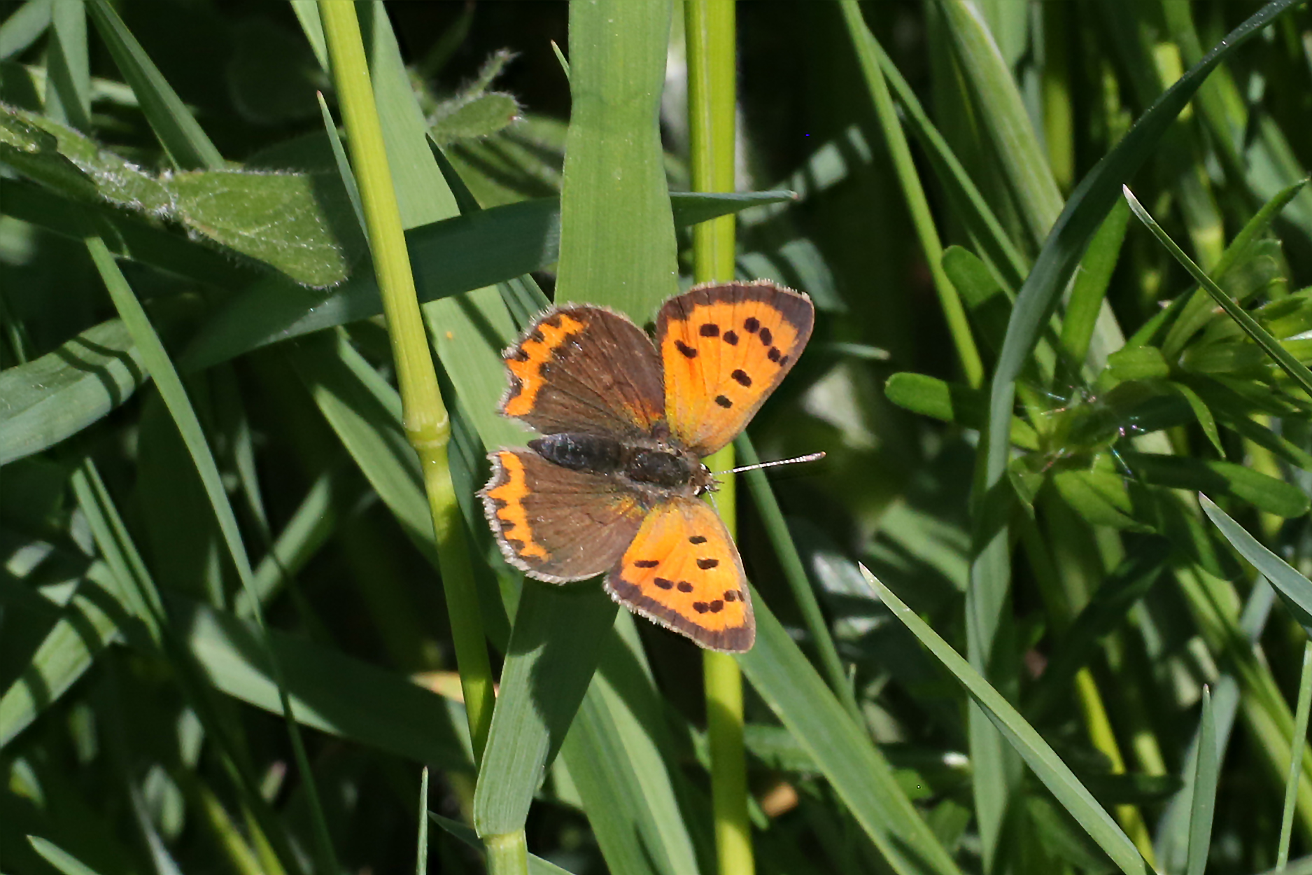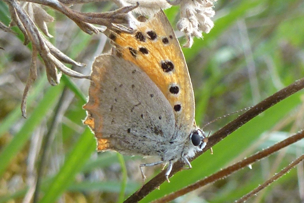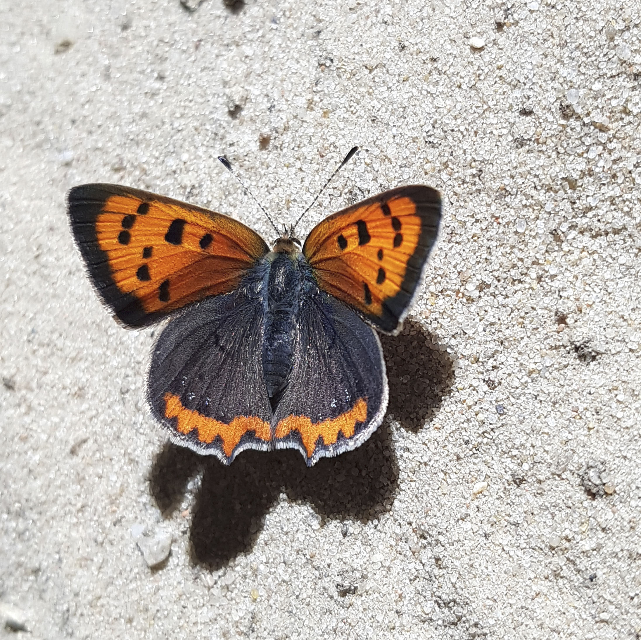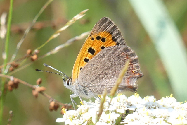 Kleiner Feuerfalter (Lycaena phlaeas (Linnaeus, 1761)), Laue, Rekultivierungsbereich der Tagebaulandschaft Goitzsche östlich vom Seelhausener See, nahe Leipzig, 16. Juni 2019