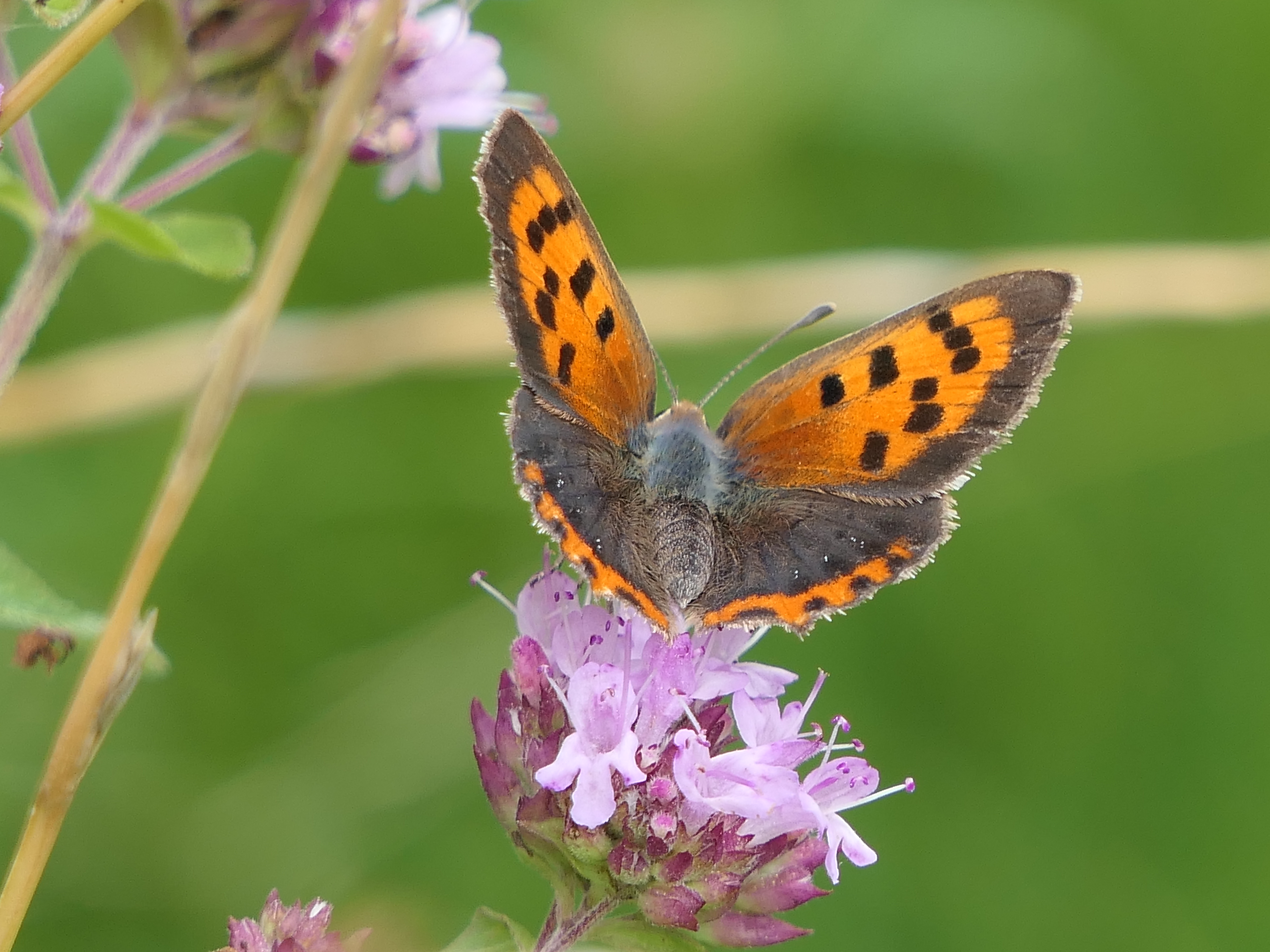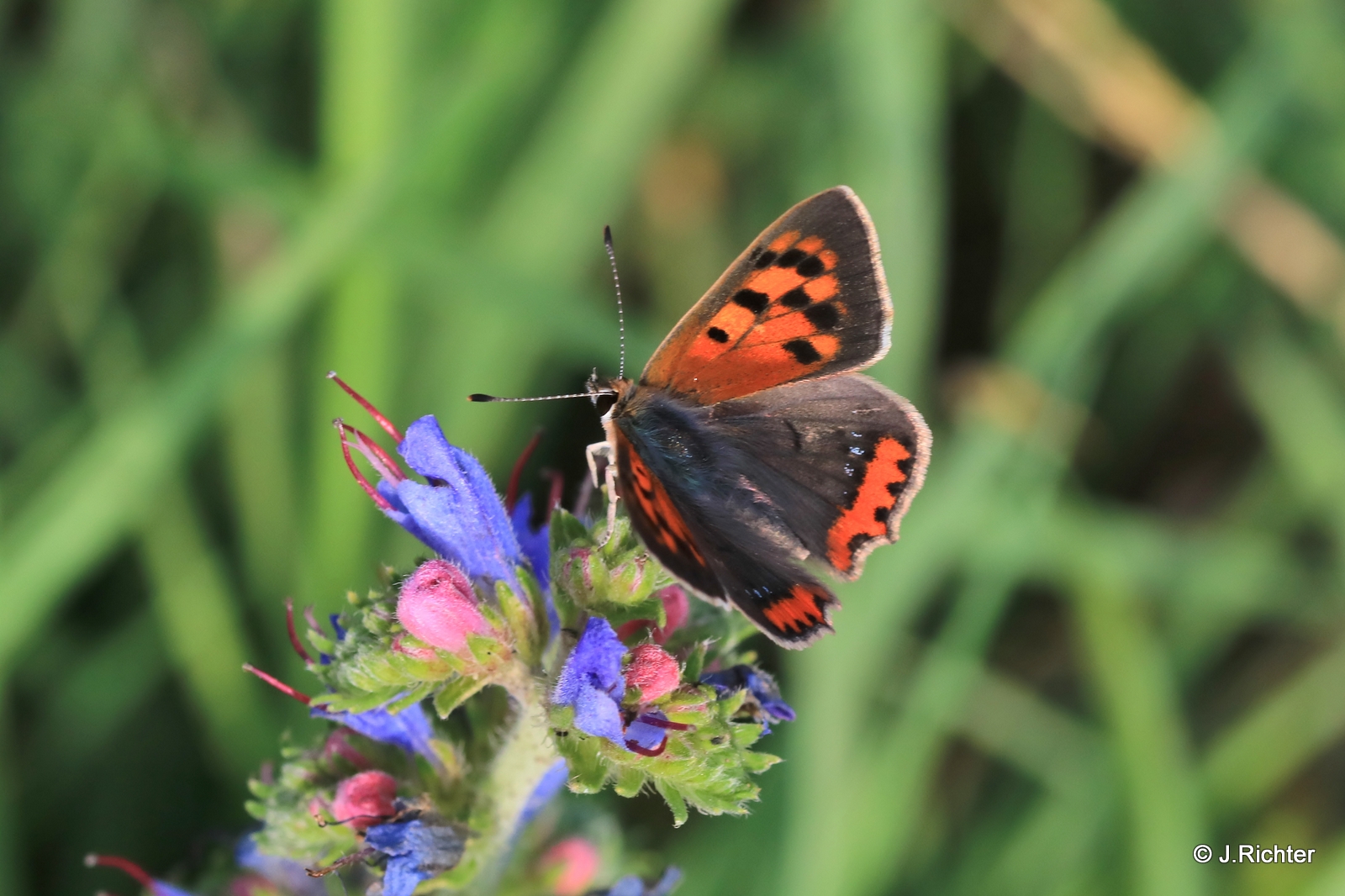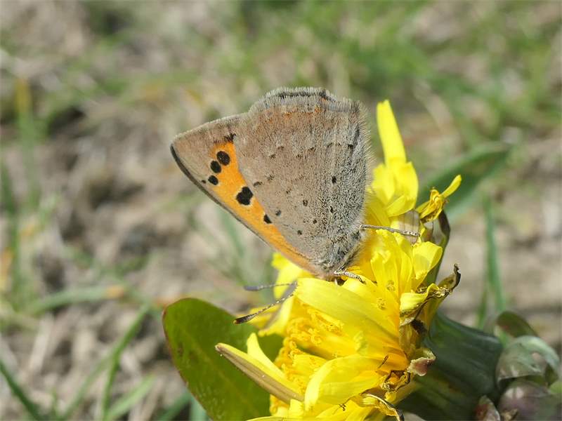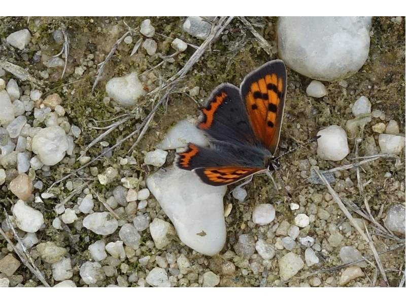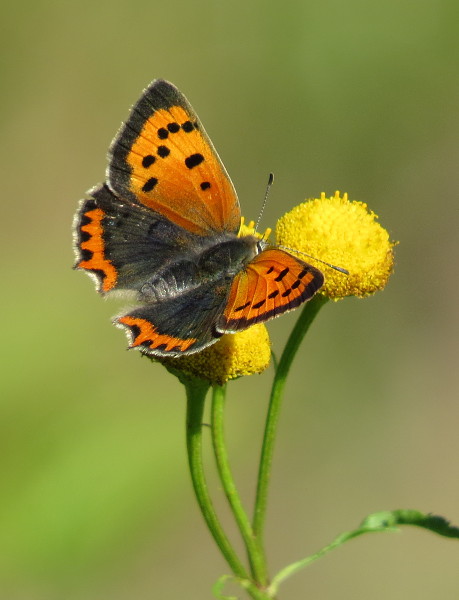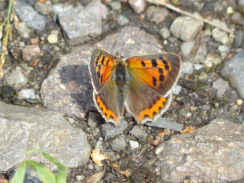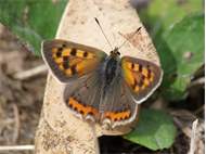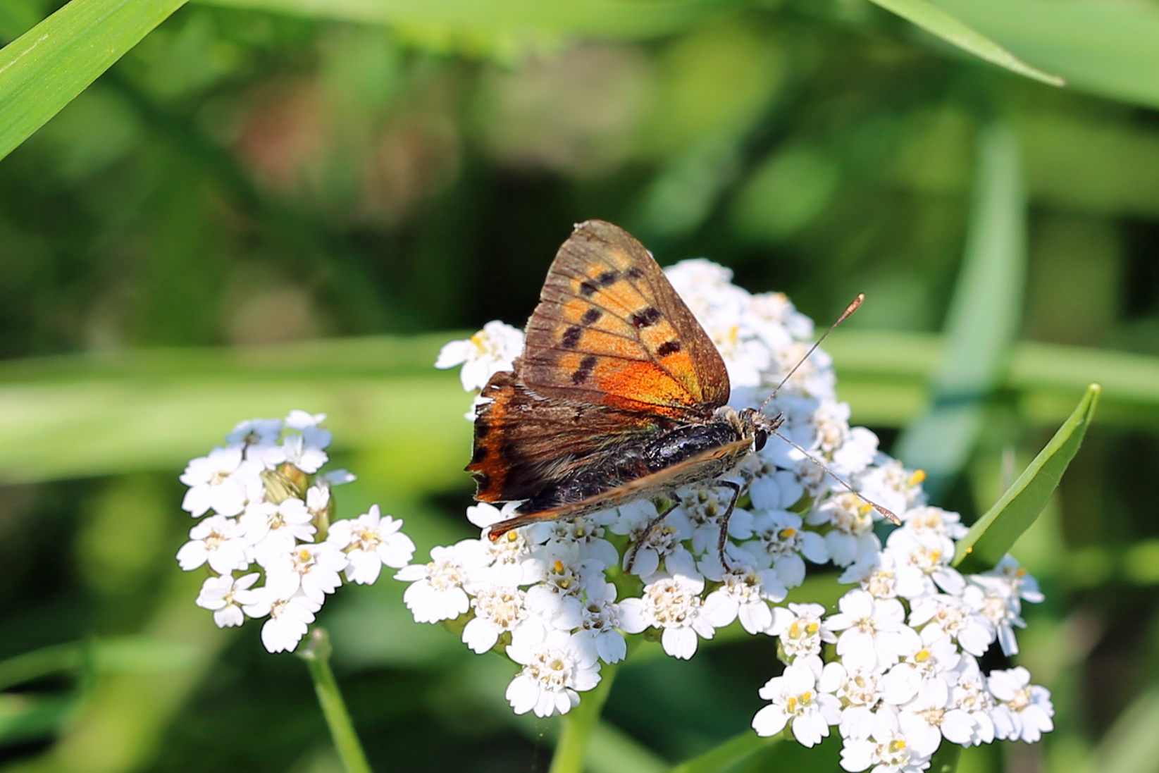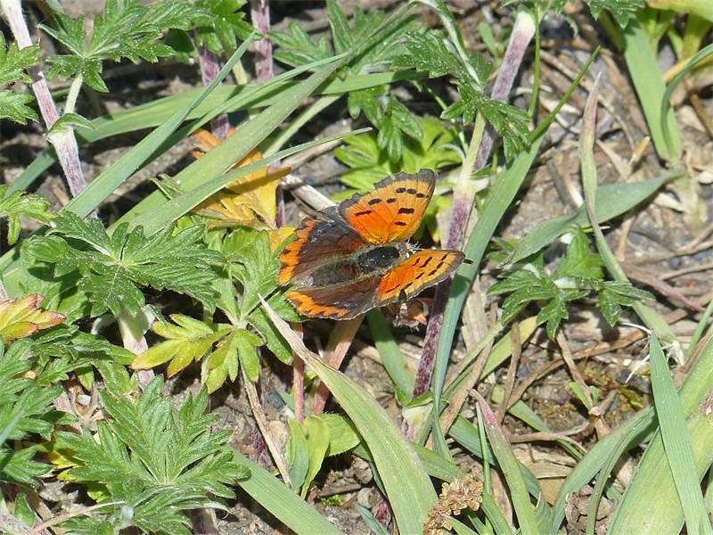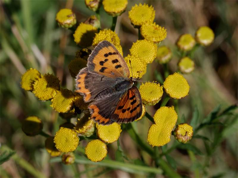 Kleiner Feuerfalter (Lycaena phlaeas (Linnaeus, 1761)), Laue, Rekultivierungsbereich der Tagebaulandschaft Goitzsche östlich vom Seelhausener See, nahe Leipzig, 16. Juni 2019