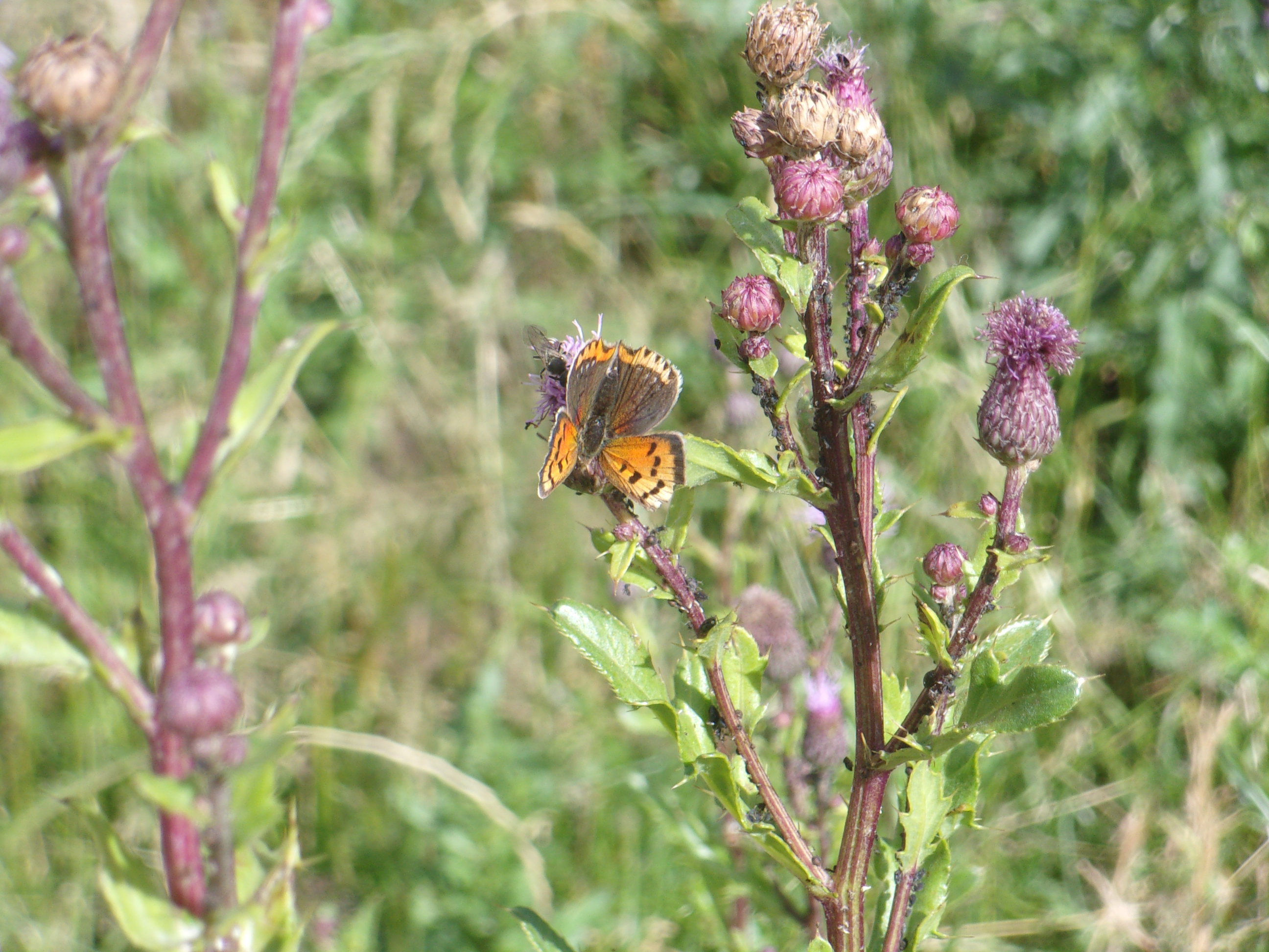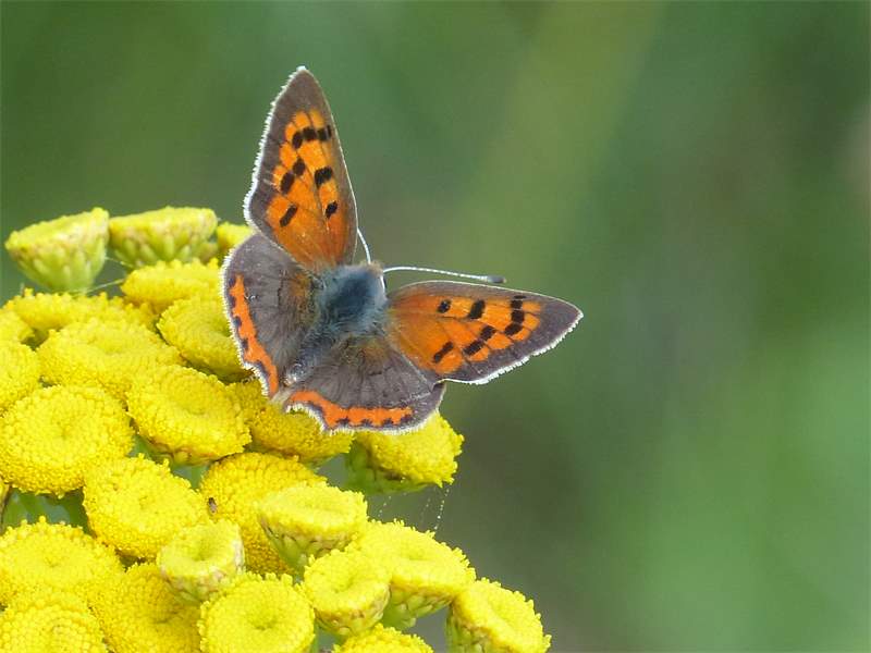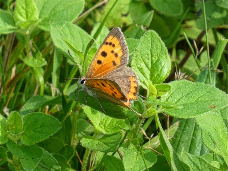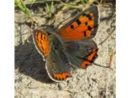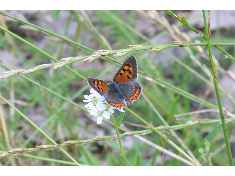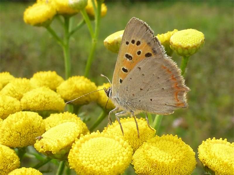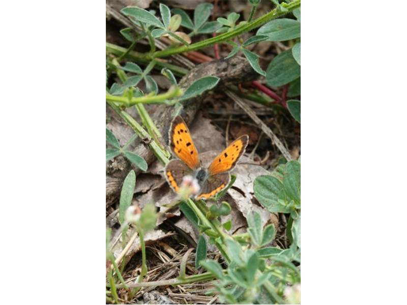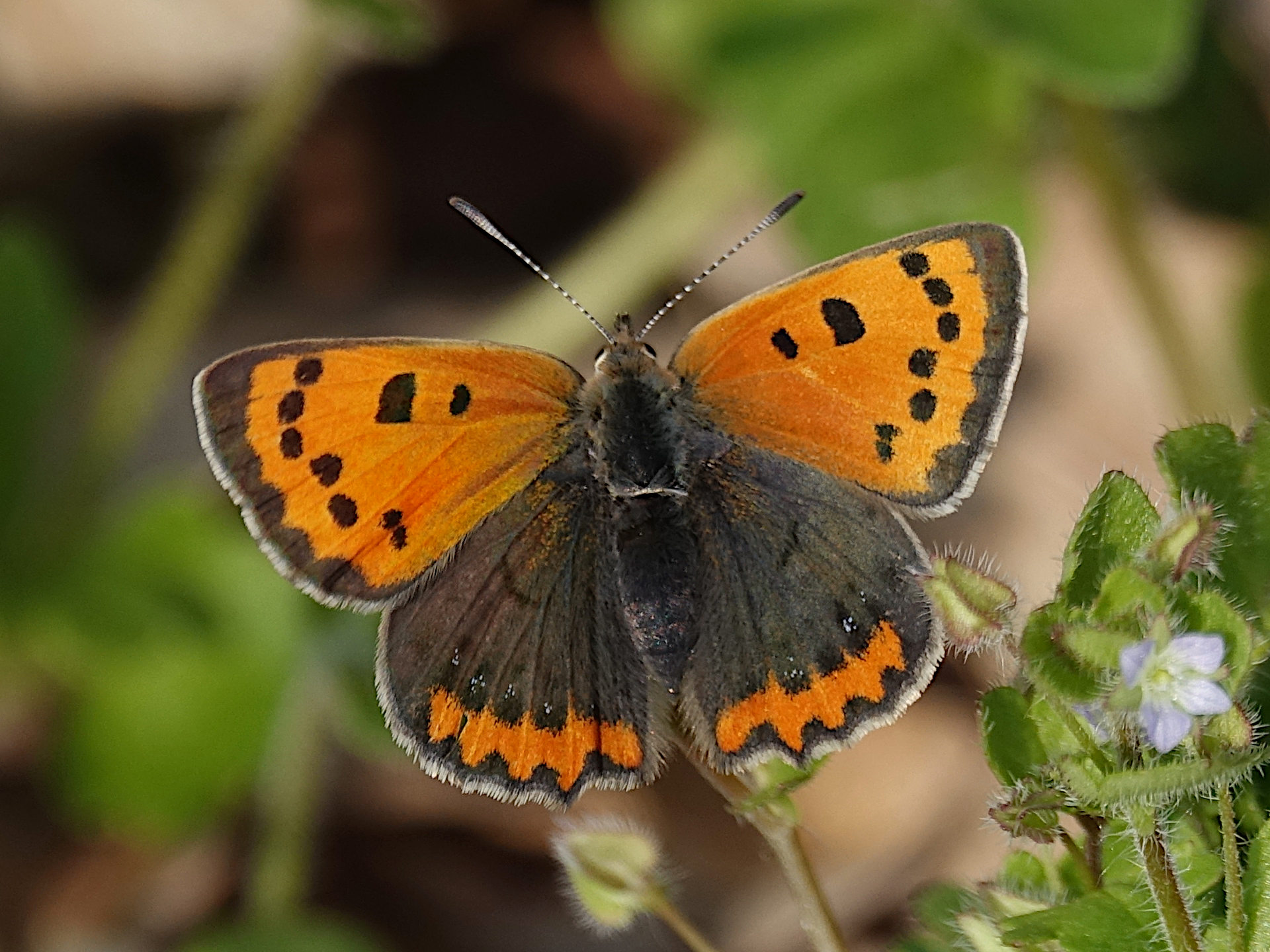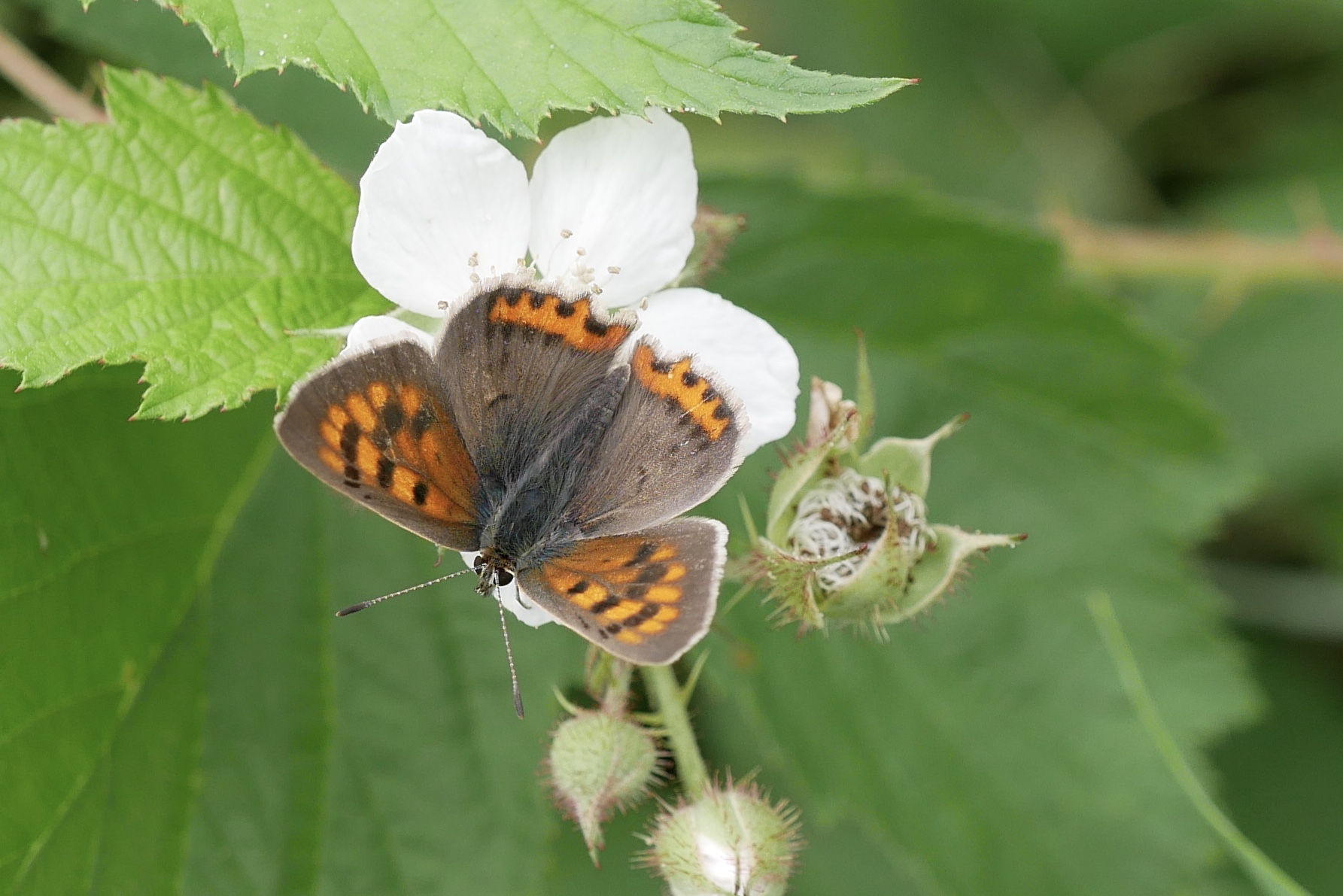 Kleiner Feuerfalter (Lycaena phlaeas (Linnaeus, 1761)), Laue, Rekultivierungsbereich der Tagebaulandschaft Goitzsche östlich vom Seelhausener See, nahe Leipzig, 16. Juni 2019