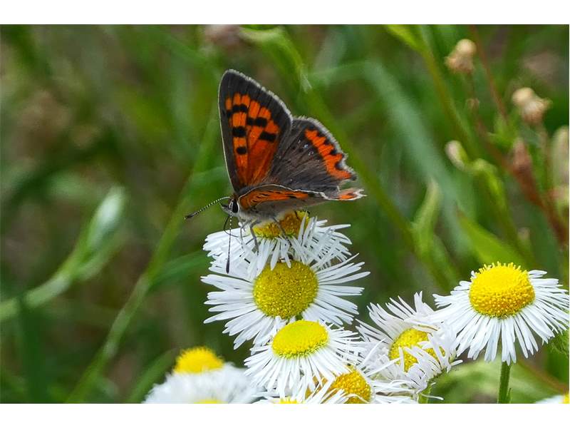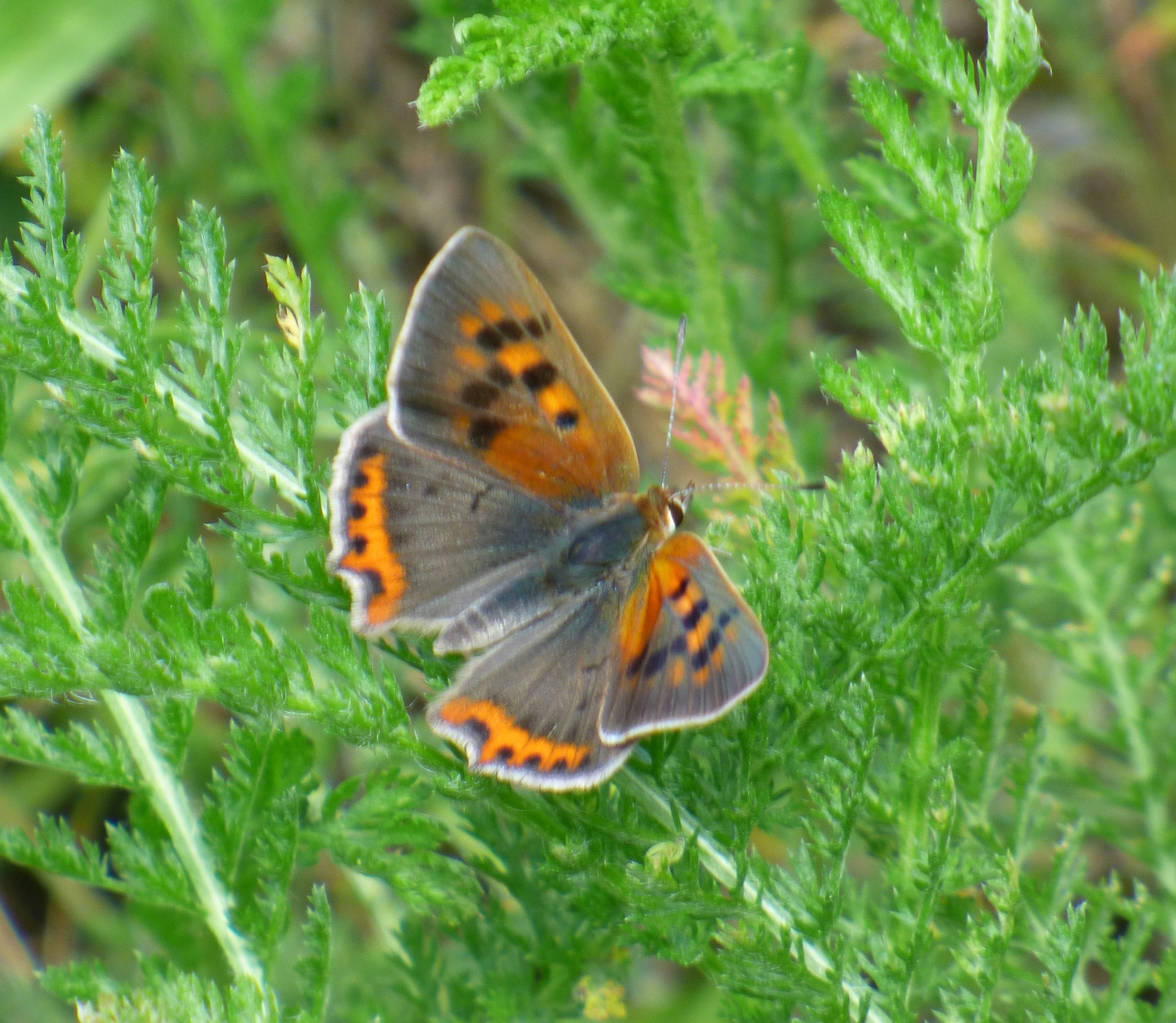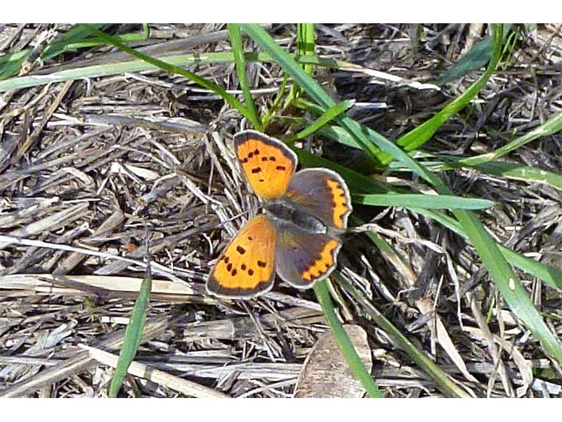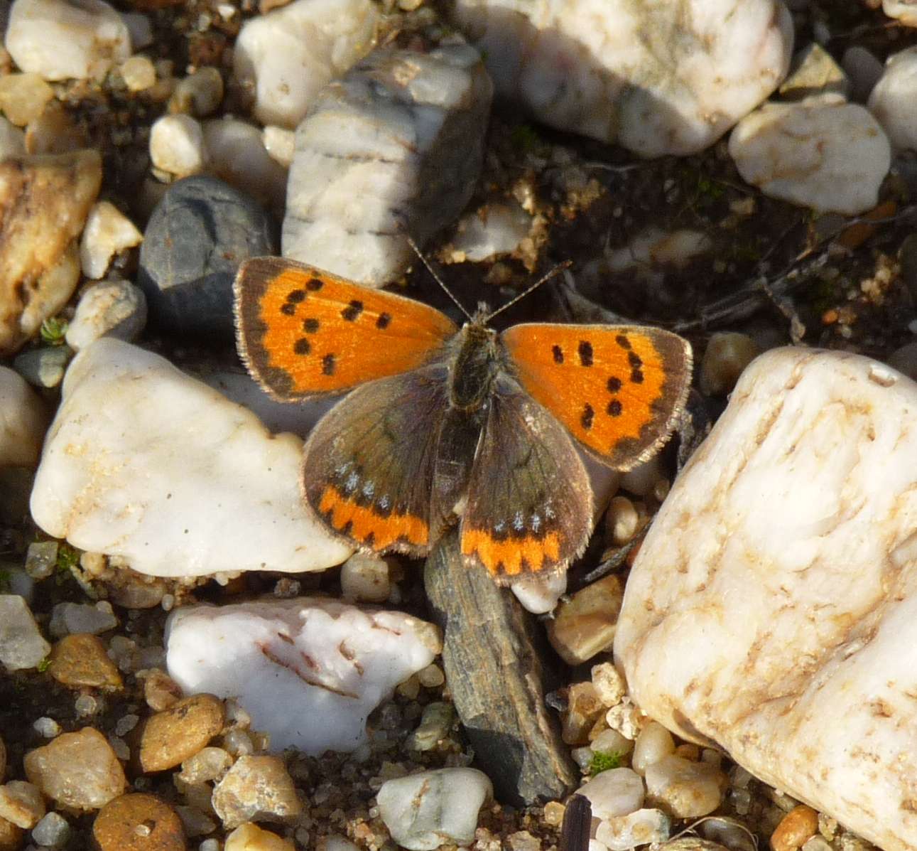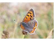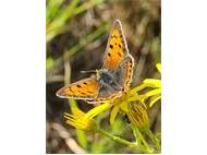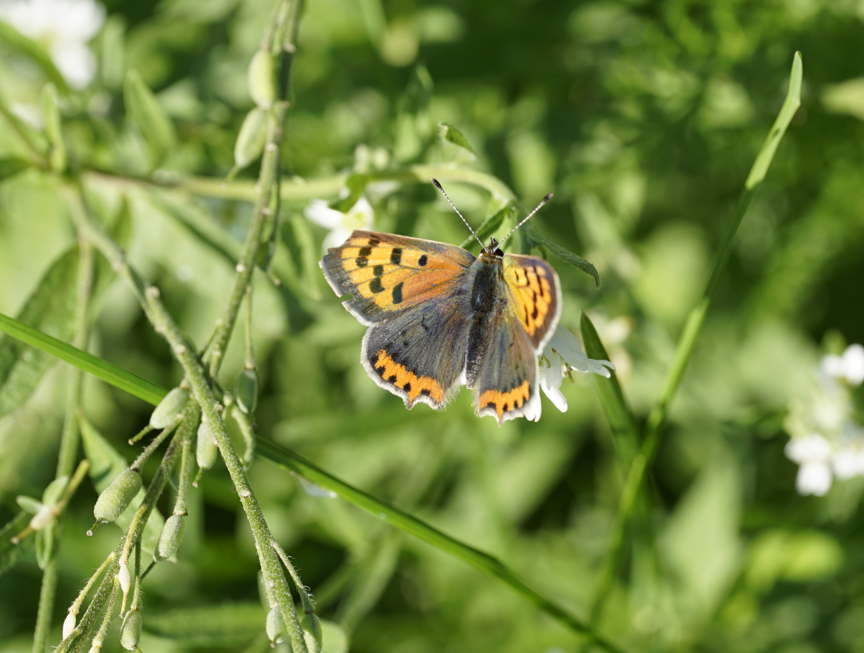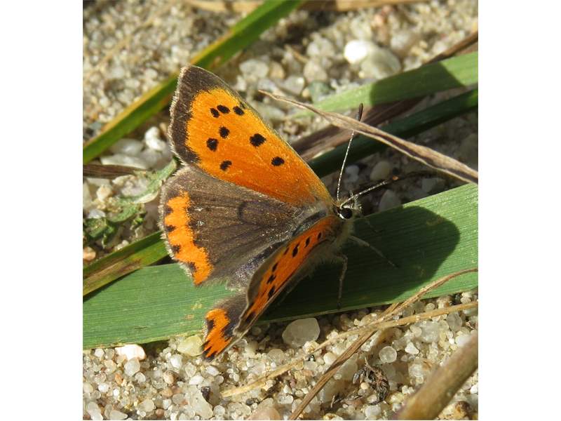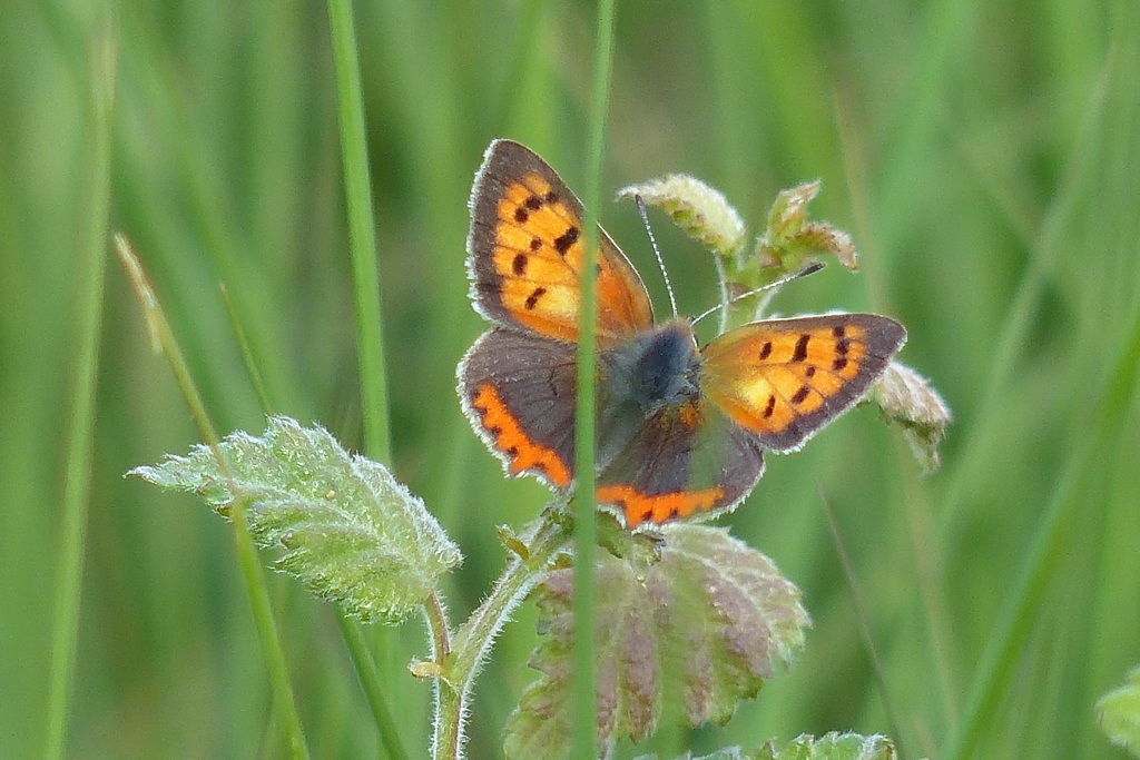 Kleiner Feuerfalter (Lycaena phlaeas (Linnaeus, 1761)), Laue, Rekultivierungsbereich der Tagebaulandschaft Goitzsche östlich vom Seelhausener See, nahe Leipzig, 16. Juni 2019